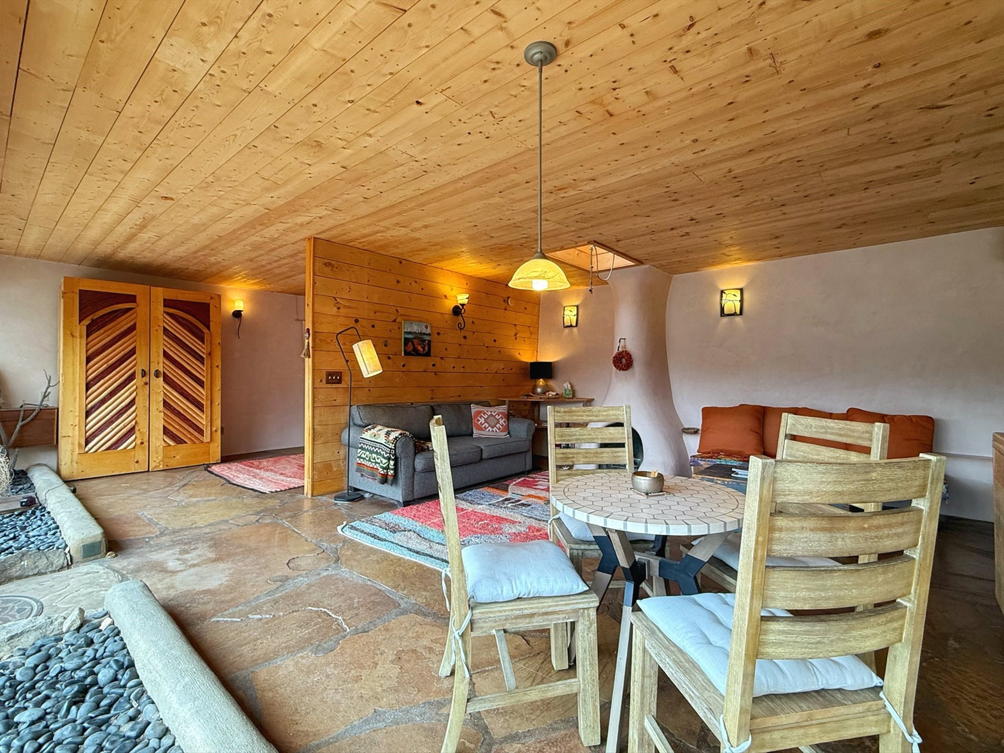 Discover a true masterpiece of sustainable living with this remarkable Earthship, designed and built by the renowned Michael Reynolds. This off-grid oasis embodies innovative eco-design and self-sufficiency, offering a rare opportunity to live in harmony with nature in the breathtaking landscape of Cerrillos, New Mexico. This 2 Bedroom 2 Bath Earthship is Surrounded by expansive views and endless skies, a unique blend of artistry and functionality, utilizing natural and reclaimed materials to create a home that is both energy-efficient and environmentally conscious. If you've ever dreamed of embracing a sustainable lifestyle without compromising comfort, this property is your perfect match. Don't miss the opportunity to own an Earthship!