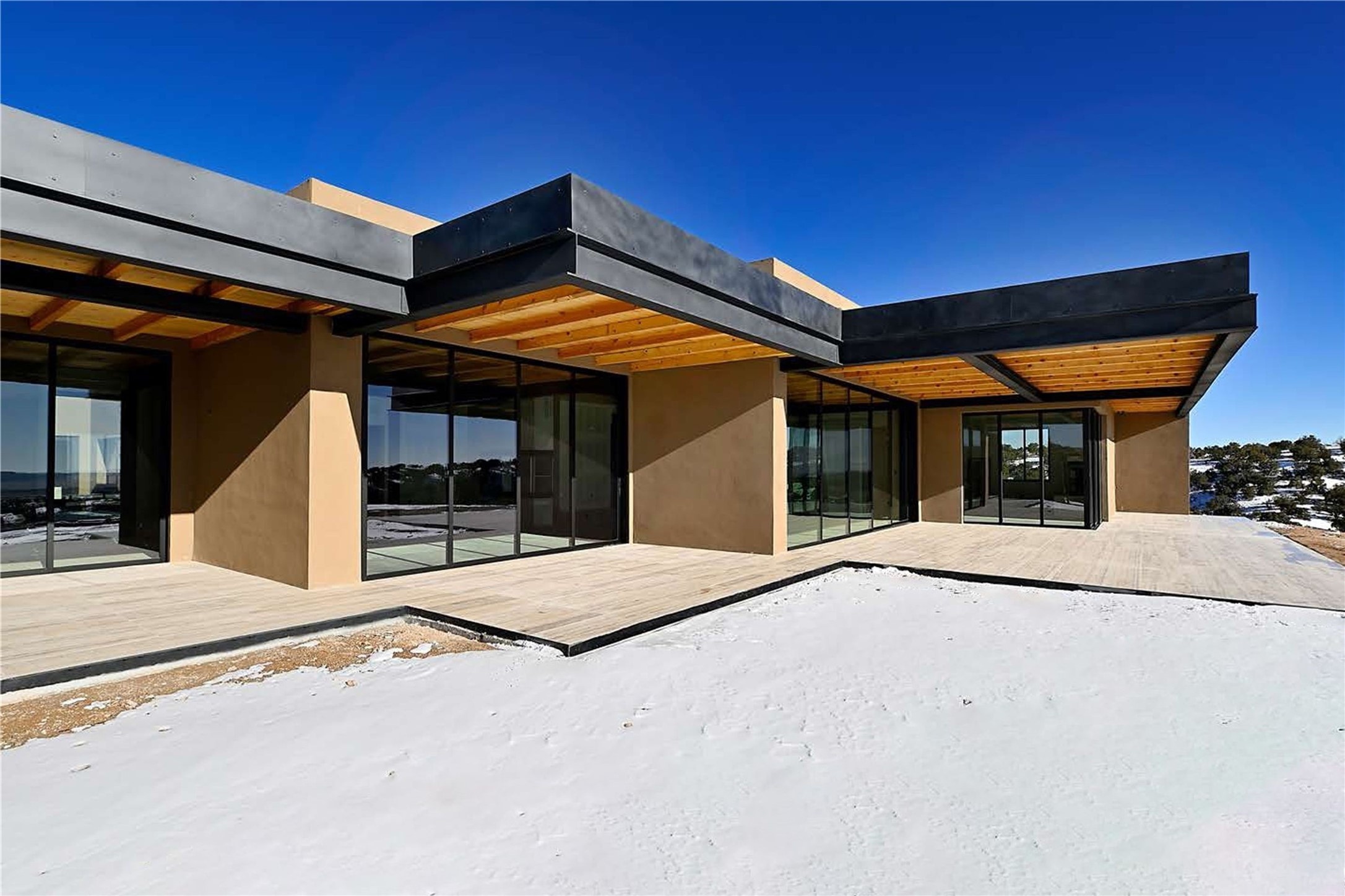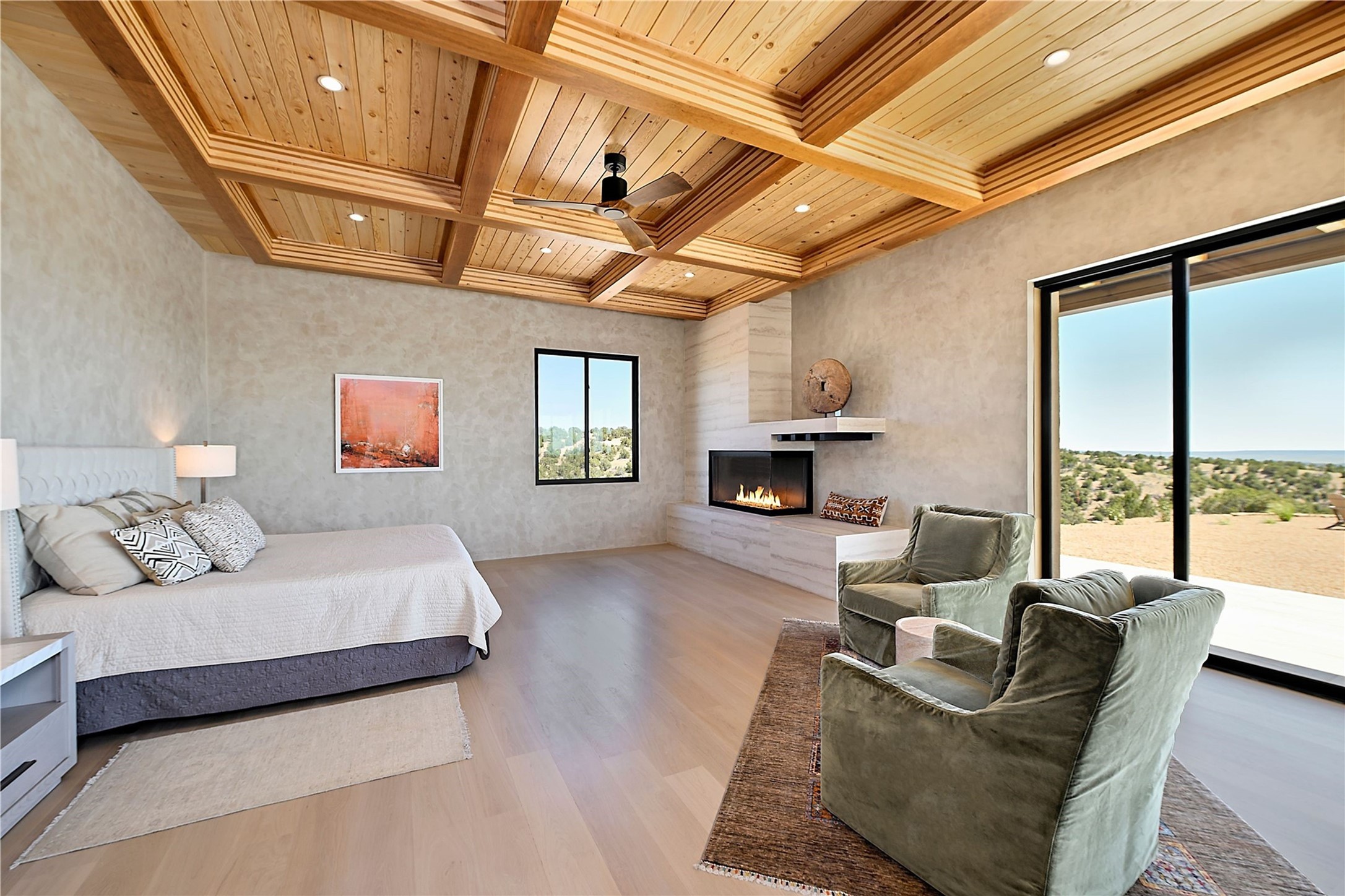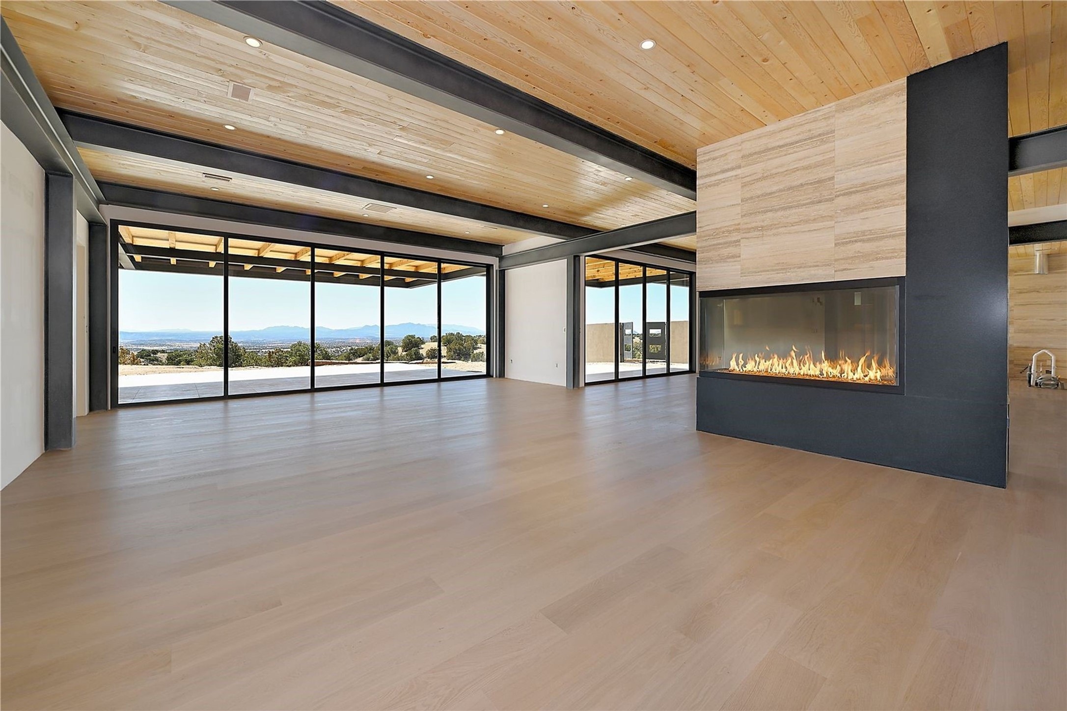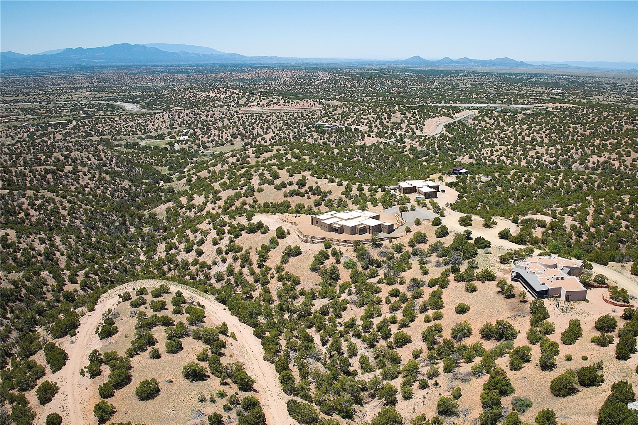 ** 2025 Grand Hacienda Winner!17 Vista Bella will be the #1 Property on the Haciendas 2025 Parade of Homes Tour 8/8-8/10 and 8/15-8/17. Breathtaking views and stellar night skies- this new build is move in ready! Boasting (approx.) 4,400 sq. ft. & nestled on 12.68 acres, this home offers unparalleled views of the Galisteo Basin and mountains. Designed by Mark Schwebel of Big Art Builders, 2024 Parade of Homes for Natural Materials winner, this masterpiece blends cantilevered steel beams, glass, natural wood, and stone to harmonize with its high-desert surroundings. A contemporary design brings the outdoors in, with expansive windows, a stunning outdoor kitchen, and spaces perfect for entertaining. Each element has been meticulously crafted to highlight the surrounding beauty while creating a warm, luxurious environment. The kitchen's stunning centerpiece is crafted from white oak slabs, complemented by Italian stone floors and walls. Counters are custom-milled Brazilian stone, with BlueStar appliances and True refrigeration. Each bathroom is a work of art, clad in exotic stones sourced from Mexico, Turkey, and Italy. Vanities are crafted from exotic hardwoods like West African Padauk and Black Limba, paired with countertops of Persian travertine, Brazilian Taj Mahal, and Namibian granite. The powder room features Italian stone and a unique concrete sink. Refined details include: 7" French white oak floors, Lake Tahoe white fir ceilings, and two showpiece gas fireplaces: a modern shepherd's design in the primary suite and a black granite-clad peninsula in the living room. Take advantage of the unrivaled comfort this home offers with High-efficiency Carrier forced air heating and cooling, radiant heating throughout, and superior insulation with closed-cell spray foam (R60 ceilings, R30 walls). This home is a celebration of luxury, nature, and artistry, a truly one-of-a-kind property that must be experienced.