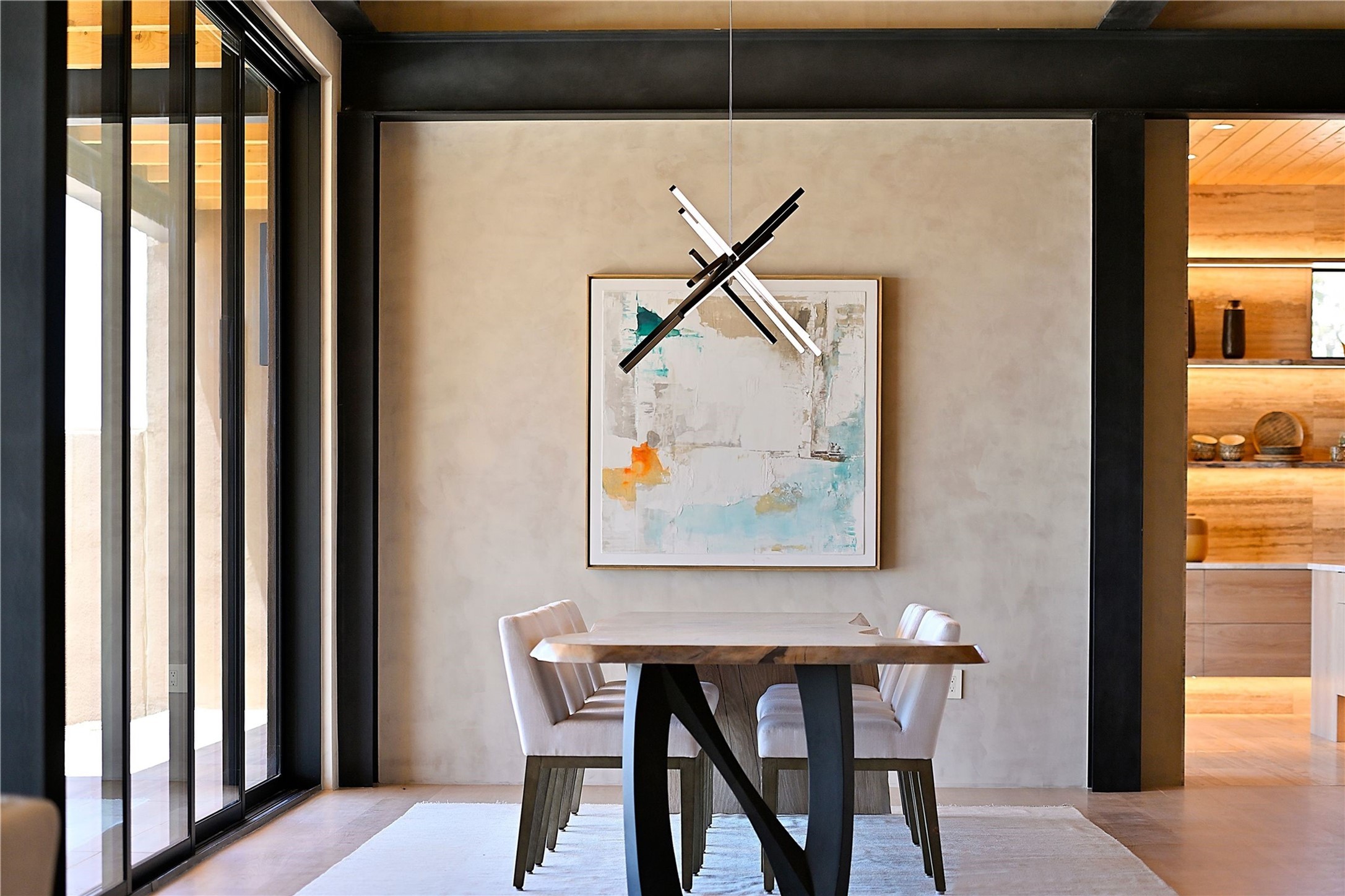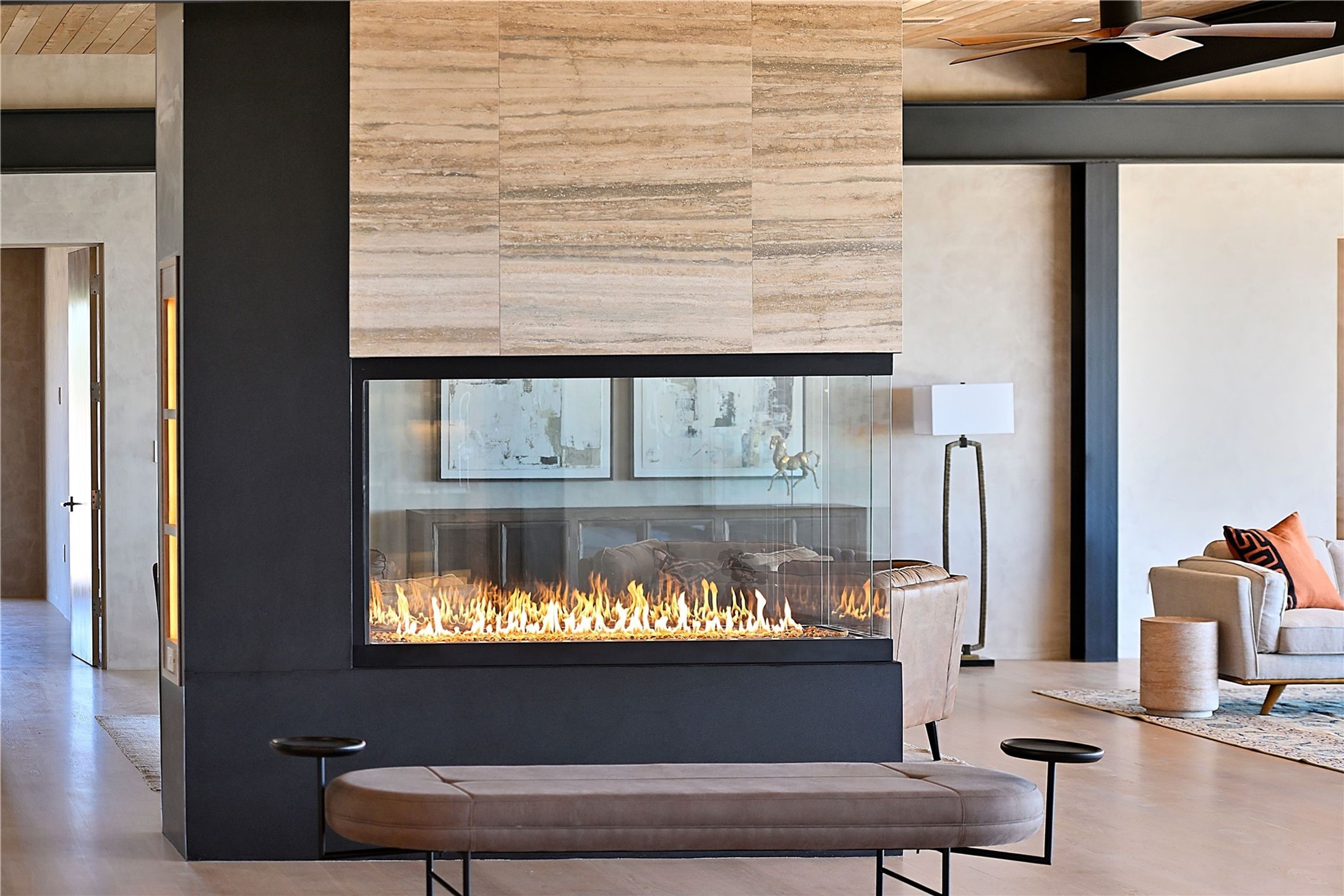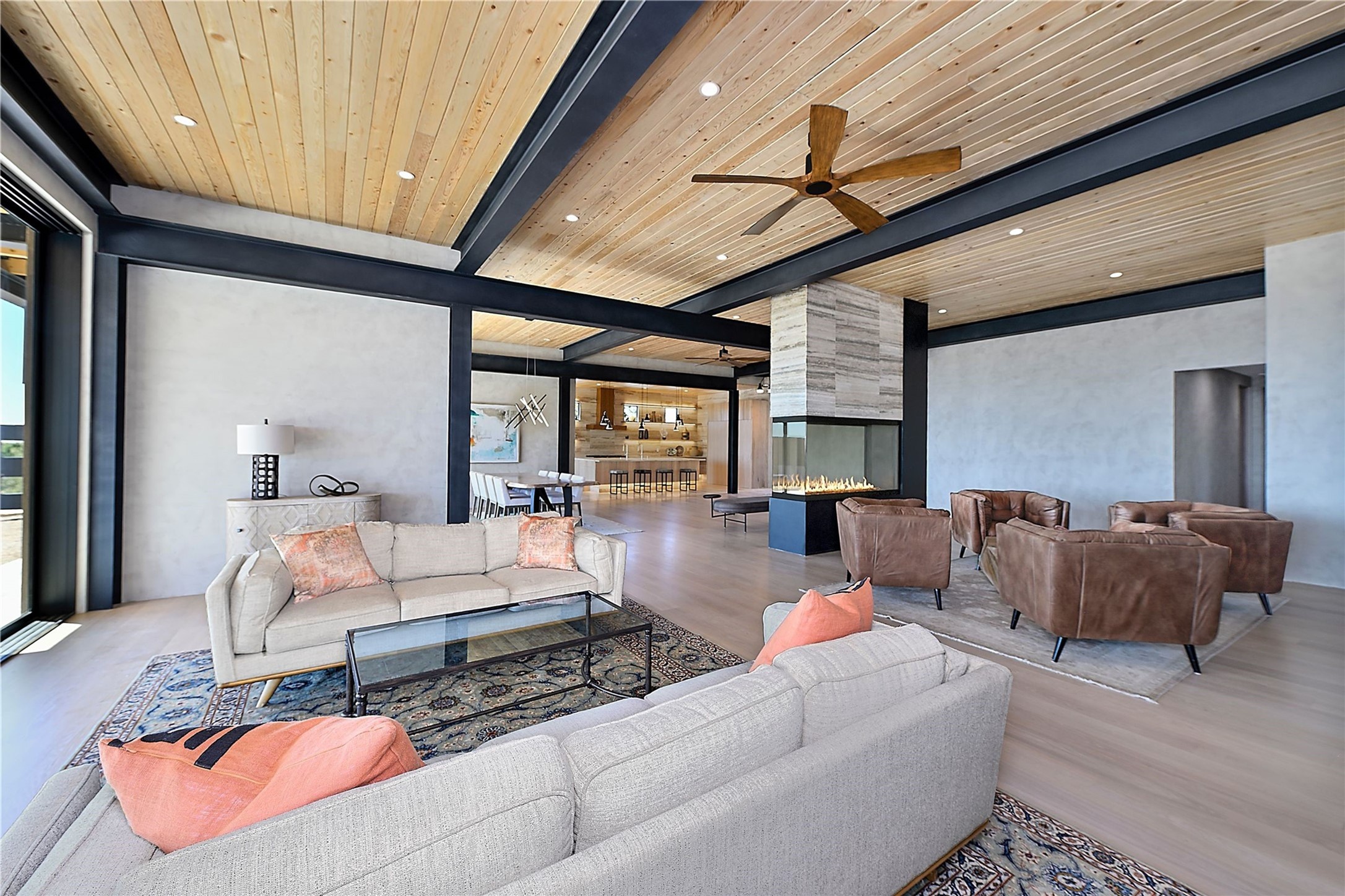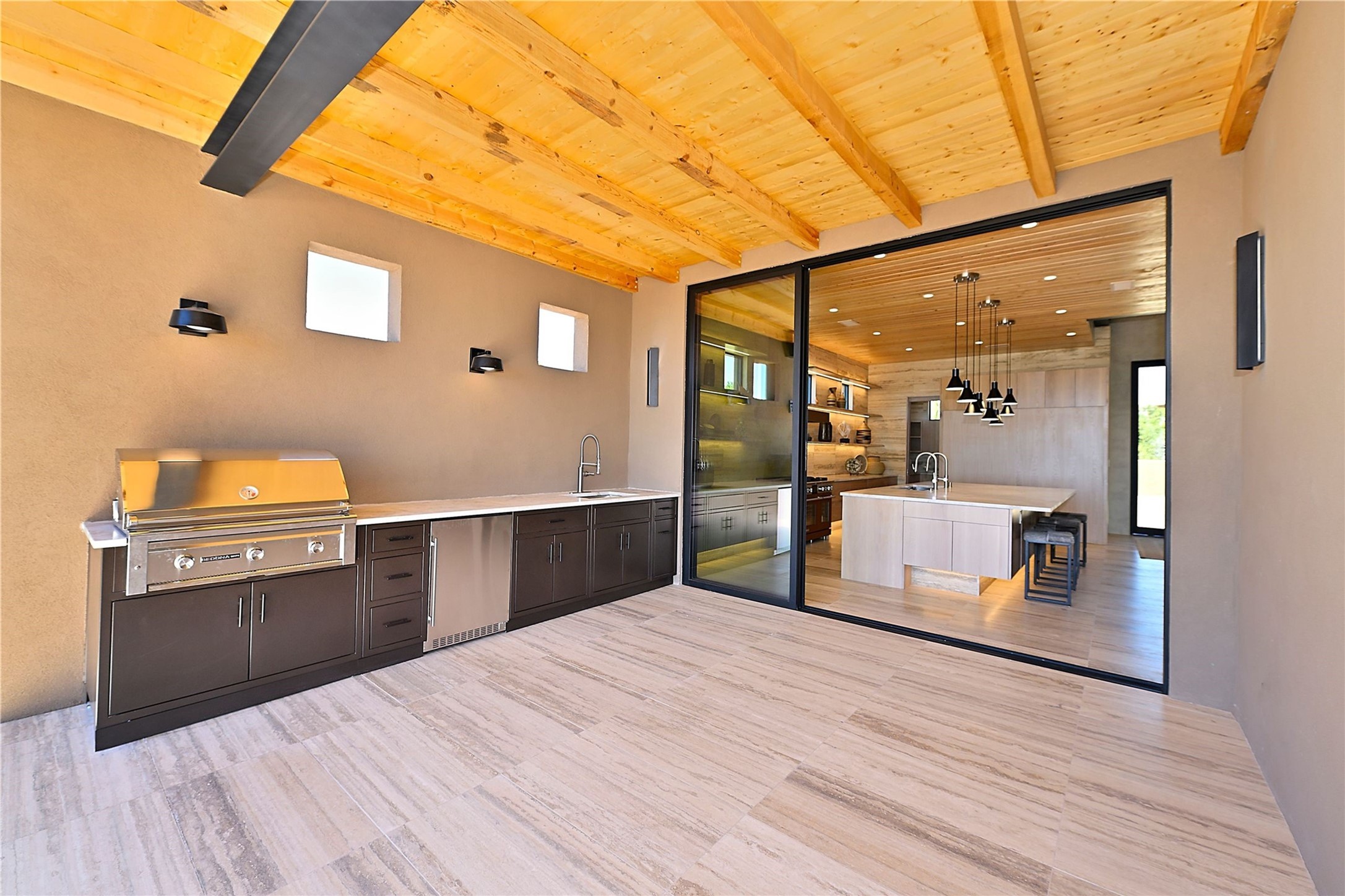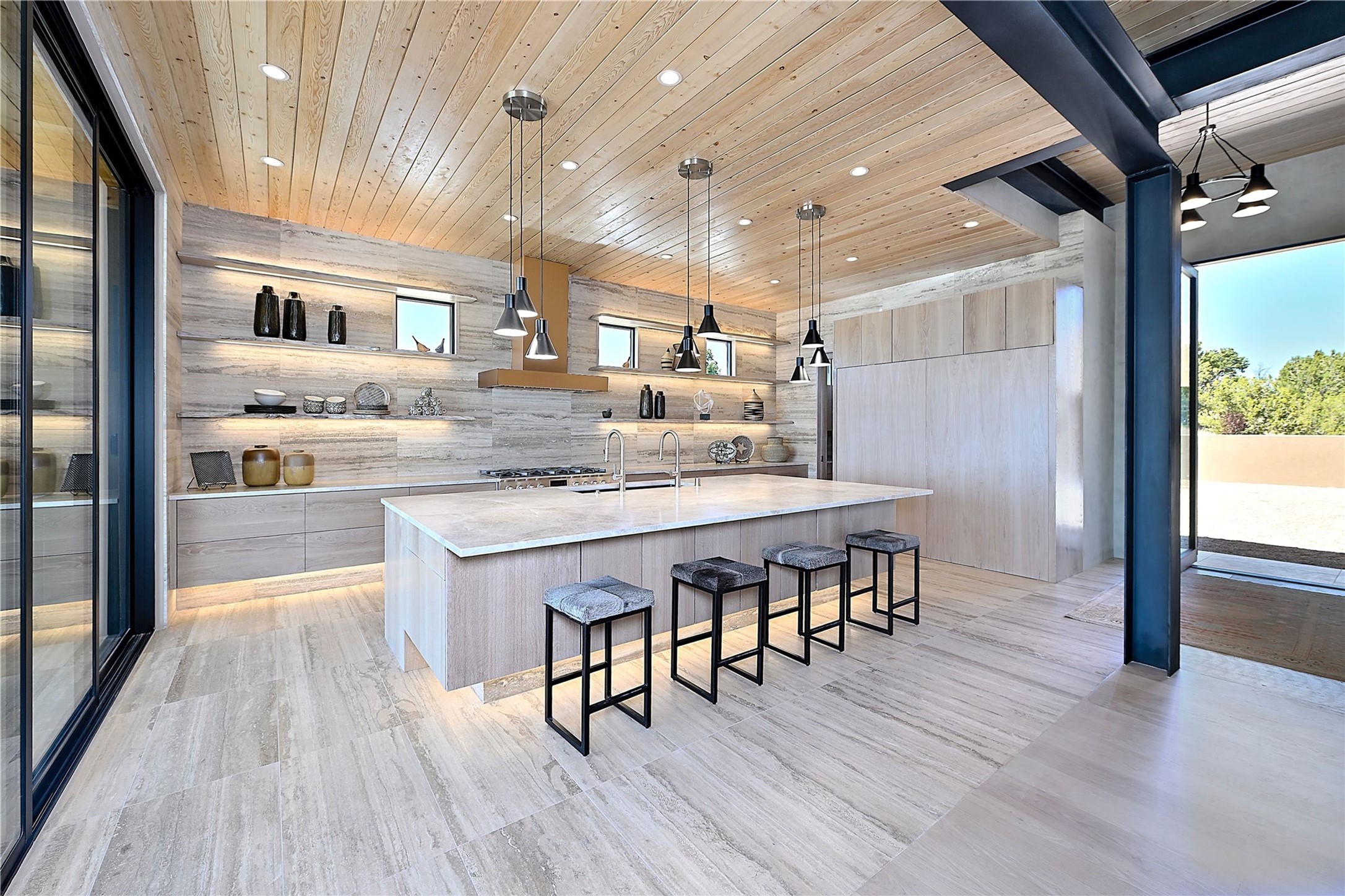 ** 2025 Grand Hacienda Winner!17 Vista Bella will be the #1 Property on the Haciendas 2025 Parade of Homes Tour 8/8-8/10 and 8/15-8/17. Breathtaking views and stellar night skies- this new build is move in ready! Boasting (approx.) 4,400 sq. ft. & nestled on 12.68 acres, this home offers unparalleled views of the Galisteo Basin and mountains. Designed by Mark Schwebel of Big Art Builders, 2024 Parade of Homes for Natural Materials winner, this masterpiece blends cantilevered steel beams, glass, natural wood, and stone to harmonize with its high-desert surroundings. A contemporary design brings the outdoors in, with expansive windows, a stunning outdoor kitchen, and spaces perfect for entertaining. Each element has been meticulously crafted to highlight the surrounding beauty while creating a warm, luxurious environment. The kitchen's stunning centerpiece is crafted from white oak slabs, complemented by Italian stone floors and walls. Counters are custom-milled Brazilian stone, with BlueStar appliances and True refrigeration. Each bathroom is a work of art, clad in exotic stones sourced from Mexico, Turkey, and Italy. Vanities are crafted from exotic hardwoods like West African Padauk and Black Limba, paired with countertops of Persian travertine, Brazilian Taj Mahal, and Namibian granite. The powder room features Italian stone and a unique concrete sink. Refined details include: 7" French white oak floors, Lake Tahoe white fir ceilings, and two showpiece gas fireplaces: a modern shepherd's design in the primary suite and a black granite-clad peninsula in the living room. Take advantage of the unrivaled comfort this home offers with High-efficiency Carrier forced air heating and cooling, radiant heating throughout, and superior insulation with closed-cell spray foam (R60 ceilings, R30 walls). This home is a celebration of luxury, nature, and artistry, a truly one-of-a-kind property that must be experienced.