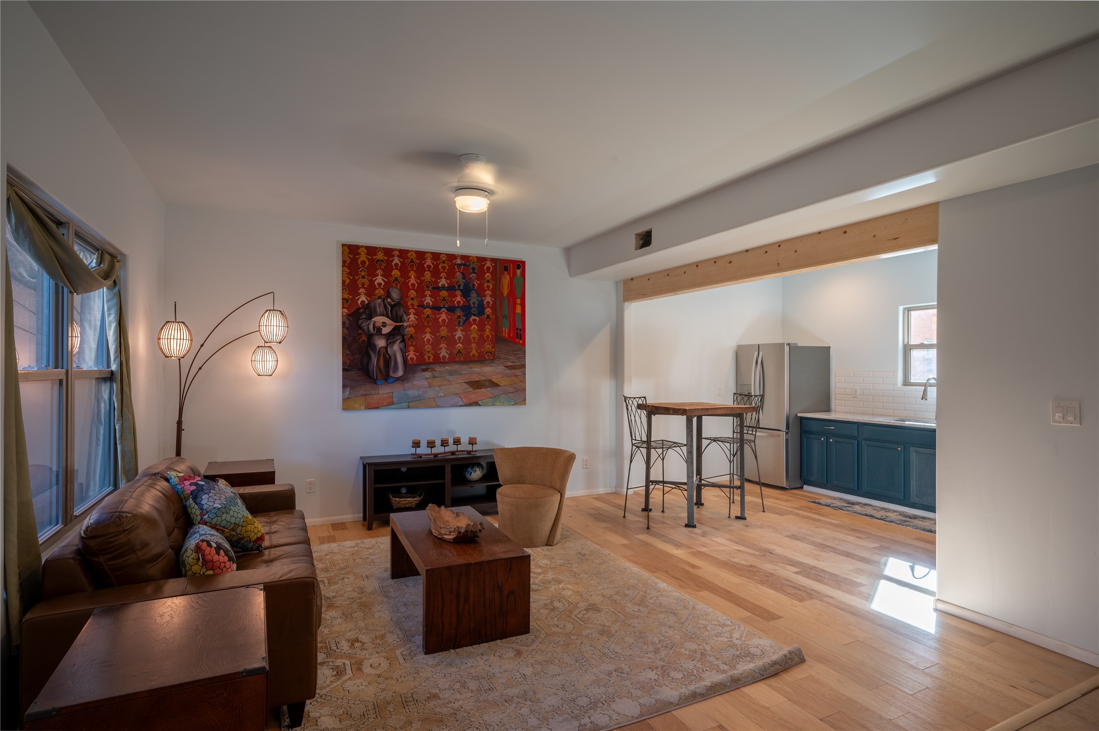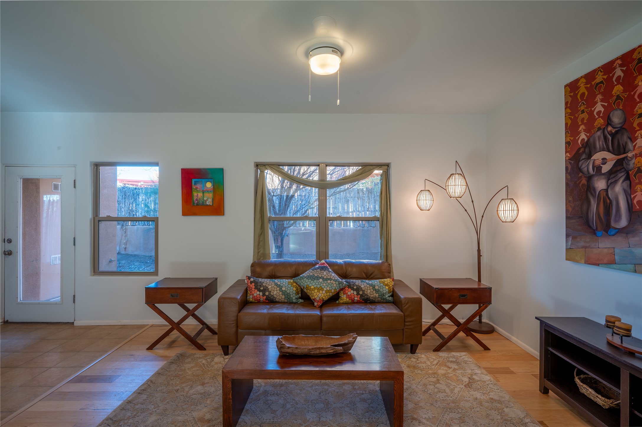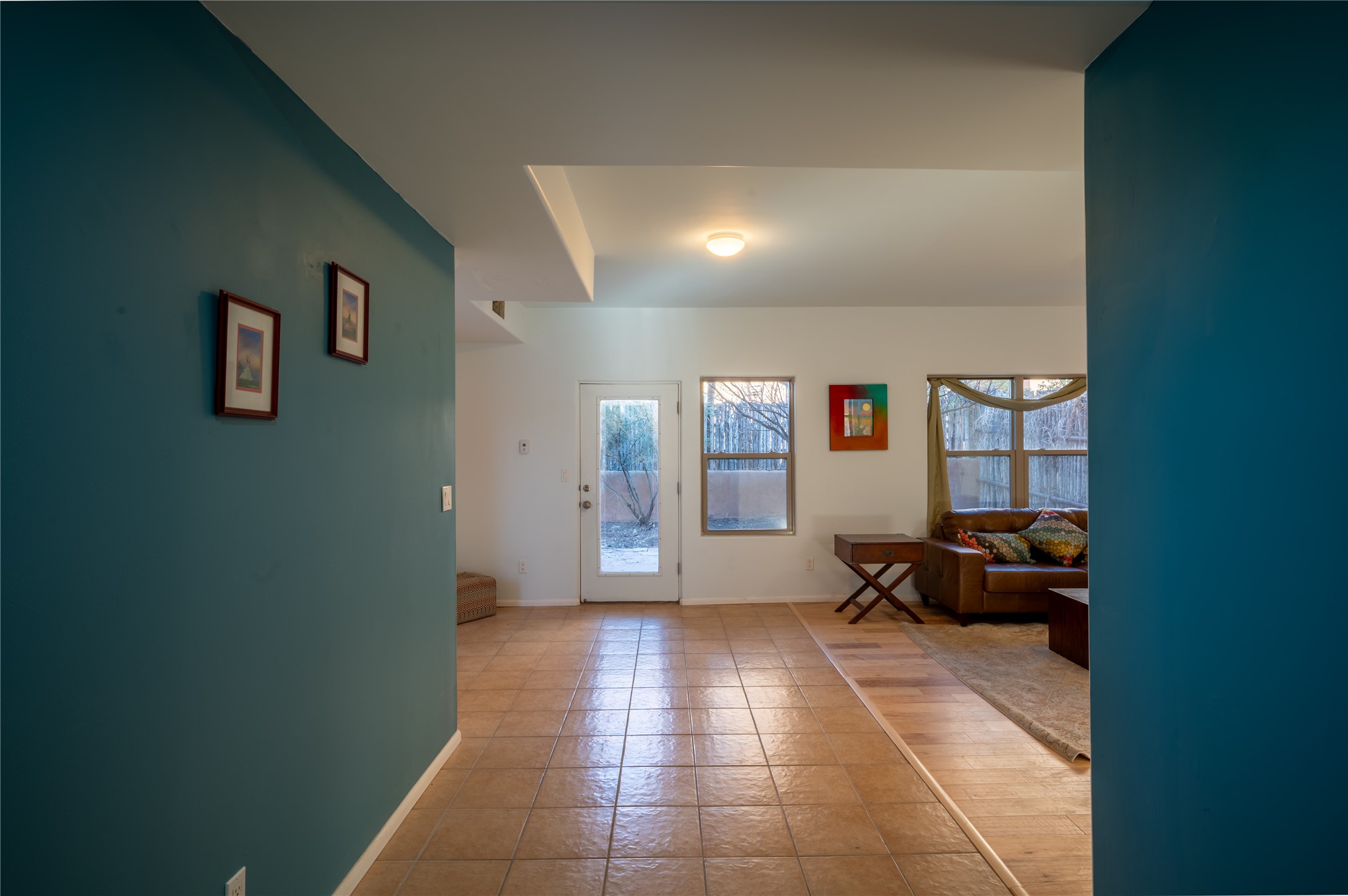 Live 8 years longer. Laugh out loud every day, eat nuts and live in a house with stairs. There is one bedroom and bath downstairs and 2 bedrooms and bath up stairs. This fully remodeled home was finished with a wood floor and tile, remodeled kitchen and baths and new appliances. The floor plan is a light filled open concept. It's very private with access to 2 lovely court yards. 2 covered parking spaces are included. Shopping and dining are not far, a great library is just a block away, and easy access to highway 599 provides for an easy commute to the airport, Los Alamos, Albuquerque and downtown Santa Fe. This price is a bargain. Come see today.