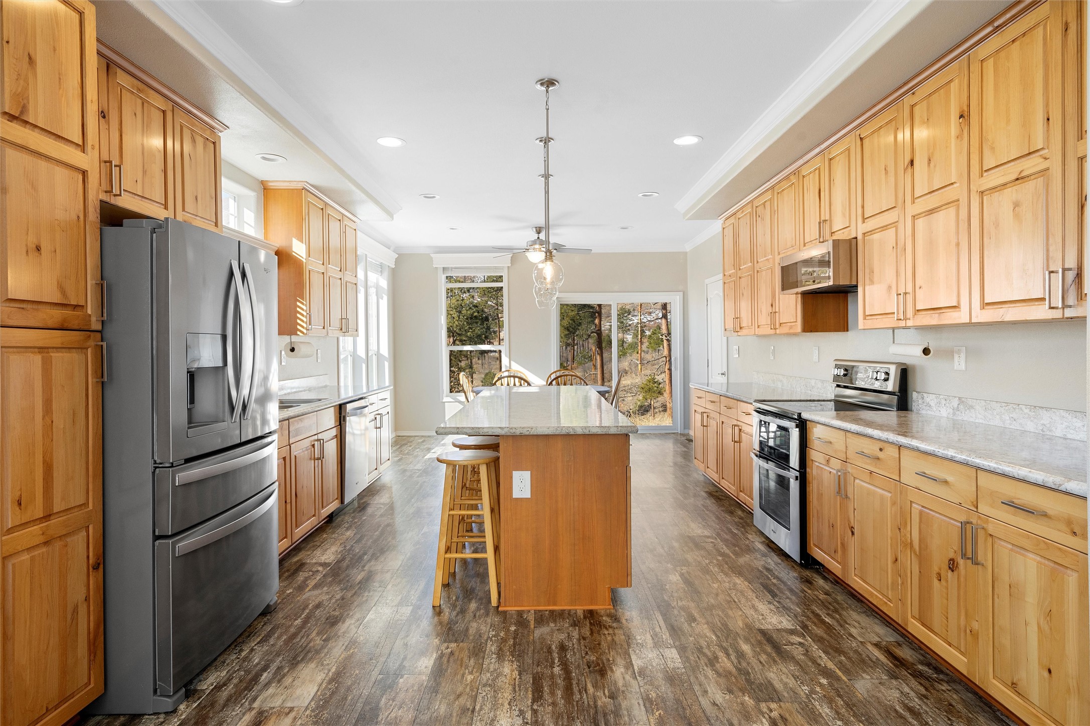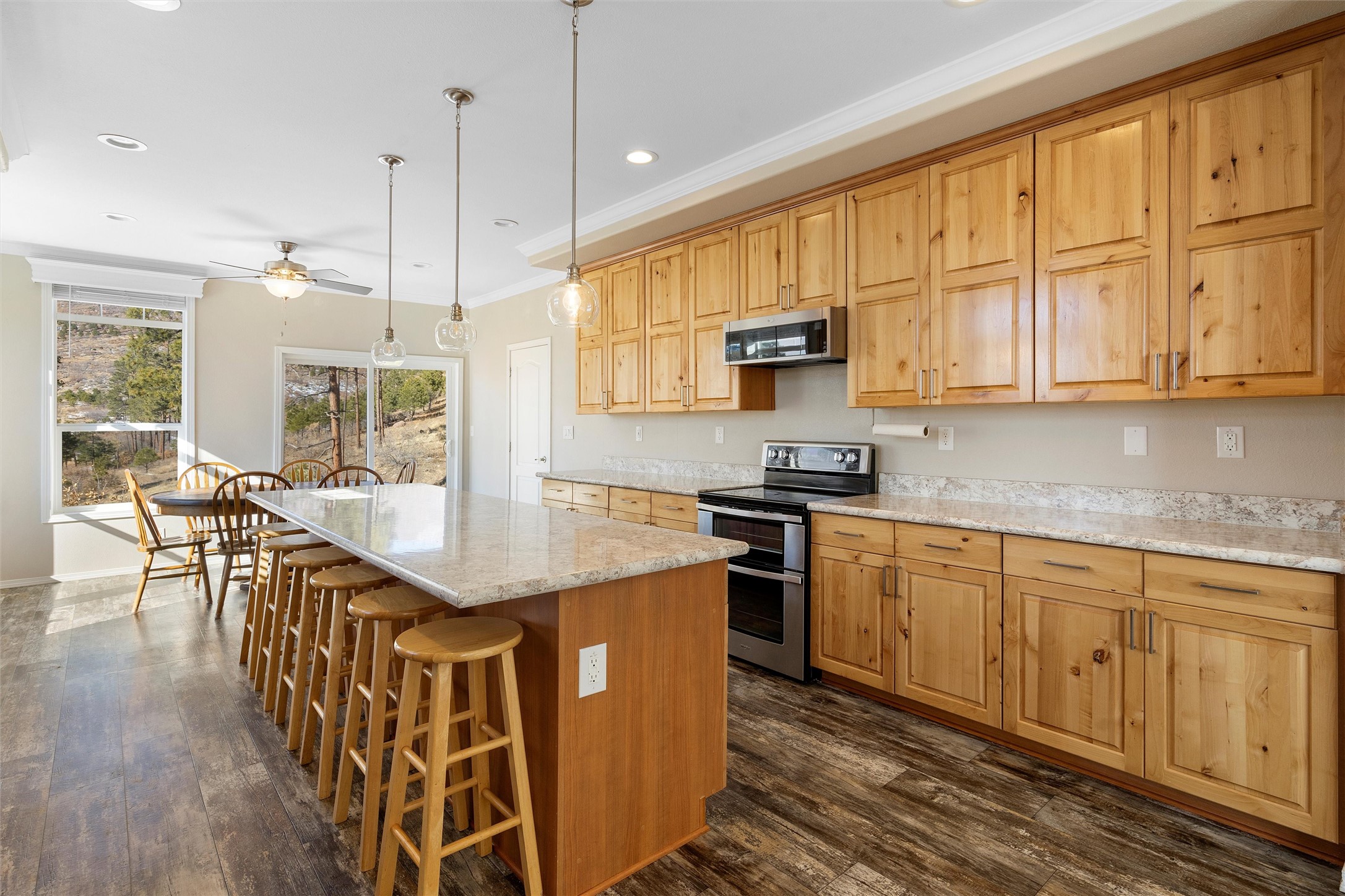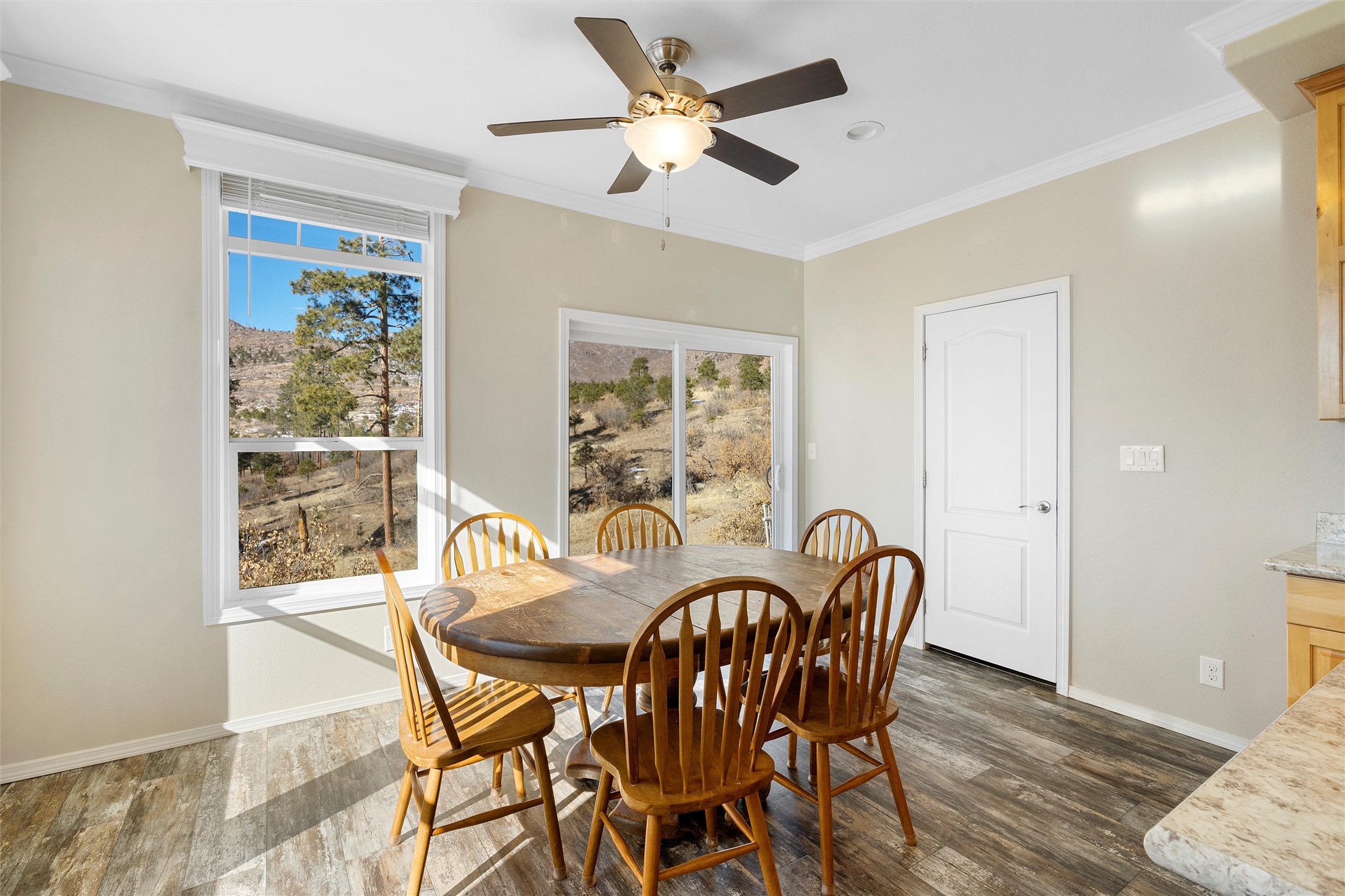 Perched on a picturesque hilltop, this expansive 3,494-square-foot residence at 4296 Arizona Ave offers a unique blend of spacious living, breathtaking views, and sustainable design. The home's thoughtful layout maximizes natural light and passive solar principles, ensuring warmth and brightness throughout the year. Large windows frame stunning vistas of the surrounding landscape, creating a seamless transition between indoor and outdoor spaces. Strategically located directly next to Mitchell Trail, this property provides easy access to nature while maintaining proximity to local amenities. With four bedrooms, five-and-a-half baths, a bonus room ideal for a home office, and a versatile 15x15 shop that could be converted into an extra bedroom or hobby space, this hilltop estate is perfect for those seeking a spacious, sustainable, and beautifully situated home.