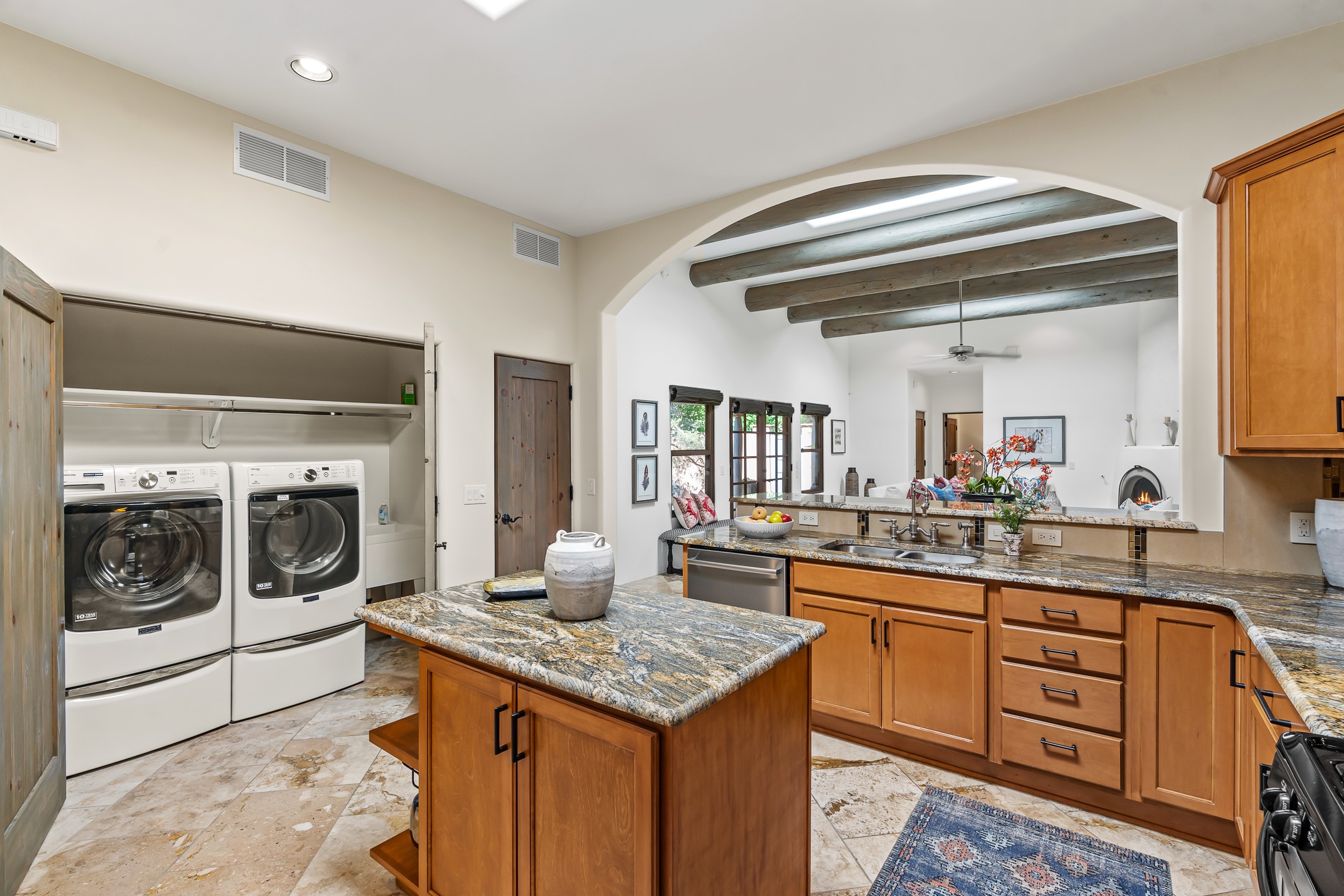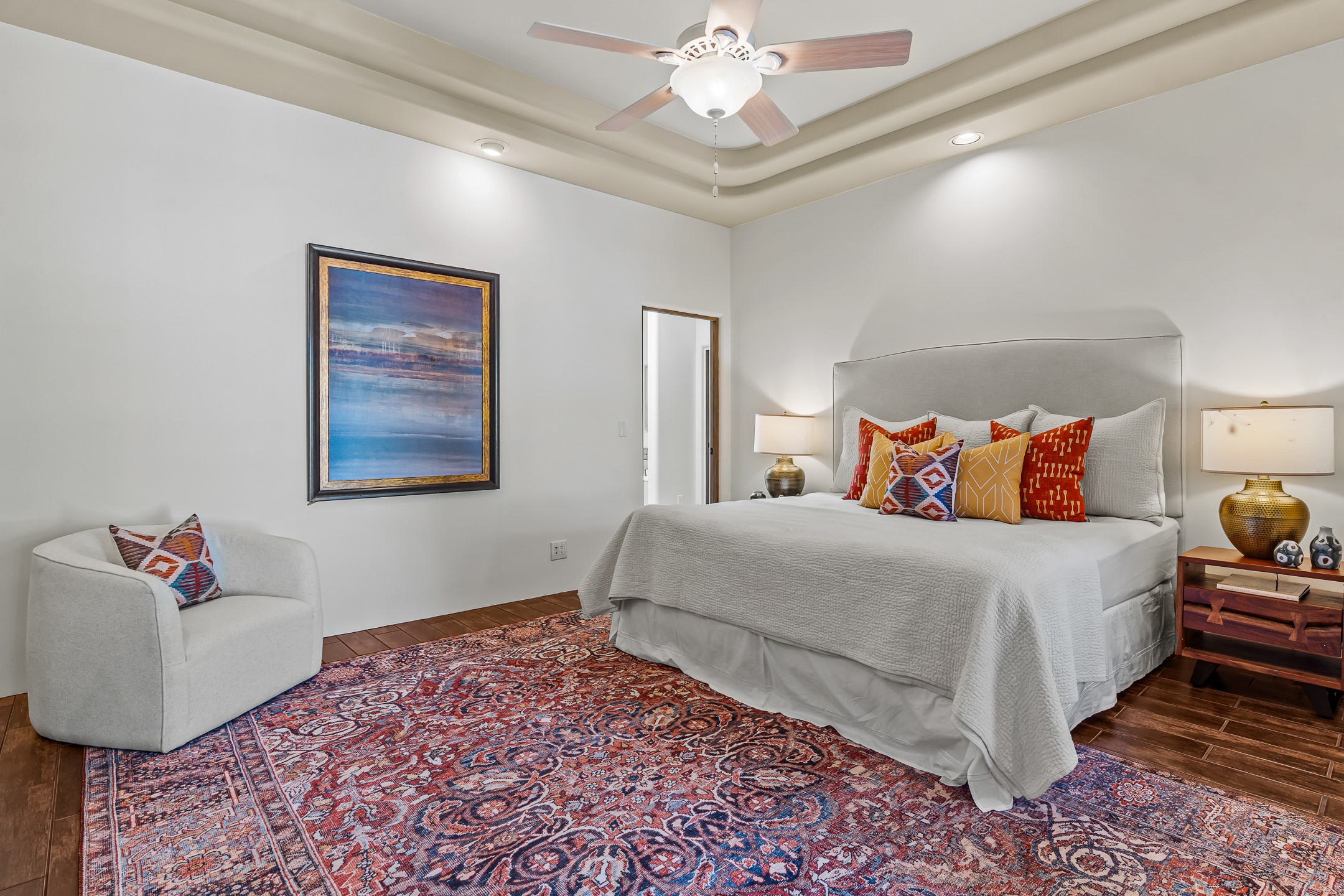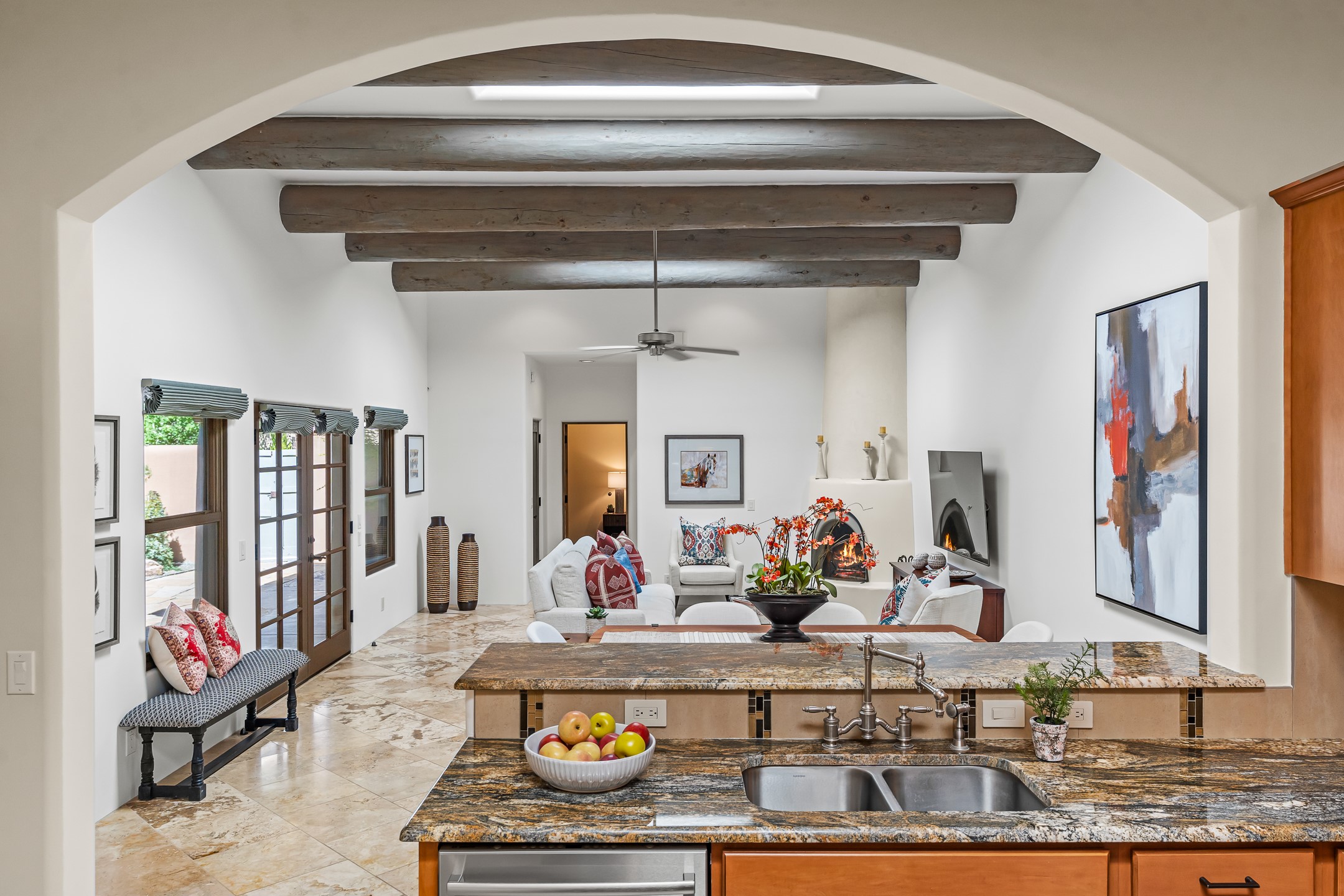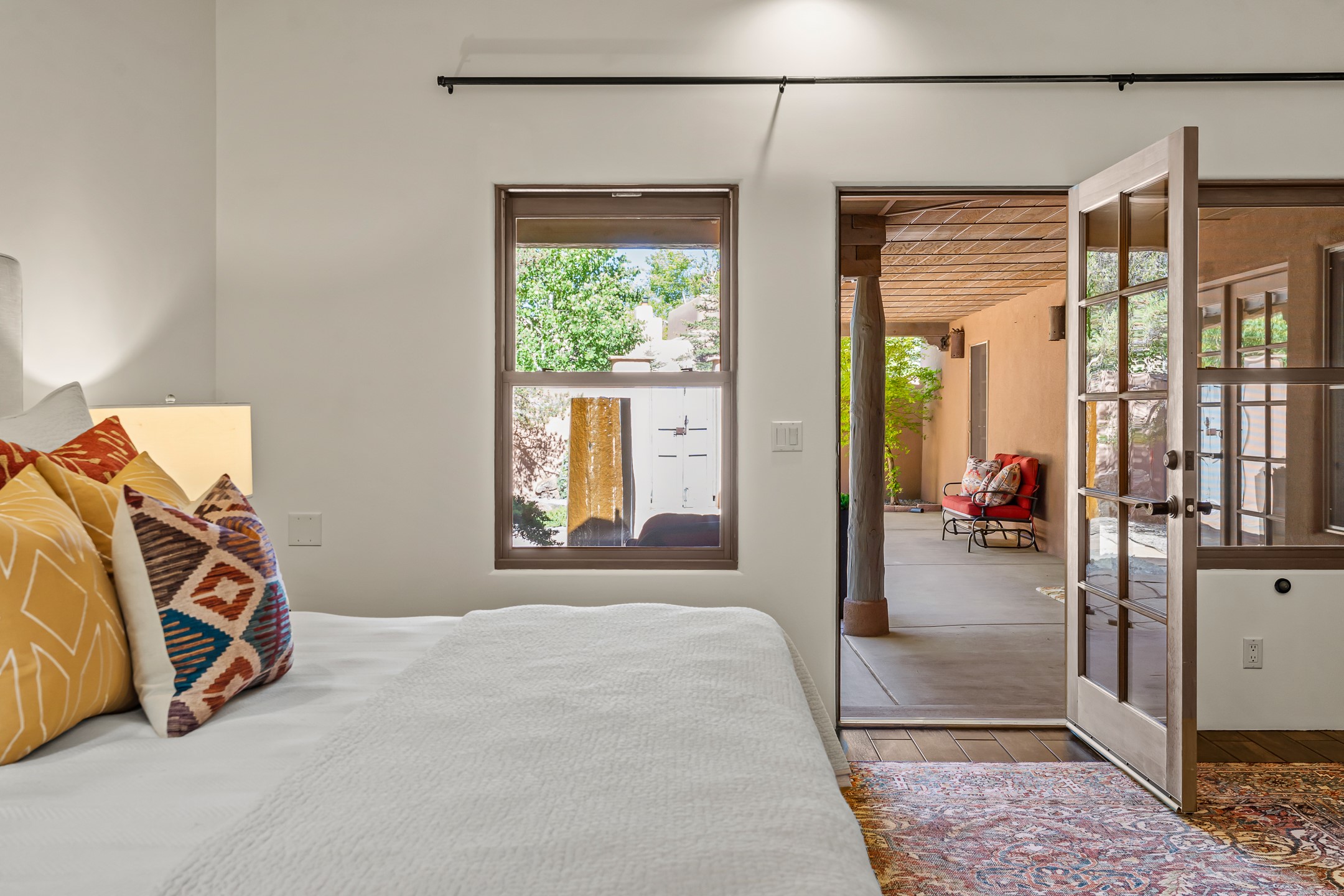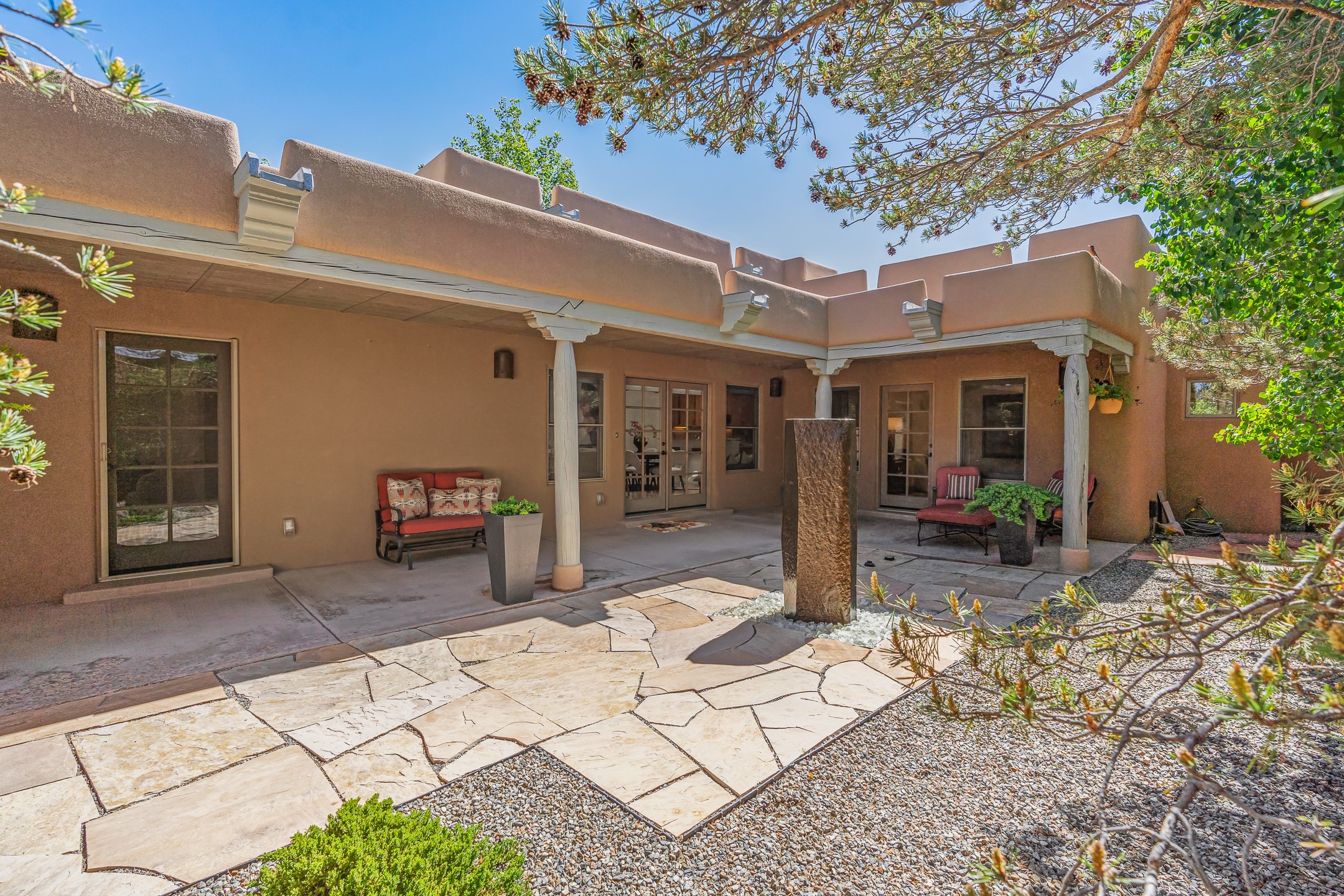 Experience Effortless Elegance in Aldea de Santa FeWelcome to your enchanting Santa Fe retreat -- a refined lock-and-leave courtyard residence crafted by Casas De Vistas. This 2-bedroom, 2-bath home effortlessly blends timeless Southwestern charm with modern comfort, offering a serene lifestyle all on one level and just minutes from the heart of Santa Fe. Step through private gates into a sun-drenched courtyard, where covered portals invite morning coffee, sunset cocktails, and peaceful moments of reflection. Inside, warm French doors open to a living space that radiates character -- soaring beamed ceilings, a cozy kiva fireplace, and cool travertine stone floors set the stage for relaxed luxury. The chef's kitchen is both functional and beautiful, with granite countertops, artful tile backsplashes, and sleek stainless steel appliances -- a perfect space to create and entertain. Both bedrooms are private sanctuaries with elegant tile floors, while the primary suite offers a tray ceiling and French doors that open directly to your secluded courtyard oasis. A spacious two-car garage adds practicality, and a fenced backyard provides the perfect space for your four-legged companions to roam safely. Whether you're seeking a full-time home or a seasonal escape, this Santa Fe gem offers low-maintenance luxury and authentic style in one of the region's most desirable communities. Here you will find 13 miles of walking trails, Tennis, pickle ball and Basket ball court, many parks throughout, including one with a playground, acres of open space with views and a coffee shop on the plaza. On site HOA Management. Come explore the active lifestyle this new urbanist community has to offer.