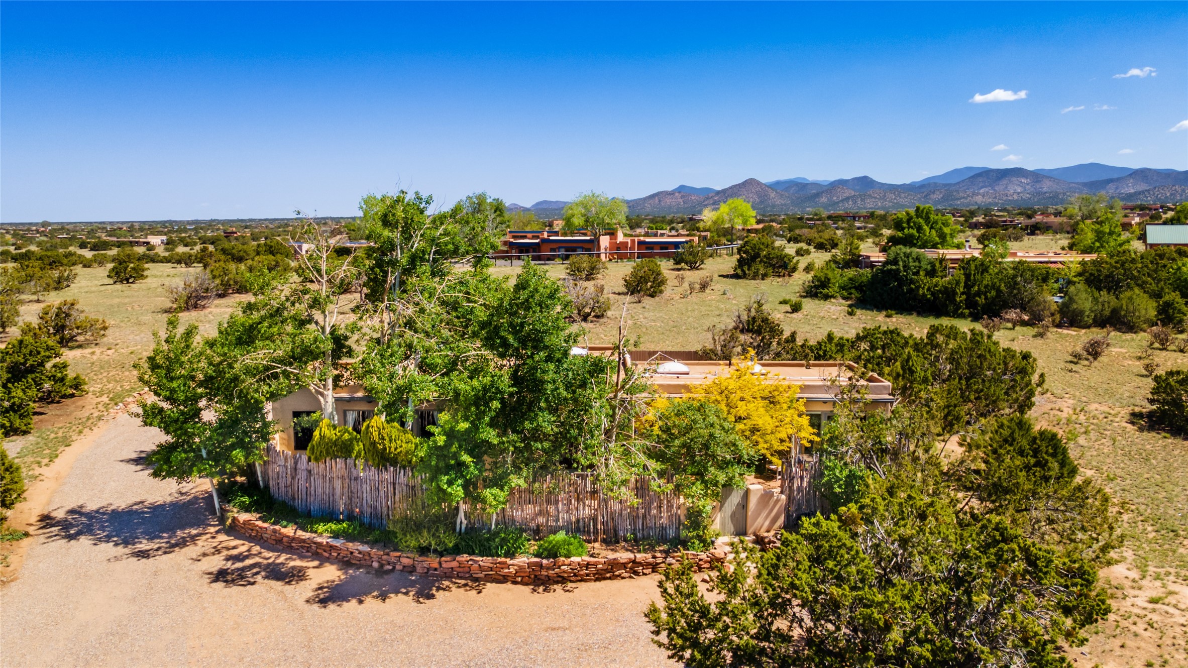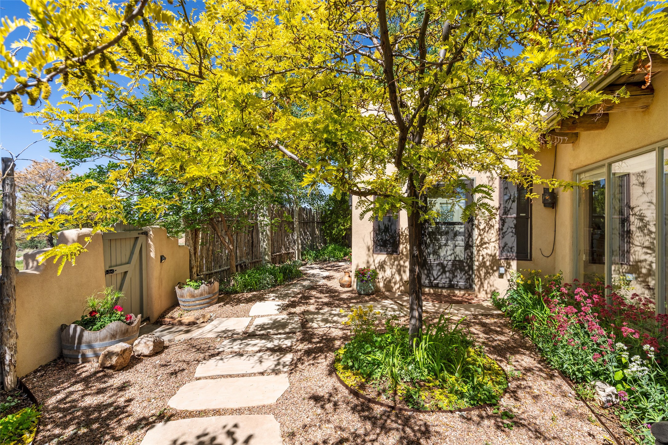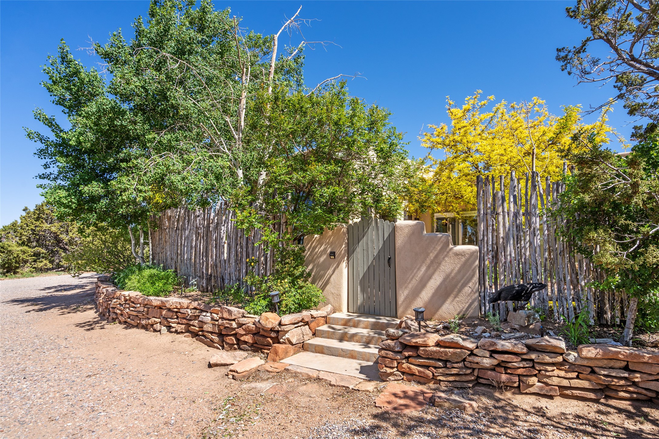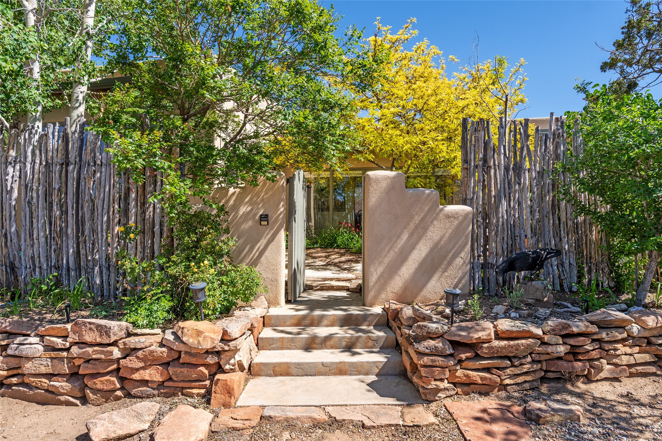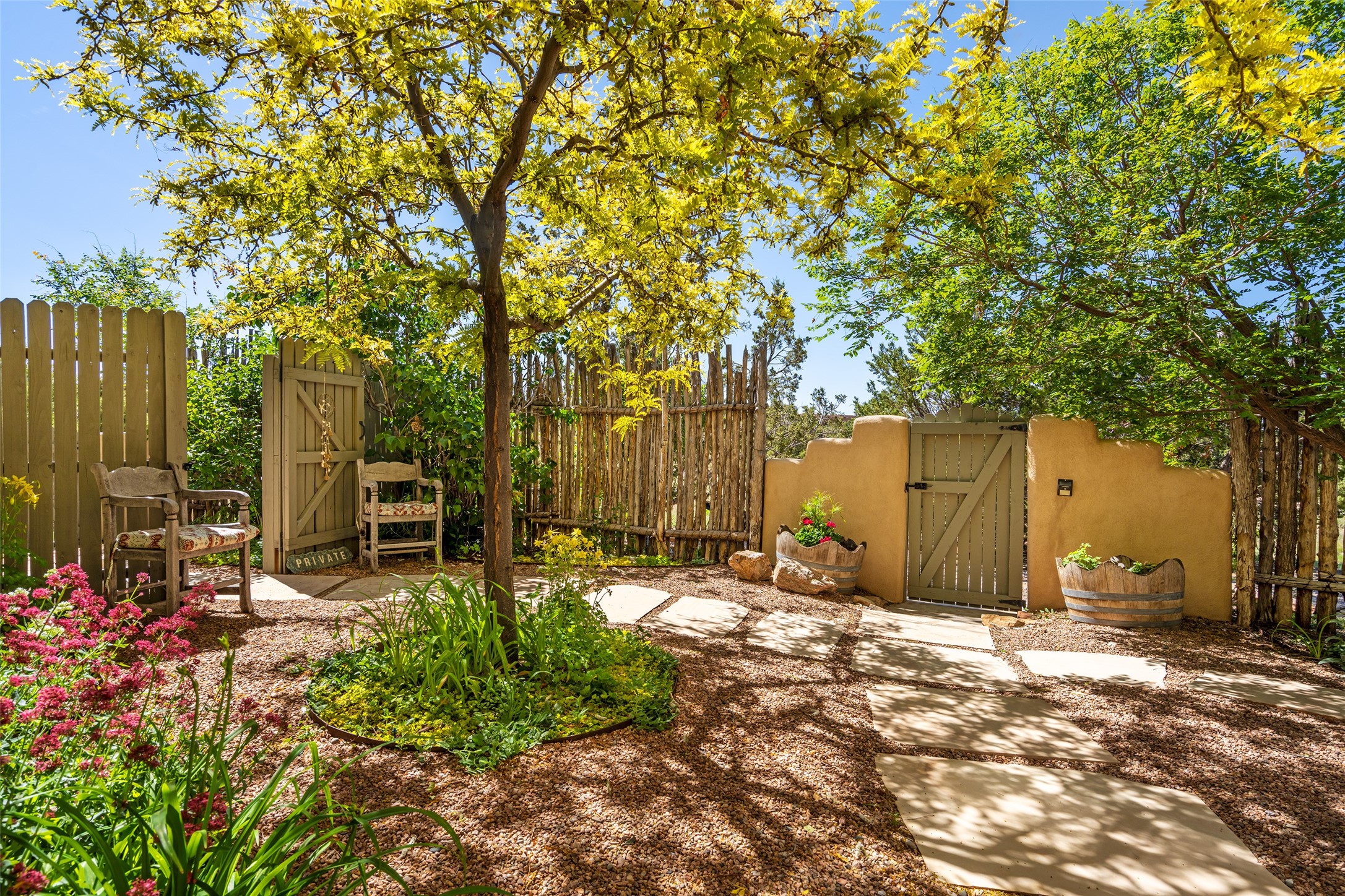 Discover the beauty and serenity of this stunningly landscaped Santa Fe retreat at 22 Esquila Rd. Boasting 3 bedrooms and 2 bathrooms, this thoughtfully designed and updated home offers a perfect blend of Southwestern charm and modern comfort.The primary suite is a true sanctuary, featuring a cozy corner kiva fireplace, a spacious walk-in closet, and bathroom with jetted tub--ideal for relaxation after a busy day. The open kitchen with stainless steel appliances is directly connected to the living area which is airy and inviting; soaring ceilings and vibrant Vigas add authentic southwestern character. Large windows flood the space with natural light and frame breathtaking views of the gorgeously landscaped patio courtyard, creating an idyllic setting for outdoor entertaining or quiet retreat. The lovely guest room is a second primary with adjoining bathroom which opens into the courtyard.Step outside to your private oasis where meticulously curated gardens on a timed sprinkler system create a peaceful haven with vibrant coloring plants. The landscaping was designed for maximum color and minimum maintenance. Walk out onto inviting patios with plentiful shade provided by mature Aspens in the warm Summer months. Whether enjoying a morning coffee or hosting friends beneath the starry sky, this property seamlessly combines indoor comfort with outdoor paradise.Don't miss the opportunity to make this beautifully landscaped Santa Fe home your own!