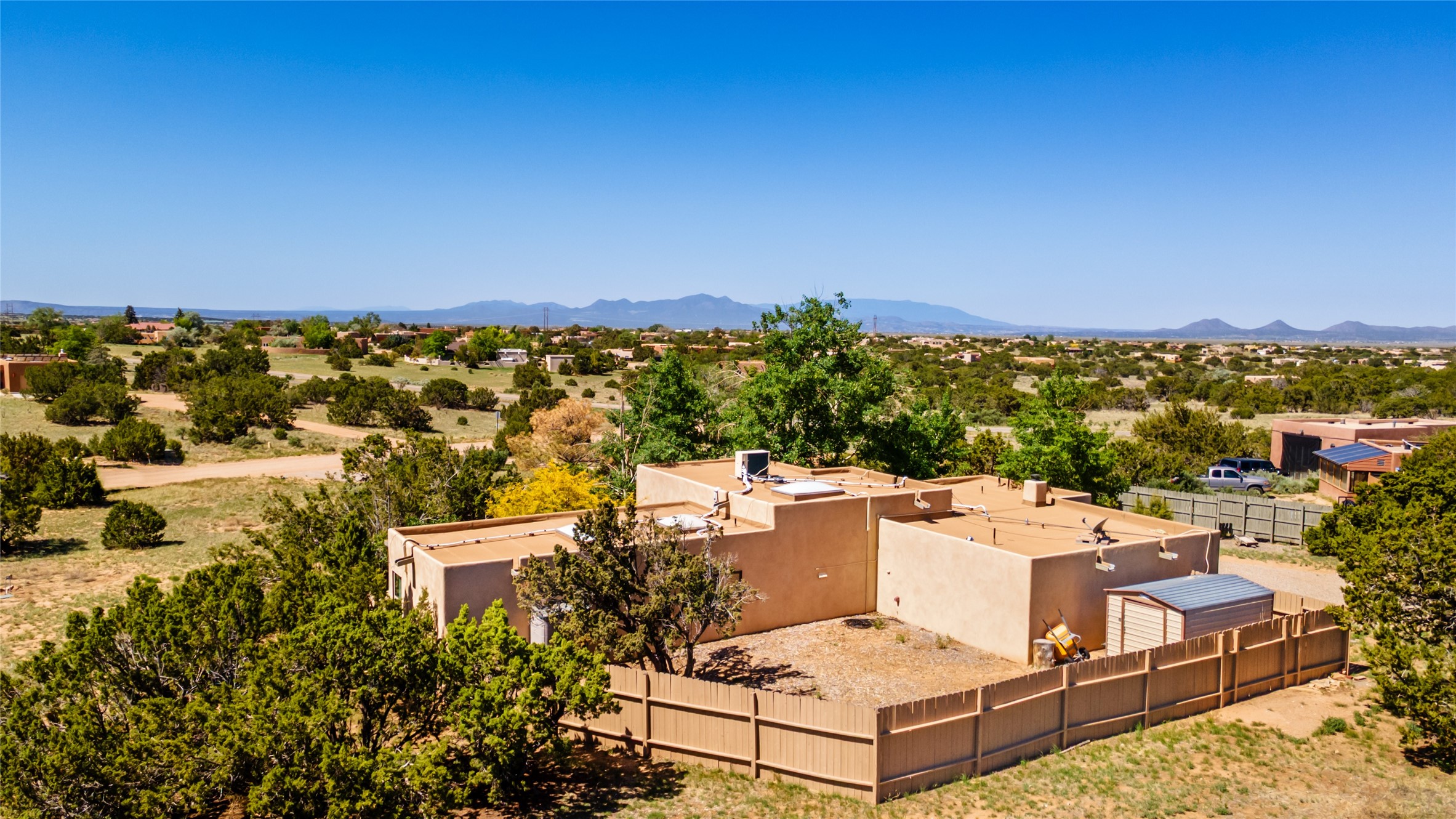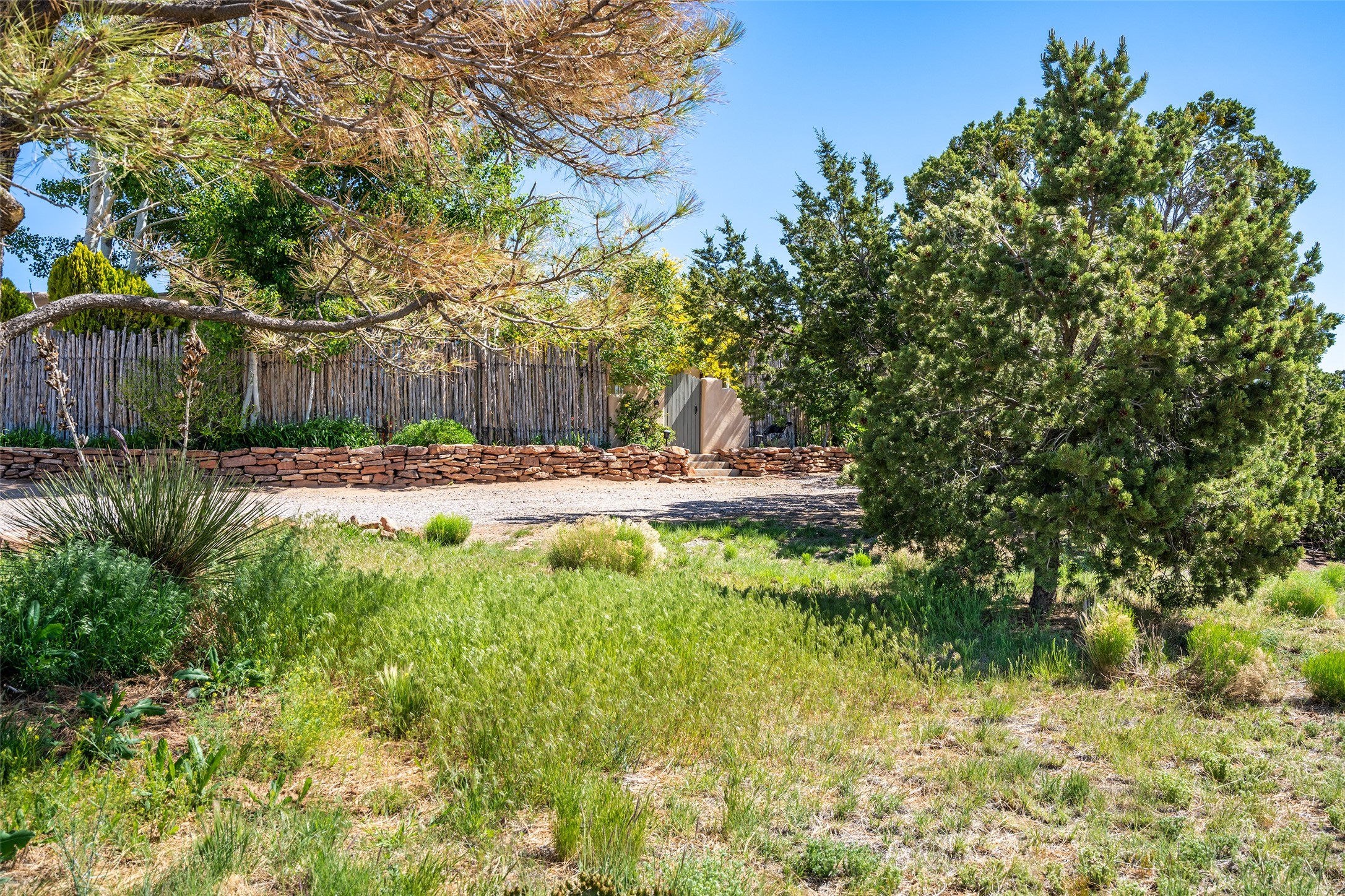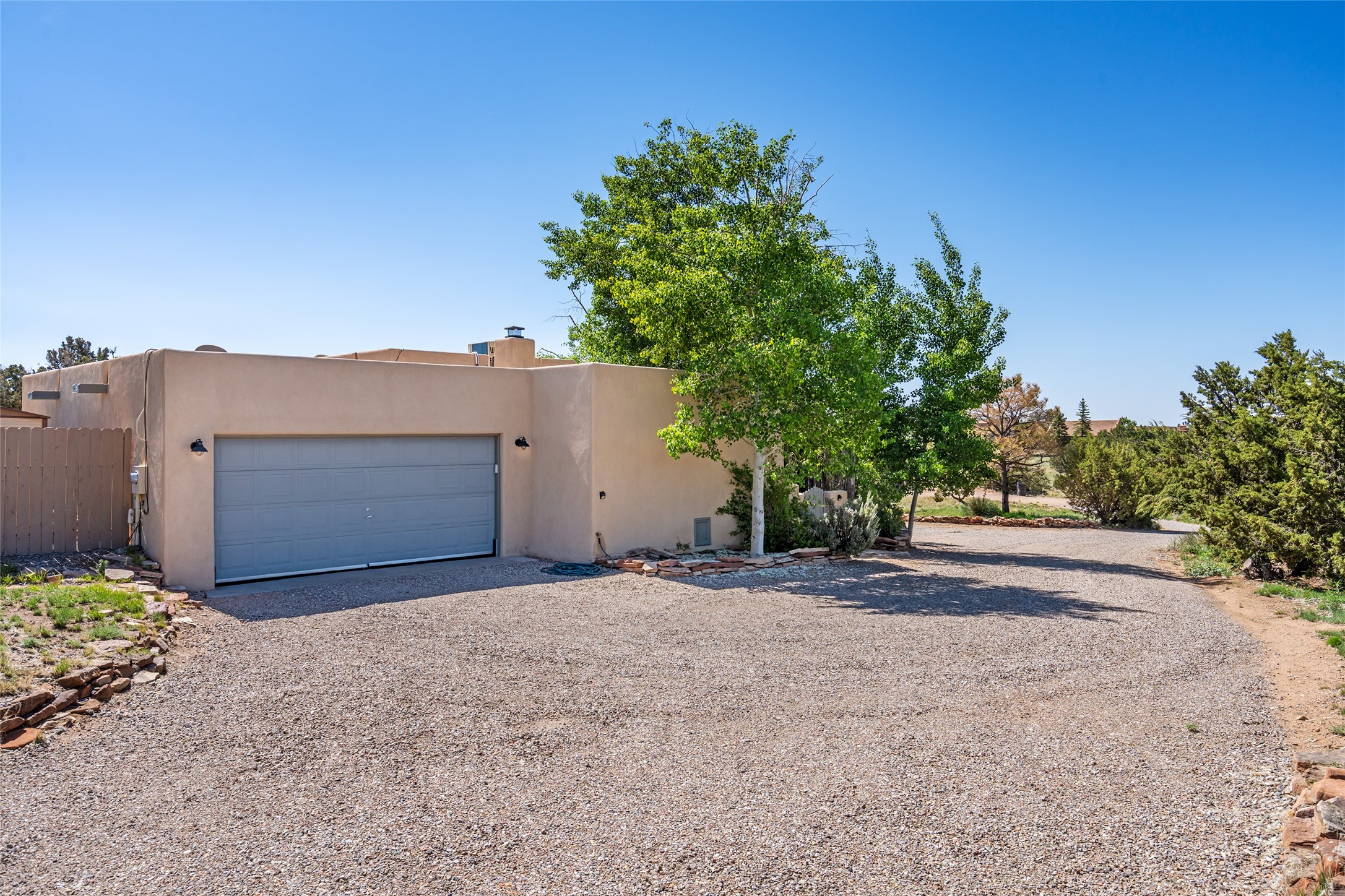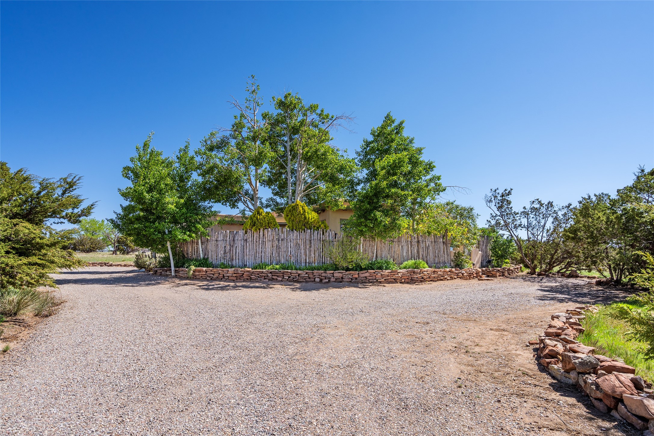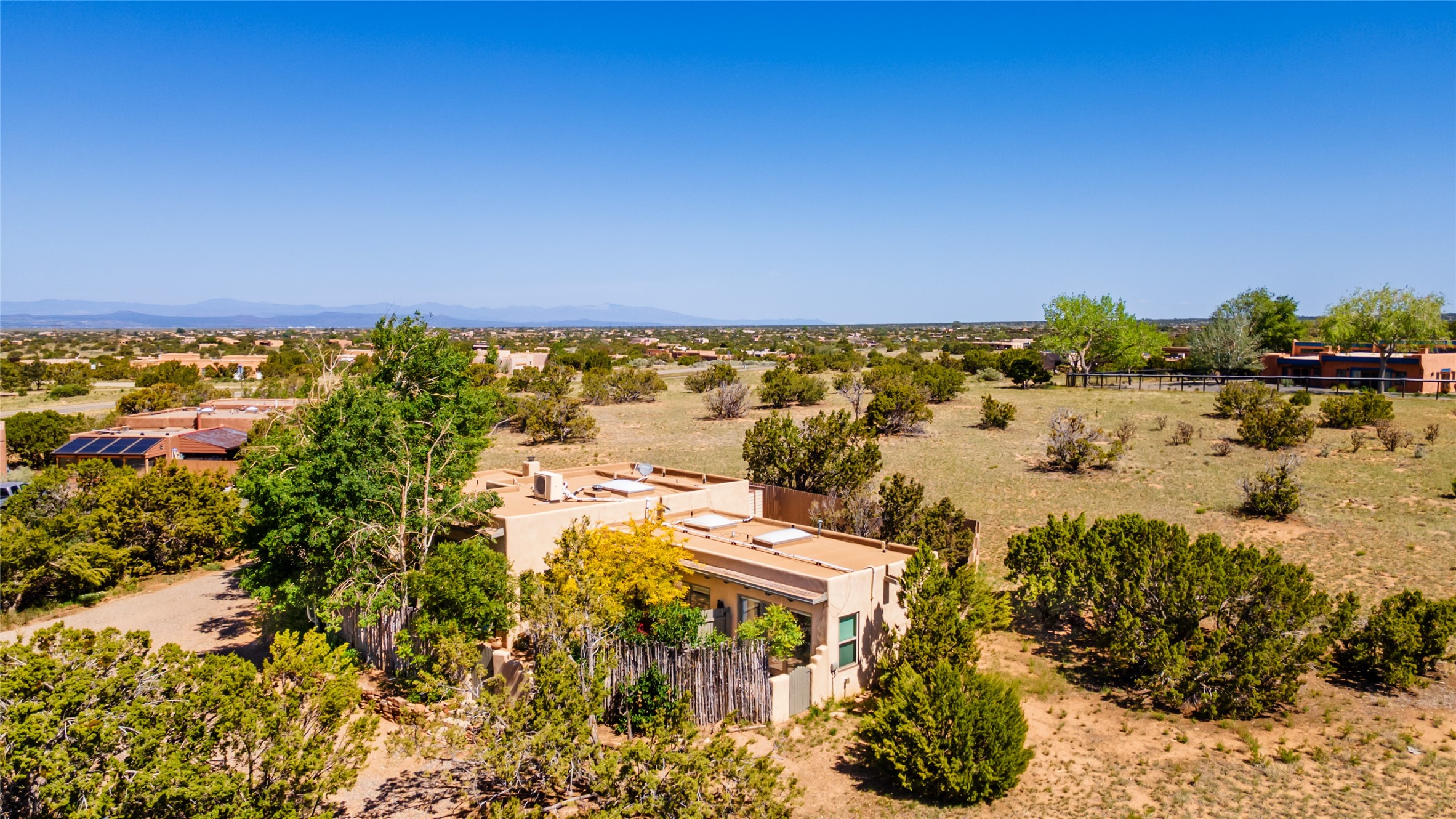Discover the beauty and serenity of this stunningly landscaped Santa Fe retreat at 22 Esquila Rd. Boasting 3 bedrooms and 2 bathrooms, this thoughtfully designed and updated home offers a perfect blend of Southwestern charm and modern comfort.The primary suite is a true sanctuary, featuring a cozy corner kiva fireplace, a spacious walk-in closet, and bathroom with jetted tub--ideal for relaxation after a busy day. The open kitchen with stainless steel appliances is directly connected to the living area which is airy and inviting; soaring ceilings and vibrant Vigas add authentic southwestern character. Large windows flood the space with natural light and frame breathtaking views of the gorgeously landscaped patio courtyard, creating an idyllic setting for outdoor entertaining or quiet retreat. The lovely guest room is a second primary with adjoining bathroom which opens into the courtyard.Step outside to your private oasis where meticulously curated gardens on a timed sprinkler system create a peaceful haven with vibrant coloring plants. The landscaping was designed for maximum color and minimum maintenance. Walk out onto inviting patios with plentiful shade provided by mature Aspens in the warm Summer months. Whether enjoying a morning coffee or hosting friends beneath the starry sky, this property seamlessly combines indoor comfort with outdoor paradise.Don't miss the opportunity to make this beautifully landscaped Santa Fe home your own!