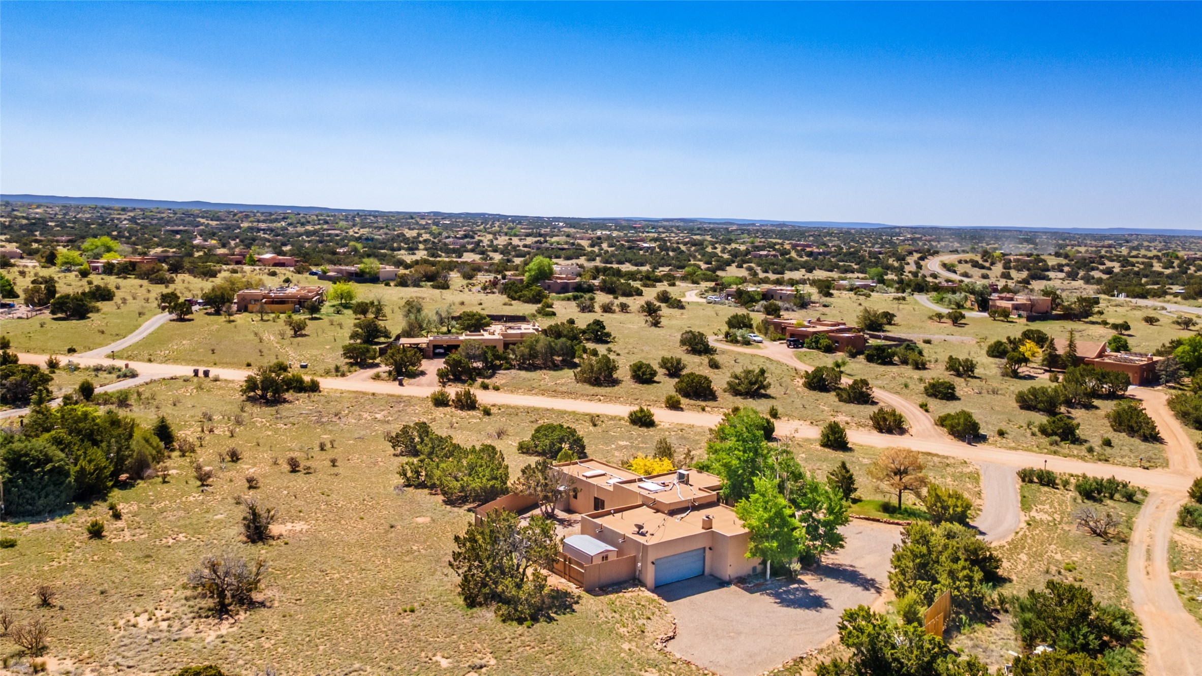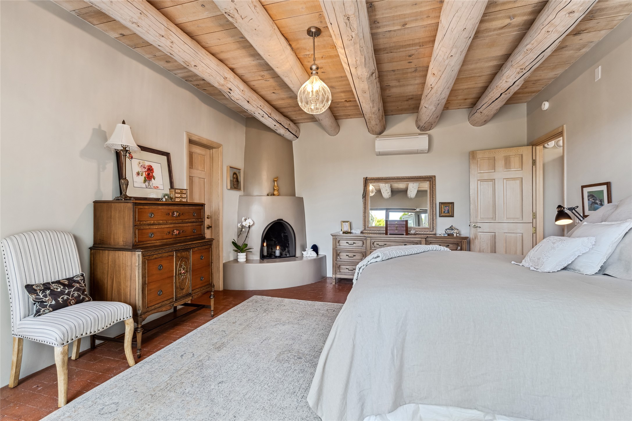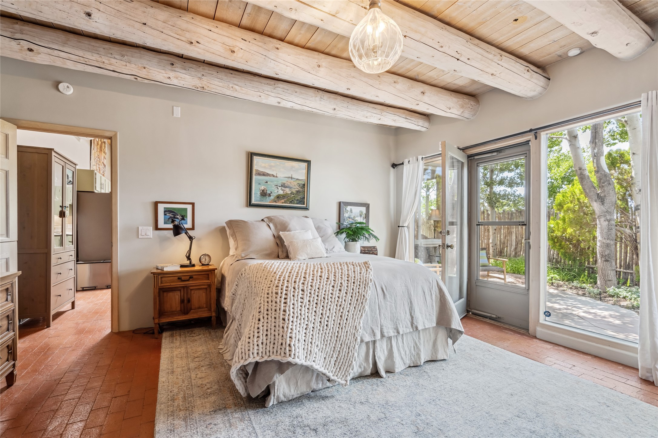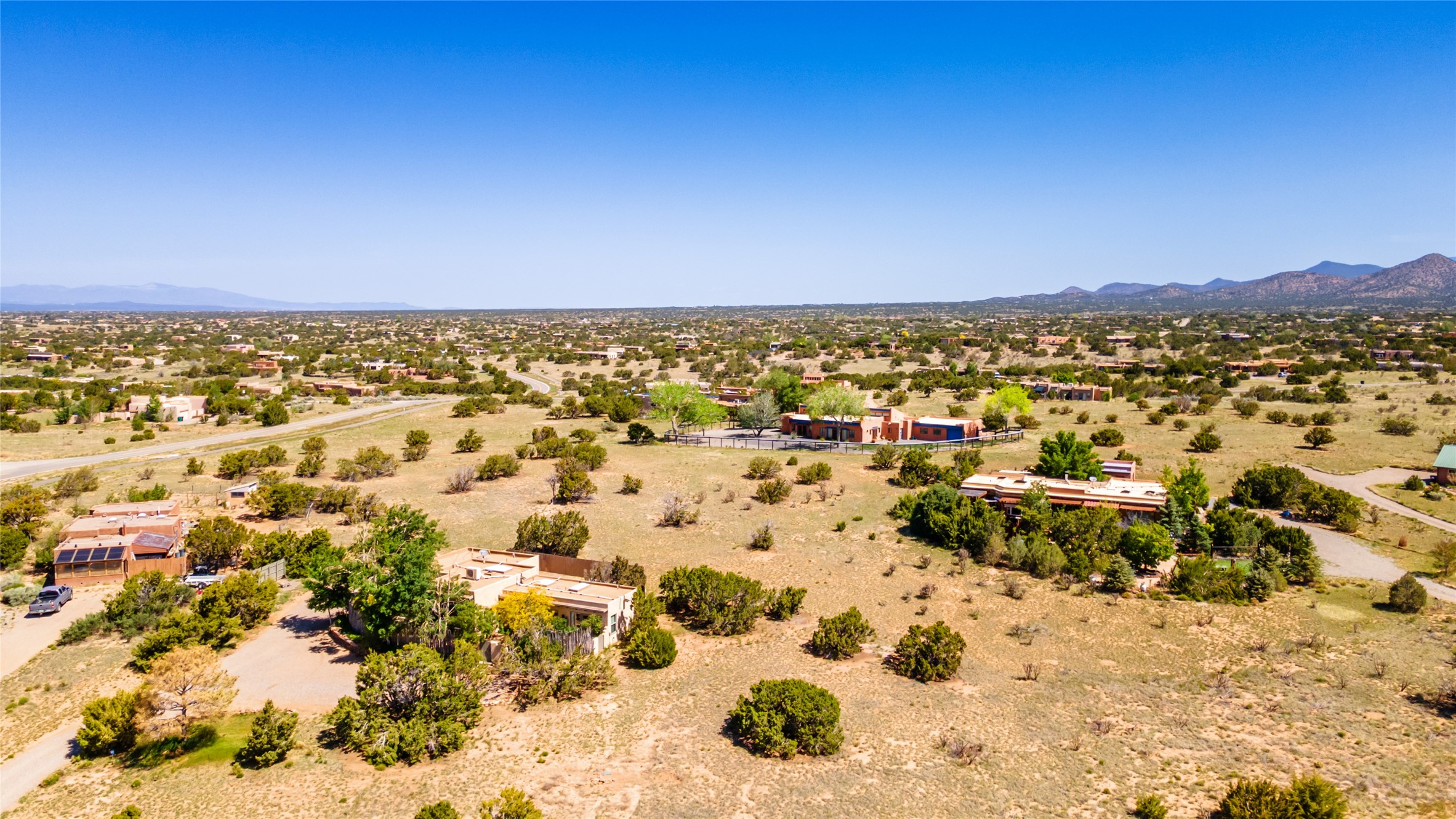 Discover the beauty and serenity of this stunningly landscaped Santa Fe retreat at 22 Esquila Rd. Boasting 3 bedrooms and 2 bathrooms, this thoughtfully designed and updated home offers a perfect blend of Southwestern charm and modern comfort.The primary suite is a true sanctuary, featuring a cozy corner kiva fireplace, a spacious walk-in closet, and bathroom with jetted tub--ideal for relaxation after a busy day. The open kitchen with stainless steel appliances is directly connected to the living area which is airy and inviting; soaring ceilings and vibrant Vigas add authentic southwestern character. Large windows flood the space with natural light and frame breathtaking views of the gorgeously landscaped patio courtyard, creating an idyllic setting for outdoor entertaining or quiet retreat. The lovely guest room is a second primary with adjoining bathroom which opens into the courtyard.Step outside to your private oasis where meticulously curated gardens on a timed sprinkler system create a peaceful haven with vibrant coloring plants. The landscaping was designed for maximum color and minimum maintenance. Walk out onto inviting patios with plentiful shade provided by mature Aspens in the warm Summer months. Whether enjoying a morning coffee or hosting friends beneath the starry sky, this property seamlessly combines indoor comfort with outdoor paradise.Don't miss the opportunity to make this beautifully landscaped Santa Fe home your own!