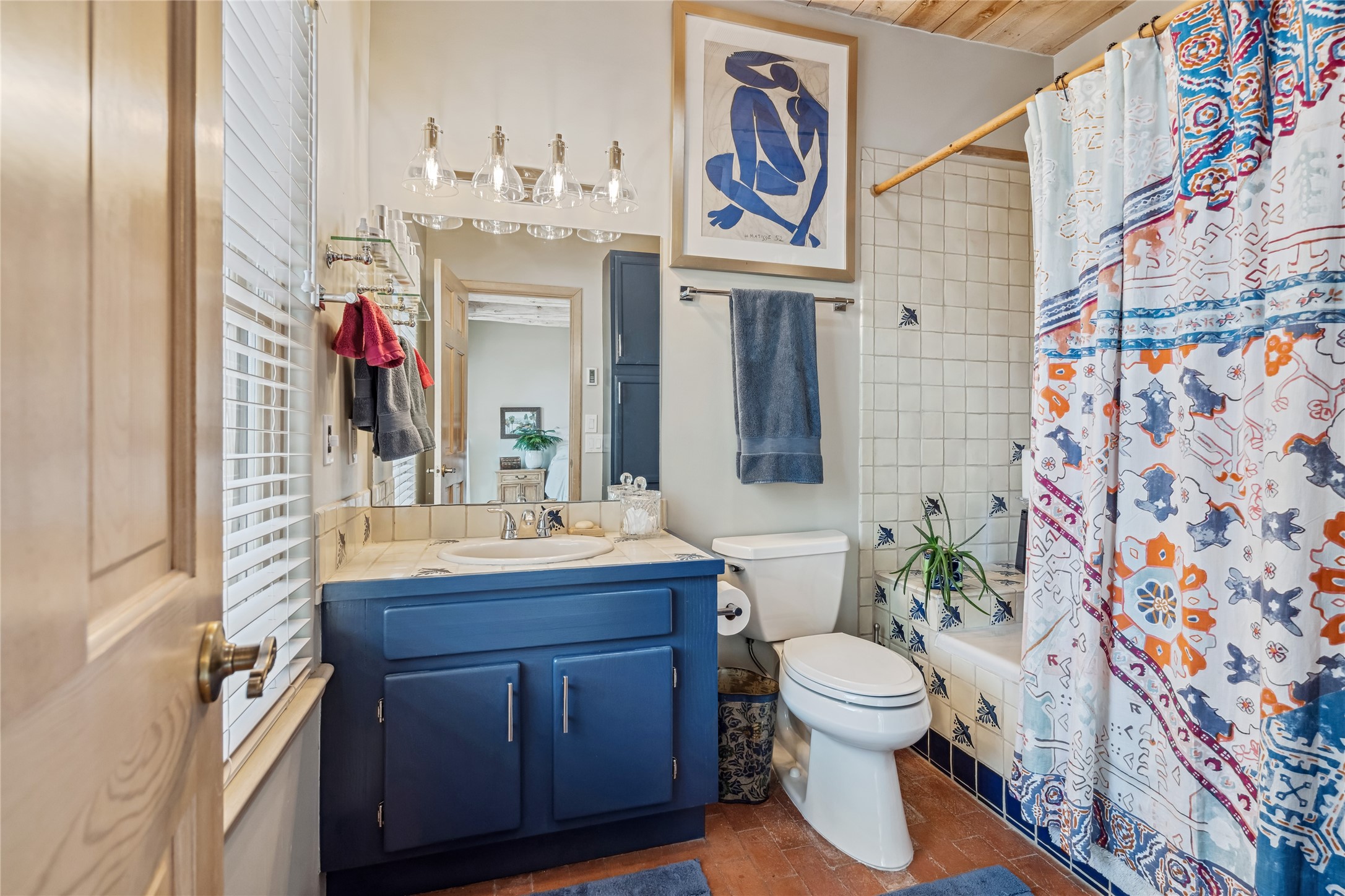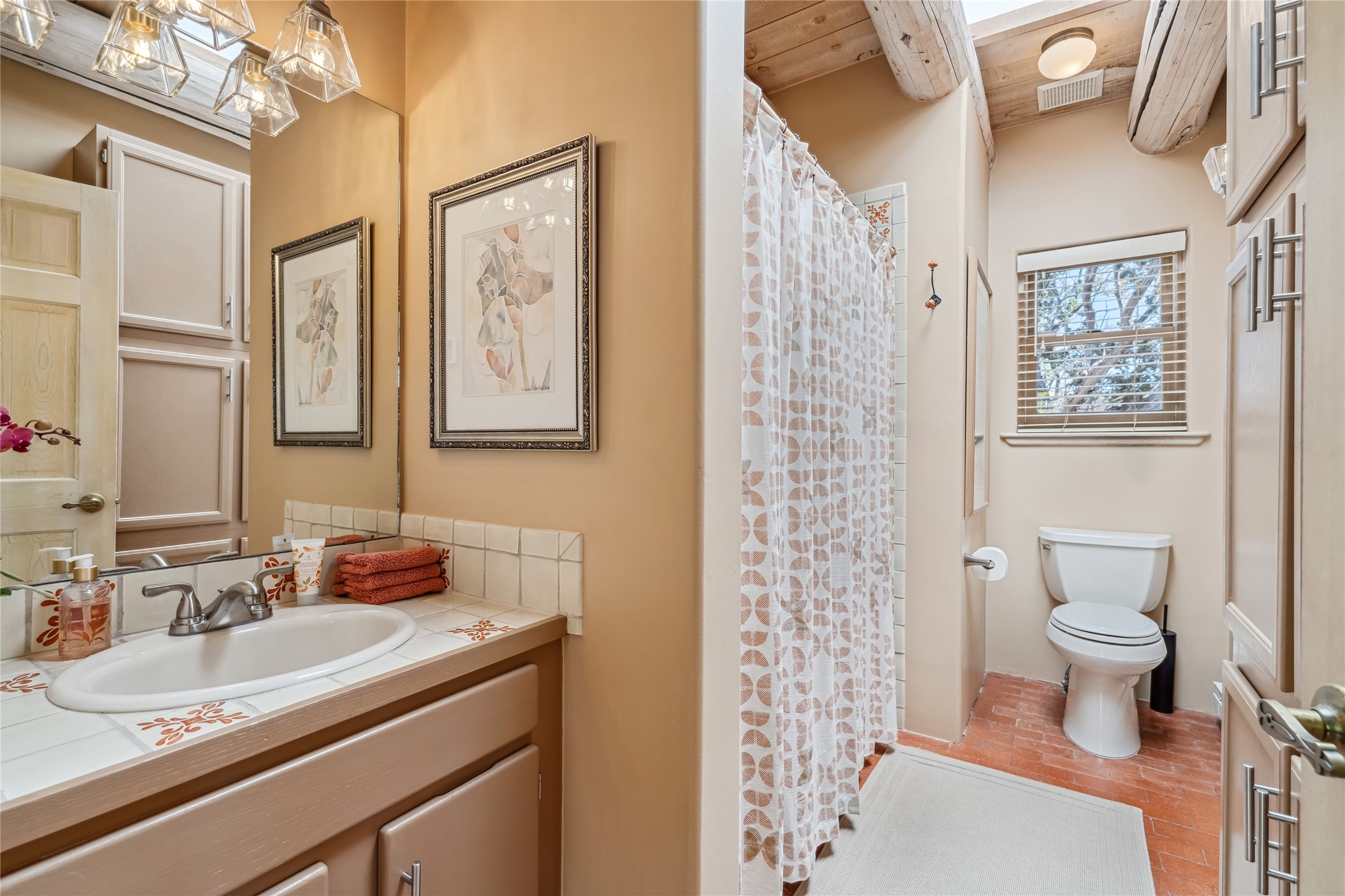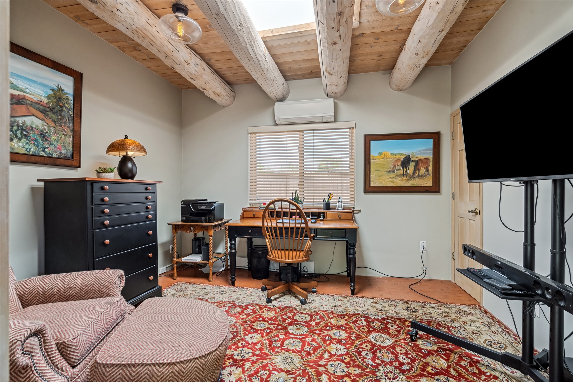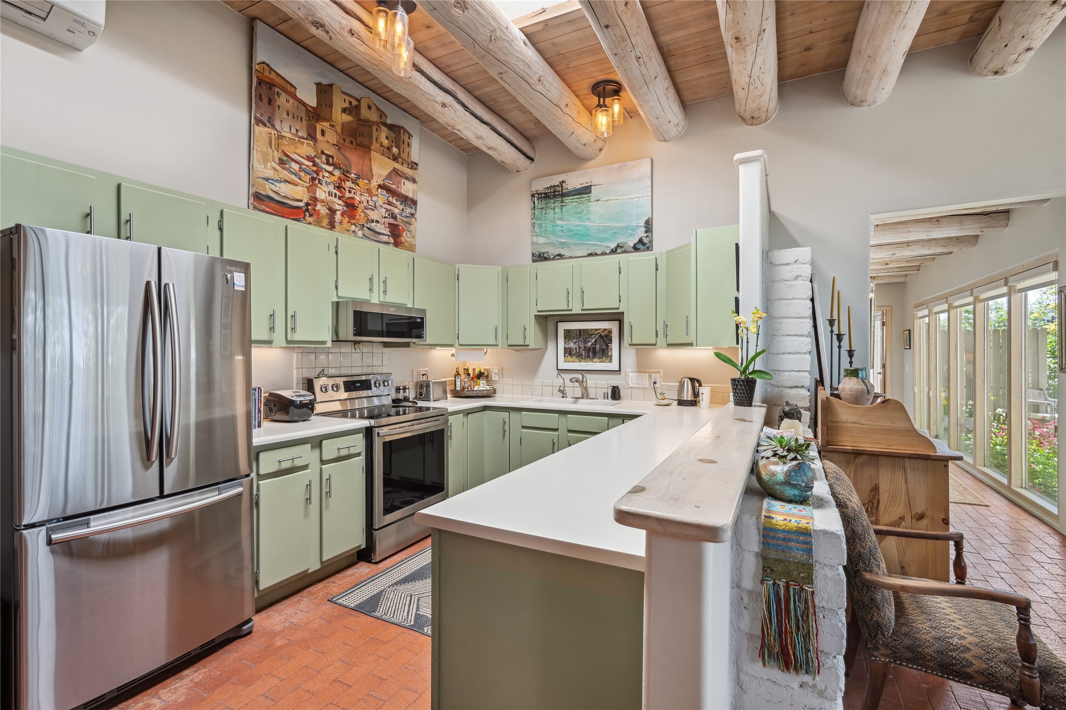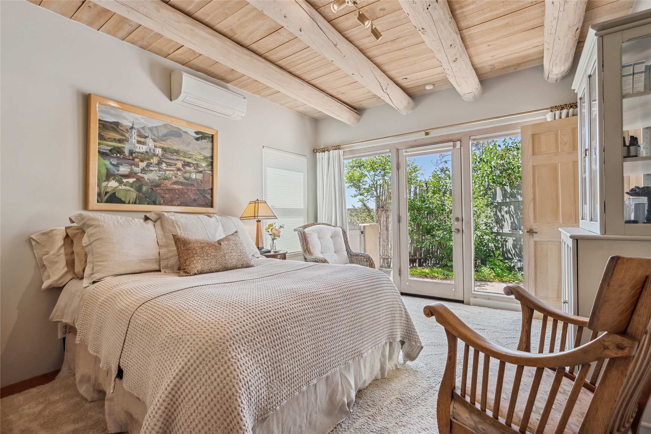 Discover the beauty and serenity of this stunningly landscaped Santa Fe retreat at 22 Esquila Rd. Boasting 3 bedrooms and 2 bathrooms, this thoughtfully designed and updated home offers a perfect blend of Southwestern charm and modern comfort.The primary suite is a true sanctuary, featuring a cozy corner kiva fireplace, a spacious walk-in closet, and bathroom with jetted tub--ideal for relaxation after a busy day. The open kitchen with stainless steel appliances is directly connected to the living area which is airy and inviting; soaring ceilings and vibrant Vigas add authentic southwestern character. Large windows flood the space with natural light and frame breathtaking views of the gorgeously landscaped patio courtyard, creating an idyllic setting for outdoor entertaining or quiet retreat. The lovely guest room is a second primary with adjoining bathroom which opens into the courtyard.Step outside to your private oasis where meticulously curated gardens on a timed sprinkler system create a peaceful haven with vibrant coloring plants. The landscaping was designed for maximum color and minimum maintenance. Walk out onto inviting patios with plentiful shade provided by mature Aspens in the warm Summer months. Whether enjoying a morning coffee or hosting friends beneath the starry sky, this property seamlessly combines indoor comfort with outdoor paradise.Don't miss the opportunity to make this beautifully landscaped Santa Fe home your own!