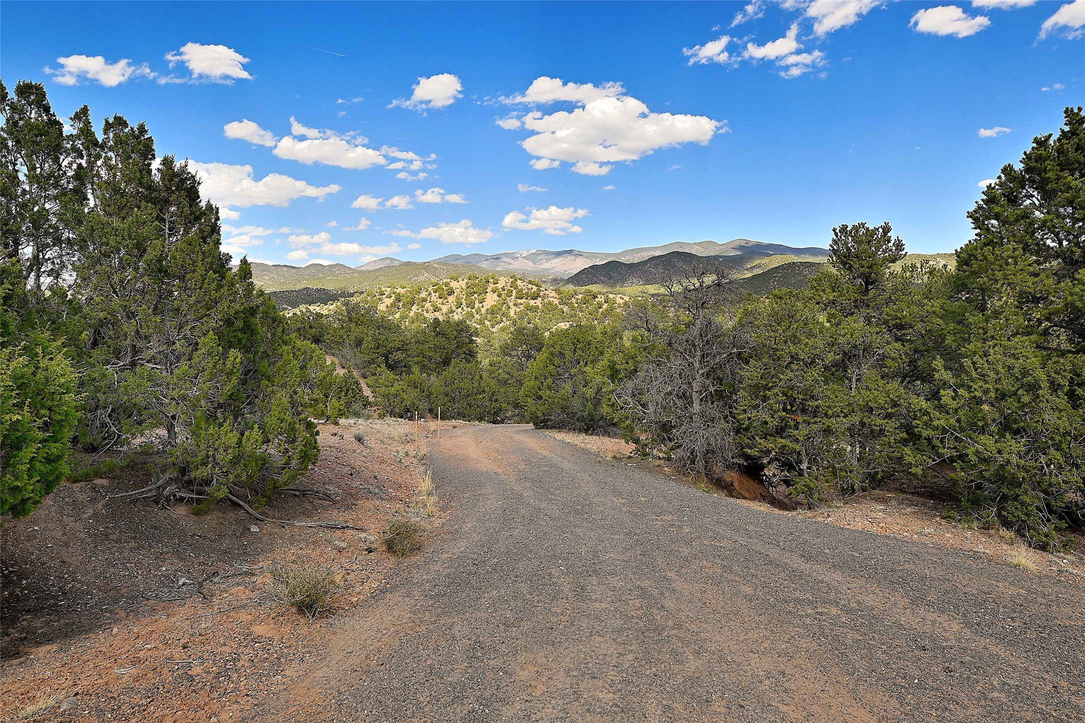 Rare opportunity to own 23.01-acres of residential land offering spectacular panoramic views of the Sangre de Cristo Mountains and the tranquil Tesuque Valley. This unique parcel consists of two separately deeded contiguous lots. Accessed through the prestigious gated Circle Drive Compound, this property ensures a sense of privacy and exclusivity while remaining connected to a vibrant community. With several designated building envelopes, you have the creative freedom to design a residence that perfectly complements the stunning surroundings. One of the deeded lots features a finished tennis court, a luxurious amenity that enhances your outdoor lifestyle while allowing for community access. Imagine enjoying sunny afternoons on the court or hosting gatherings with friends and family, all set against the backdrop of breathtaking natural beauty. Full plans for 4,738 sq. ft. 3 bedroom, 4 bath main house (with an approved permit for pool) and 1608 sq. ft. 2 bedroom, 2 bath casita from Craig Hoopes Architects could be included with sale. Underground utilities, and one shared well permitted for multiple domestic households. Zoning is Residential Fringe; District Density: RES-F; 1 dwelling per 5 acres. This prime location combines the best of both worlds: the serenity of rural living and the convenience of nearby amenities. Experience the rich culture and outdoor adventures that New Mexico has to offer, all while enjoying the comfort of your own private retreat.