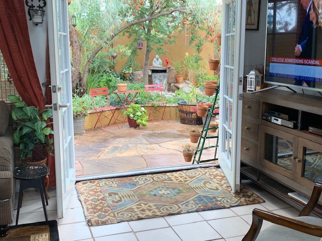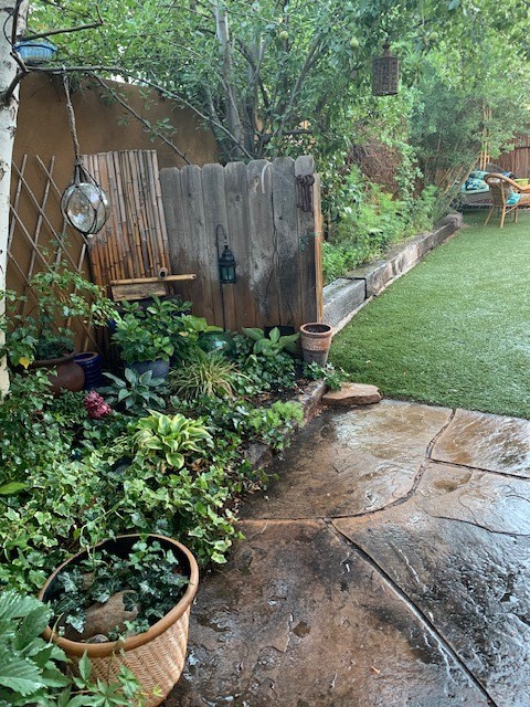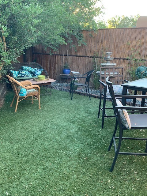 Welcome to this charming 2-bedroom, 1-bath Pueblo-style home, a perfect blend of Southwestern elegance and comfort. Nestled in a tranquil neighborhood, this home offers a welcoming ambiance with its signature adobe-style architecture, complete with a picturesque water fountain at the entrance, setting a peaceful tone right from the start.Inside, the open and airy living space is bathed in natural light, accentuating the rich, rustic charm, highlighted by a wood burning fireplace. French doors lead to a spacious backyard, ideal for relaxing or entertaining. Whether you're enjoying the quiet solitude or hosting family gatherings, this expansive outdoor area offers endless possibilities for creating your own private retreat.The bedrooms are cozy, providing space for personalization. The bathroom features classic details, adding to the home's warmth and character.This home is a true gem, offering not just a place to live, but a lifestyle to enjoy. Come experience the beauty and serenity of this unique property!