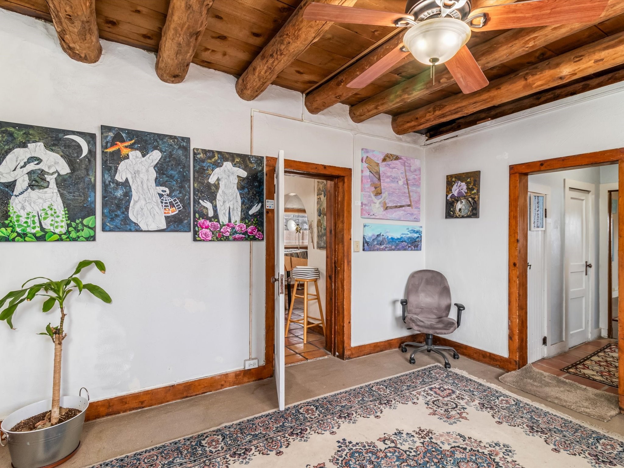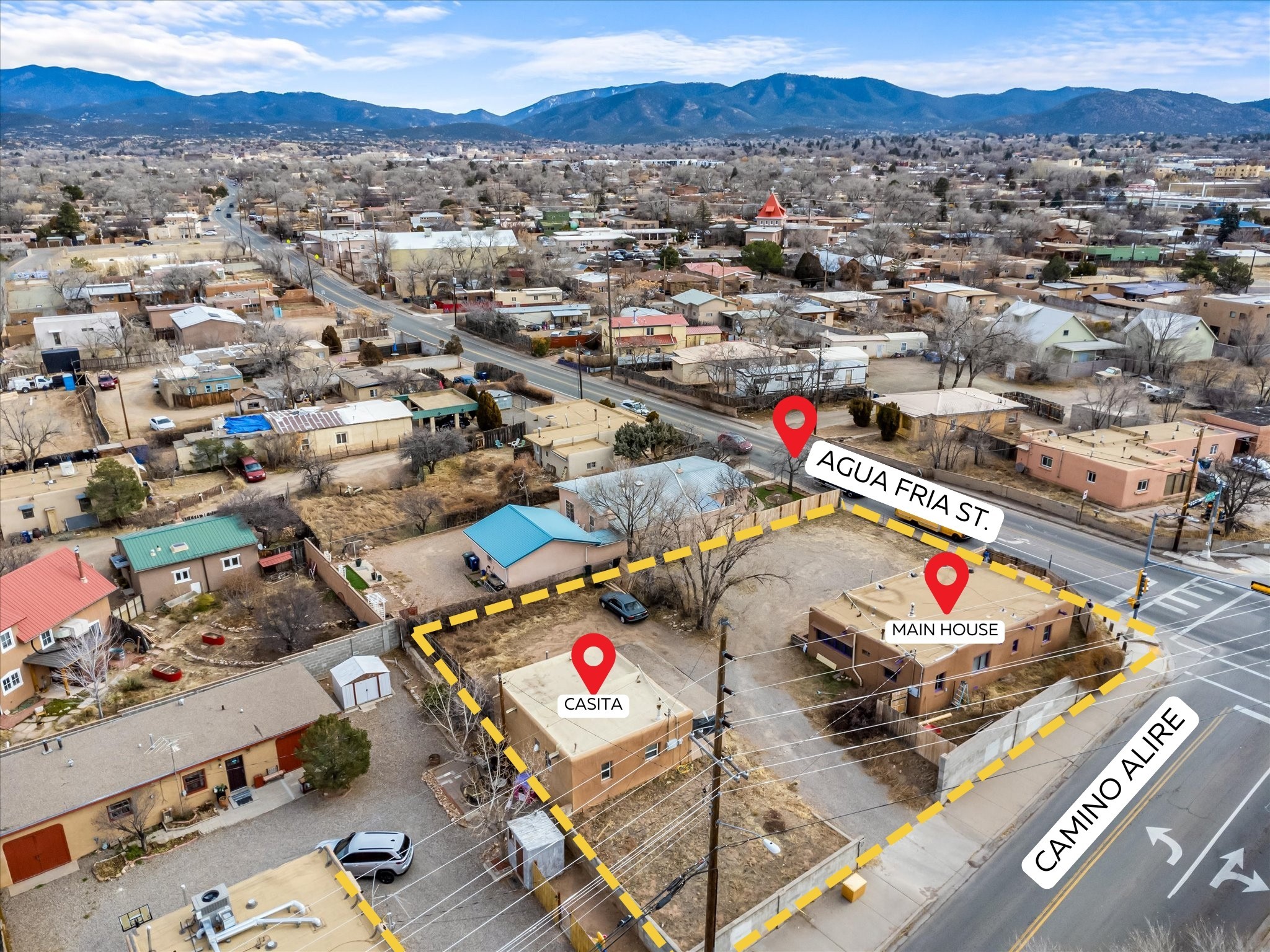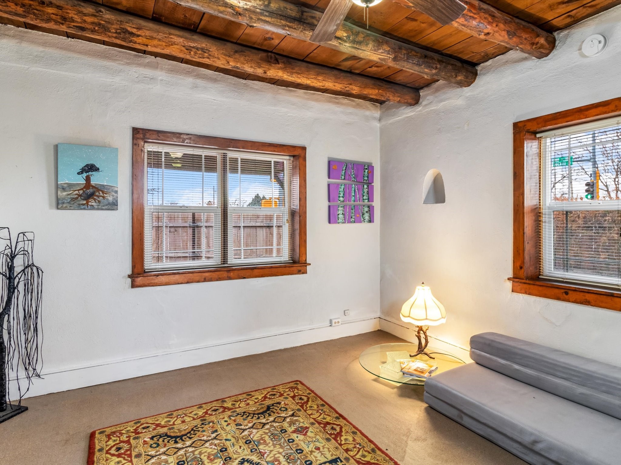 Welcome to 1217 Agua Fra Street, a versatile and charming adobe property that offers endless possibilities for families, multigenerational living, or investment opportunities. The main home features 2 bedrooms and 1 bath, complemented by a 1-bedroom, 1-bath attached unit. The main living area showcases Saltillo tile flooring, known for its durability AND scratch resistance making it a practical yet stylish choice. Lots of Santa fe Charm with wood ceilings and Vegas. In the back, you'll find a spacious 2-bedroom, 1-bath casita that exudes the same quintessential Santa Fe charm. Both homes highlight stunning adobe walls and authentic wood vigas, creating a warm and inviting atmosphere. Situated in the heart of Santa Fe, this property is perfectly positioned for easy access to local attractions, dining, and shopping. Ample parking and flexible zoning (C-1) add to its appeal, offering potential for additional development or creative uses. Don't miss the opportunity to own a piece of Santa Fe's rich heritage and vibrant culture. Contact us today to schedule your private tour!