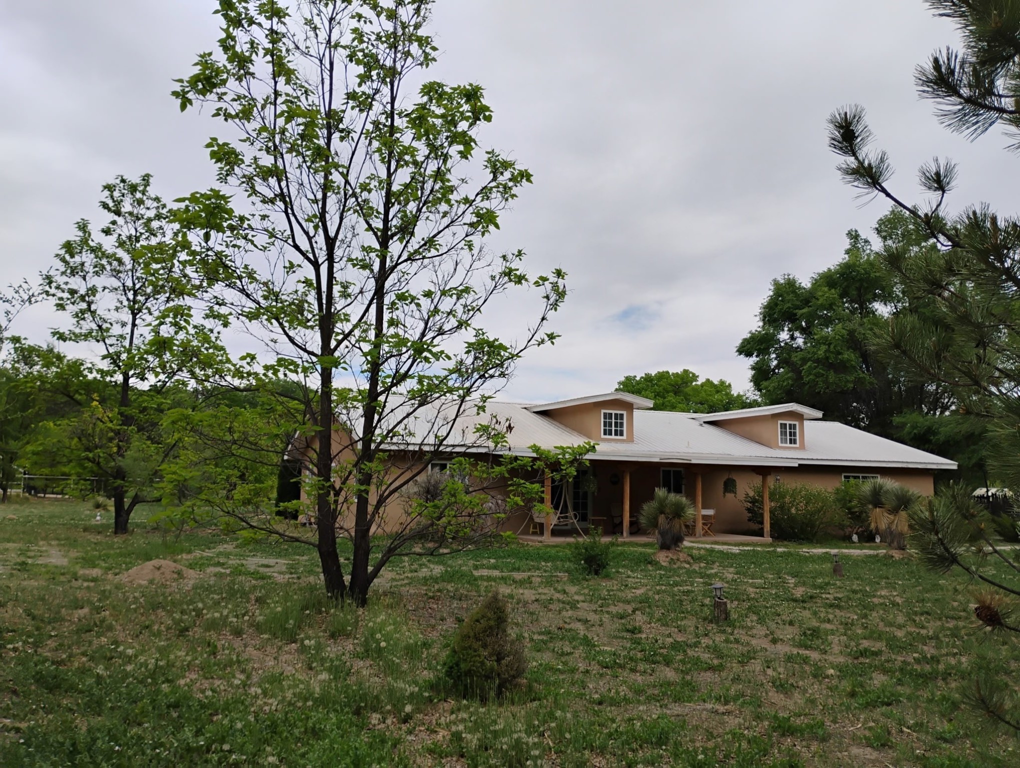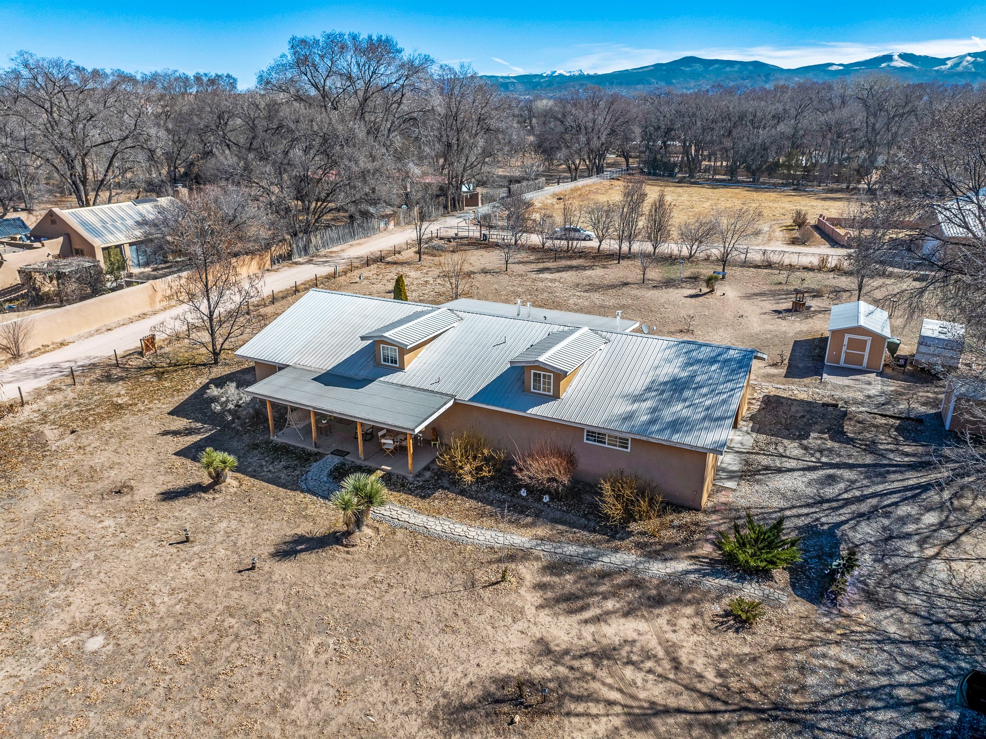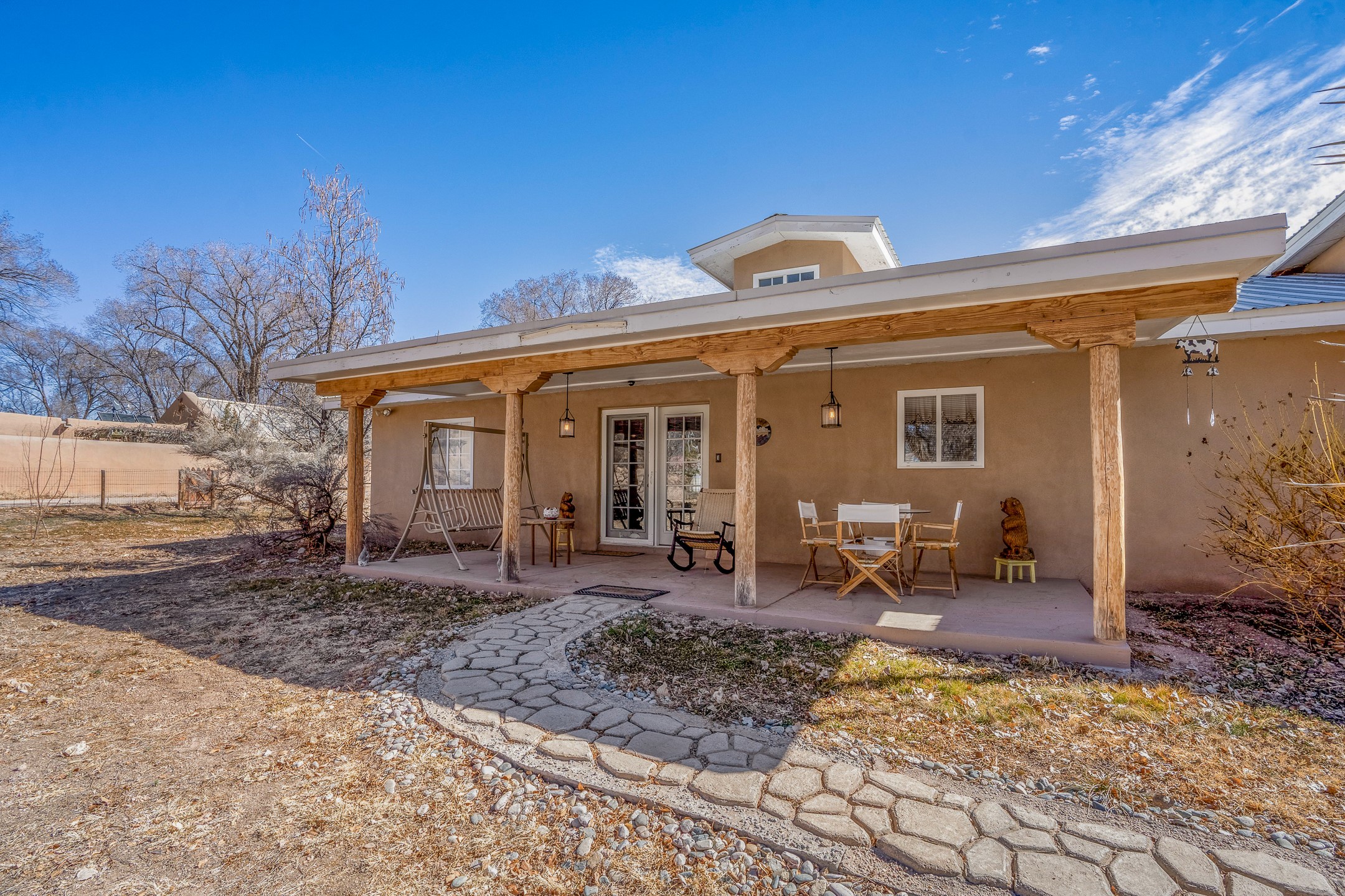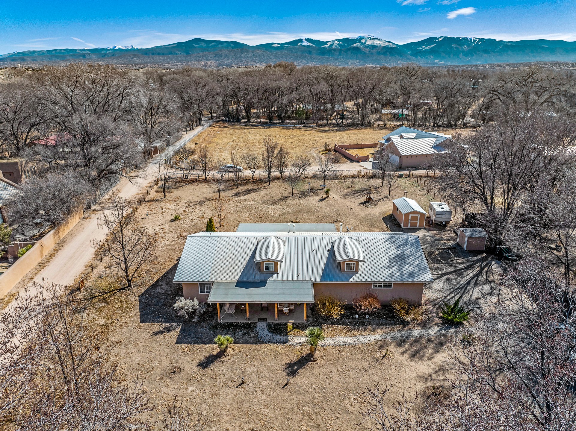 Have you been longing for a life where the air is crisp, the skies stretch wide, and the quiet whispers of the countryside greet you each morning?Tucked along the tree-canopied, historic Bouquet Lane in Nambe, this charming pitched-roof home radiates warmth, care, and timeless beauty. It's more than a house -- it's a haven. Nestled in serenity, it offers peace, privacy, and that rare sense of coming home the moment you step through the door.With a generous half-acre foot of water rights on the treasured La Jolla Acequia, the land is alive with promise. Out back, the majestic Sangre de Cristo Mountains rise in the distance, painting your evenings with golden sunsets and tranquil views.Inside, high ceilings and soft natural light fill the open floor plan, creating a sense of space and calm. The spacious primary suite is your personal retreat, thoughtfully set apart from the guest rooms for privacy and quiet.The oversized garage and two versatile sheds -- one powered and perfect for a workshop -- offer endless possibilities for hobbies, projects, and storage. Whether you're a weekend tinkerer, gardener, or simply craving space to breathe, it's all here.Ideally located with easy access to Santa Fe, Los Alamos, and Espanola, this is a place where rural charm meets modern convenience -- where you can truly live at your own pace.Let your dream of country living take root here. Schedule your private showing today, and start the next chapter of your story.
