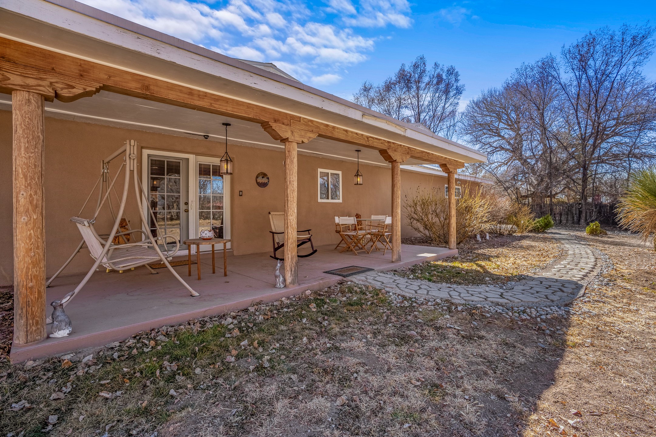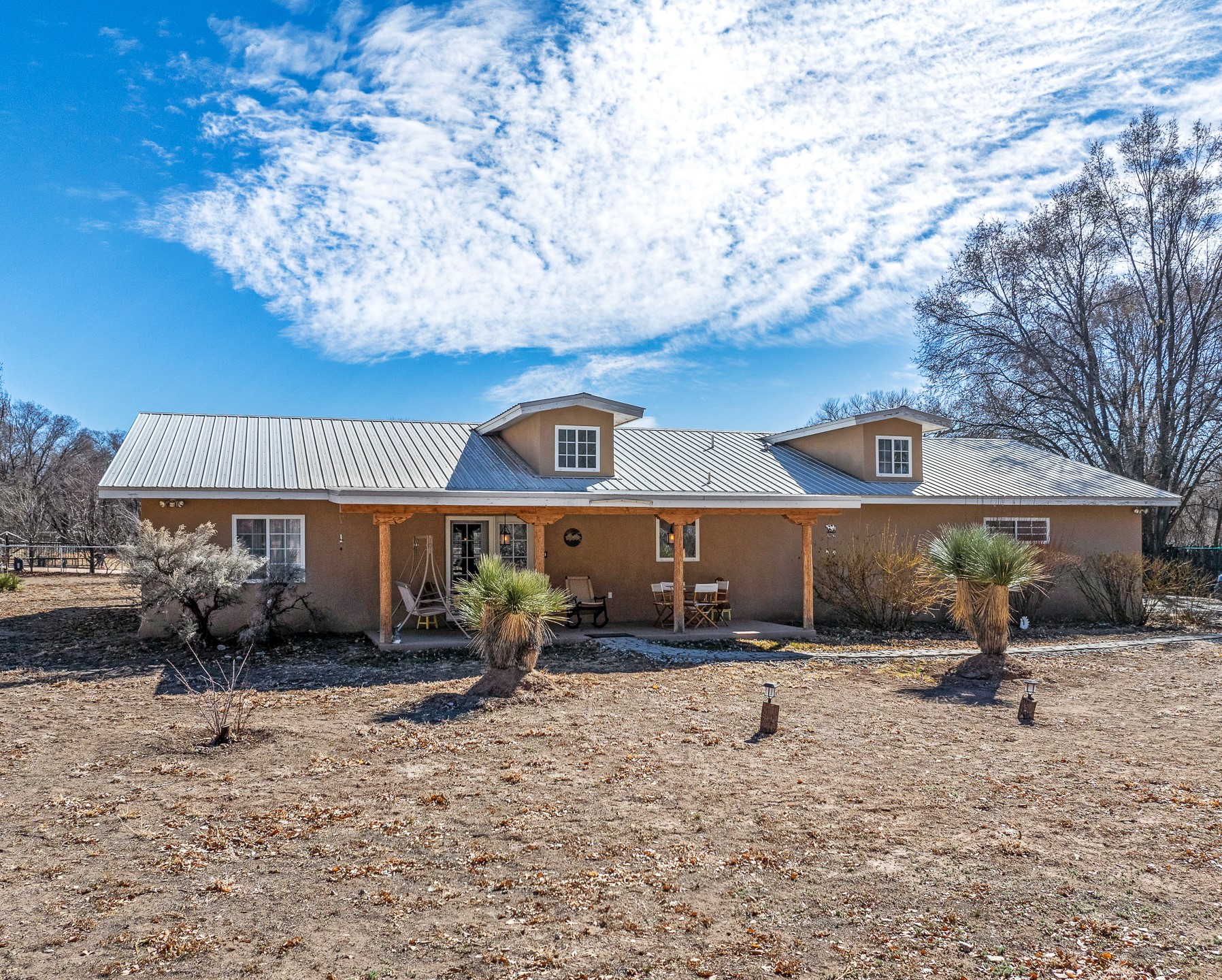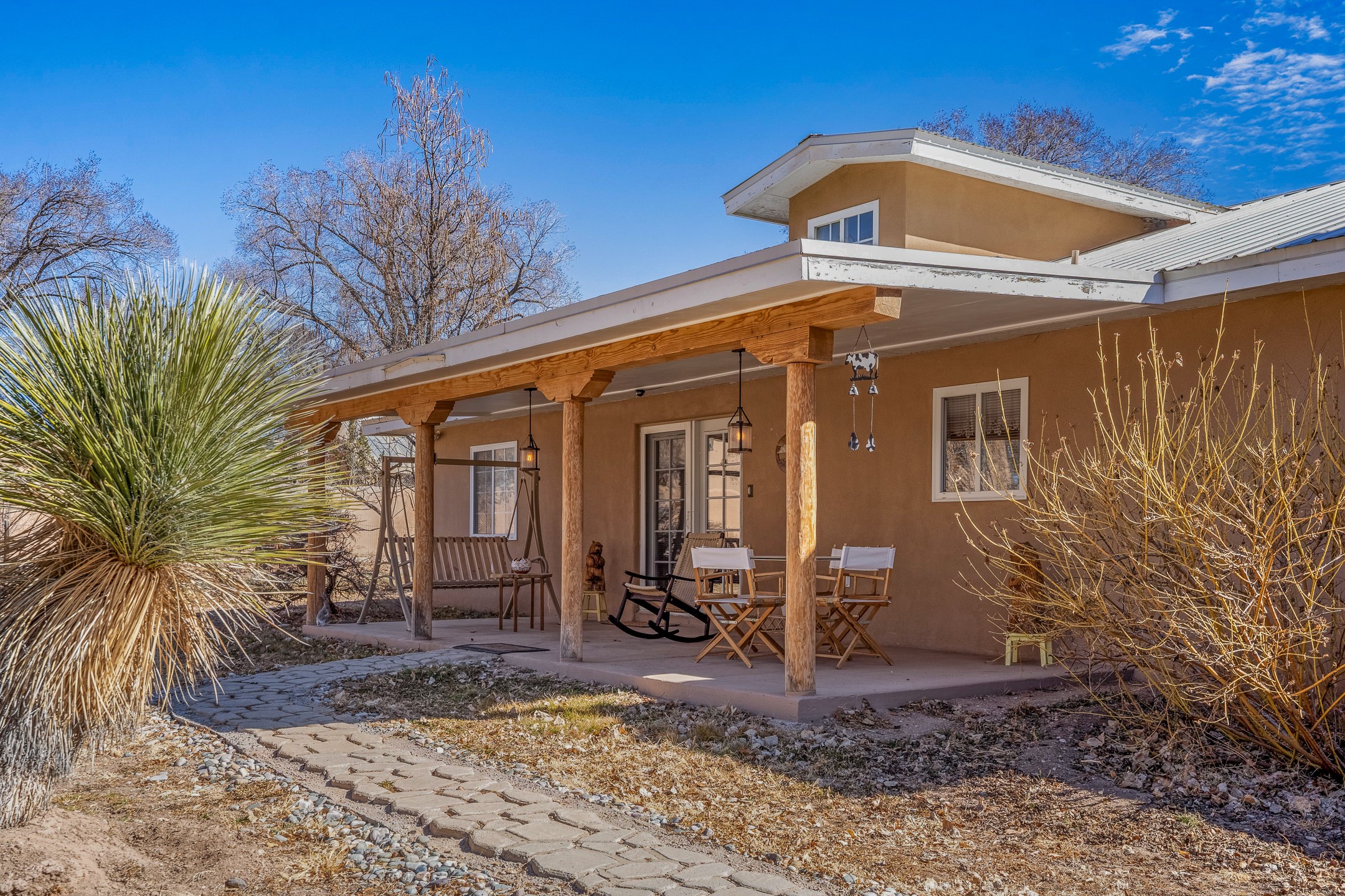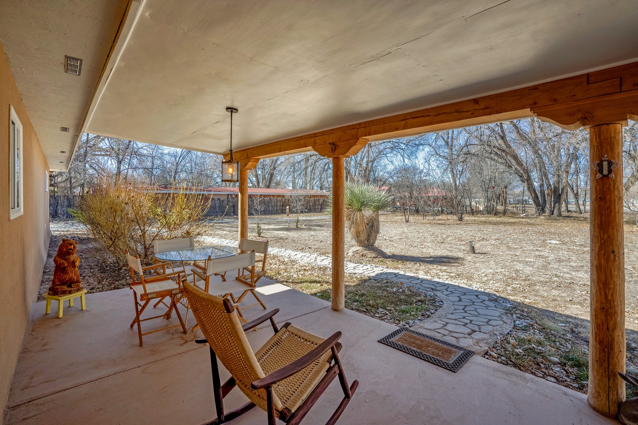 Have you been longing for a life where the air is crisp, the skies stretch wide, and the quiet whispers of the countryside greet you each morning?Tucked along the tree-canopied, historic Bouquet Lane in Nambe, this charming pitched-roof home radiates warmth, care, and timeless beauty. It's more than a house -- it's a haven. Nestled in serenity, it offers peace, privacy, and that rare sense of coming home the moment you step through the door.With a generous half-acre foot of water rights on the treasured La Jolla Acequia, the land is alive with promise. Out back, the majestic Sangre de Cristo Mountains rise in the distance, painting your evenings with golden sunsets and tranquil views.Inside, high ceilings and soft natural light fill the open floor plan, creating a sense of space and calm. The spacious primary suite is your personal retreat, thoughtfully set apart from the guest rooms for privacy and quiet.The oversized garage and two versatile sheds -- one powered and perfect for a workshop -- offer endless possibilities for hobbies, projects, and storage. Whether you're a weekend tinkerer, gardener, or simply craving space to breathe, it's all here.Ideally located with easy access to Santa Fe, Los Alamos, and Espanola, this is a place where rural charm meets modern convenience -- where you can truly live at your own pace.Let your dream of country living take root here. Schedule your private showing today, and start the next chapter of your story.