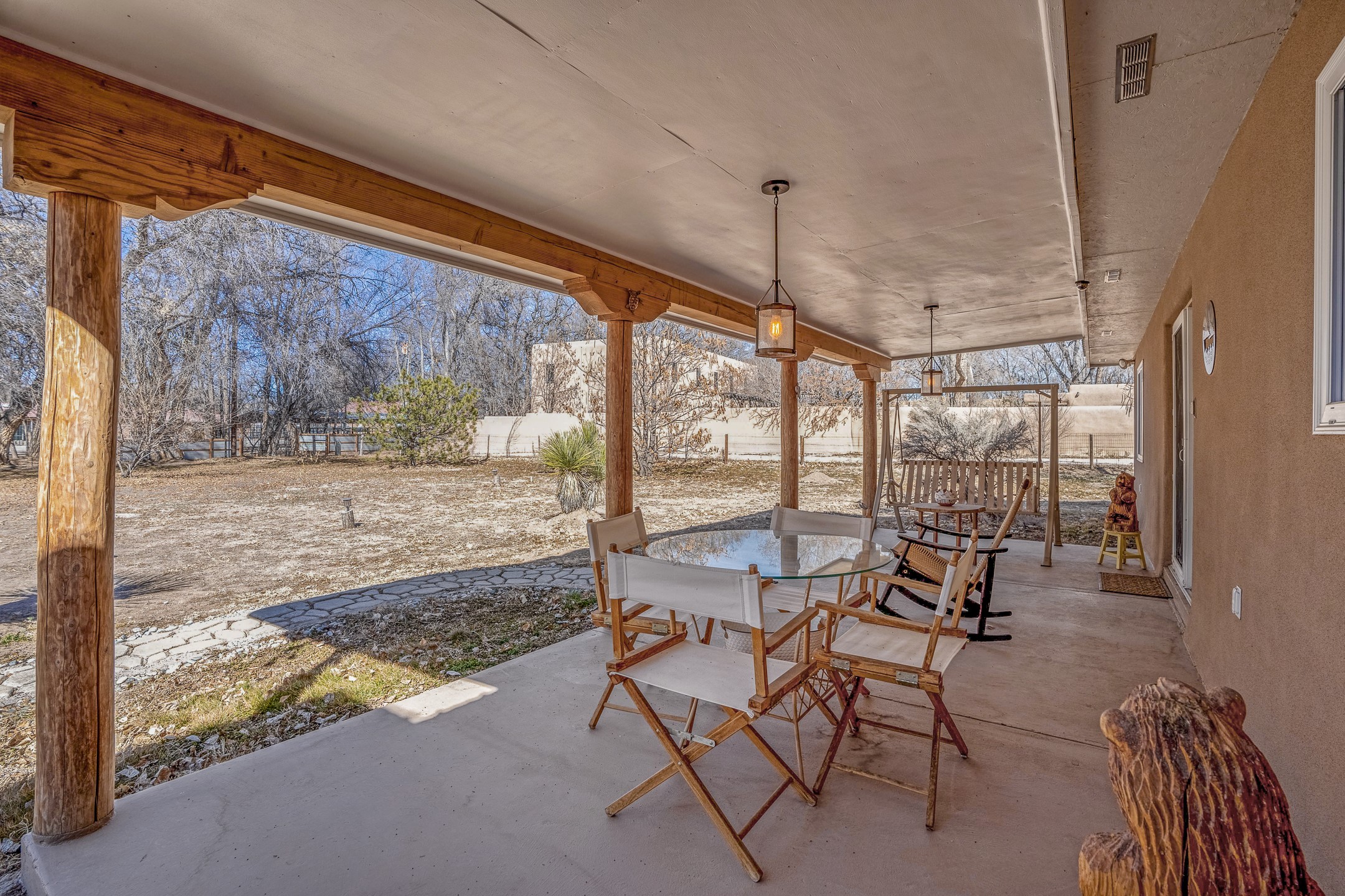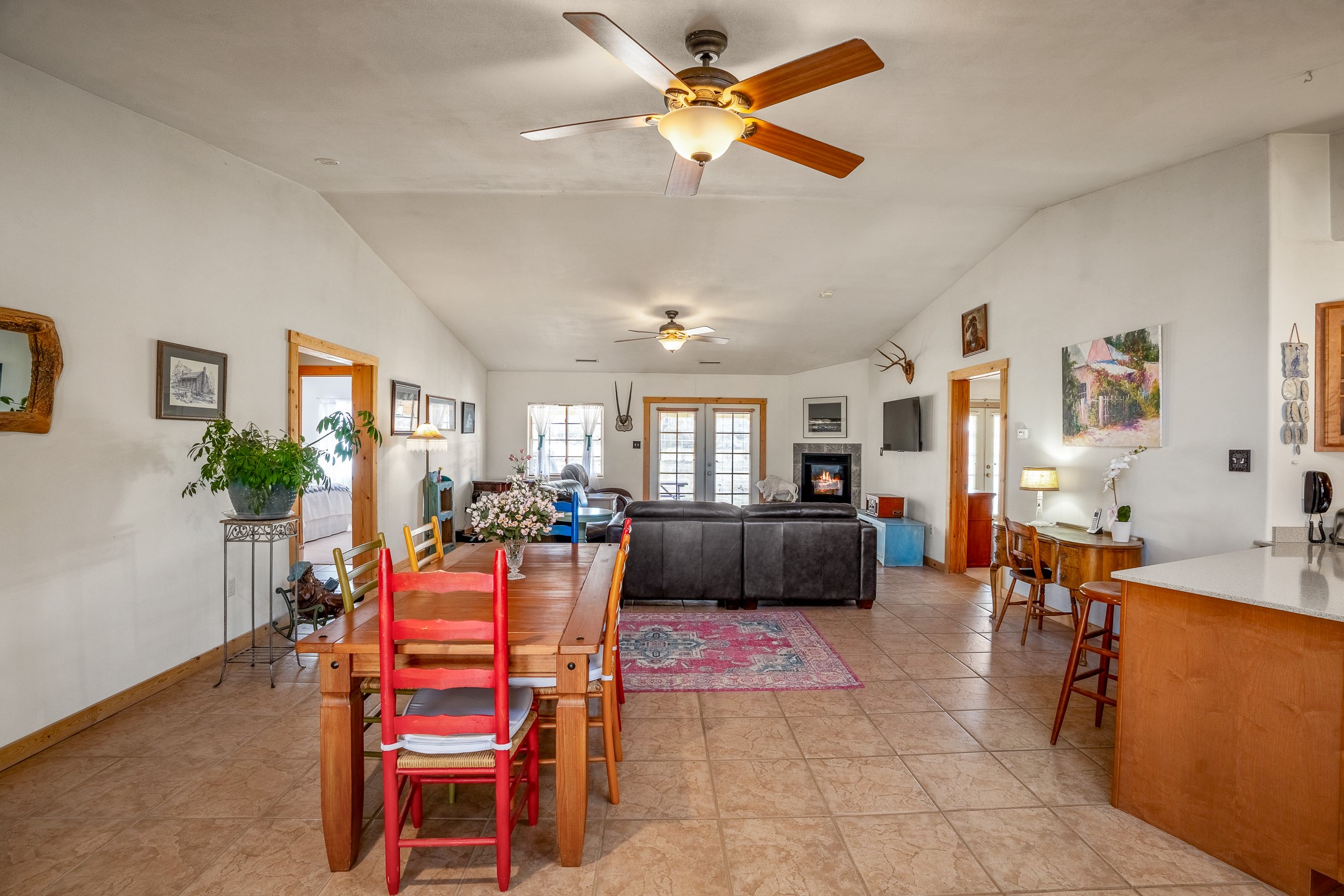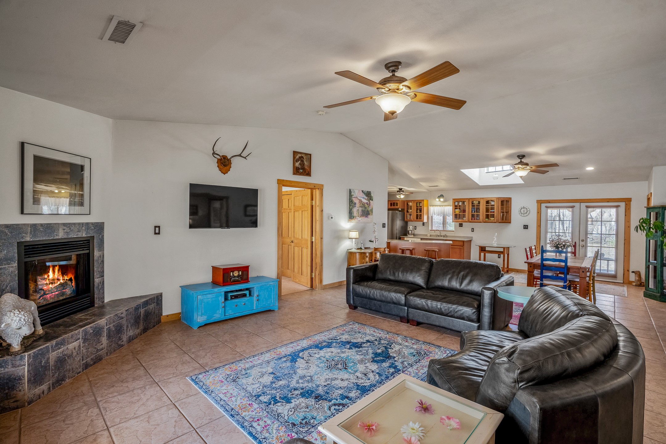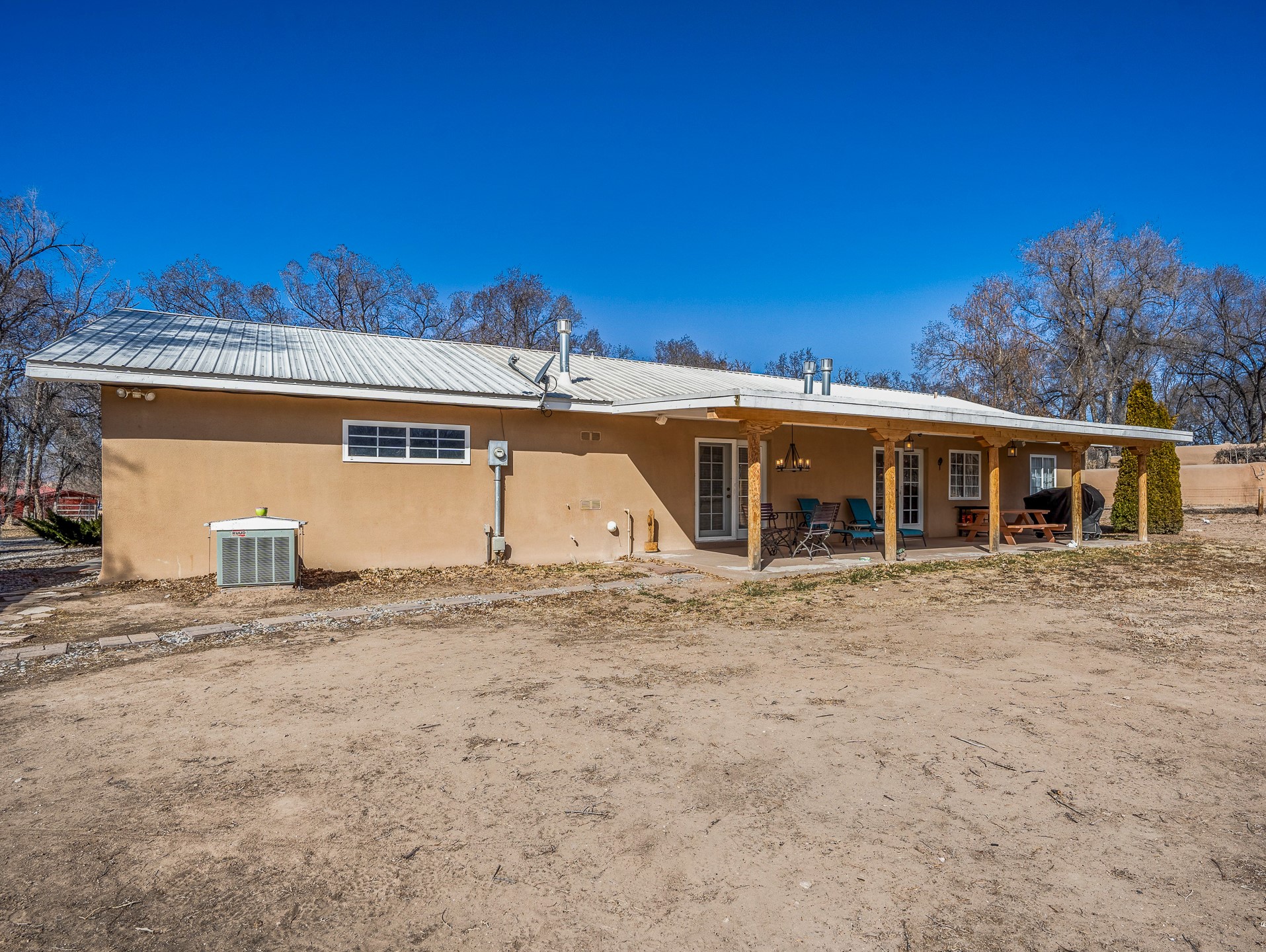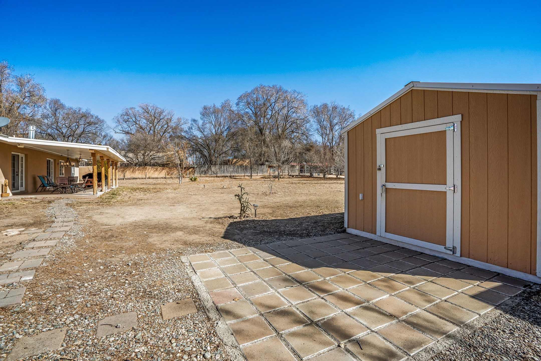 Have you been longing for a life where the air is crisp, the skies stretch wide, and the quiet whispers of the countryside greet you each morning?Tucked along the tree-canopied, historic Bouquet Lane in Nambe, this charming pitched-roof home radiates warmth, care, and timeless beauty. It's more than a house -- it's a haven. Nestled in serenity, it offers peace, privacy, and that rare sense of coming home the moment you step through the door.With a generous half-acre foot of water rights on the treasured La Jolla Acequia, the land is alive with promise. Out back, the majestic Sangre de Cristo Mountains rise in the distance, painting your evenings with golden sunsets and tranquil views.Inside, high ceilings and soft natural light fill the open floor plan, creating a sense of space and calm. The spacious primary suite is your personal retreat, thoughtfully set apart from the guest rooms for privacy and quiet.The oversized garage and two versatile sheds -- one powered and perfect for a workshop -- offer endless possibilities for hobbies, projects, and storage. Whether you're a weekend tinkerer, gardener, or simply craving space to breathe, it's all here.Ideally located with easy access to Santa Fe, Los Alamos, and Espanola, this is a place where rural charm meets modern convenience -- where you can truly live at your own pace.Let your dream of country living take root here. Schedule your private showing today, and start the next chapter of your story.