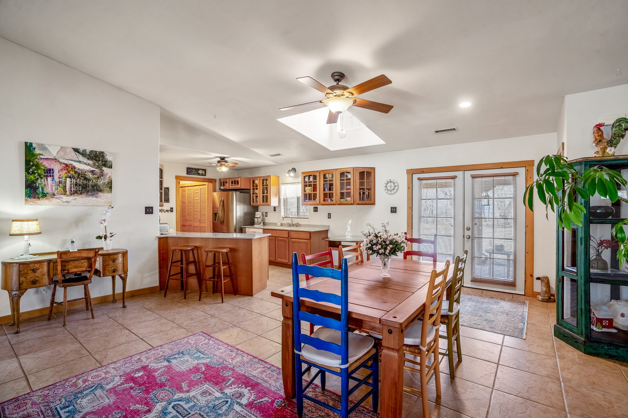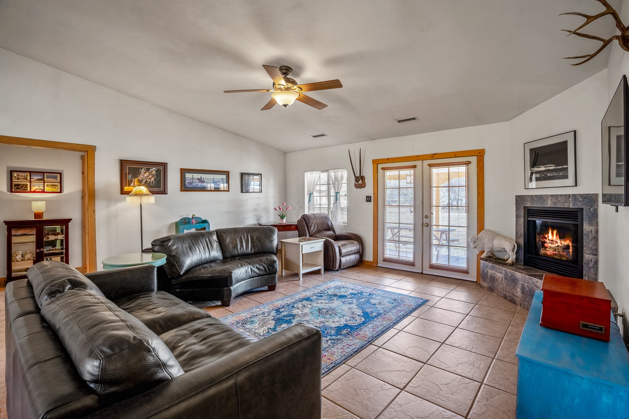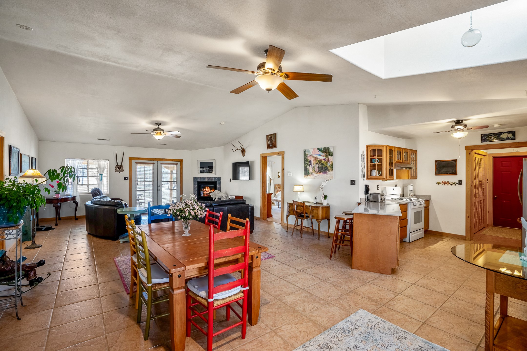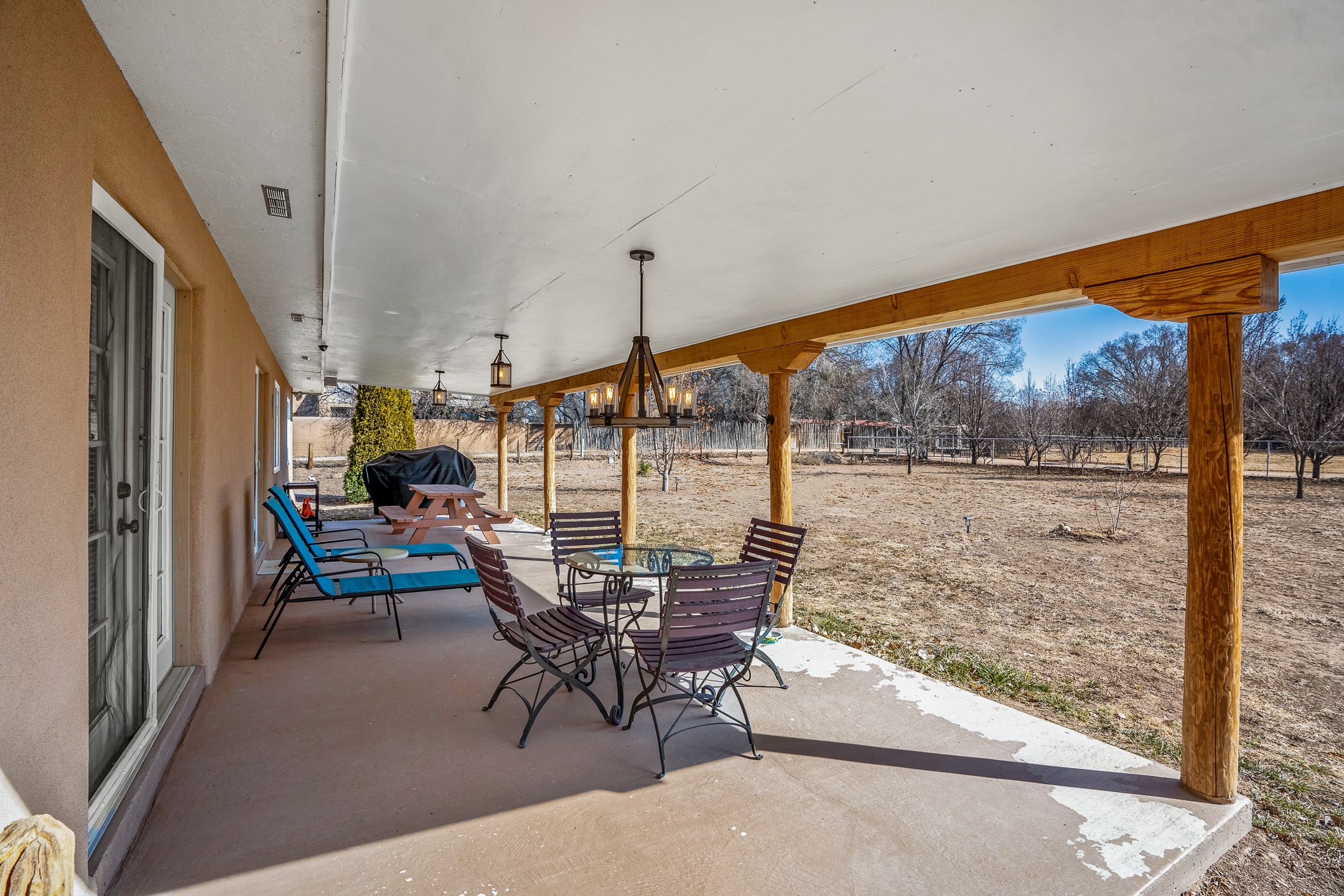 Have you been longing for a life where the air is crisp, the skies stretch wide, and the quiet whispers of the countryside greet you each morning?Tucked along the tree-canopied, historic Bouquet Lane in Nambe, this charming pitched-roof home radiates warmth, care, and timeless beauty. It's more than a house -- it's a haven. Nestled in serenity, it offers peace, privacy, and that rare sense of coming home the moment you step through the door.With a generous half-acre foot of water rights on the treasured La Jolla Acequia, the land is alive with promise. Out back, the majestic Sangre de Cristo Mountains rise in the distance, painting your evenings with golden sunsets and tranquil views.Inside, high ceilings and soft natural light fill the open floor plan, creating a sense of space and calm. The spacious primary suite is your personal retreat, thoughtfully set apart from the guest rooms for privacy and quiet.The oversized garage and two versatile sheds -- one powered and perfect for a workshop -- offer endless possibilities for hobbies, projects, and storage. Whether you're a weekend tinkerer, gardener, or simply craving space to breathe, it's all here.Ideally located with easy access to Santa Fe, Los Alamos, and Espanola, this is a place where rural charm meets modern convenience -- where you can truly live at your own pace.Let your dream of country living take root here. Schedule your private showing today, and start the next chapter of your story.