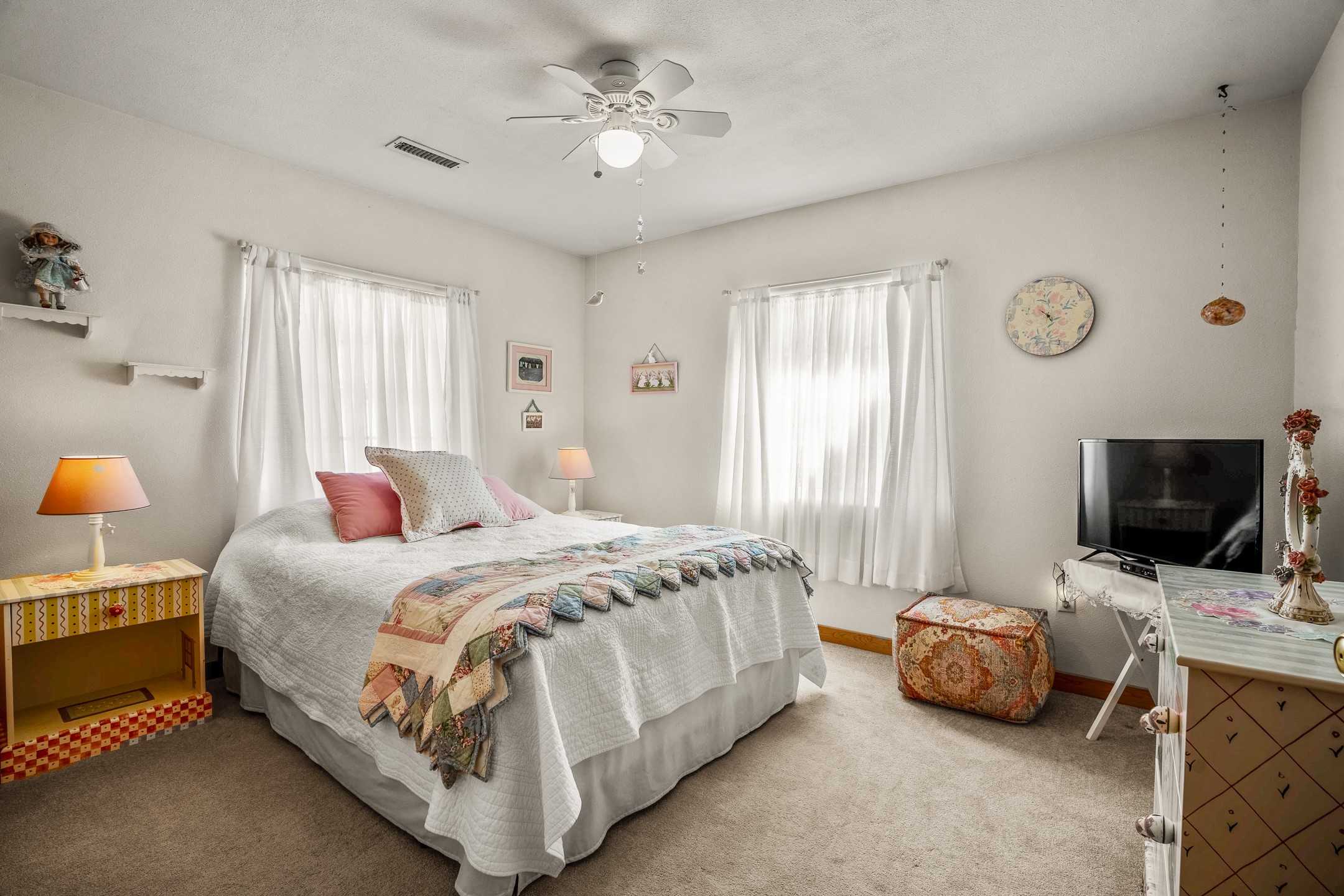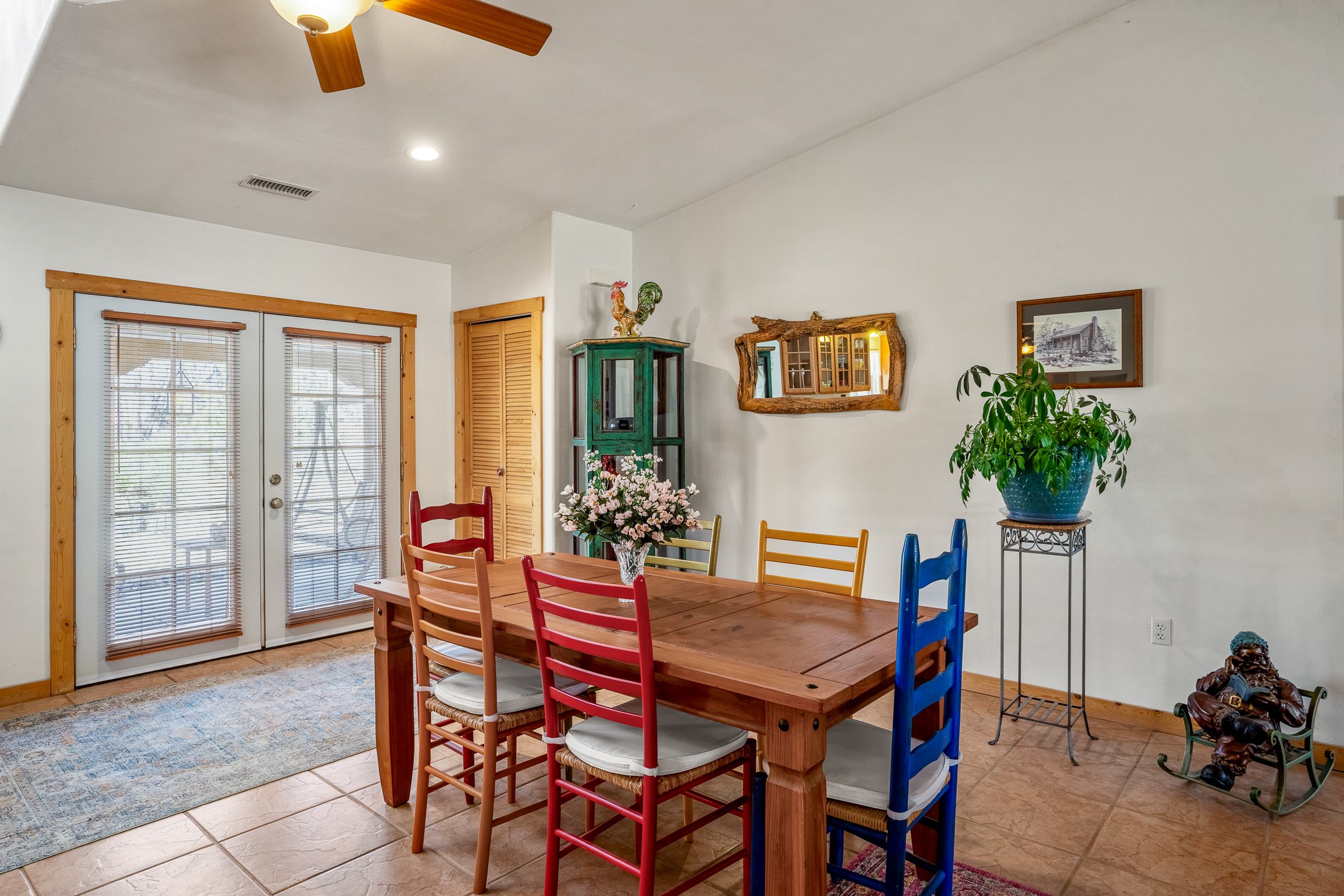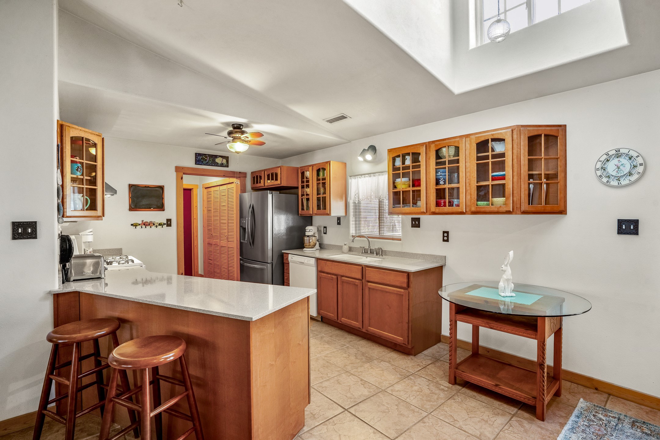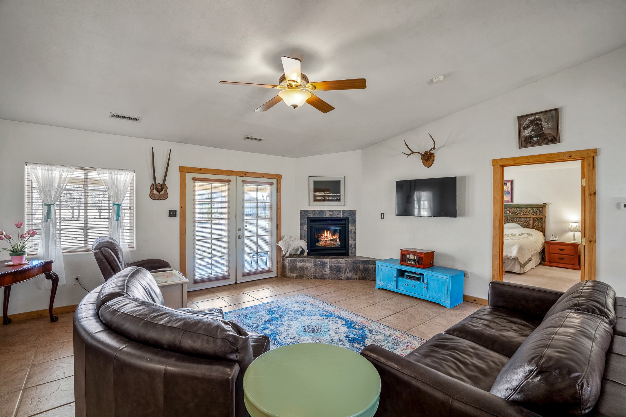 Have you been longing for a life where the air is crisp, the skies stretch wide, and the quiet whispers of the countryside greet you each morning?Tucked along the tree-canopied, historic Bouquet Lane in Nambe, this charming pitched-roof home radiates warmth, care, and timeless beauty. It's more than a house -- it's a haven. Nestled in serenity, it offers peace, privacy, and that rare sense of coming home the moment you step through the door.With a generous half-acre foot of water rights on the treasured La Jolla Acequia, the land is alive with promise. Out back, the majestic Sangre de Cristo Mountains rise in the distance, painting your evenings with golden sunsets and tranquil views.Inside, high ceilings and soft natural light fill the open floor plan, creating a sense of space and calm. The spacious primary suite is your personal retreat, thoughtfully set apart from the guest rooms for privacy and quiet.The oversized garage and two versatile sheds -- one powered and perfect for a workshop -- offer endless possibilities for hobbies, projects, and storage. Whether you're a weekend tinkerer, gardener, or simply craving space to breathe, it's all here.Ideally located with easy access to Santa Fe, Los Alamos, and Espanola, this is a place where rural charm meets modern convenience -- where you can truly live at your own pace.Let your dream of country living take root here. Schedule your private showing today, and start the next chapter of your story.
