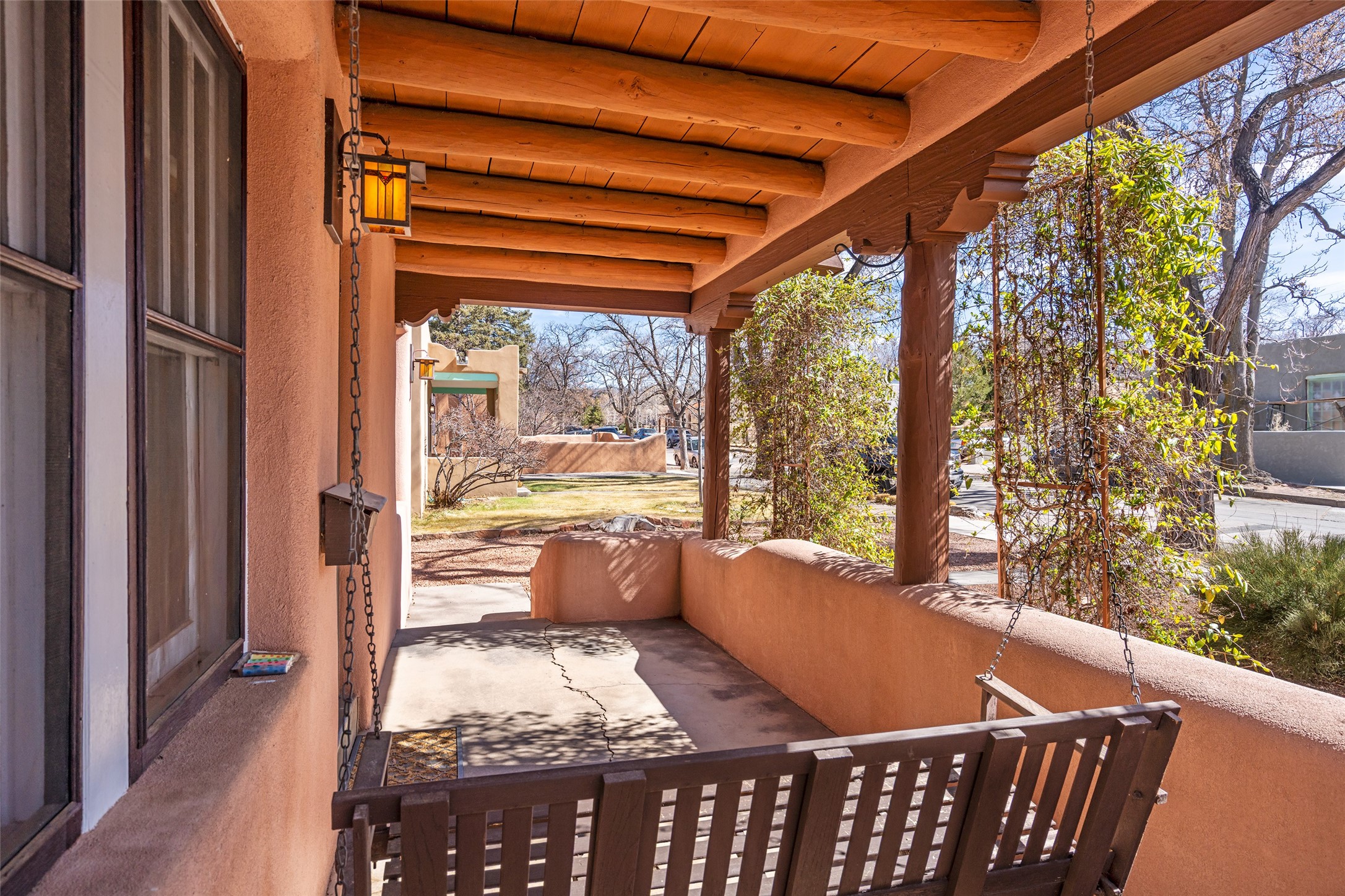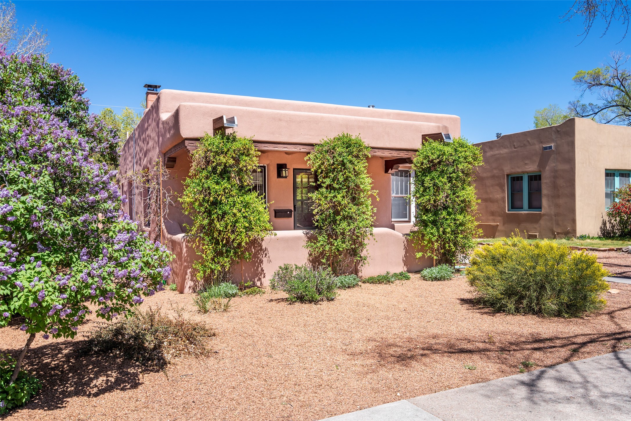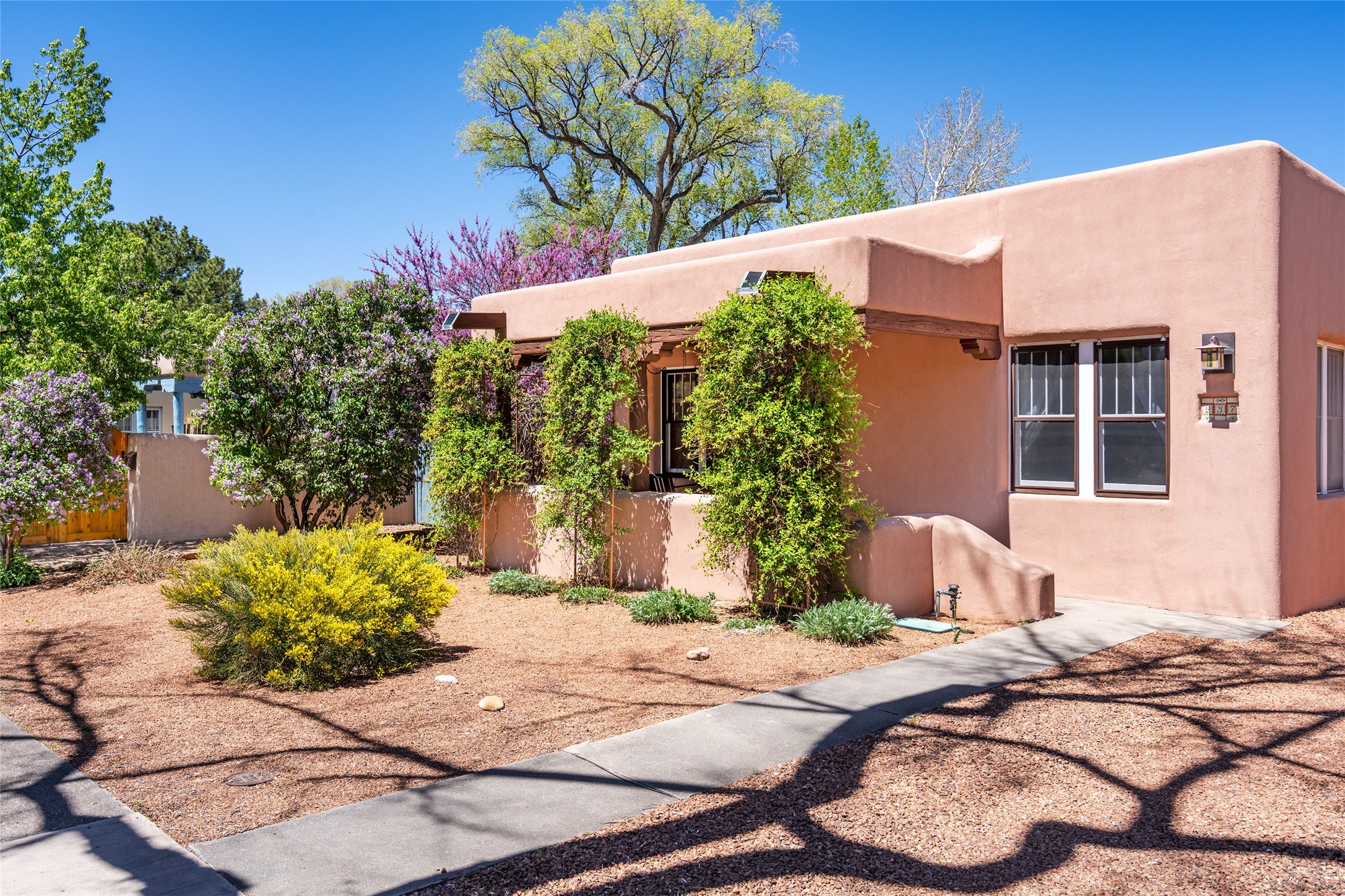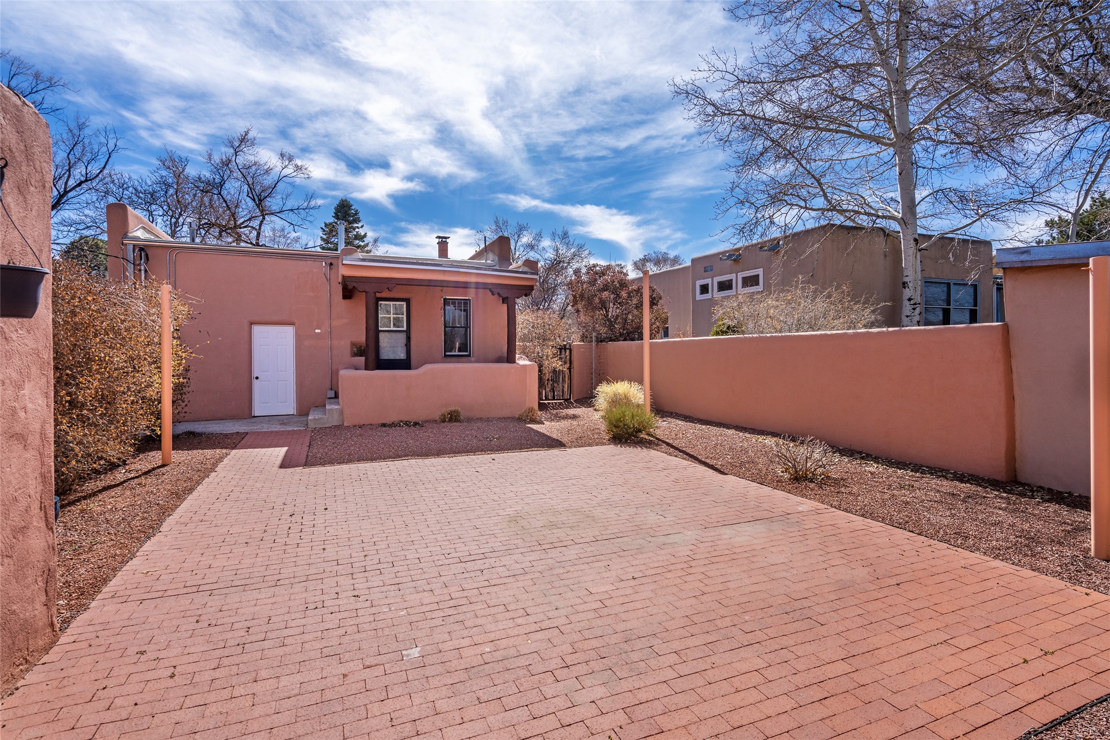 South Capital Charmer. One of the first homes built on Anita Place. Recently professionally staged, this 1726 square foot home has a fresh clean look with the living, dining and two bedrooms professionally re-painted. This gem is on 2 levels. The upstairs level has a total of 2 bedrooms, with one 3/4 bathroom and another 3/4 bathroom in the spacious, finished basement. Updated kitchen and bathrooms. Hardwood floors are in excellent shape. Carpet and tile flooring downstairs. Relax on the front porch swing and or enjoy the spacious back yard. There is also a non heated, 420 square foot detached studio/garage and or workshop. Wonderful location on a quiet street. Less than a mile to the Santa Fe Plaza and the Railyard District.