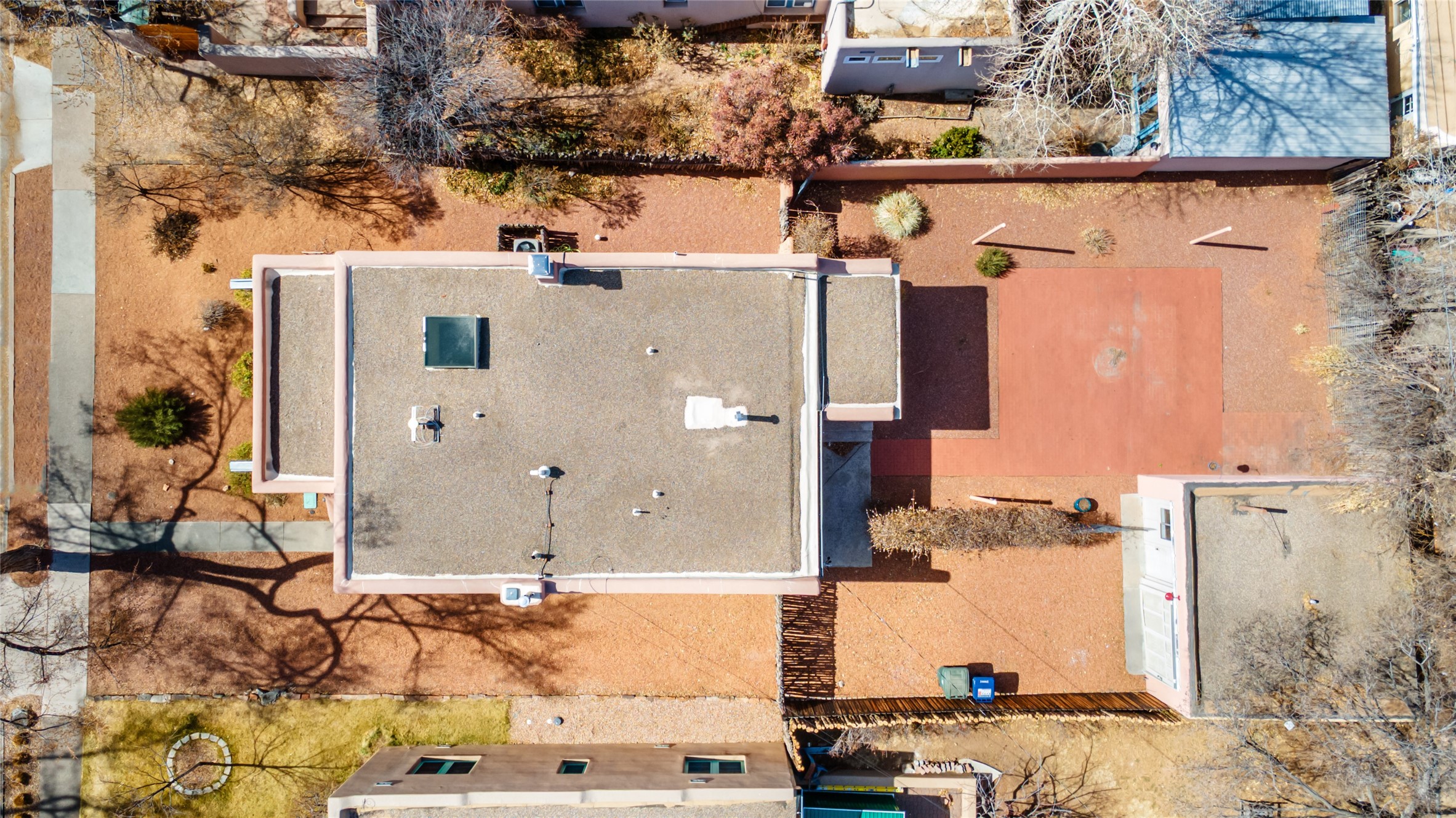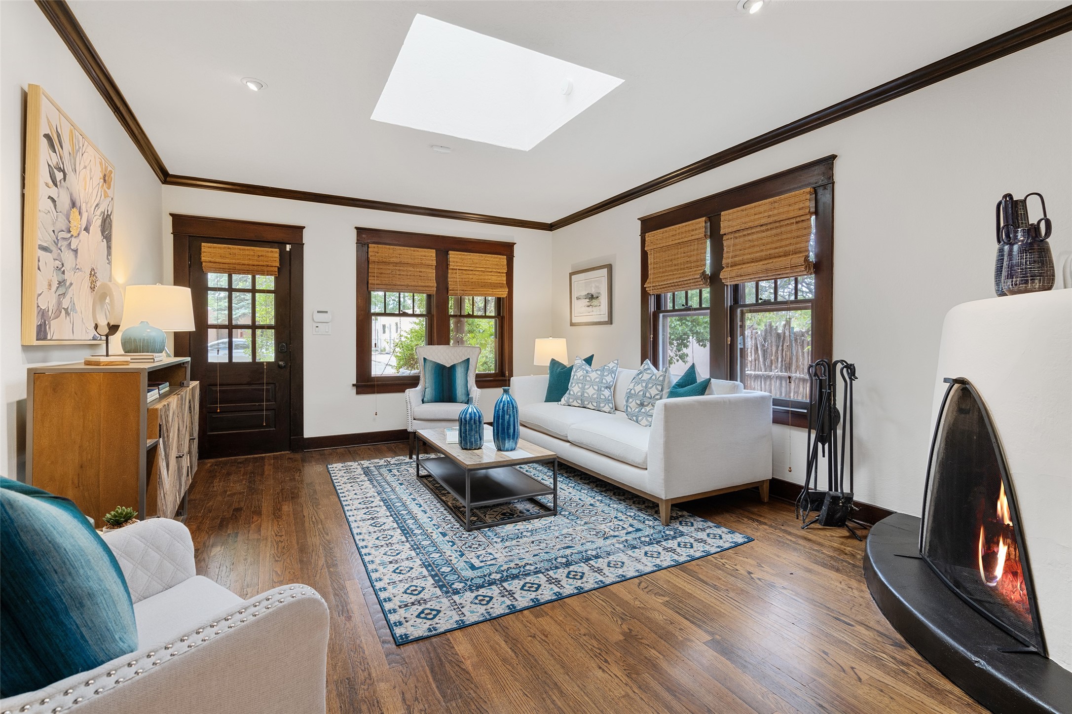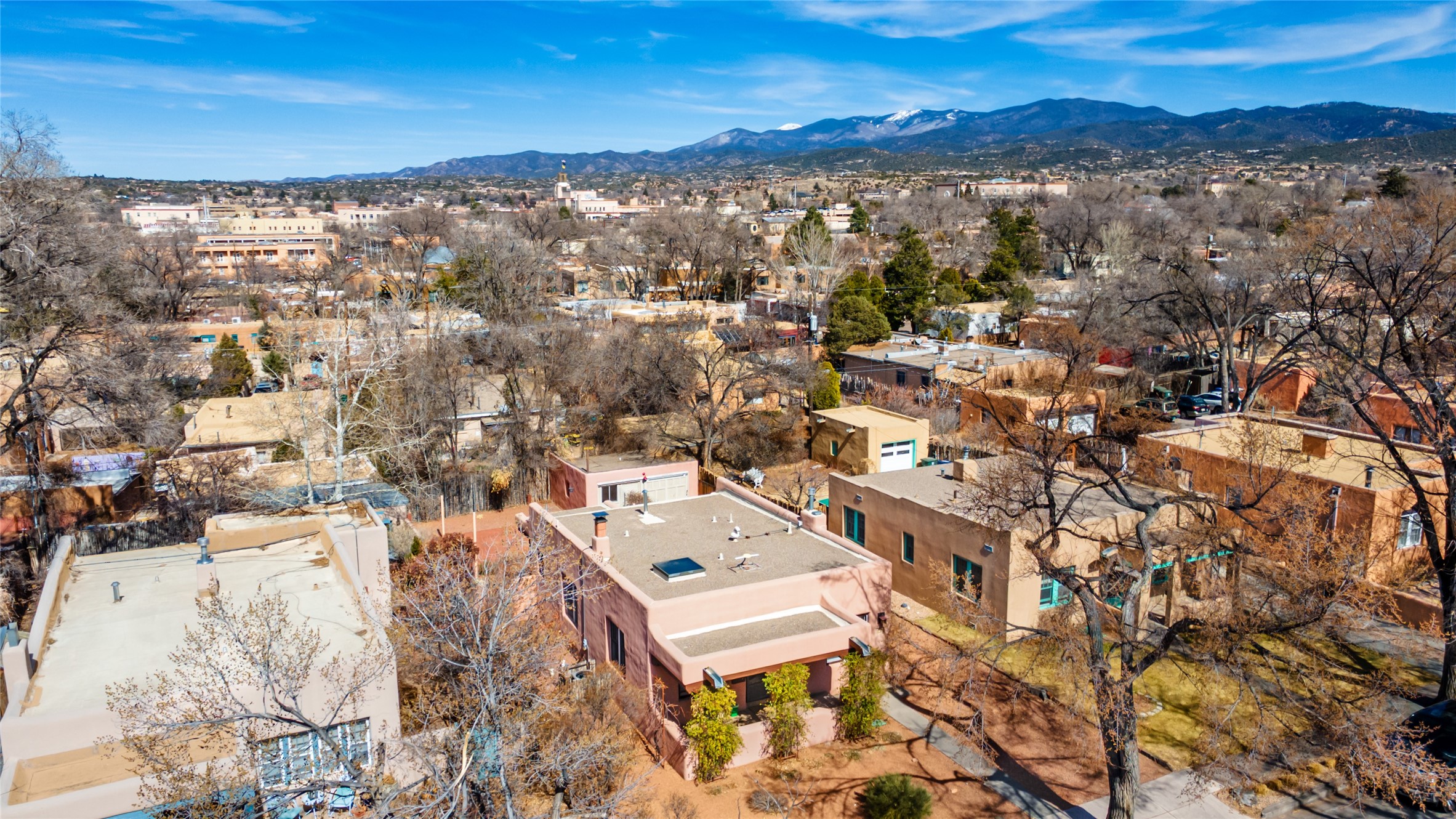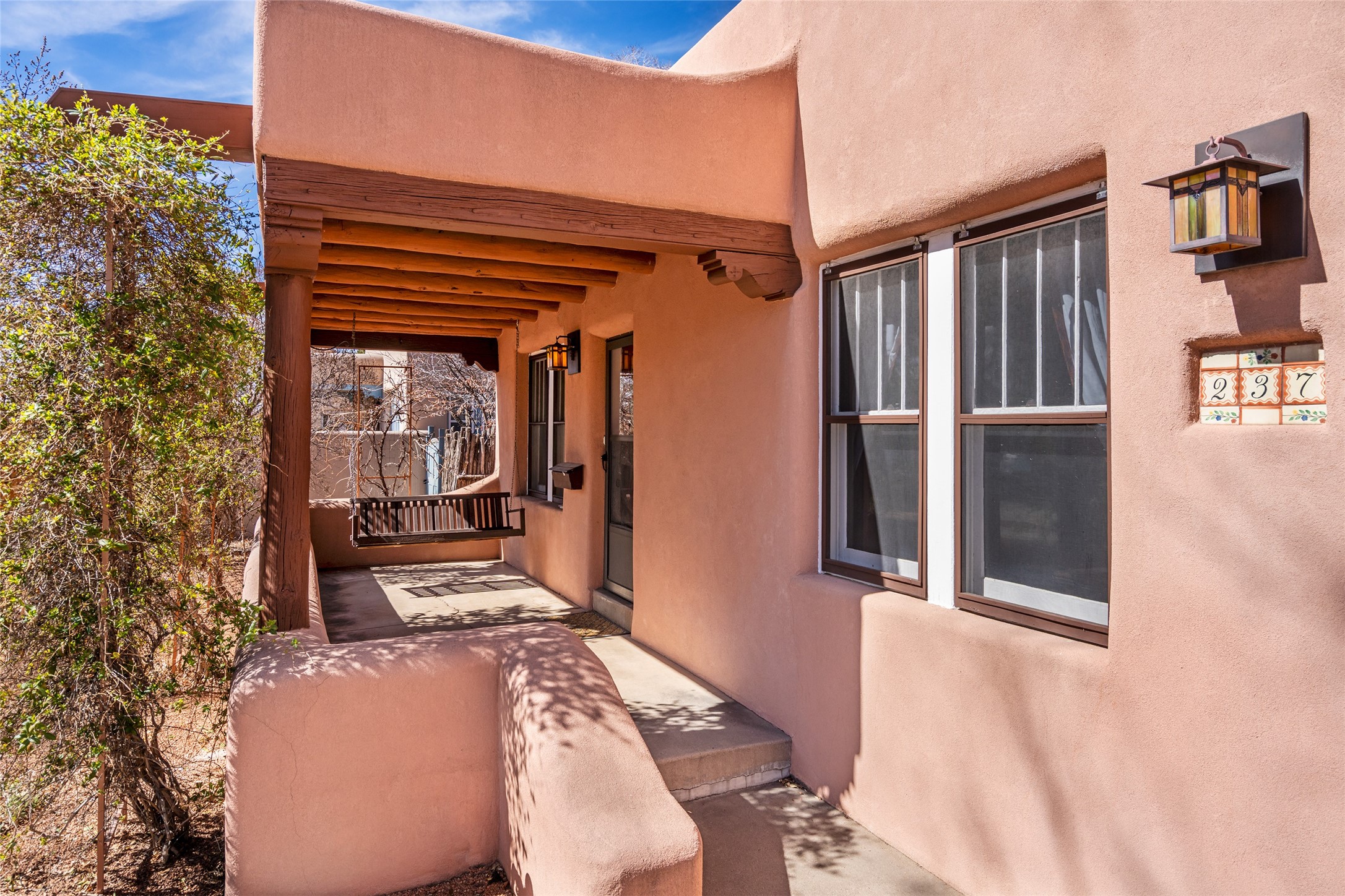 South Capital Charmer. One of the first homes built on Anita Place. Recently professionally staged, this 1726 square foot home has a fresh clean look with the living, dining and two bedrooms professionally re-painted. This gem is on 2 levels. The upstairs level has a total of 2 bedrooms, with one 3/4 bathroom and another 3/4 bathroom in the spacious, finished basement. Updated kitchen and bathrooms. Hardwood floors are in excellent shape. Carpet and tile flooring downstairs. Relax on the front porch swing and or enjoy the spacious back yard. There is also a non heated, 420 square foot detached studio/garage and or workshop. Wonderful location on a quiet street. Less than a mile to the Santa Fe Plaza and the Railyard District.
