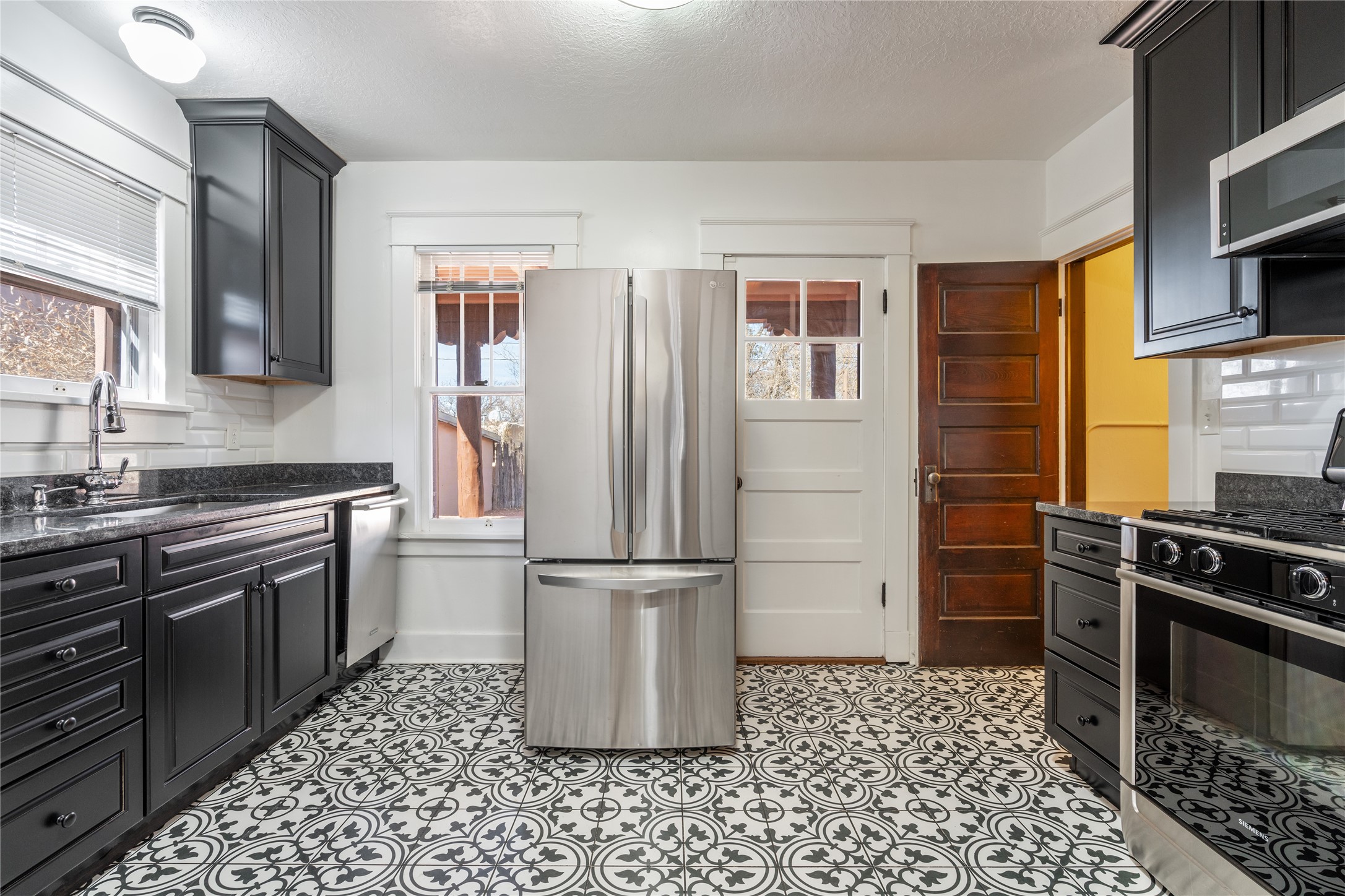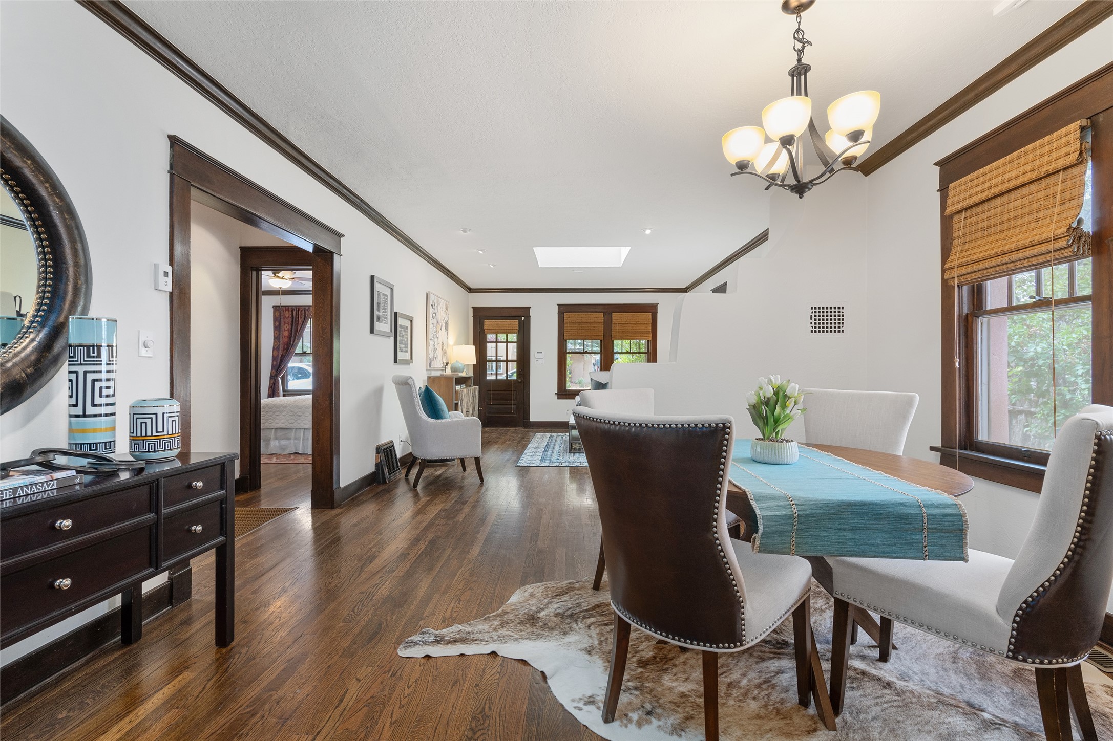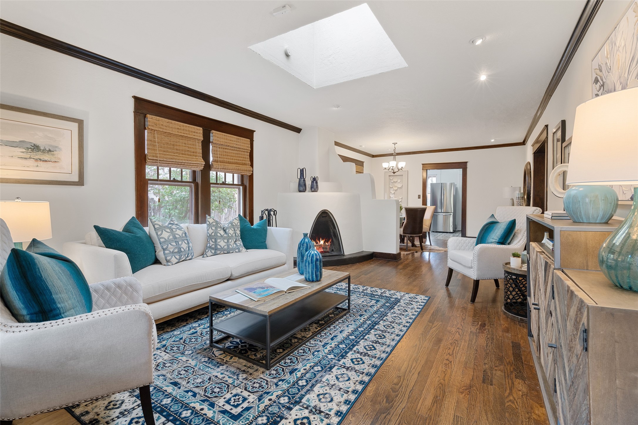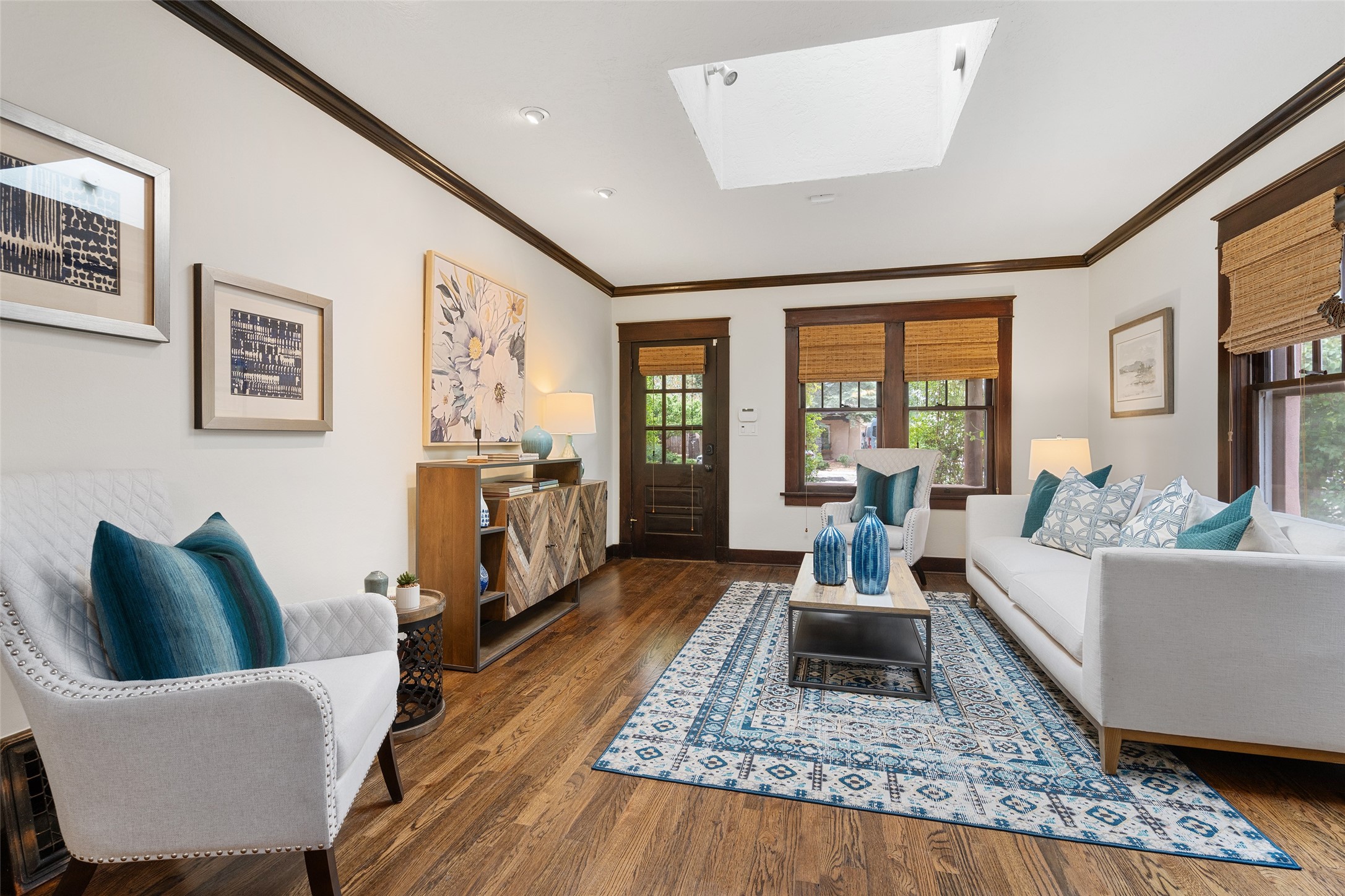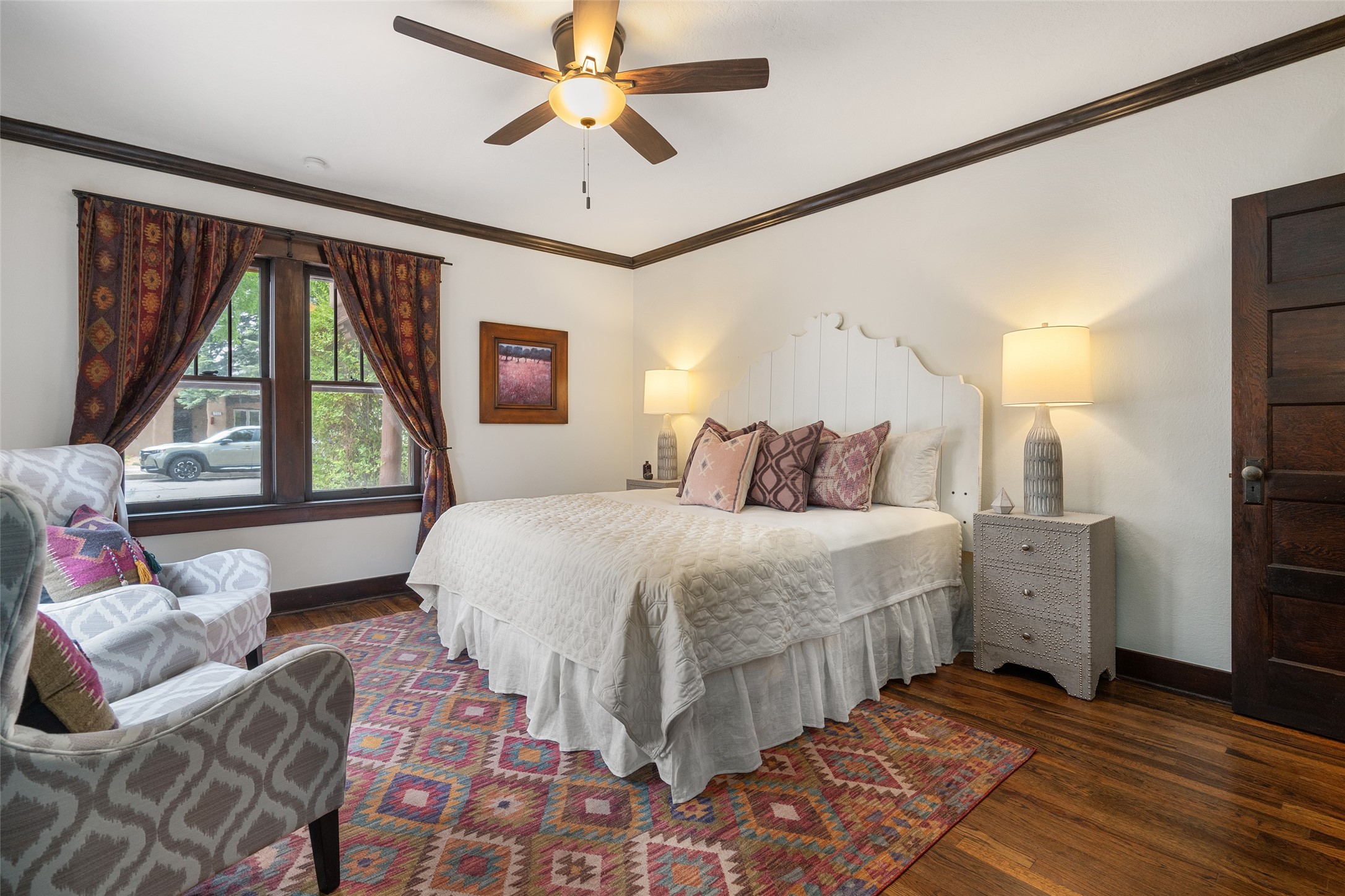 South Capital Charmer. One of the first homes built on Anita Place. Recently professionally staged, this 1726 square foot home has a fresh clean look with the living, dining and two bedrooms professionally re-painted. This gem is on 2 levels. The upstairs level has a total of 2 bedrooms, with one 3/4 bathroom and another 3/4 bathroom in the spacious, finished basement. Updated kitchen and bathrooms. Hardwood floors are in excellent shape. Carpet and tile flooring downstairs. Relax on the front porch swing and or enjoy the spacious back yard. There is also a non heated, 420 square foot detached studio/garage and or workshop. Wonderful location on a quiet street. Less than a mile to the Santa Fe Plaza and the Railyard District.