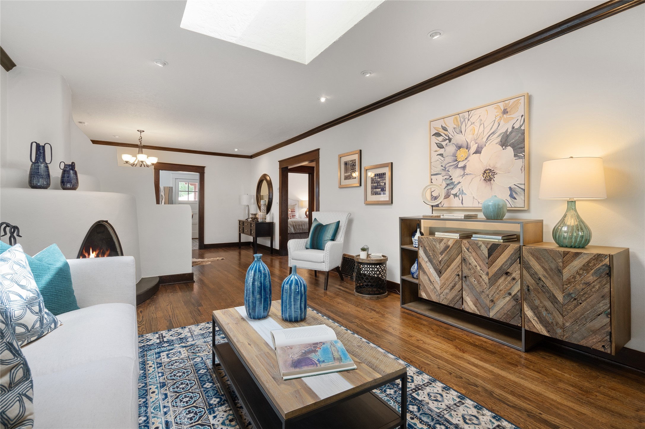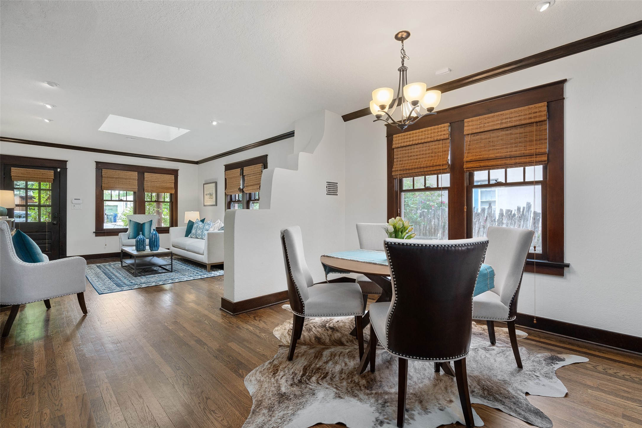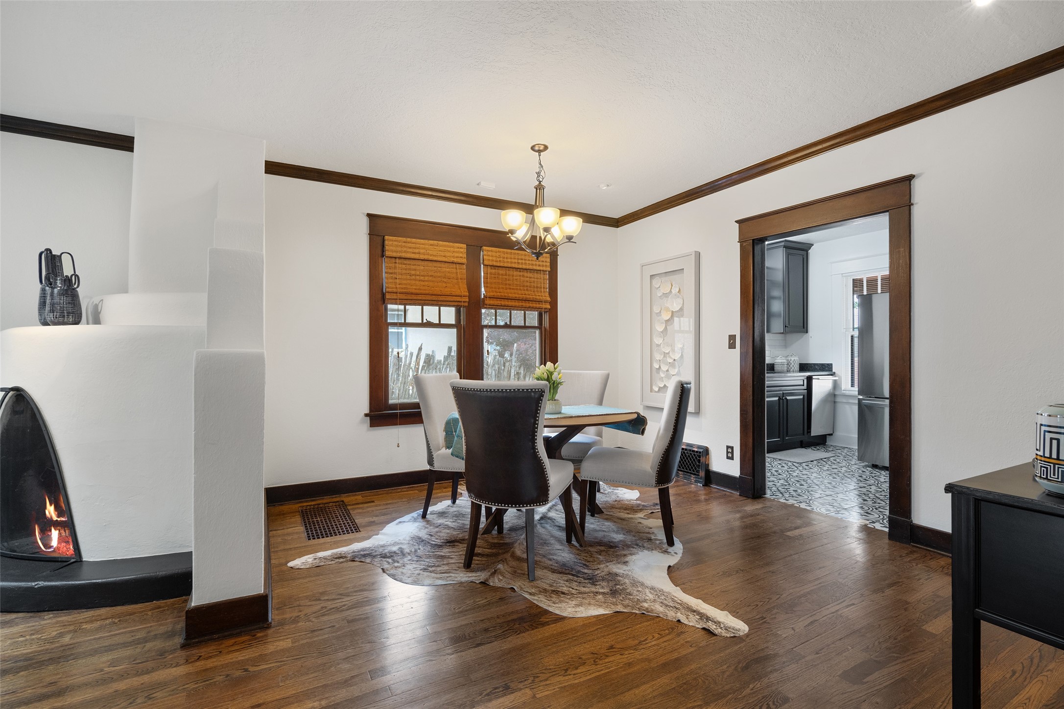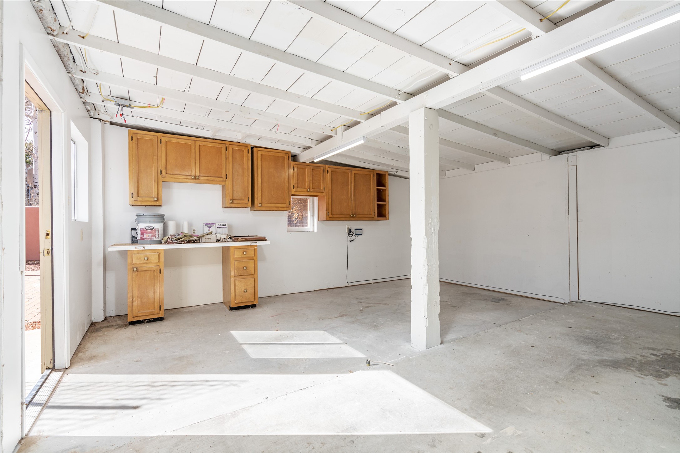 South Capital Charmer. One of the first homes built on Anita Place. Recently professionally staged, this 1726 square foot home has a fresh clean look with the living, dining and two bedrooms professionally re-painted. This gem is on 2 levels. The upstairs level has a total of 2 bedrooms, with one 3/4 bathroom and another 3/4 bathroom in the spacious, finished basement. Updated kitchen and bathrooms. Hardwood floors are in excellent shape. Carpet and tile flooring downstairs. Relax on the front porch swing and or enjoy the spacious back yard. There is also a non heated, 420 square foot detached studio/garage and or workshop. Wonderful location on a quiet street. Less than a mile to the Santa Fe Plaza and the Railyard District.