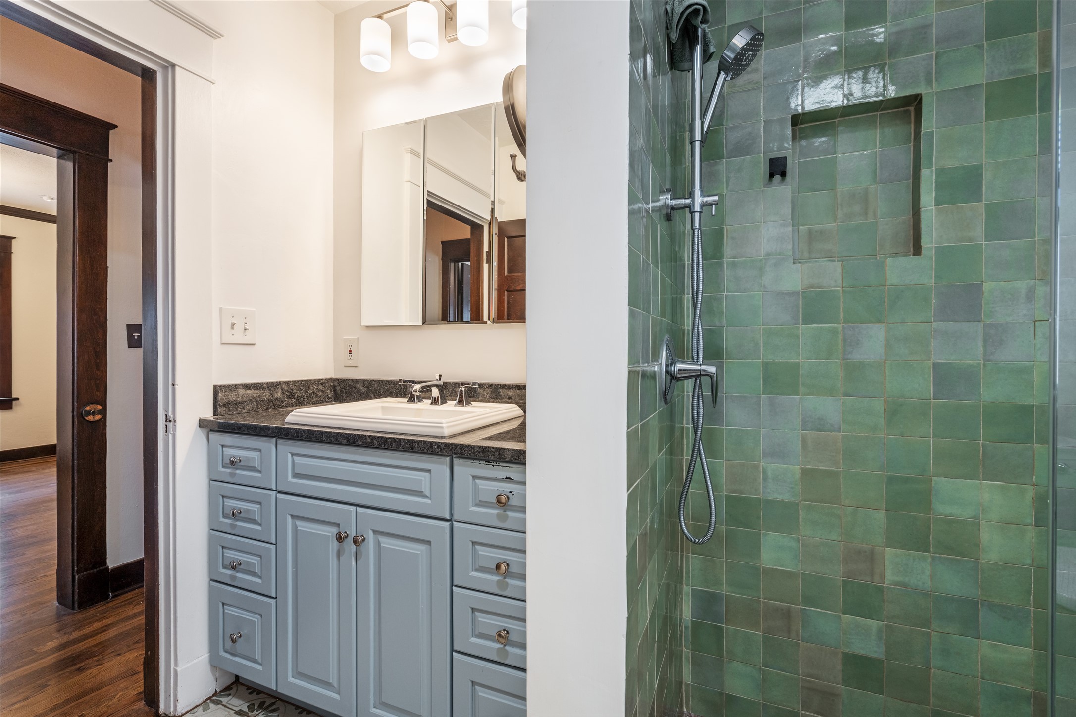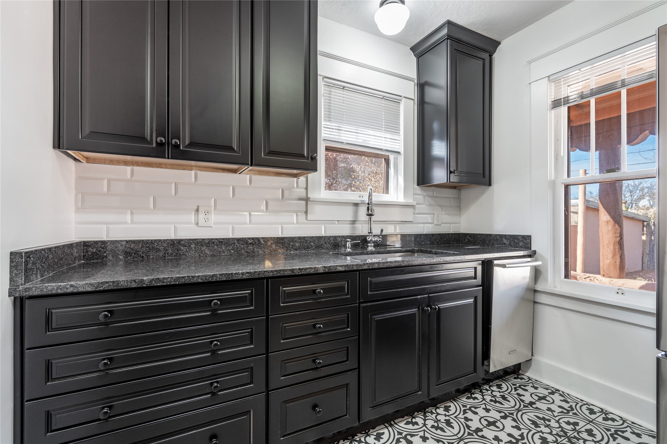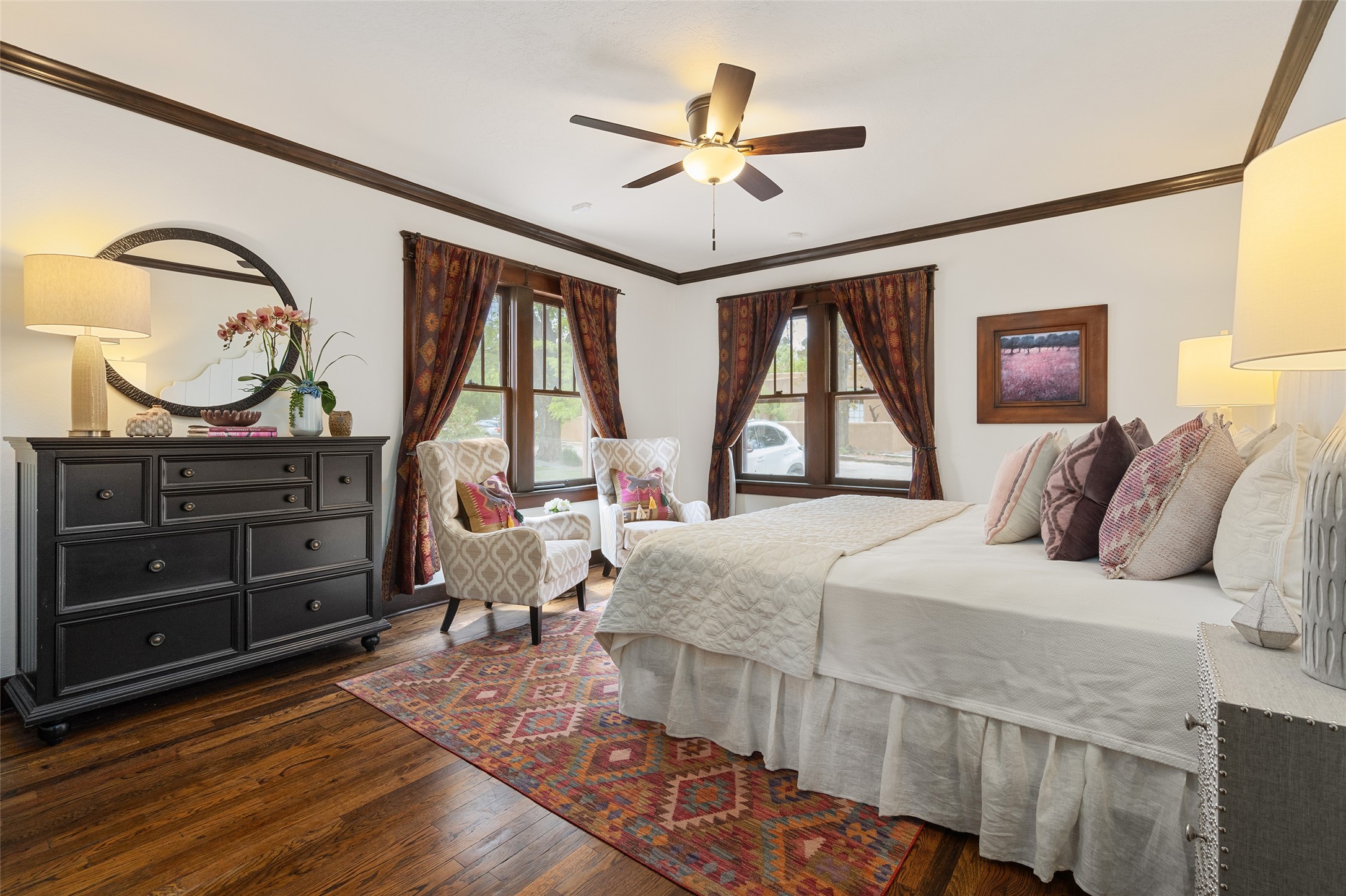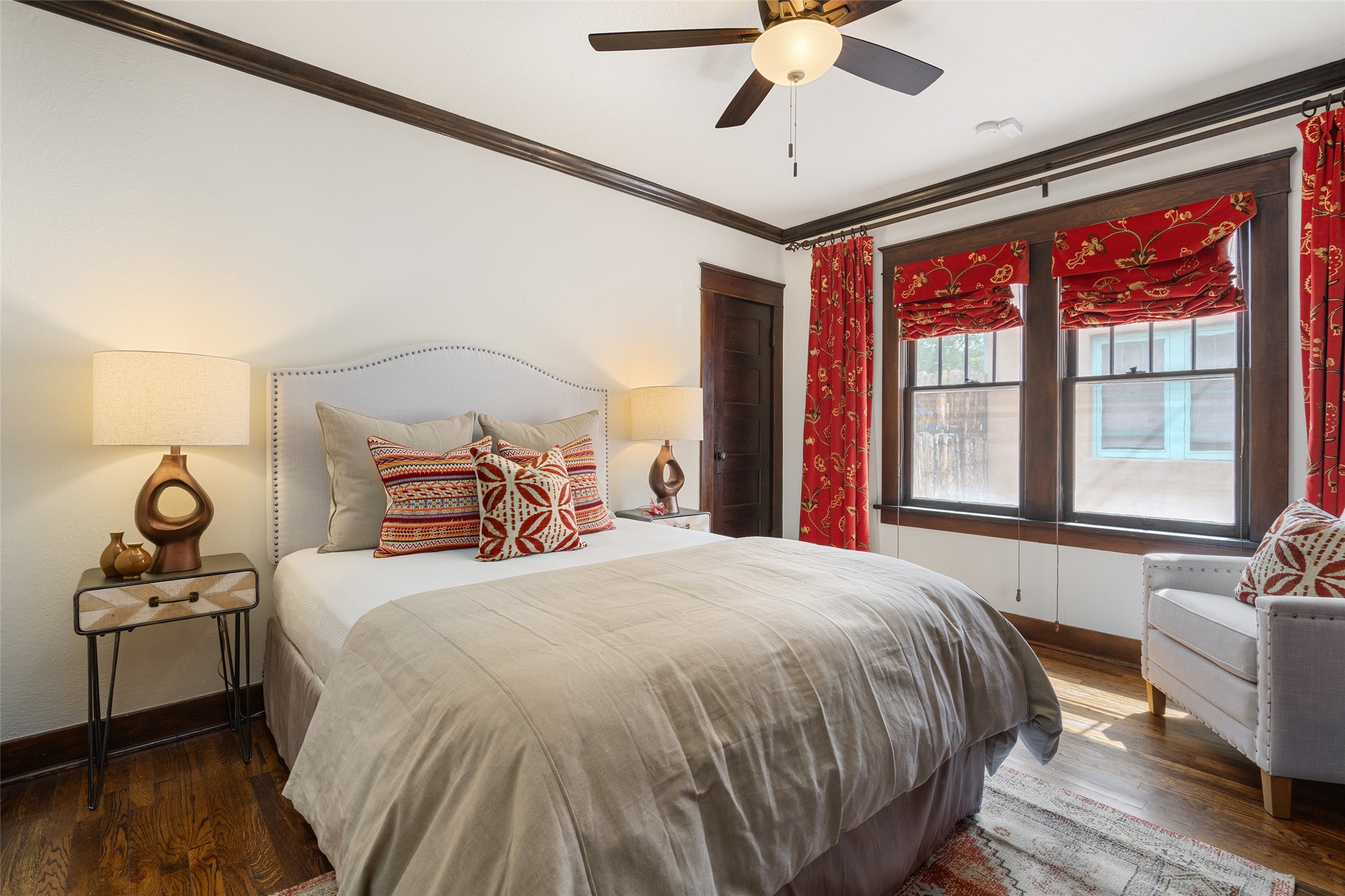 South Capital Charmer. One of the first homes built on Anita Place. Recently professionally staged, this 1726 square foot home has a fresh clean look with the living, dining and two bedrooms professionally re-painted. This gem is on 2 levels. The upstairs level has a total of 2 bedrooms, with one 3/4 bathroom and another 3/4 bathroom in the spacious, finished basement. Updated kitchen and bathrooms. Hardwood floors are in excellent shape. Carpet and tile flooring downstairs. Relax on the front porch swing and or enjoy the spacious back yard. There is also a non heated, 420 square foot detached studio/garage and or workshop. Wonderful location on a quiet street. Less than a mile to the Santa Fe Plaza and the Railyard District.
