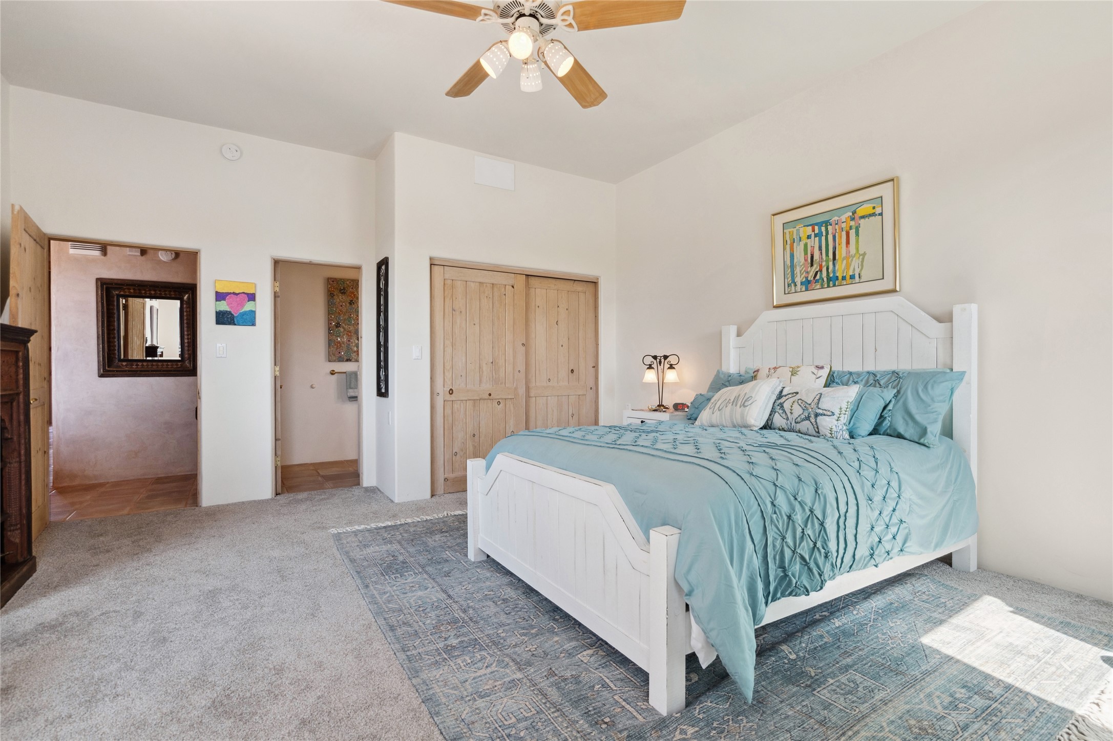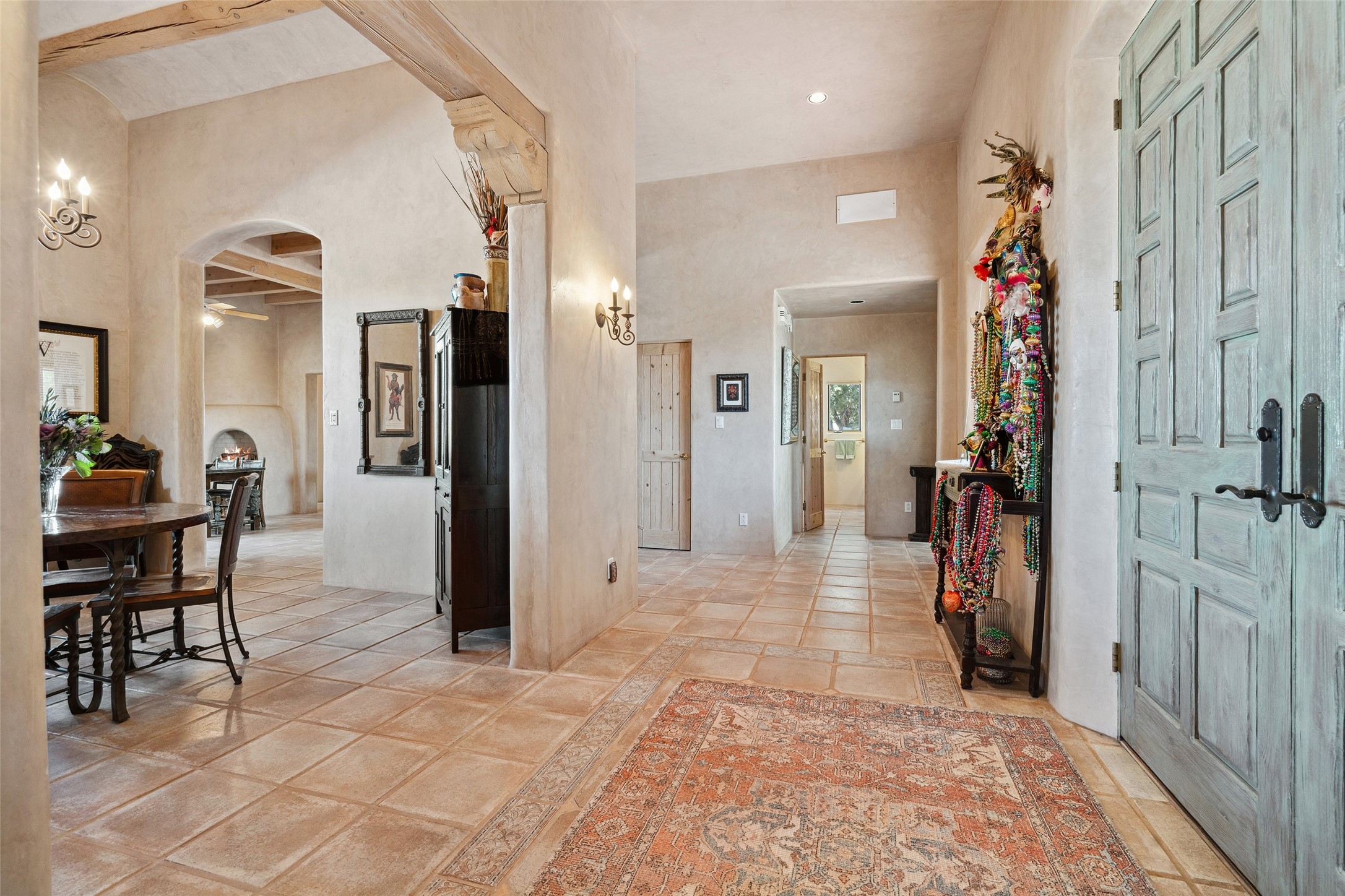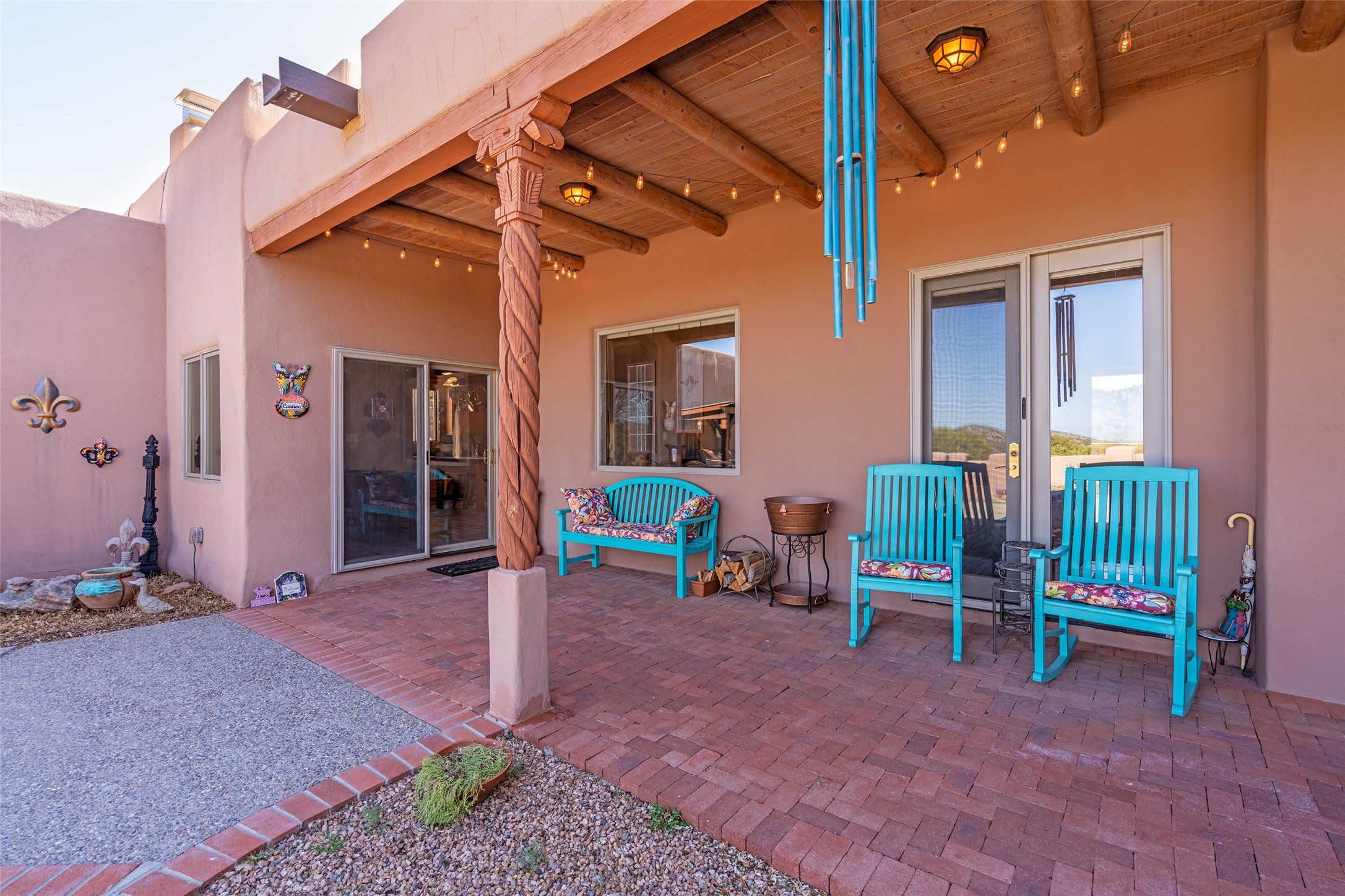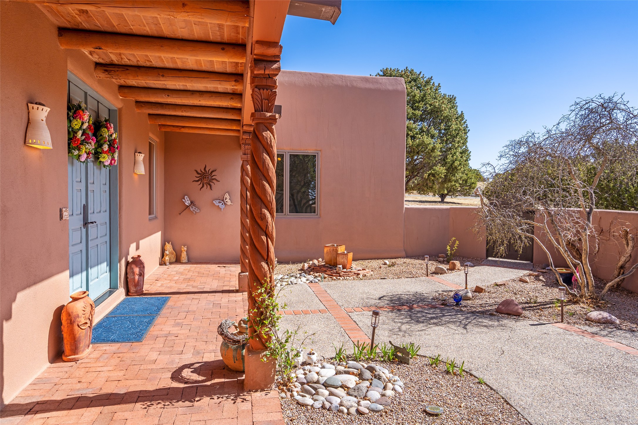 Exquisite Santa Fe Retreat with Sweeping Mountain Views3 Camino Costadino | Dos Griegos | Santa Fe, NMNestled in the highly sought-after Dos Griegos neighborhood, this stunning 3-bedroom, 3-bathroom residence captures the essence of Santa Fe living with breathtaking views of the Jemez Mountains and the foothills of the Sangre de Cristo range.Step into a grand great room where 15-foot ceilings, classic vigas, and smooth diamond plaster walls create a warm and timeless elegance. Expansive windows frame the dramatic natural landscape while flooding the home with ambient light--seamlessly blending the beauty of the outdoors with the comfort of the interior.This thoughtfully designed home also features a dedicated craft room and a spacious office just off the garage, offering flexibility for creatives, remote professionals, or those in need of extra space.Recent upgrades include a brand-new roof and Lifetime Fiberspan canales, ensuring long-term durability and peace of mind. A versatile 13' x 13' shed provides ample room for storage, hobbies, or workshop use.Whether you're savoring a quiet evening under the stars or hosting guests against a backdrop of spectacular mountain views, 3 Camino Costadino offers a rare blend of Southwestern charm, functionality, and enduring quality.