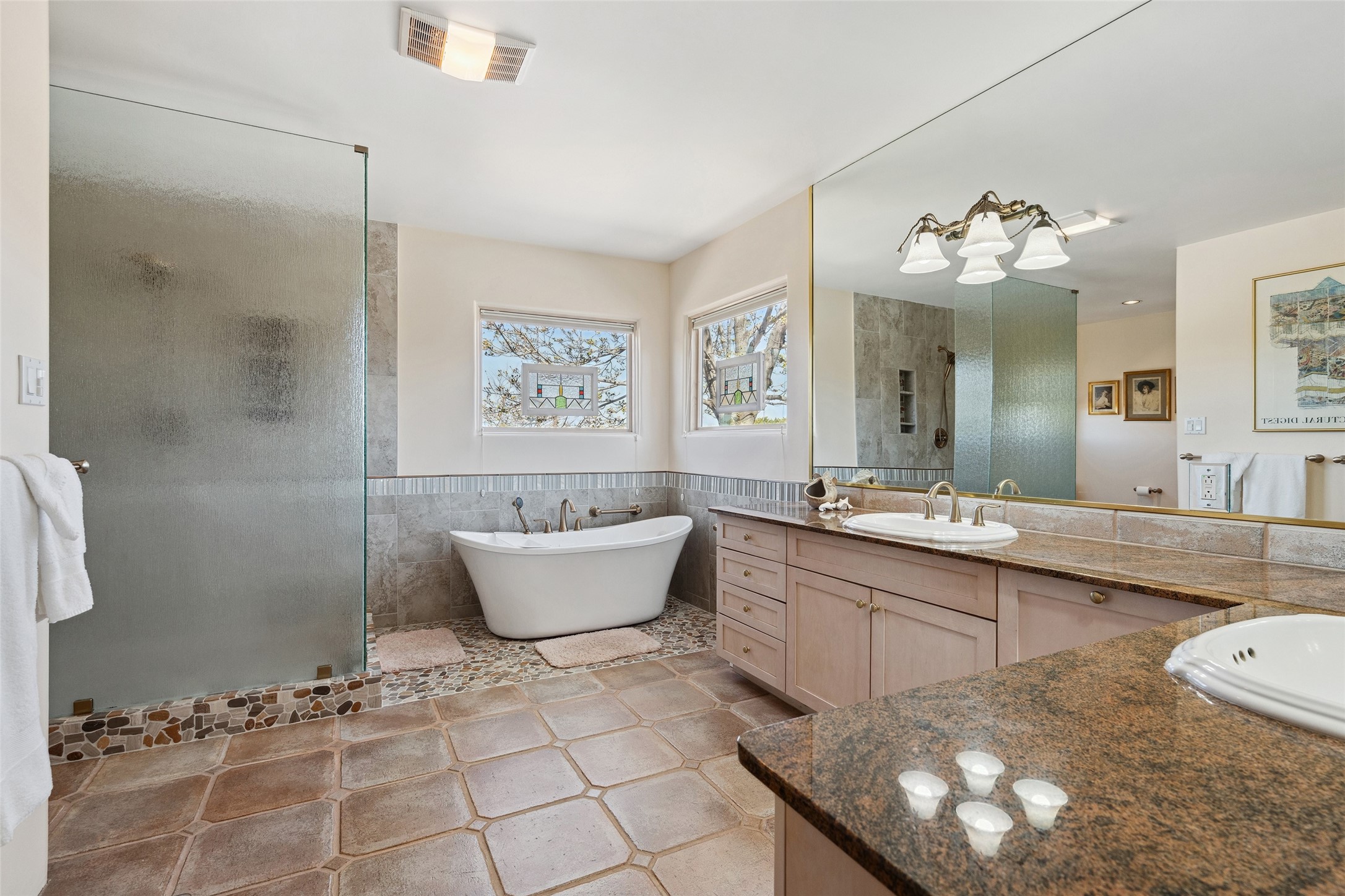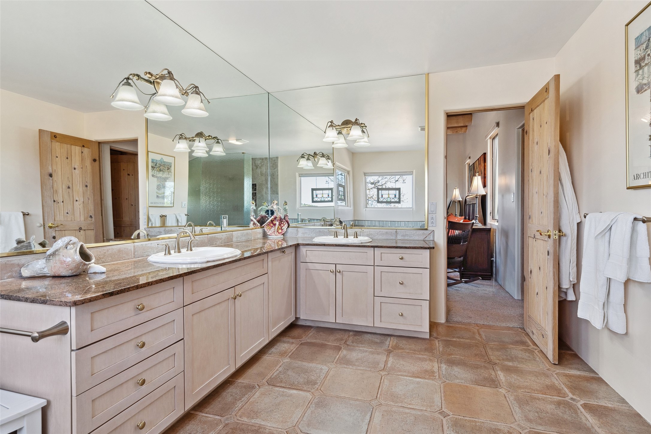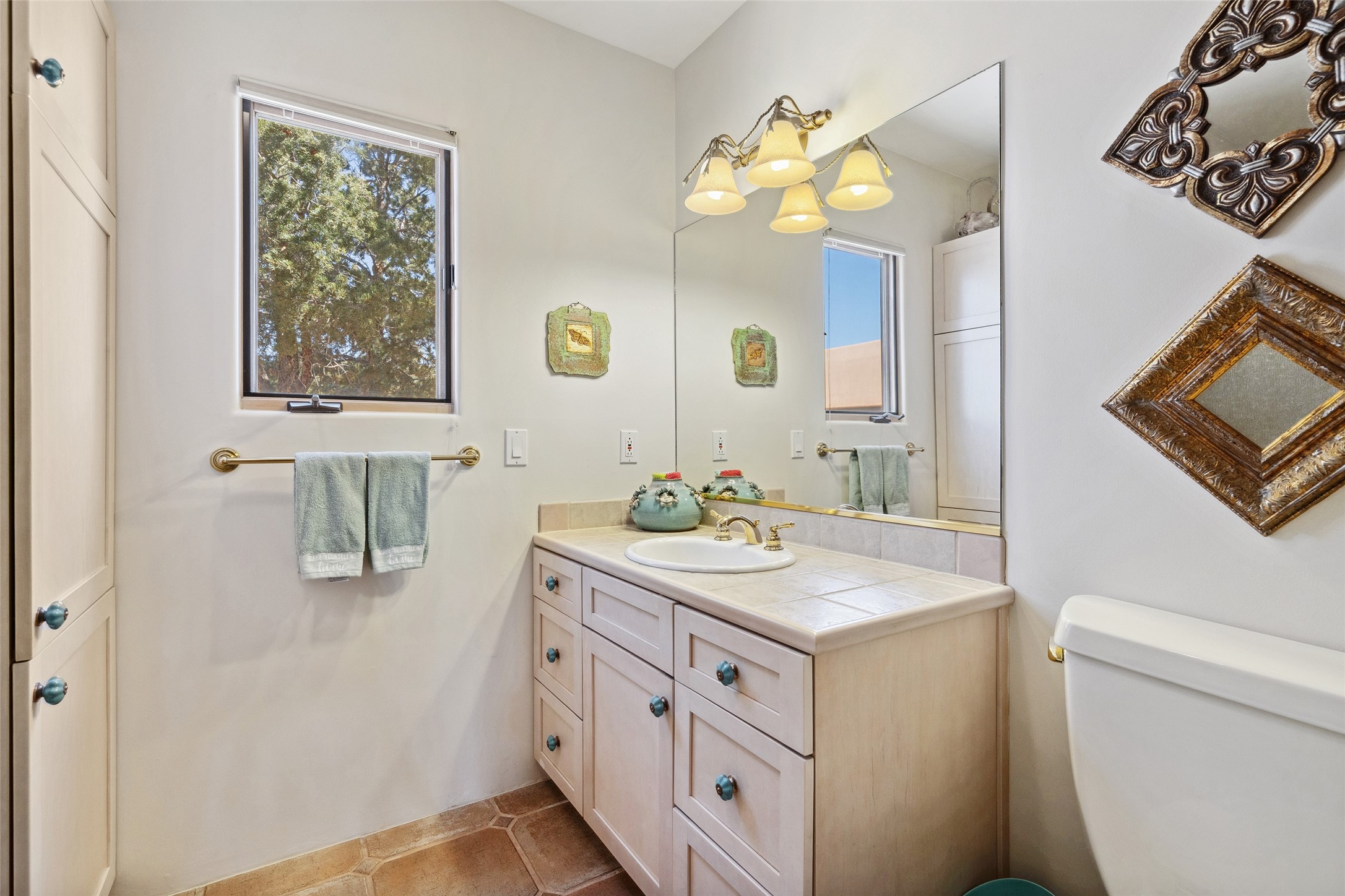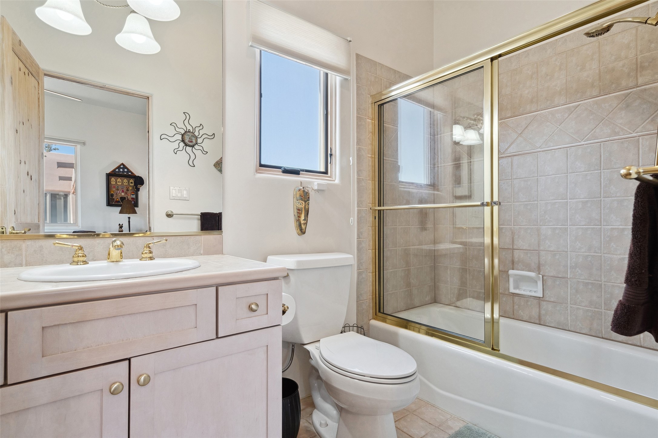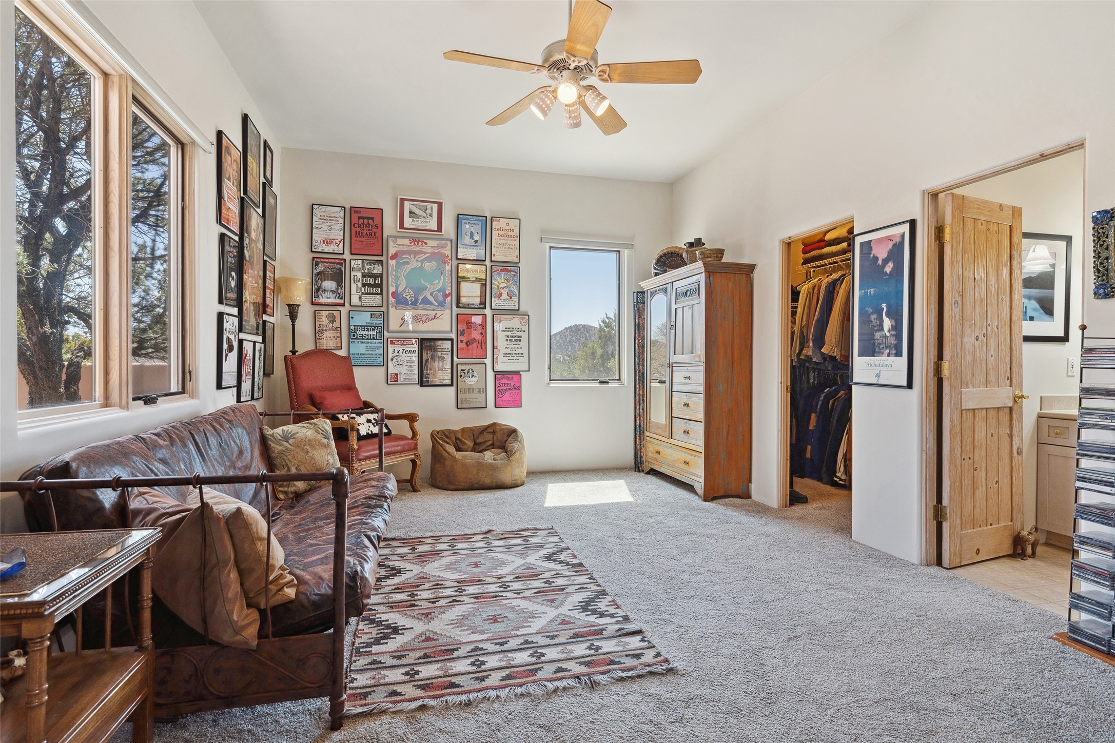 Exquisite Santa Fe Retreat with Sweeping Mountain Views3 Camino Costadino | Dos Griegos | Santa Fe, NMNestled in the highly sought-after Dos Griegos neighborhood, this stunning 3-bedroom, 3-bathroom residence captures the essence of Santa Fe living with breathtaking views of the Jemez Mountains and the foothills of the Sangre de Cristo range.Step into a grand great room where 15-foot ceilings, classic vigas, and smooth diamond plaster walls create a warm and timeless elegance. Expansive windows frame the dramatic natural landscape while flooding the home with ambient light--seamlessly blending the beauty of the outdoors with the comfort of the interior.This thoughtfully designed home also features a dedicated craft room and a spacious office just off the garage, offering flexibility for creatives, remote professionals, or those in need of extra space.Recent upgrades include a brand-new roof and Lifetime Fiberspan canales, ensuring long-term durability and peace of mind. A versatile 13' x 13' shed provides ample room for storage, hobbies, or workshop use.Whether you're savoring a quiet evening under the stars or hosting guests against a backdrop of spectacular mountain views, 3 Camino Costadino offers a rare blend of Southwestern charm, functionality, and enduring quality.