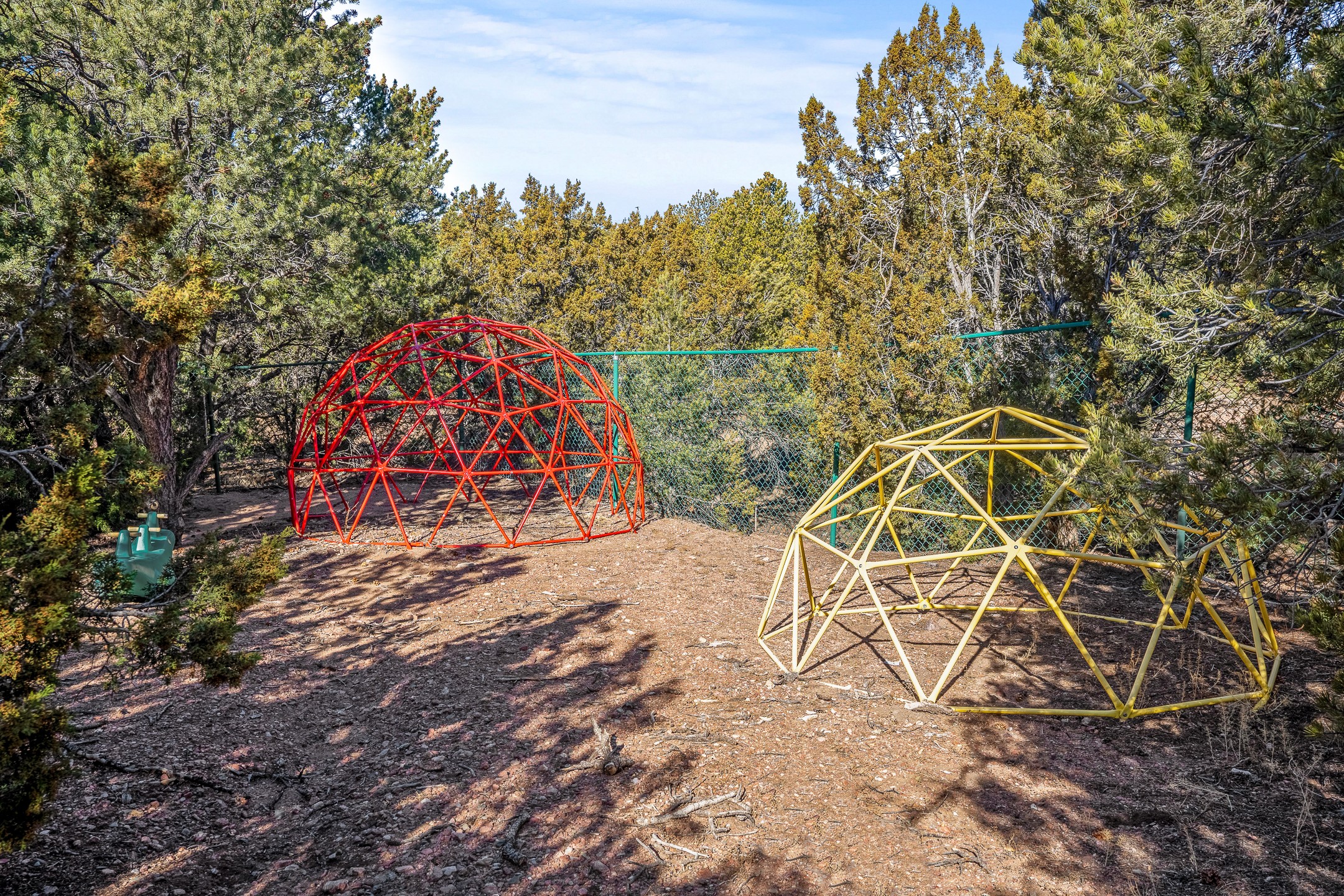 Nestled in the highly desirable Barranca Road area, located just 5 minutes from downtown Santa Fe and a short drive to Bishop's Lodge and Tesuque, this stunning 3-bedroom, 3-bathroom Santa Fe-style home offers 3,100 sq. ft. of beautifully designed living space on a private 1.75-acre lot. With a single-level open floor plan and multiple living areas, this meticulously maintained home blends timeless elegance with modern upgrades. Included is a bonus room that is currently used as a fourth bedroom with courtyard access and privacy. This home boasts classic Southwestern details, including vigas, corbels, and tongue-and-groove ceilings throughout. The primary suite is a true retreat, with double walk-in closets, featuring a private courtyard with a Caldera salt water hot tub, and direct outdoor access, perfect for stargazing. Additional upgrades include refinished and newly added tile flooring in the bonus room, zoned heating and A/C splits in every living space, upgraded lighting and hardware, new appliances, and hand-troweled plaster walls. The remodeled TV room features a see-through display wall, adding a contemporary touch to this charming home. Step outside to enjoy breathtaking sunset views from the hilltop backyard. The expansive lot has been thoughtfully maintained, with newly trimmed trees and fencing enclosing most of the property--while still offering space for personal touches. Experience peace, tranquility, and the best of Santa Fe living in this exceptional, competitively priced home. Don't miss this incredible opportunity. Imagine the possibilities and schedule your private tour today!