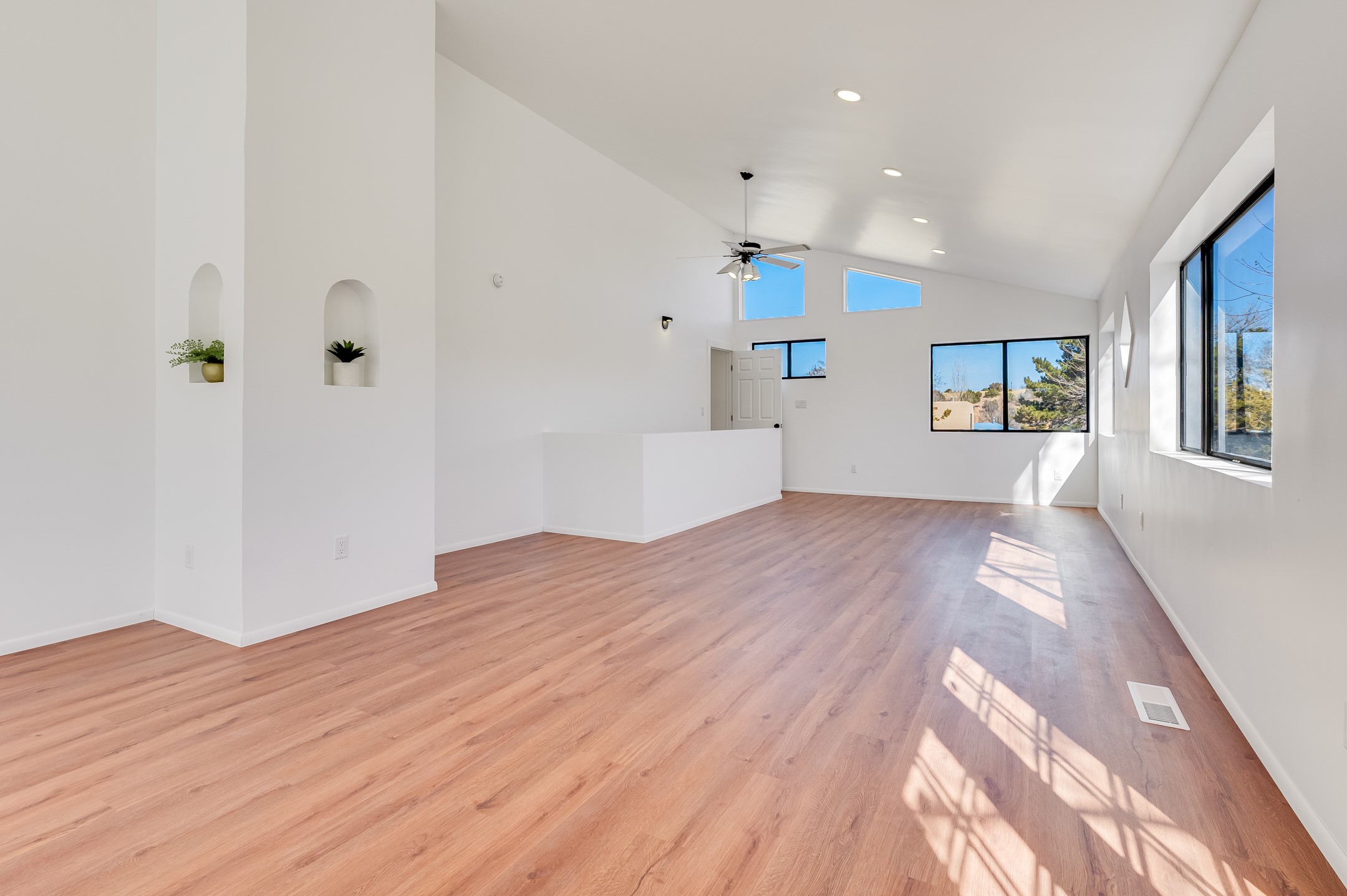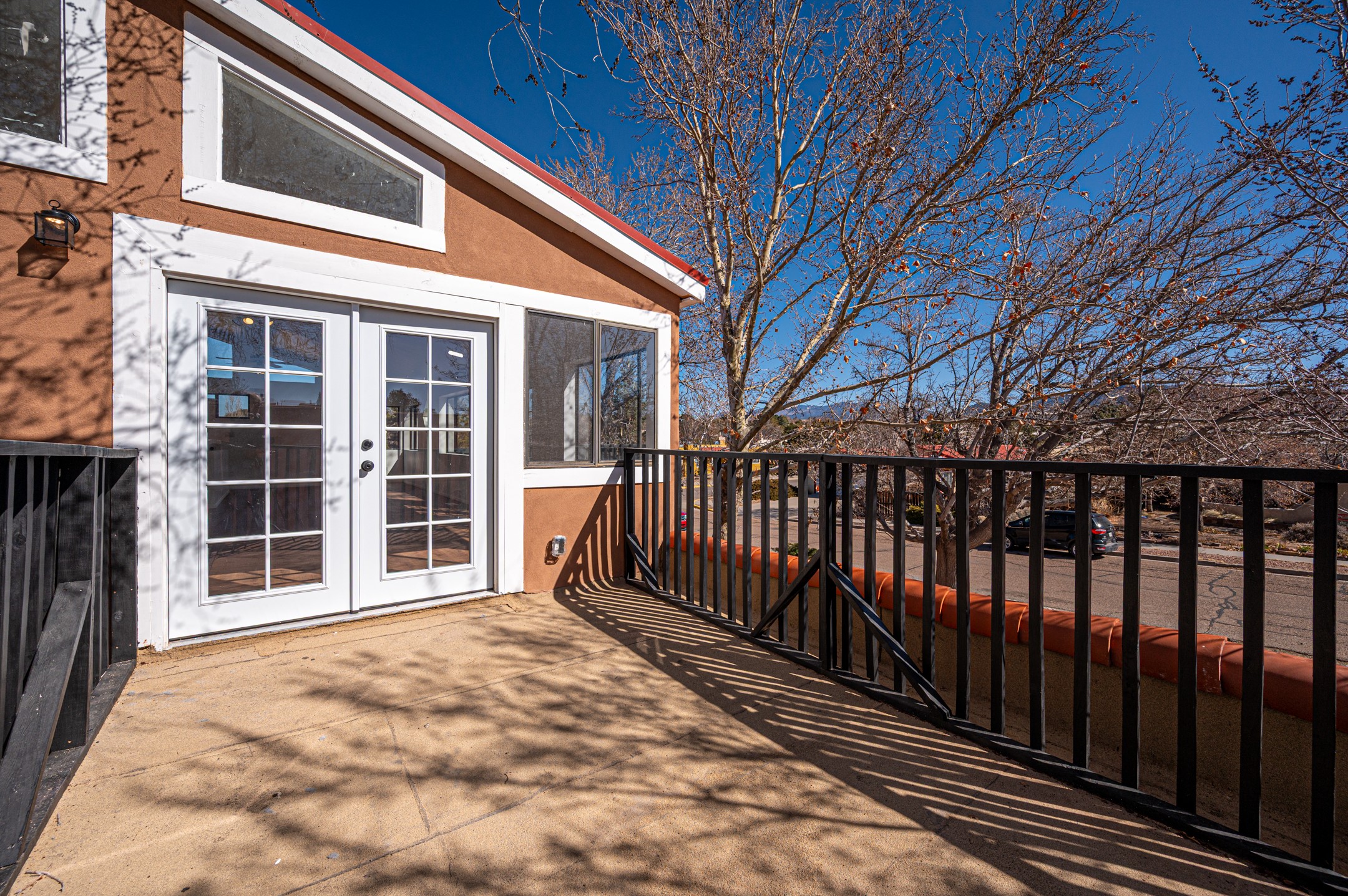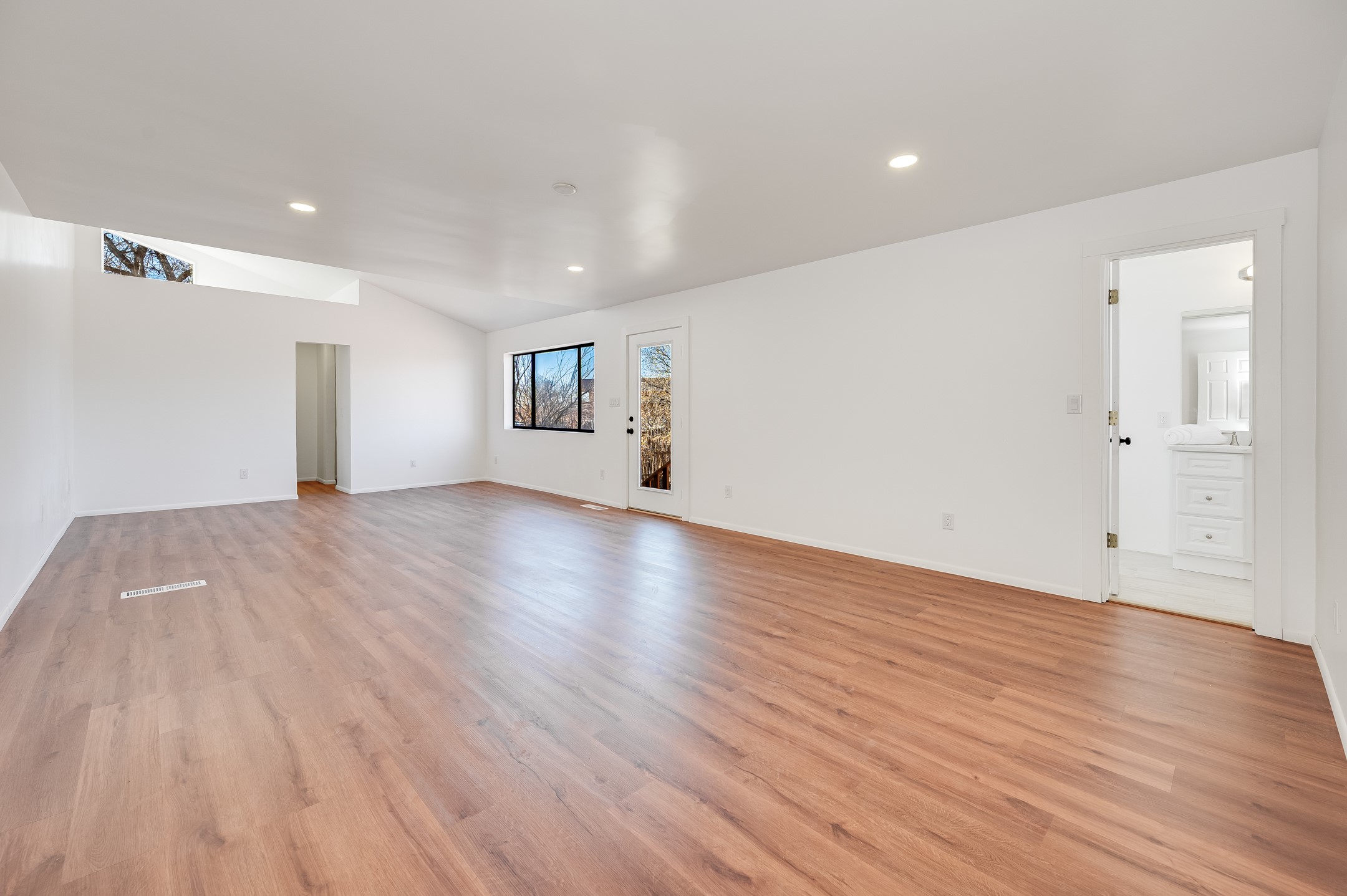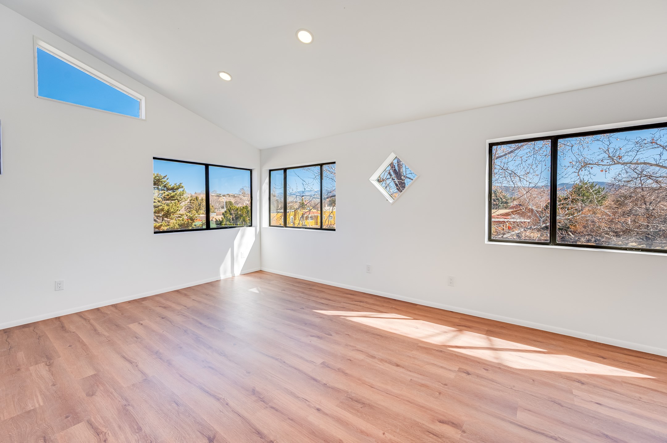 This beautifully renovated 2-level home covers 2,672 square feet of artful design and practicality. Offering an adaptable layout that can be tailored as two or three units, the entire home has been updated with recessed lighting, new kitchens complete with stainless appliances, new bathrooms, and gorgeous tile flooring. With many more features to love, including A/C, kiva fireplace, large balcony, a huge backyard and carport, this stellar property is in a prime location for commuters and ready for move-in! The main home offers two bedrooms on the main level. Upstairs, a spacious and light filled suite with secondary living area also has a separate private entry that can easily double as a light-filled studio or in-law suite, while the attached guest house presents another passive income opportunity. This established neighborhood with no HOA is ideal for commuters, a stones throw from shops, and central to everything Santa Fe has to offer.