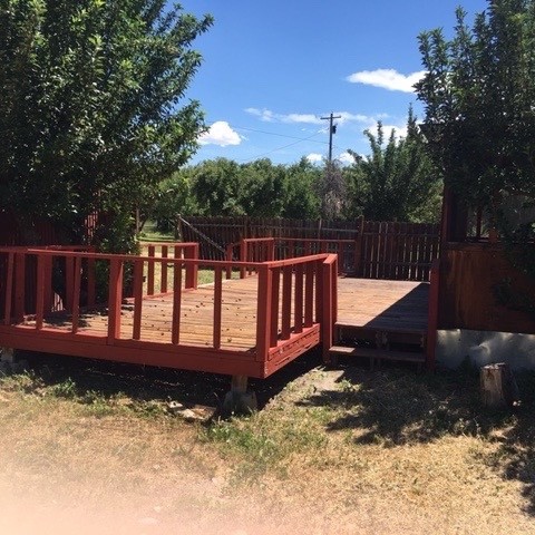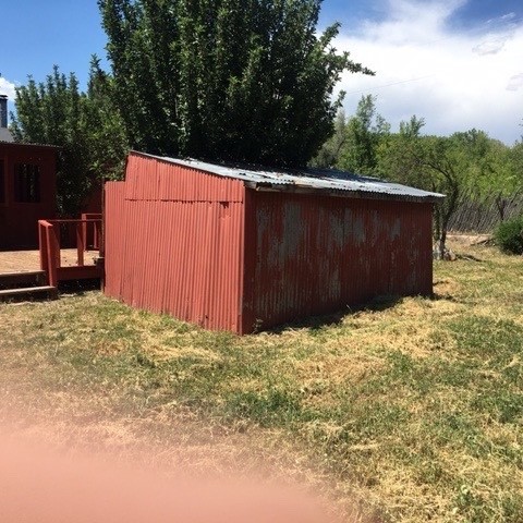 Two homes,ideally located in Velarde, NM were built in 1986. The two-story home features 2 bedrooms / 1 bath and the manufactured 3 bedrooms/2 bath. Each has a large covered porch. The main house also has a large exterior deck. Totalscreened porches and deck=1120 sq '. The property is fenced with orchard, pasture/garden area and shed with attached workshop.There are 3 additional smaller storage sheds, one metal,one adobe,(once the pumphouse)and one woodframe attached to guesthouse. The 2-stall carport/workshop is centrally located. Rio Grande is 300' away for fishing and birding.The property has Water Right bordering the Acequia.a goldmmine There are two 250 gallon propane tanks owned. propane heat and wood stove. LOCATED 1/2 WAY-30 min. between Santa Fe and Taos and 10 min to Commercial Ctr. at Espanola. The manufactured has cathedral ceilings, while the guesthouse has 360 view of the mesas and massive rivertrees with its 360 surround windows.