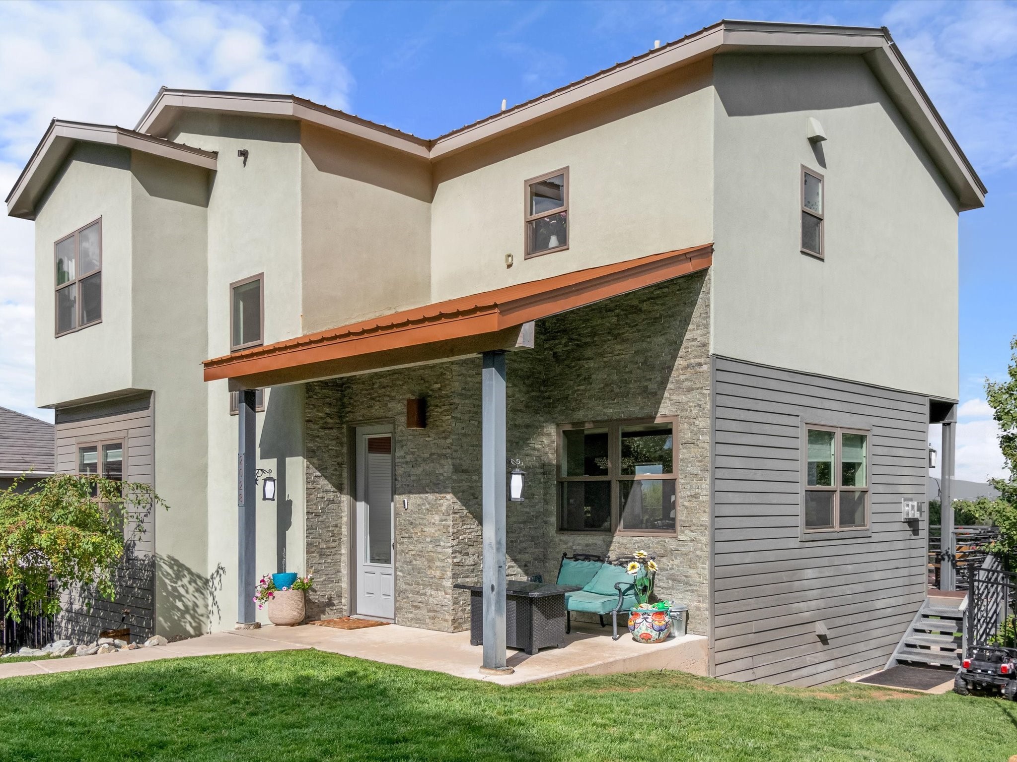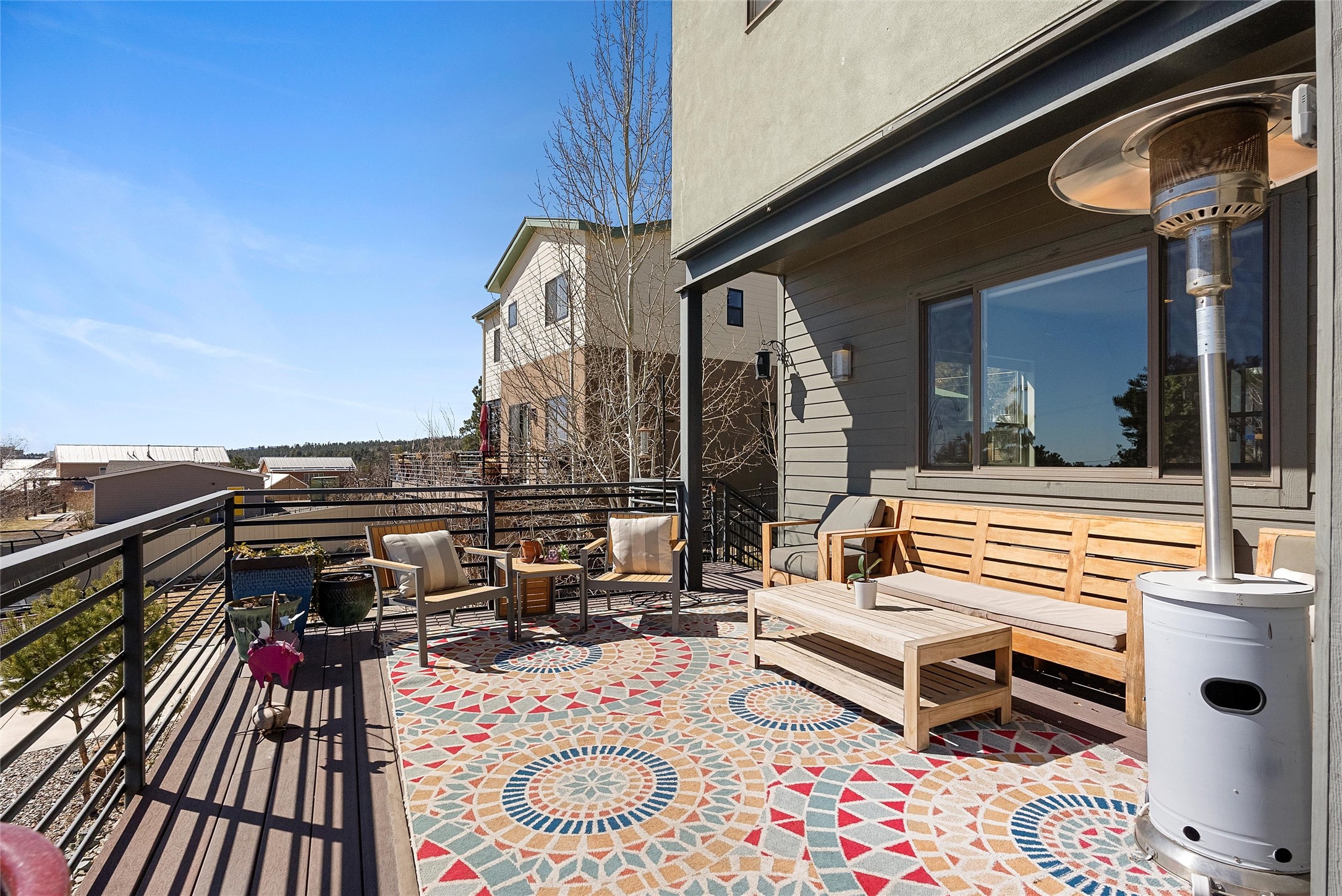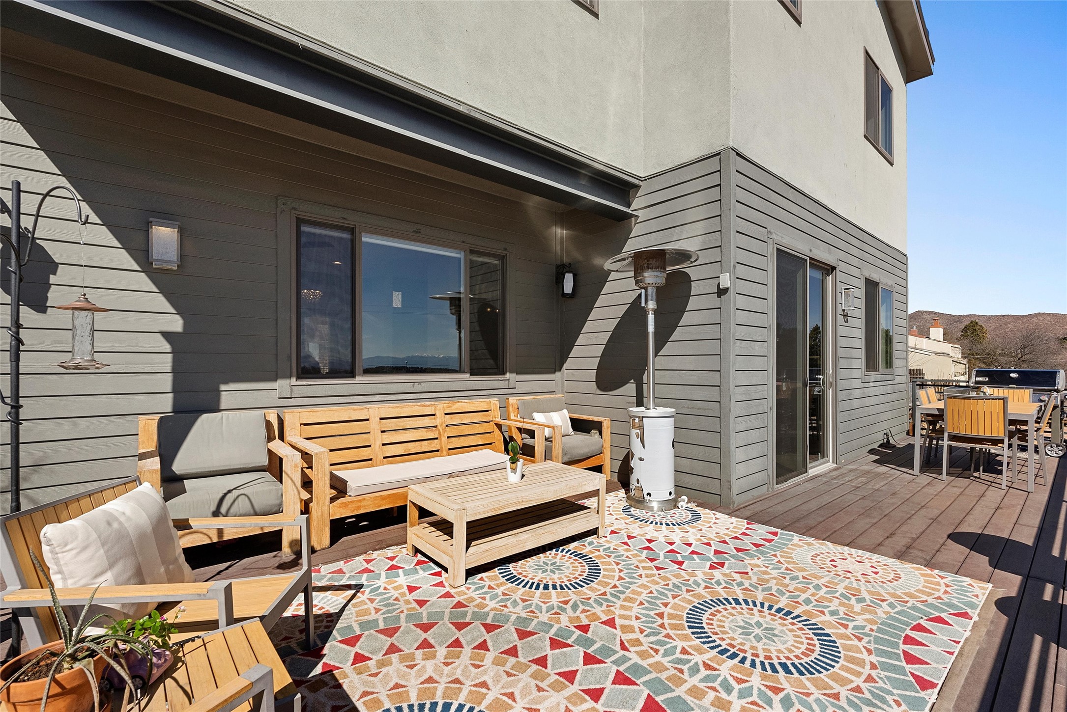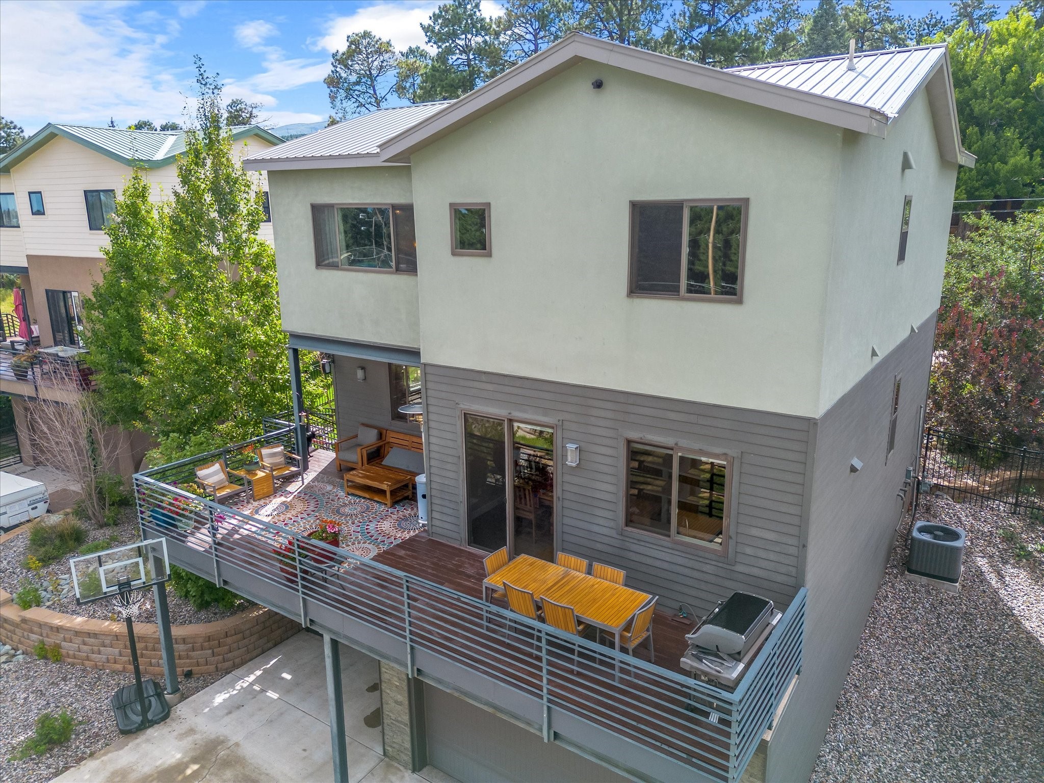 **SELLER OFFERING BONUS 5K CONCESSION (RATE BUY-DOWN) ** with acceptable offer! READY for breathtaking views of the Sangre de Cristo Mountains and Jemez Mountains, this custom 5-bedroom, 4 bath home has it all. Nestled in a family-friendly neighborhood within the highly sought-after Mountain Elementary School District, this modern home built in 2017 by Alan Mascord Design Associates Inc.--offers the perfect blend of contemporary style and functional amenities.The home features a stone veneer exterior and a meticulously kept fenced-in front yard with a drip irrigation system. Inside, cathedral vaulted ceilings with wood beams create a spacious, airy ambiance throughout. The layout includes five bedrooms and 2 full, 1 three quarter and one-half bath, enhanced by a versatile triplex configuration that offers two primary bedrooms or mother-in-law suite--each with its own en-suite bathroom for added luxury and privacy. The living room boasts a striking stacked stone fireplace as its focal point, complemented by large windows that fill the space with natural light and frame the stunning mountain views. A spacious elevated deck extends the living area outdoors, providing an ideal spot for entertaining or simply enjoying the scenery. Luxury wood floors, no carpet other than interior steps! The gourmet kitchen features quartz countertops, upgraded appliances, high-profile cabinets, and a custom architectural pass-through with built-in cabinetry that seamlessly connects to the living space. Elegant quartz accents continue into the bathrooms, and lavish overhead lighting paired with custom copper touches adds warmth and unique character throughout. BEAUTIFULLY SEPARATED ENTRANCE FOR MOTHER IN LAW QUARTERS lower level access!For added convenience, utility sinks are included in both the laundry room and the garage. The 3-car tandem garage provides ample parking and storage, accessible from North Road by Urban Park. Additional features include refrigerated air, a durable metal roof, a tankless water heater, and an electric vehicle charging station. This exceptional custom home offers everything you need--from form to function. Contact us today for your private showing!