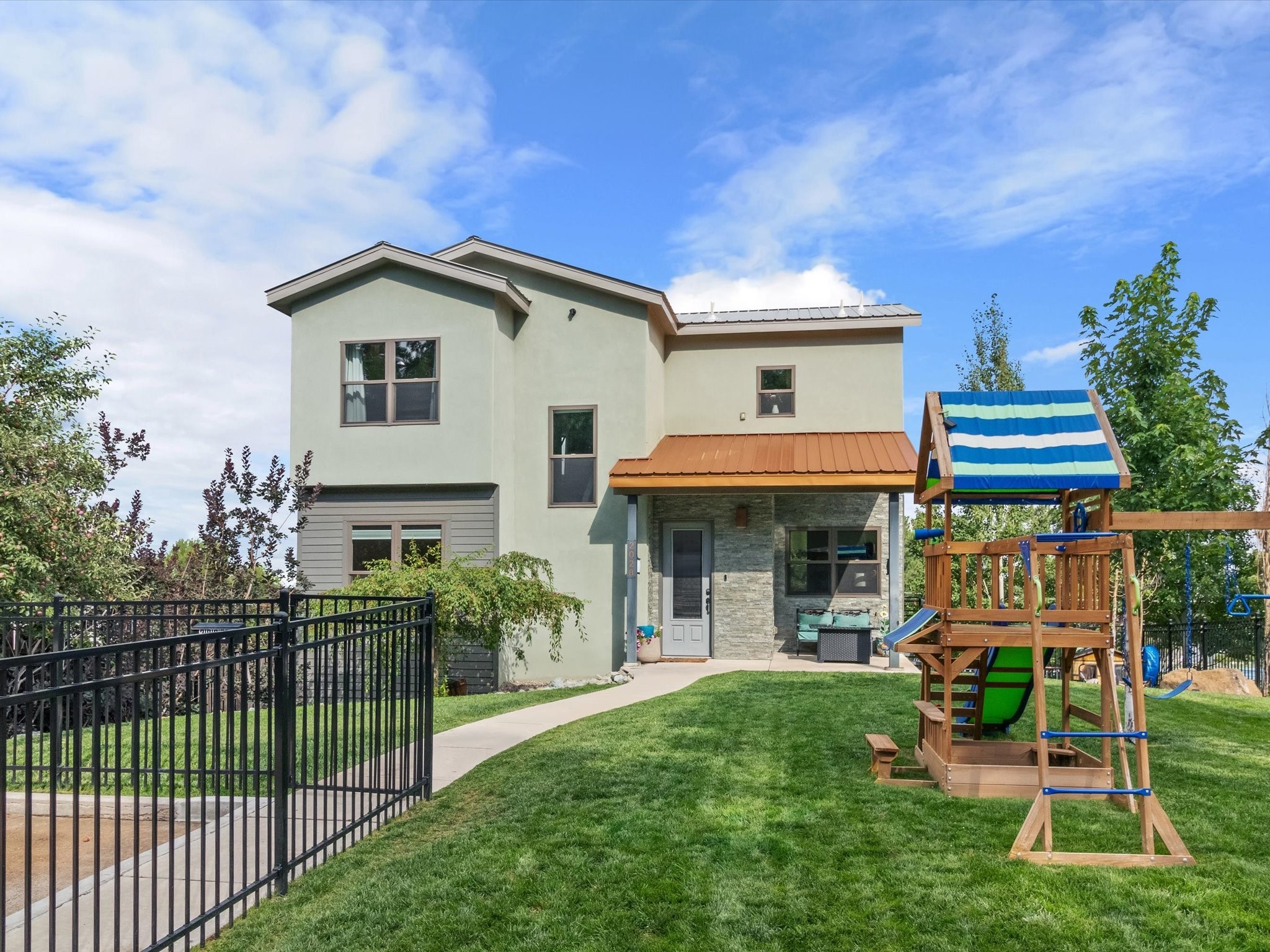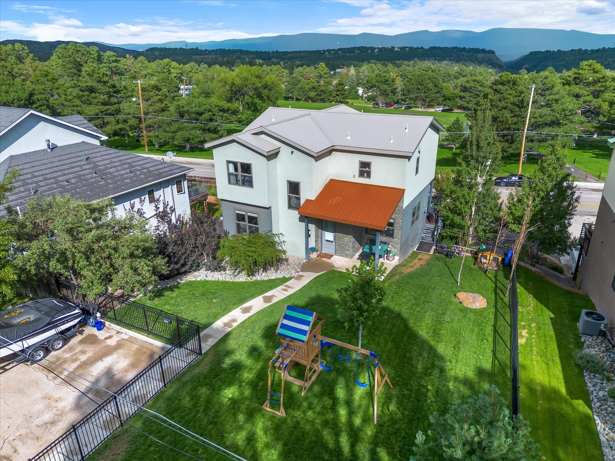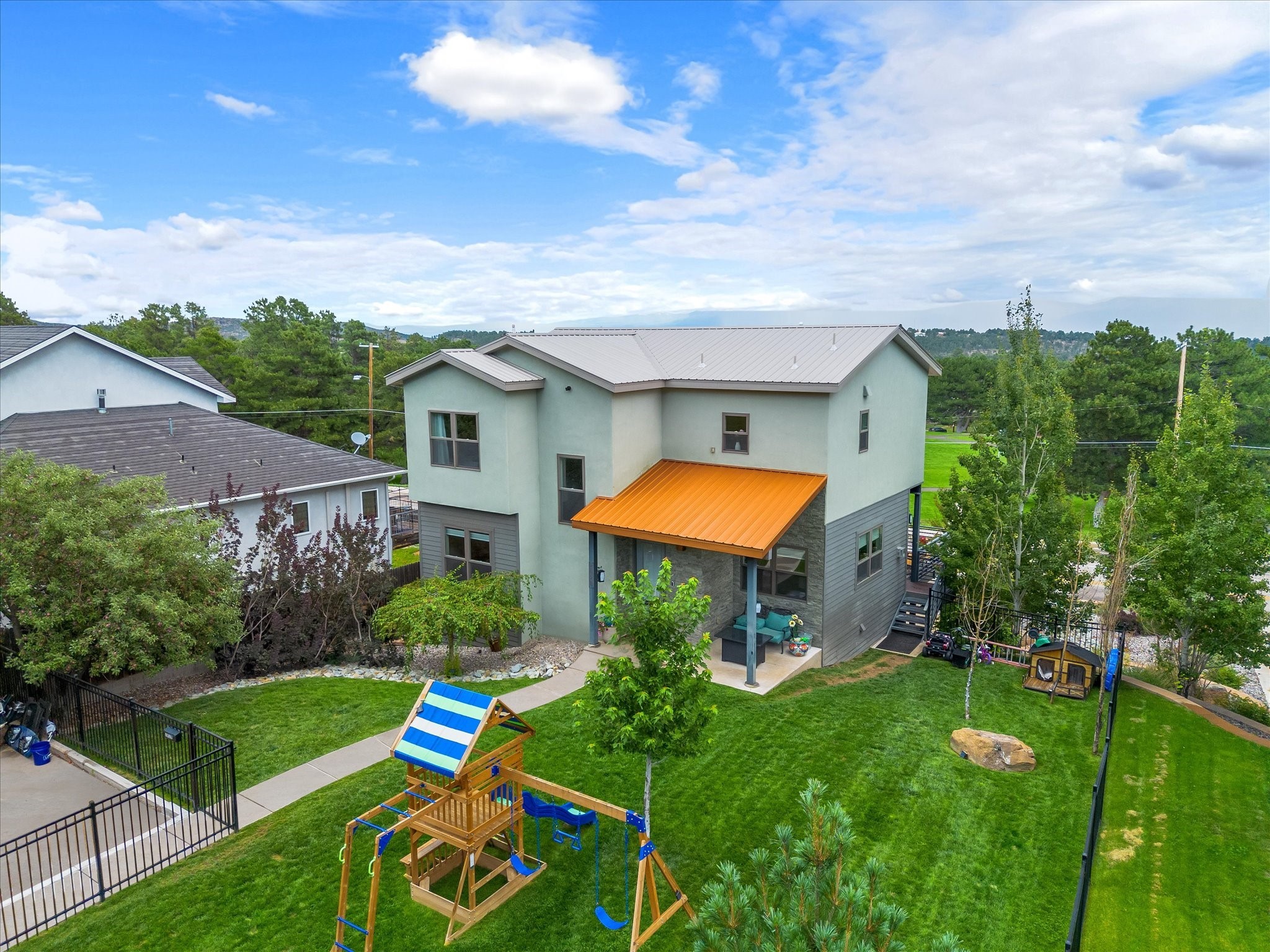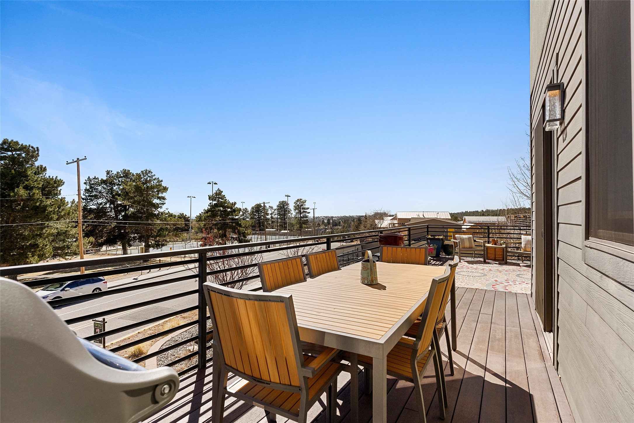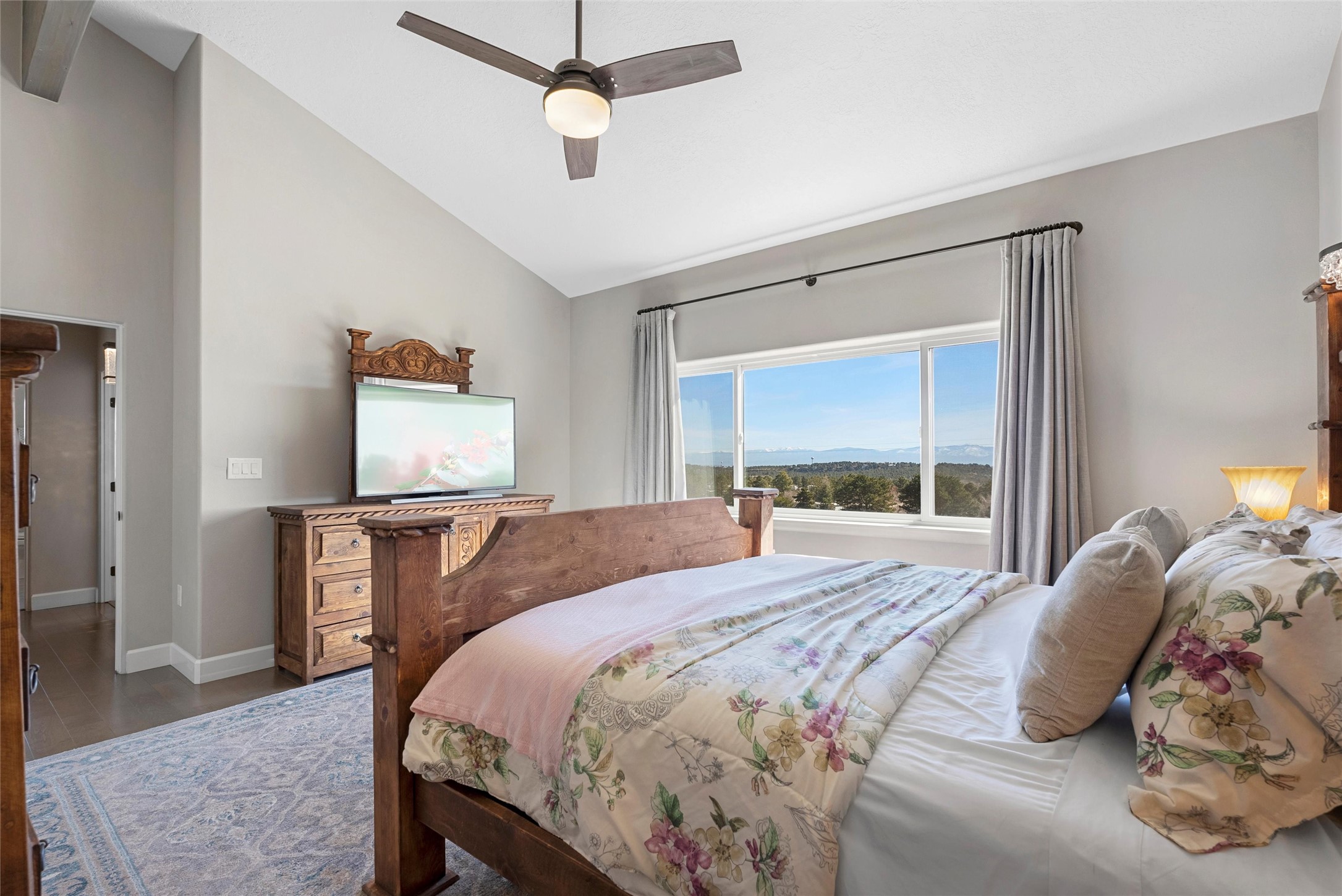 **SELLER OFFERING BONUS 5K CONCESSION (RATE BUY-DOWN) ** with acceptable offer! READY for breathtaking views of the Sangre de Cristo Mountains and Jemez Mountains, this custom 5-bedroom, 4 bath home has it all. Nestled in a family-friendly neighborhood within the highly sought-after Mountain Elementary School District, this modern home built in 2017 by Alan Mascord Design Associates Inc.--offers the perfect blend of contemporary style and functional amenities.The home features a stone veneer exterior and a meticulously kept fenced-in front yard with a drip irrigation system. Inside, cathedral vaulted ceilings with wood beams create a spacious, airy ambiance throughout. The layout includes five bedrooms and 2 full, 1 three quarter and one-half bath, enhanced by a versatile triplex configuration that offers two primary bedrooms or mother-in-law suite--each with its own en-suite bathroom for added luxury and privacy. The living room boasts a striking stacked stone fireplace as its focal point, complemented by large windows that fill the space with natural light and frame the stunning mountain views. A spacious elevated deck extends the living area outdoors, providing an ideal spot for entertaining or simply enjoying the scenery. Luxury wood floors, no carpet other than interior steps! The gourmet kitchen features quartz countertops, upgraded appliances, high-profile cabinets, and a custom architectural pass-through with built-in cabinetry that seamlessly connects to the living space. Elegant quartz accents continue into the bathrooms, and lavish overhead lighting paired with custom copper touches adds warmth and unique character throughout. BEAUTIFULLY SEPARATED ENTRANCE FOR MOTHER IN LAW QUARTERS lower level access!For added convenience, utility sinks are included in both the laundry room and the garage. The 3-car tandem garage provides ample parking and storage, accessible from North Road by Urban Park. Additional features include refrigerated air, a durable metal roof, a tankless water heater, and an electric vehicle charging station. This exceptional custom home offers everything you need--from form to function. Contact us today for your private showing!