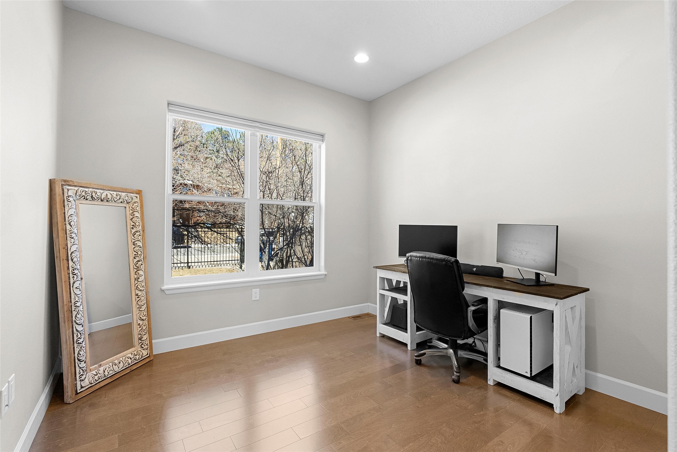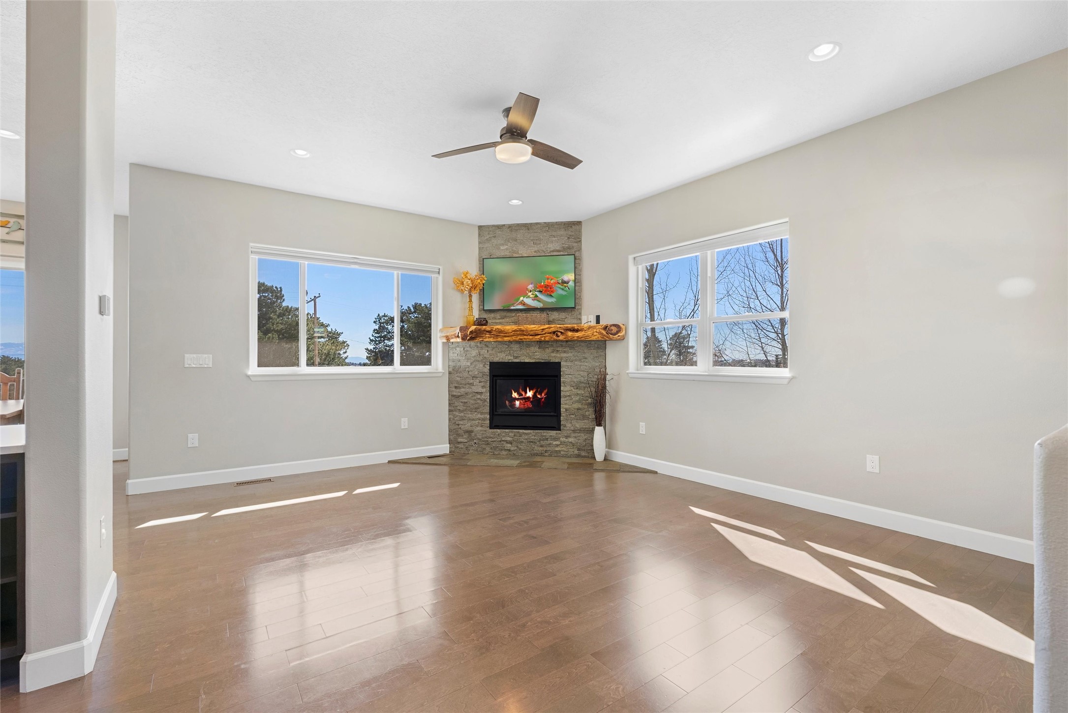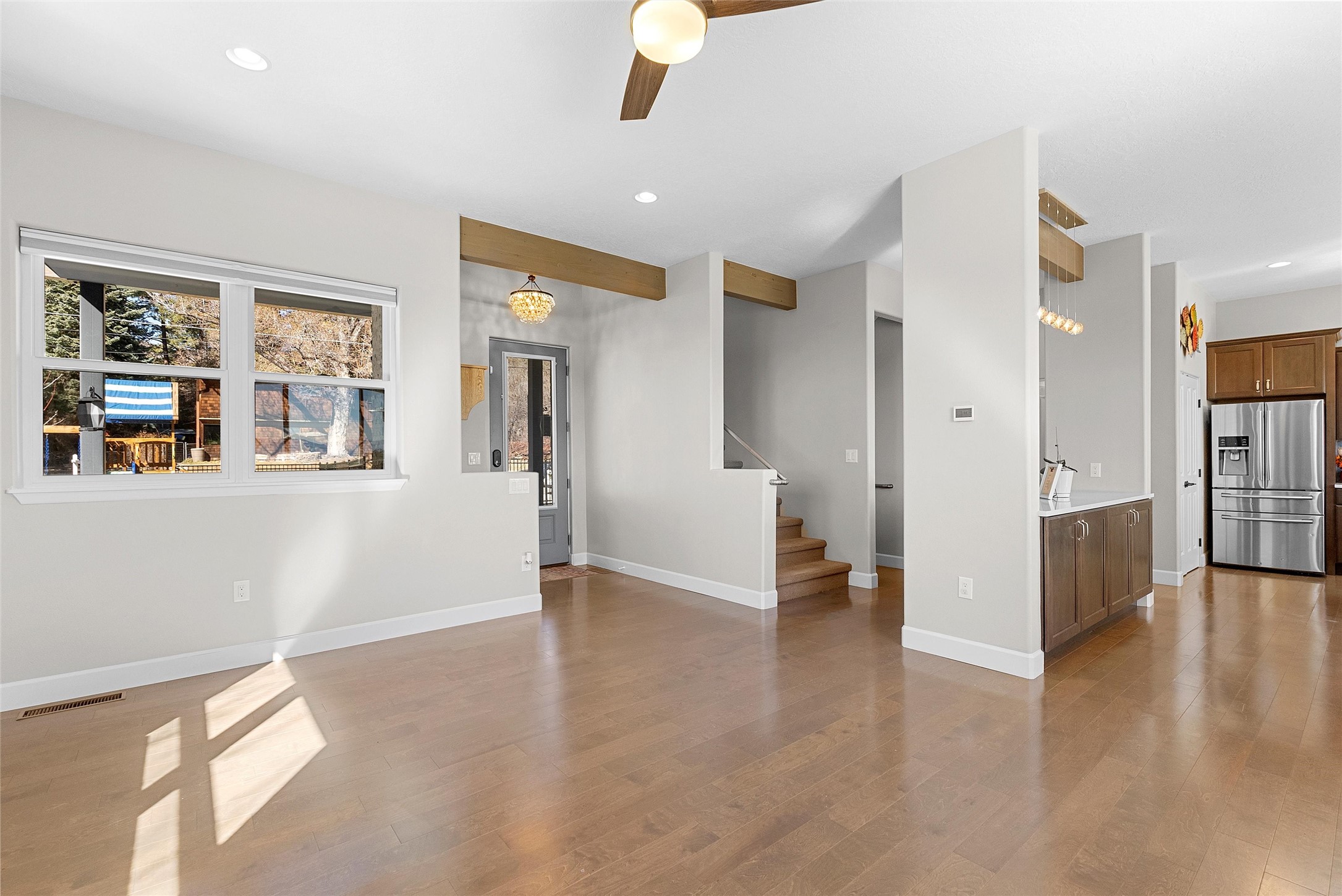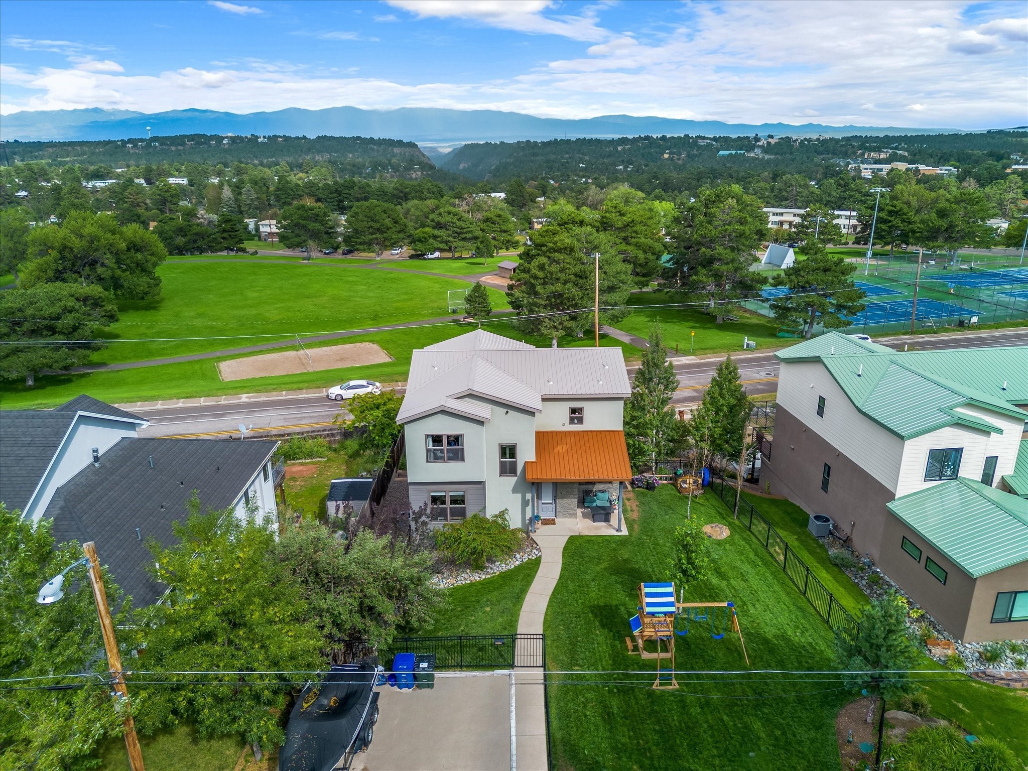 **SELLER OFFERING BONUS 5K CONCESSION (RATE BUY-DOWN) ** with acceptable offer! READY for breathtaking views of the Sangre de Cristo Mountains and Jemez Mountains, this custom 5-bedroom, 4 bath home has it all. Nestled in a family-friendly neighborhood within the highly sought-after Mountain Elementary School District, this modern home built in 2017 by Alan Mascord Design Associates Inc.--offers the perfect blend of contemporary style and functional amenities.The home features a stone veneer exterior and a meticulously kept fenced-in front yard with a drip irrigation system. Inside, cathedral vaulted ceilings with wood beams create a spacious, airy ambiance throughout. The layout includes five bedrooms and 2 full, 1 three quarter and one-half bath, enhanced by a versatile triplex configuration that offers two primary bedrooms or mother-in-law suite--each with its own en-suite bathroom for added luxury and privacy. The living room boasts a striking stacked stone fireplace as its focal point, complemented by large windows that fill the space with natural light and frame the stunning mountain views. A spacious elevated deck extends the living area outdoors, providing an ideal spot for entertaining or simply enjoying the scenery. Luxury wood floors, no carpet other than interior steps! The gourmet kitchen features quartz countertops, upgraded appliances, high-profile cabinets, and a custom architectural pass-through with built-in cabinetry that seamlessly connects to the living space. Elegant quartz accents continue into the bathrooms, and lavish overhead lighting paired with custom copper touches adds warmth and unique character throughout. BEAUTIFULLY SEPARATED ENTRANCE FOR MOTHER IN LAW QUARTERS lower level access!For added convenience, utility sinks are included in both the laundry room and the garage. The 3-car tandem garage provides ample parking and storage, accessible from North Road by Urban Park. Additional features include refrigerated air, a durable metal roof, a tankless water heater, and an electric vehicle charging station. This exceptional custom home offers everything you need--from form to function. Contact us today for your private showing!