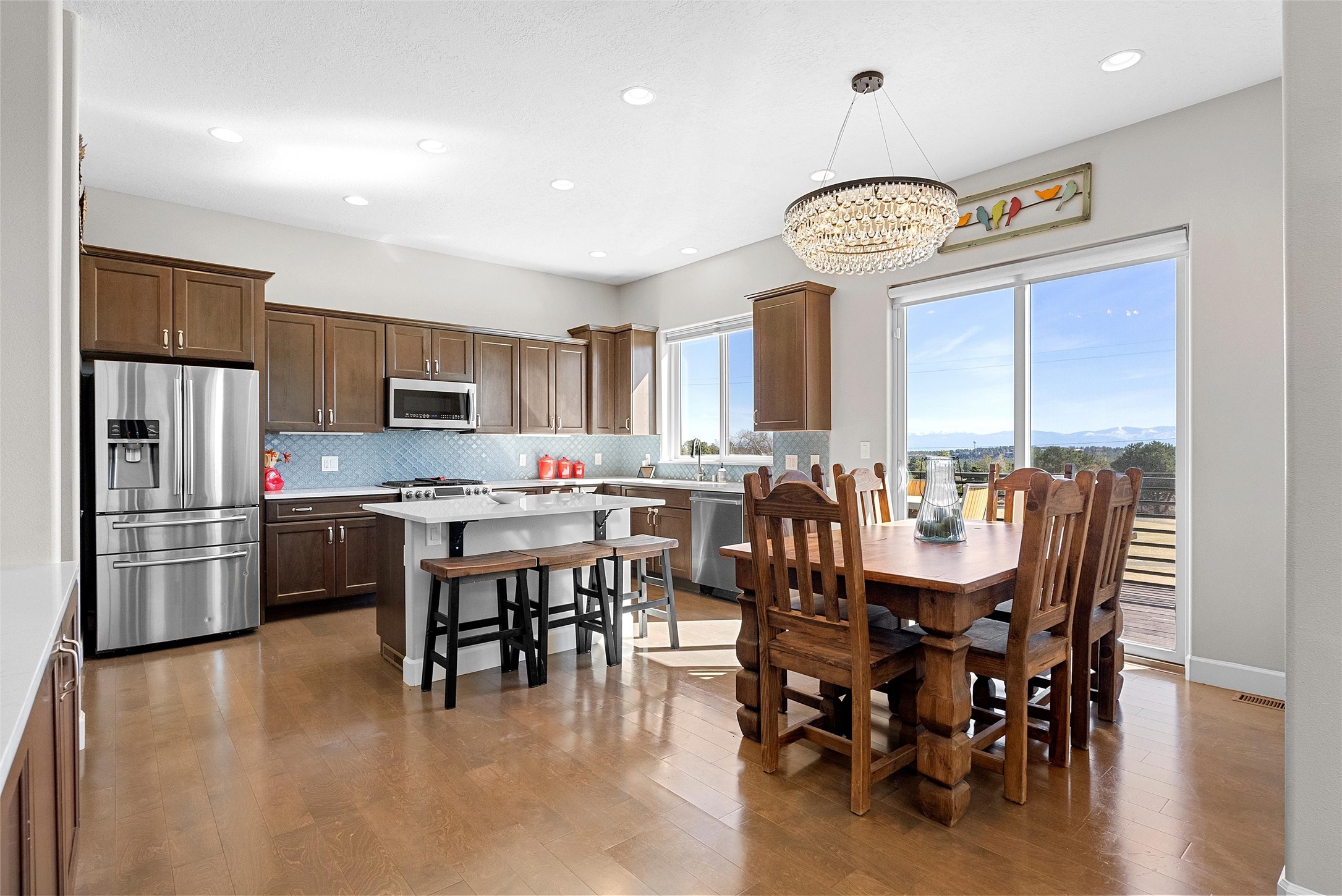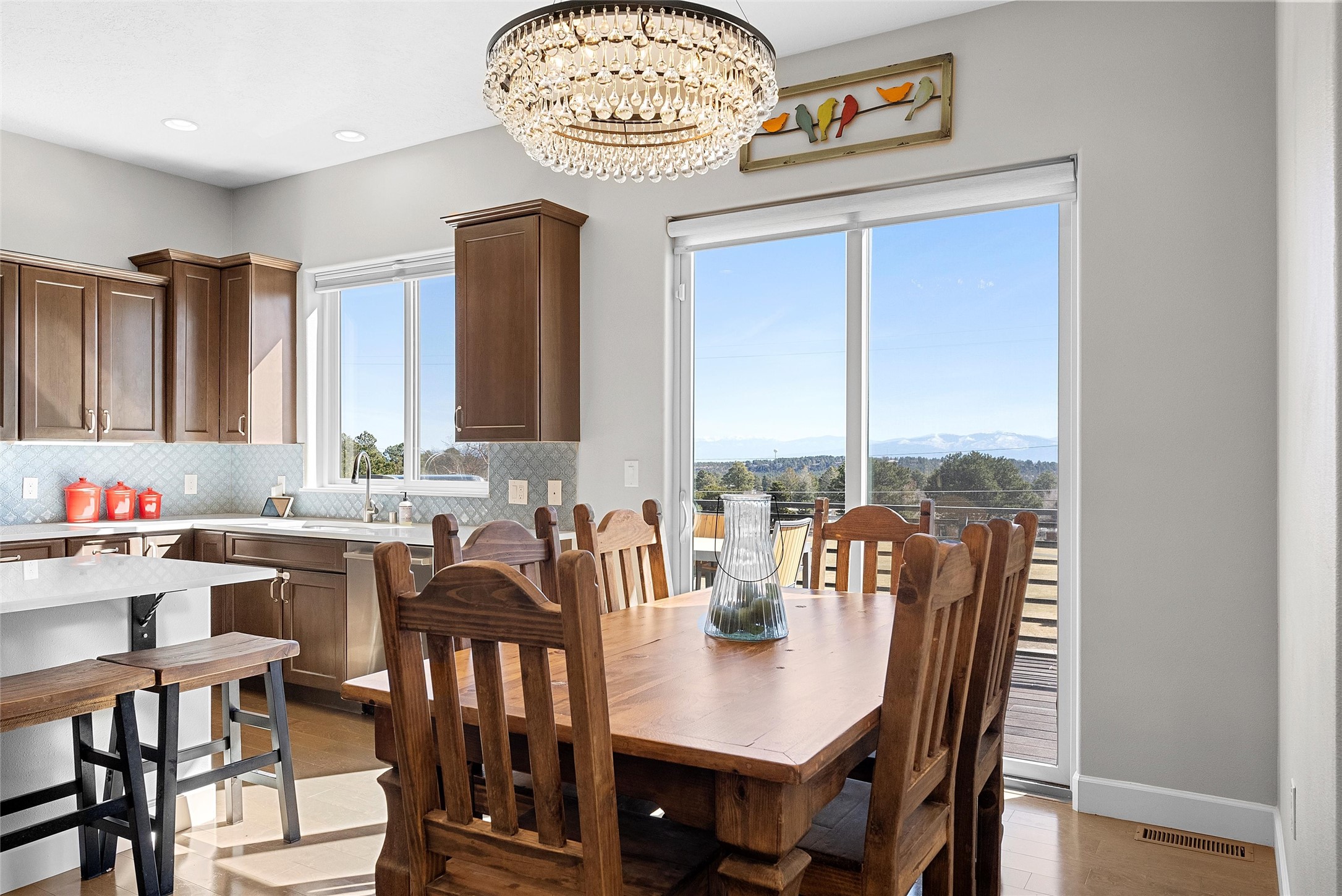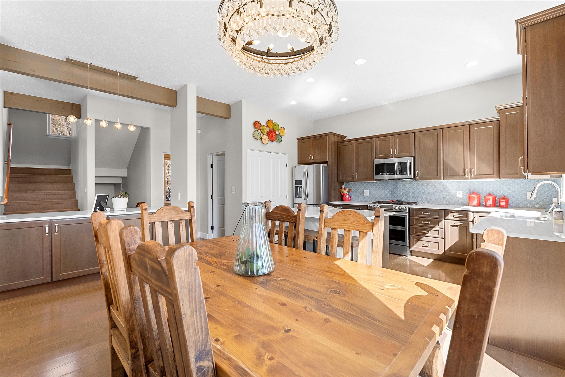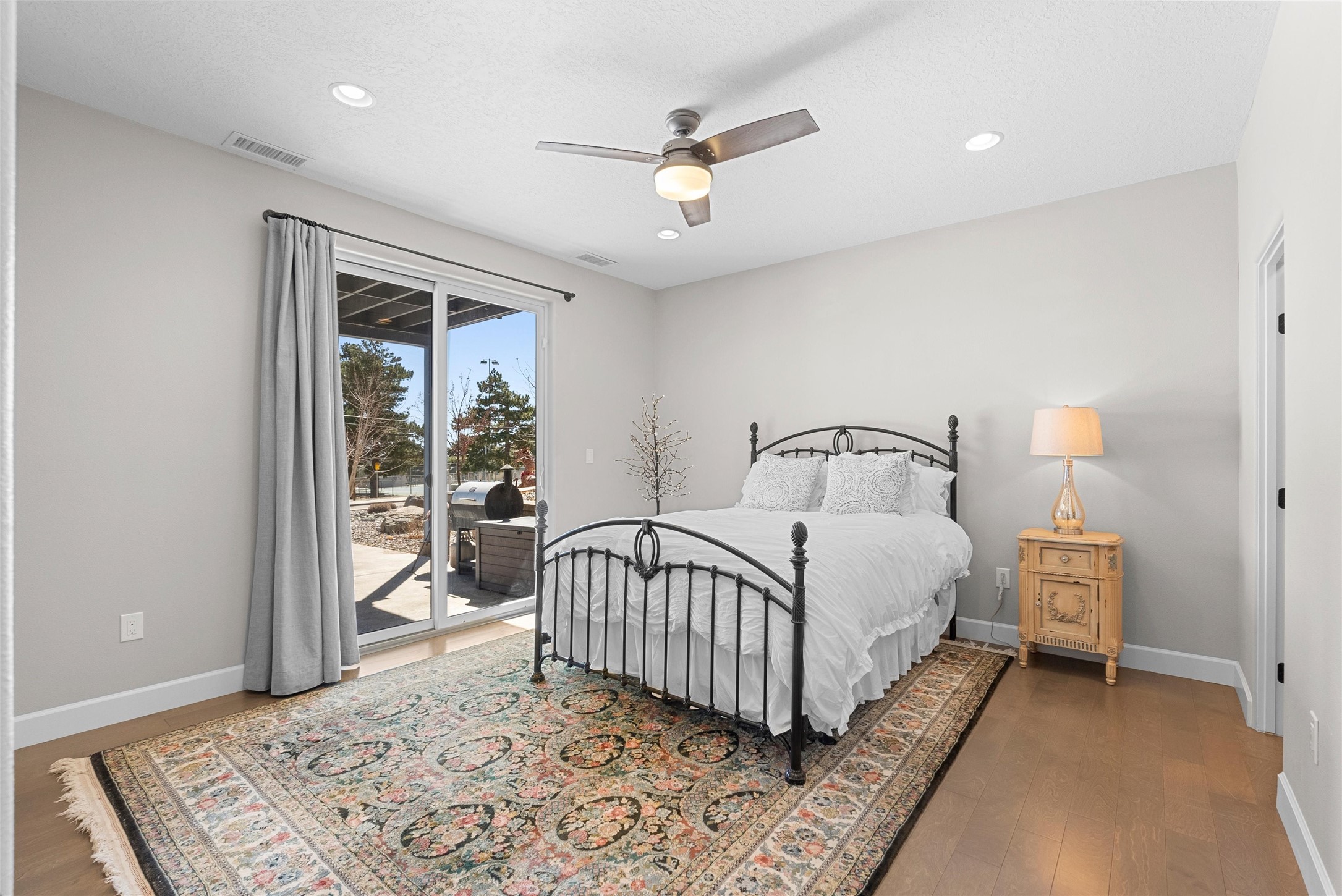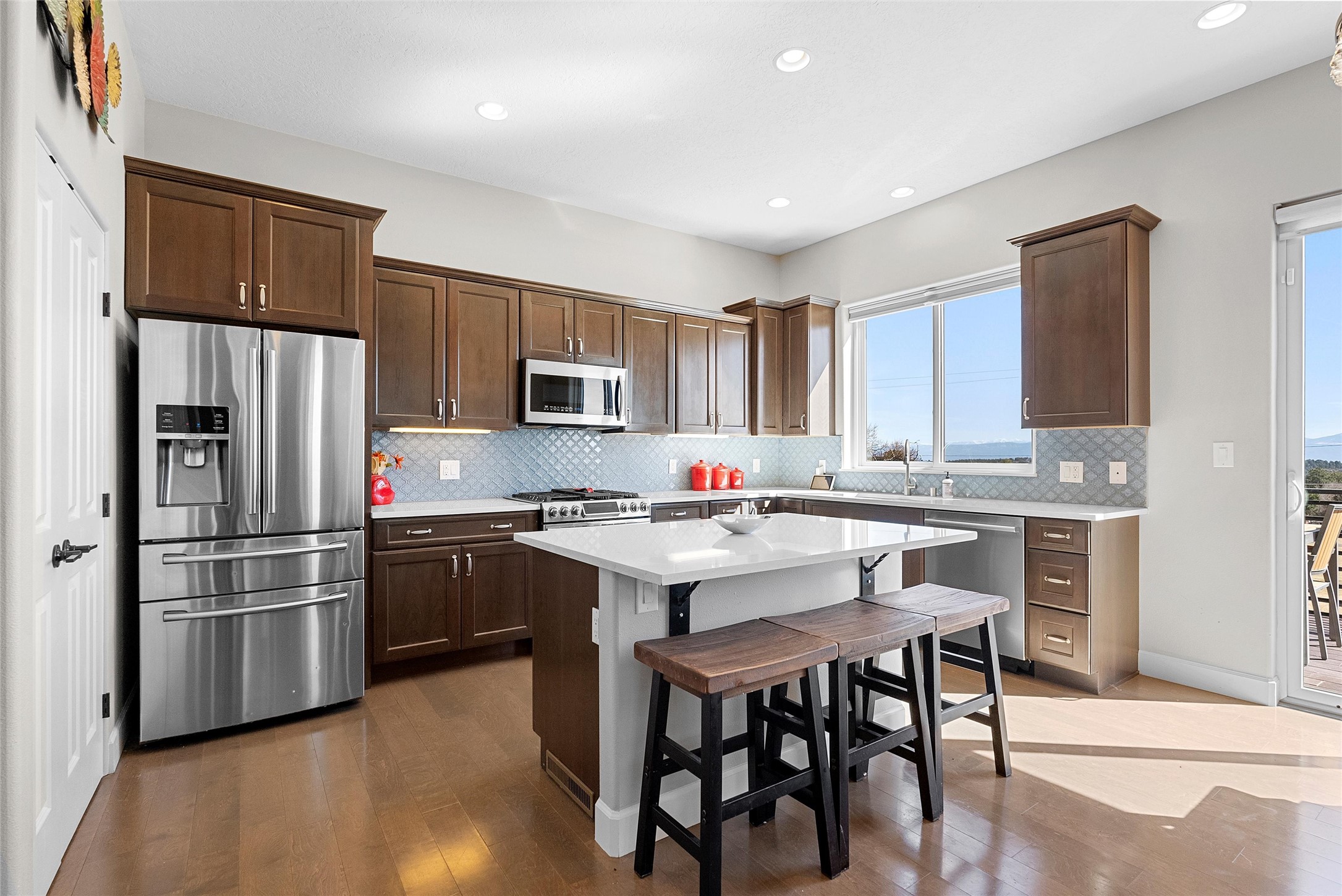 **SELLER OFFERING BONUS 5K CONCESSION (RATE BUY-DOWN) ** with acceptable offer! READY for breathtaking views of the Sangre de Cristo Mountains and Jemez Mountains, this custom 5-bedroom, 4 bath home has it all. Nestled in a family-friendly neighborhood within the highly sought-after Mountain Elementary School District, this modern home built in 2017 by Alan Mascord Design Associates Inc.--offers the perfect blend of contemporary style and functional amenities.The home features a stone veneer exterior and a meticulously kept fenced-in front yard with a drip irrigation system. Inside, cathedral vaulted ceilings with wood beams create a spacious, airy ambiance throughout. The layout includes five bedrooms and 2 full, 1 three quarter and one-half bath, enhanced by a versatile triplex configuration that offers two primary bedrooms or mother-in-law suite--each with its own en-suite bathroom for added luxury and privacy. The living room boasts a striking stacked stone fireplace as its focal point, complemented by large windows that fill the space with natural light and frame the stunning mountain views. A spacious elevated deck extends the living area outdoors, providing an ideal spot for entertaining or simply enjoying the scenery. Luxury wood floors, no carpet other than interior steps! The gourmet kitchen features quartz countertops, upgraded appliances, high-profile cabinets, and a custom architectural pass-through with built-in cabinetry that seamlessly connects to the living space. Elegant quartz accents continue into the bathrooms, and lavish overhead lighting paired with custom copper touches adds warmth and unique character throughout. BEAUTIFULLY SEPARATED ENTRANCE FOR MOTHER IN LAW QUARTERS lower level access!For added convenience, utility sinks are included in both the laundry room and the garage. The 3-car tandem garage provides ample parking and storage, accessible from North Road by Urban Park. Additional features include refrigerated air, a durable metal roof, a tankless water heater, and an electric vehicle charging station. This exceptional custom home offers everything you need--from form to function. Contact us today for your private showing!