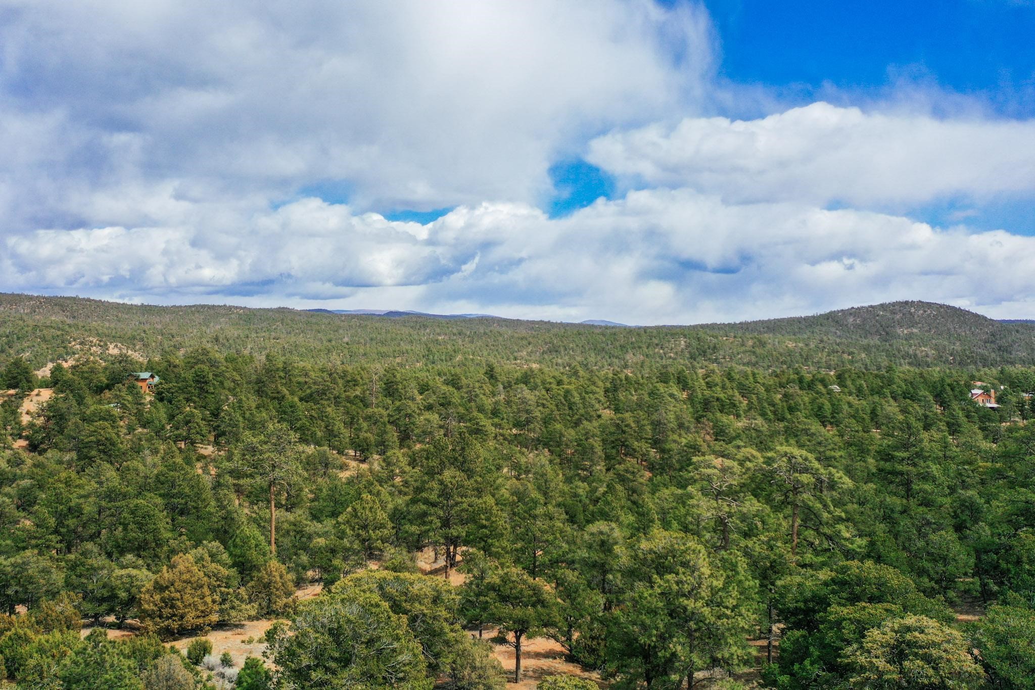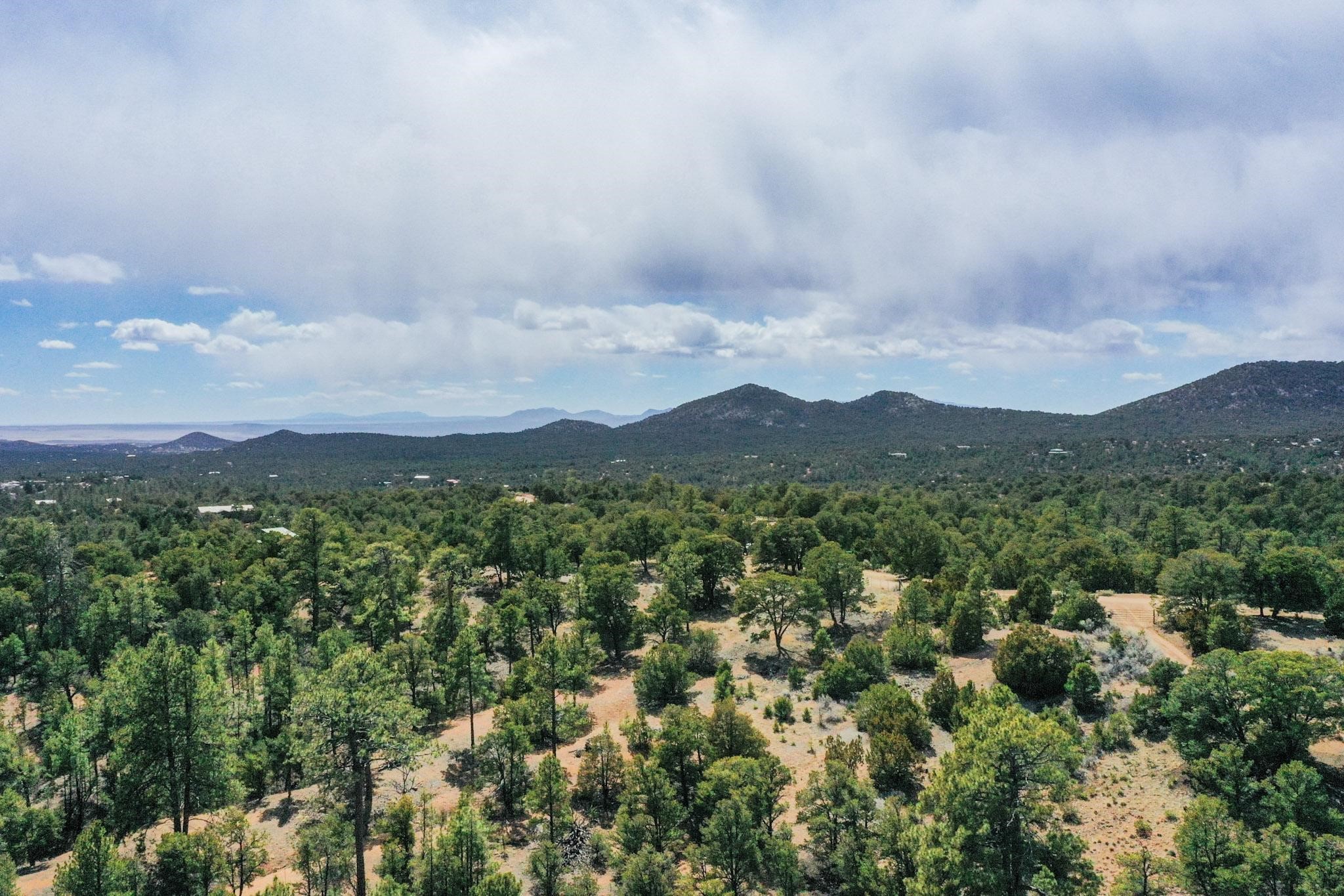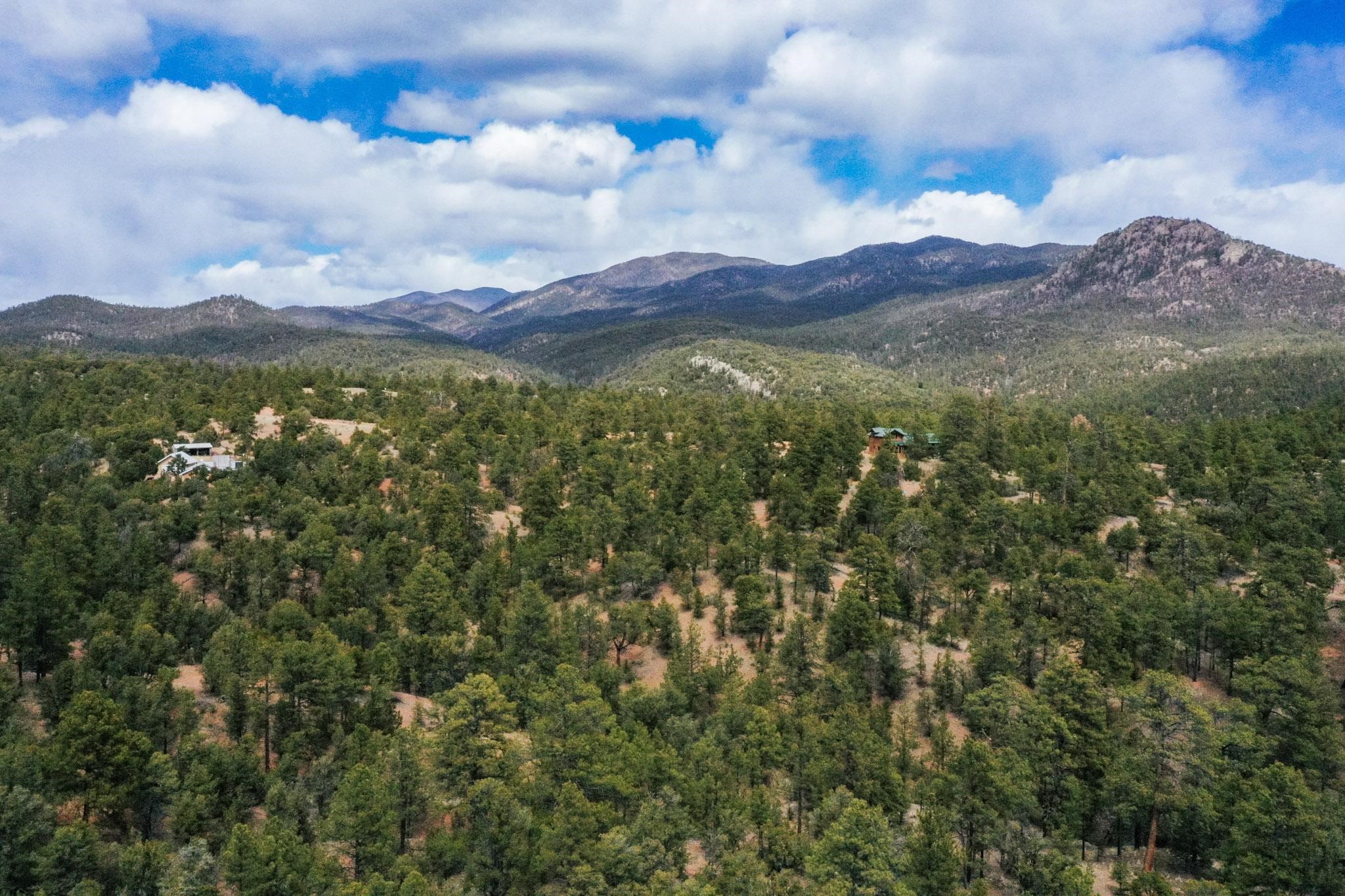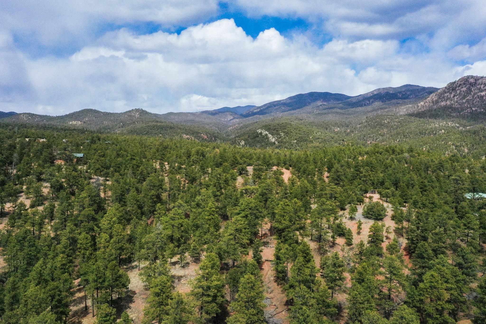 A beautiful 10 acre parcel of fairly open tree covered slopes graced with majestic ponderosa pines and views through the trees of Shaggy Peak, Glorieta Baldy and Thompson Peak. Excellent flat building sites in the top 1/3 of the lot without the need for extensive further driveway work or utility runs (see attached listing documents). Periodic rain creates temporary run off streams through the lower/steeper part of the lot into an approx 100ft deep rocky ravine. Well in place and the transformer is easily accessible on the road. Located on the edge of the National Forest the options for outdoor recreation are right on your doorstep with miles of trails yet only 15 minutes drive to Santa Fe.