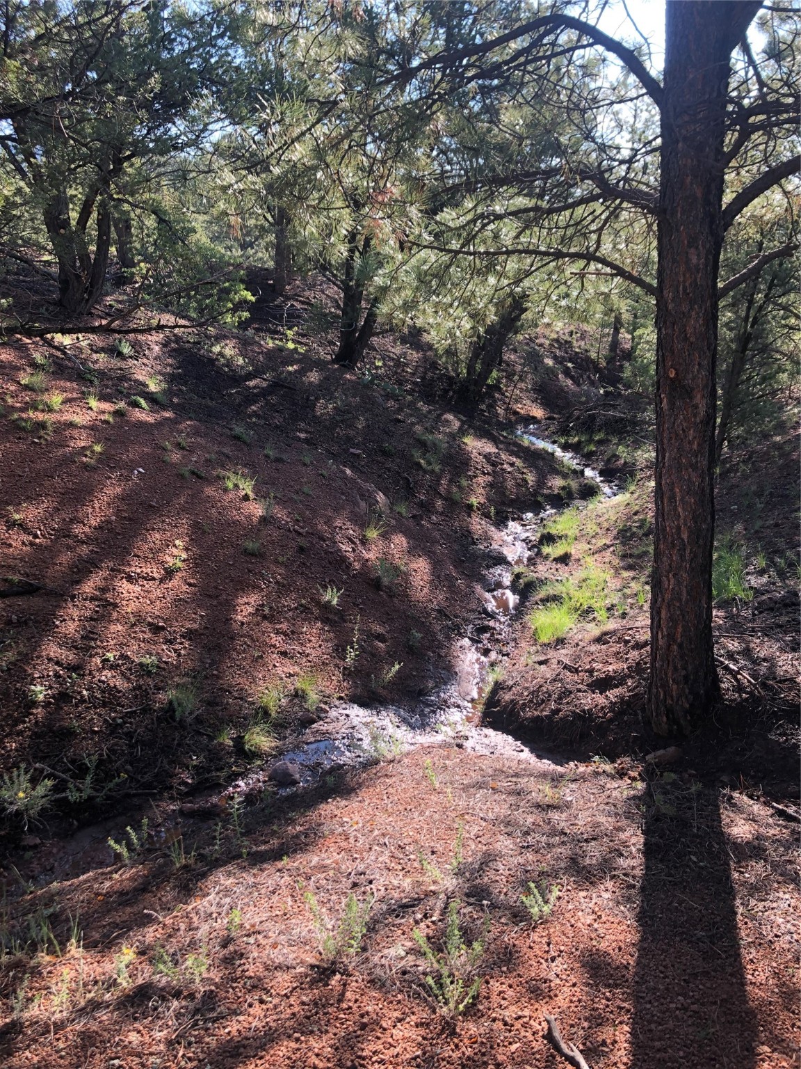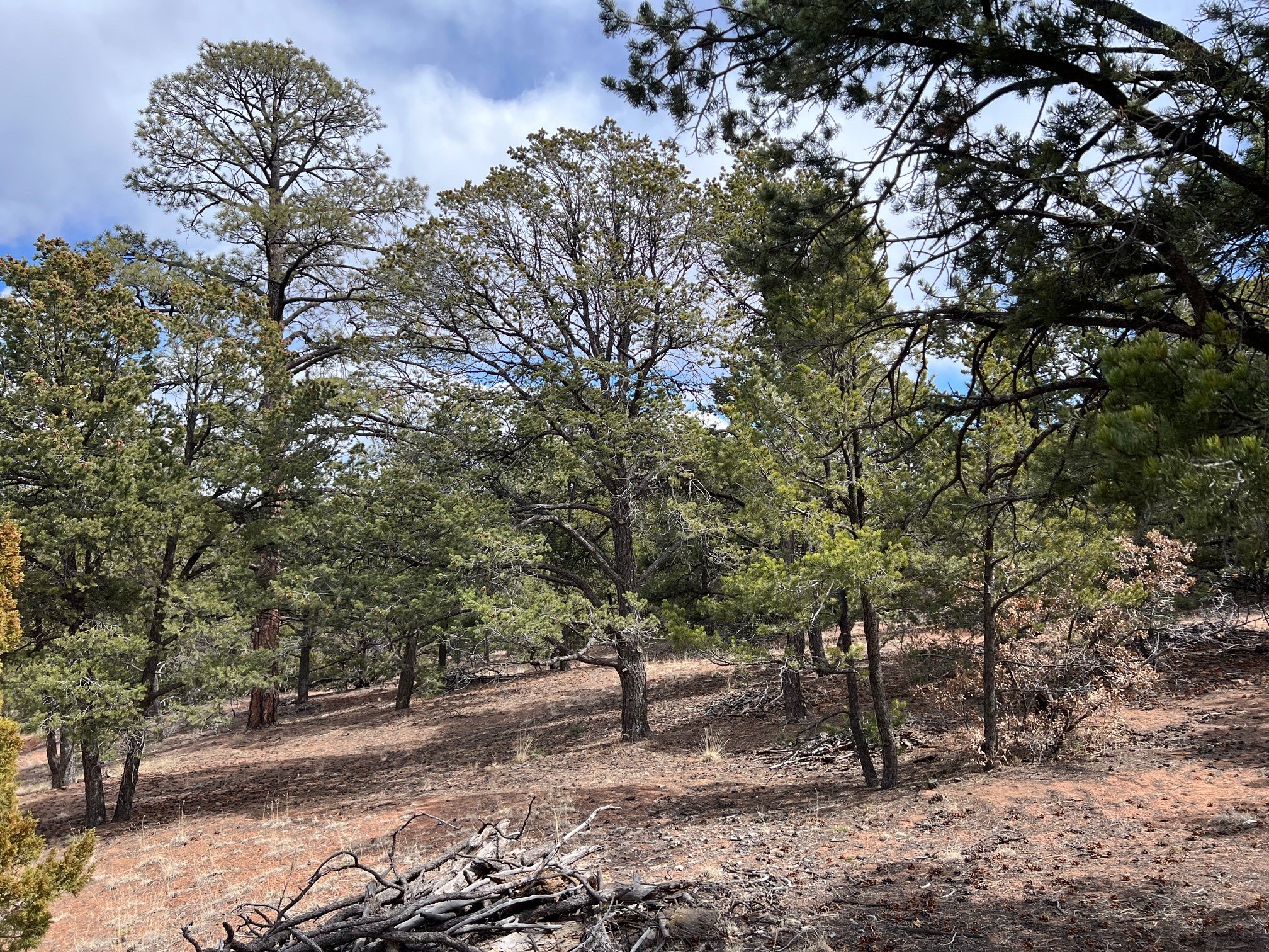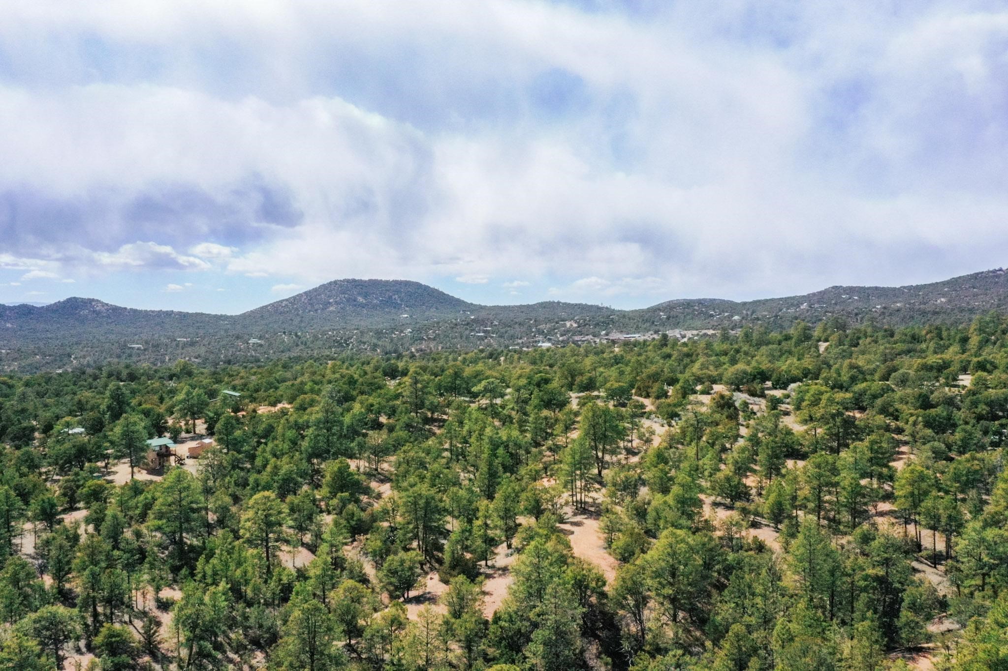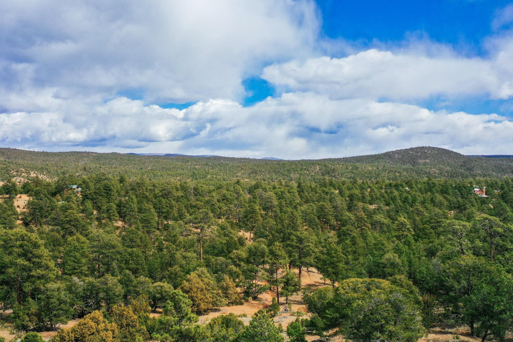 A beautiful 10 acre parcel of fairly open tree covered slopes graced with majestic ponderosa pines and views through the trees of Shaggy Peak, Glorieta Baldy and Thompson Peak. Excellent flat building sites in the top 1/3 of the lot without the need for extensive further driveway work or utility runs (see attached listing documents). Periodic rain creates temporary run off streams through the lower/steeper part of the lot into an approx 100ft deep rocky ravine. Well in place and the transformer is easily accessible on the road. Located on the edge of the National Forest the options for outdoor recreation are right on your doorstep with miles of trails yet only 15 minutes drive to Santa Fe.