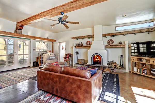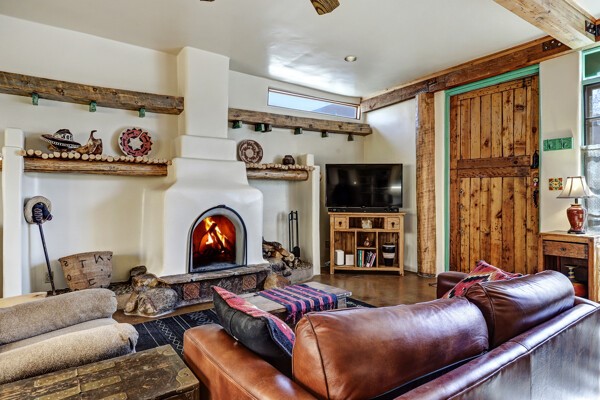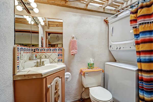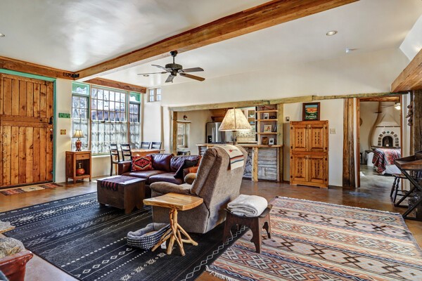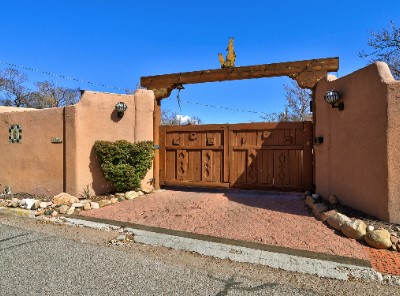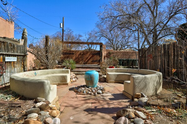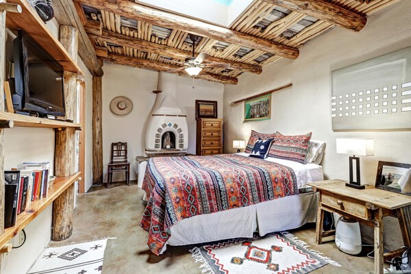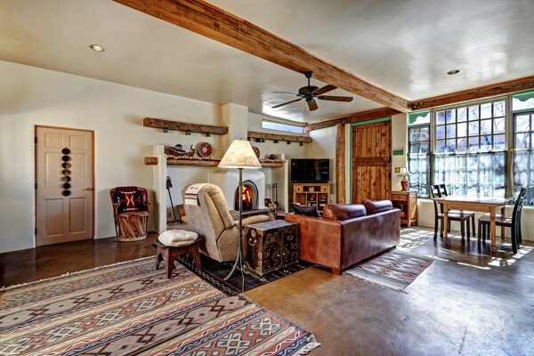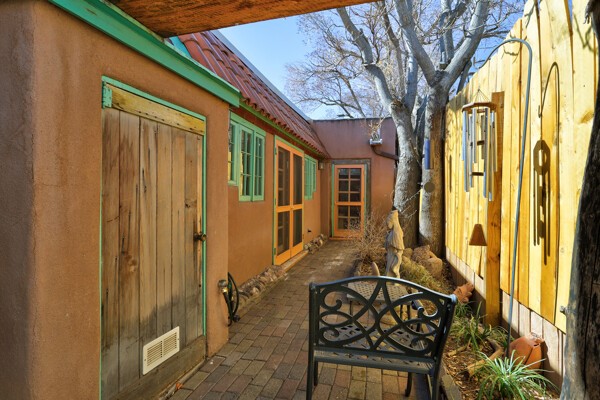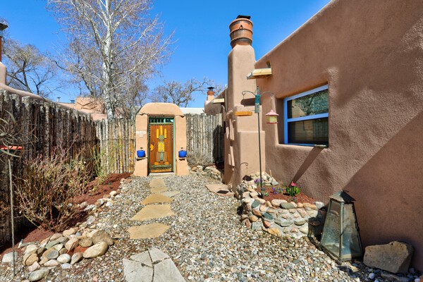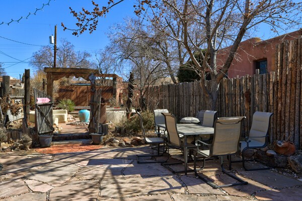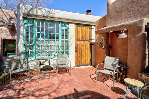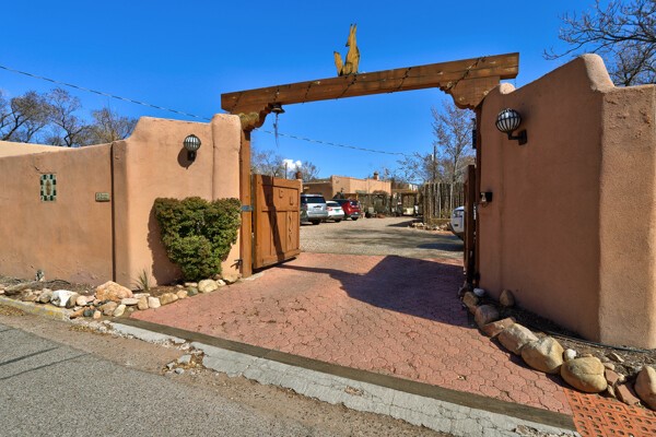 Looking for a fully furnished dream escape in Santa Fe? The ultimate hideaway in plain sight an incredibly rare find is the Laribbas Compound which features ten condo units in the desirable Guadalupe District. Located just a quarter mile from the vibrant Railyard District and a short walk to the historic Santa Fe Plaza, Unit B is the largest of the condos offering one bedroom, a large living space, one and a half baths, two private courtyards, and a separate storage area. Loaded with Santa Fe Charm including a cozy fireplace in the living area, a decorative fireplace in the bedroom, latillas and wood beamed ceilings and a large custom door that greets you just beyond the entry courtyard. Other details of this small but mighty property include radiant in floor heat, newer appliances including dishwasher, refrigerator, oven and stacked washer/dryer. The HOA covers community landscaping, roof maintenance, community garden and fountain, dedicated parking space + guest parking and entry gates. Entertaining is easy with the large open living area and two private patios. Larribas Compound lies safely tucked away behind a pedestrian gate on Irvine and a private car entry on Ambrosio. No short term rentals allowed, also dogs not permitted, cats are okay. If you want a fully furnished place - furnishings can stay!