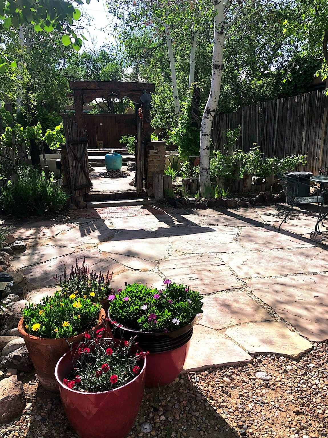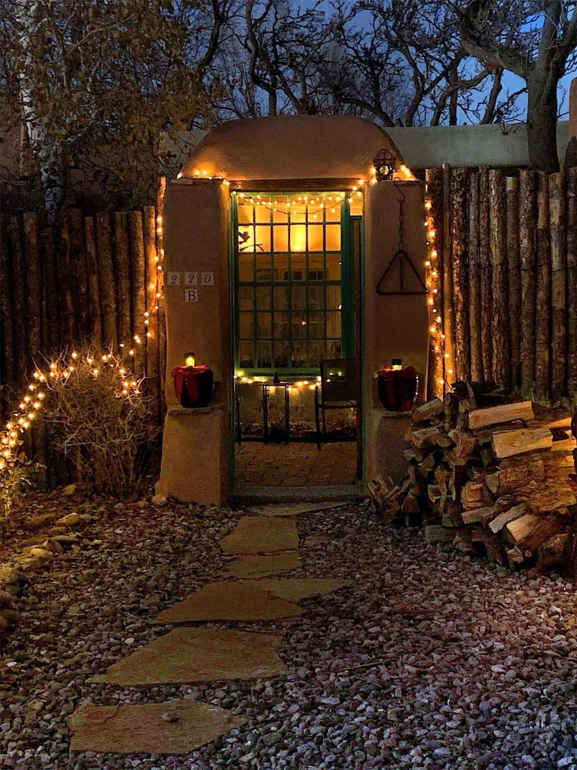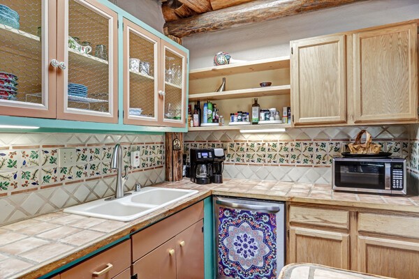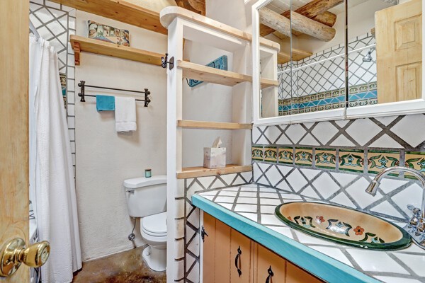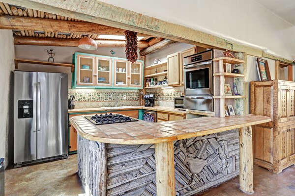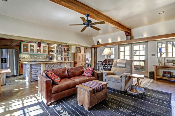 Looking for a fully furnished dream escape in Santa Fe? The ultimate hideaway in plain sight an incredibly rare find is the Laribbas Compound which features ten condo units in the desirable Guadalupe District. Located just a quarter mile from the vibrant Railyard District and a short walk to the historic Santa Fe Plaza, Unit B is the largest of the condos offering one bedroom, a large living space, one and a half baths, two private courtyards, and a separate storage area. Loaded with Santa Fe Charm including a cozy fireplace in the living area, a decorative fireplace in the bedroom, latillas and wood beamed ceilings and a large custom door that greets you just beyond the entry courtyard. Other details of this small but mighty property include radiant in floor heat, newer appliances including dishwasher, refrigerator, oven and stacked washer/dryer. The HOA covers community landscaping, roof maintenance, community garden and fountain, dedicated parking space + guest parking and entry gates. Entertaining is easy with the large open living area and two private patios. Larribas Compound lies safely tucked away behind a pedestrian gate on Irvine and a private car entry on Ambrosio. No short term rentals allowed, also dogs not permitted, cats are okay. If you want a fully furnished place - furnishings can stay!