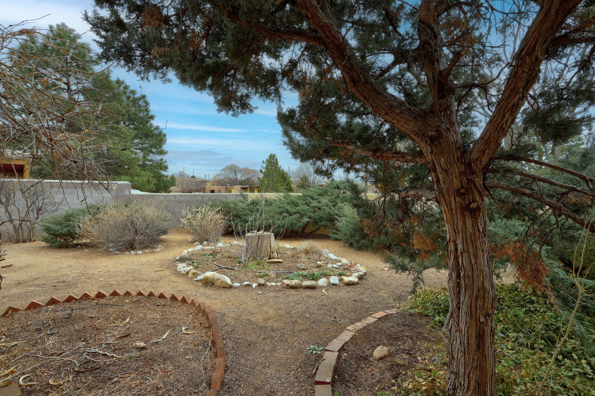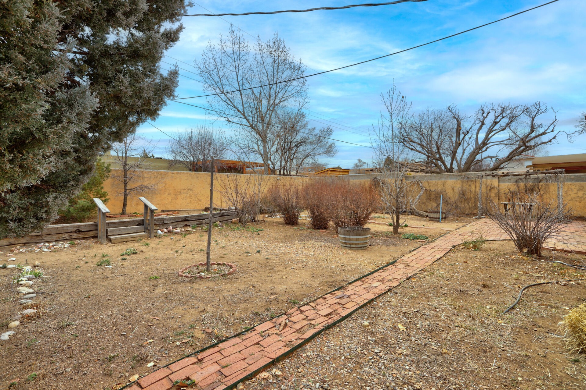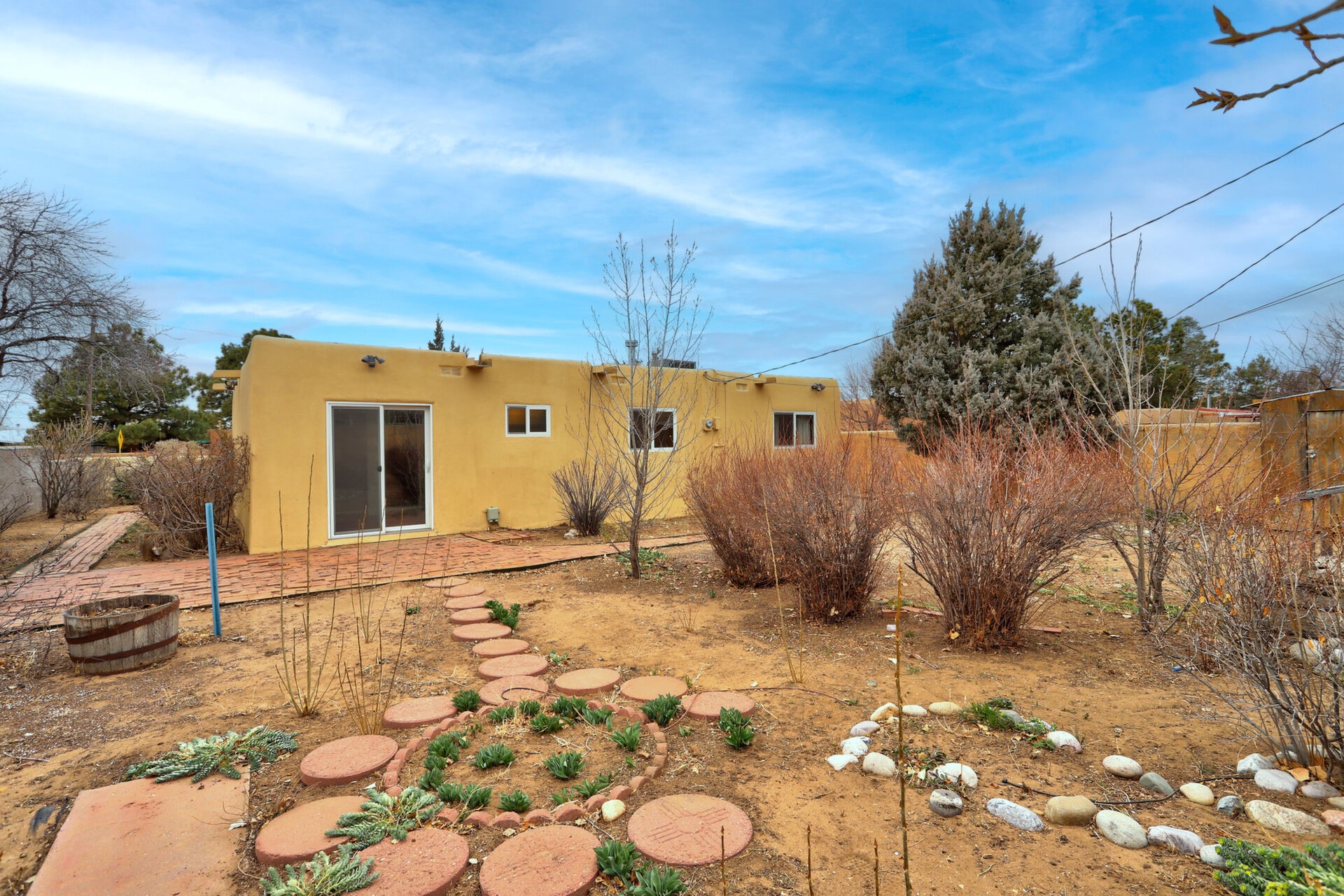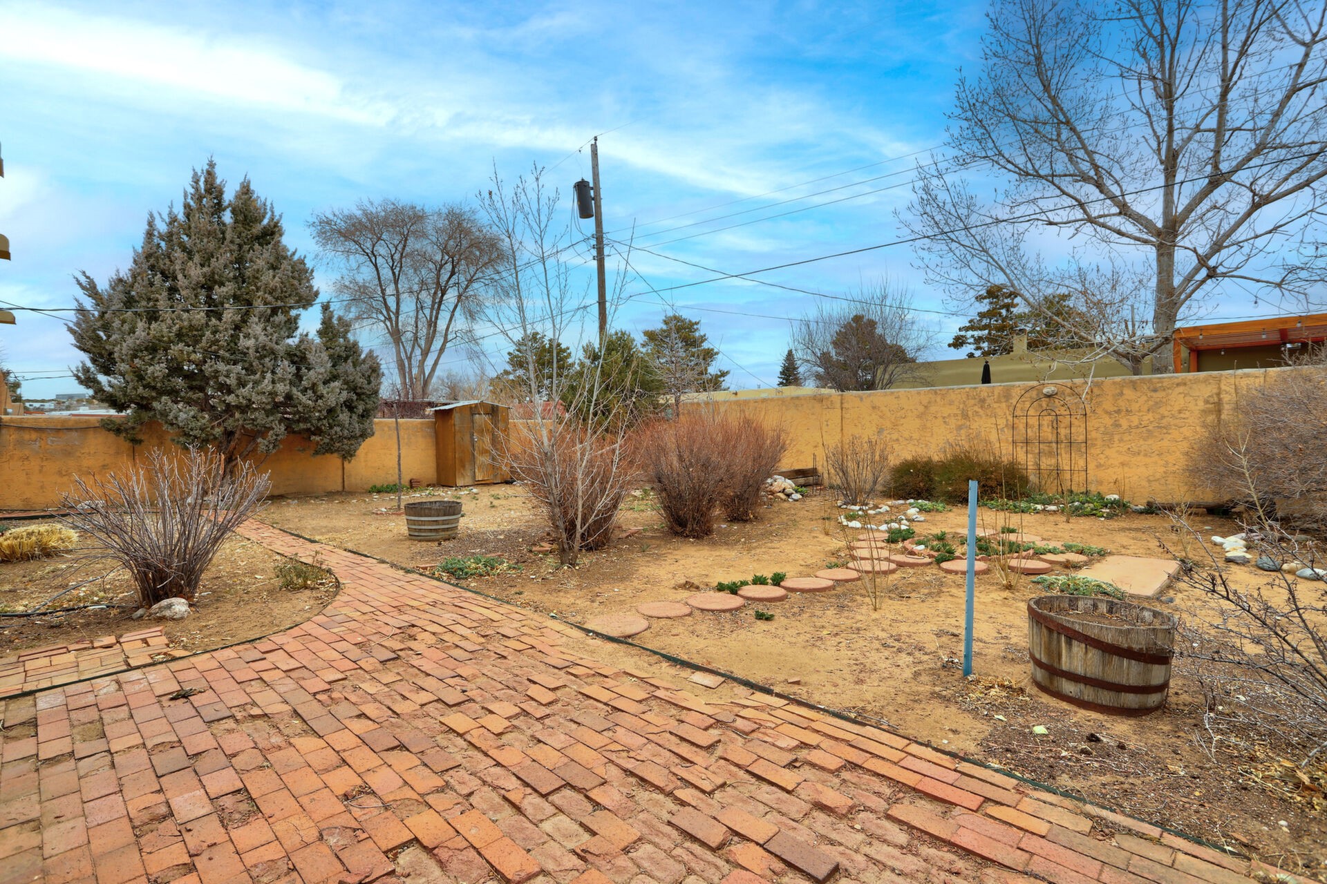 Fantastic opportunity to live in the undiscovered neighborhood of Barrio La Canada. Just a short walk to the river trail. Both the front and back yards are enclosed via block walls, very convenient for kids and pets. Large yards with mature vegetation ready for your gardening expertise. 1 car garage was converted at some point into a 2nd heated living room with kiva.