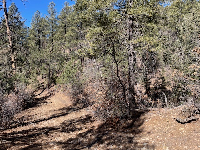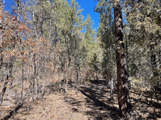 This glorious mountain retreat is an ideal getaway for anyone searching for tranquility and seclusion. 18.46 acres borders Santa Fe National forest on two sides and is adorned with a plethora of beautiful ponderosa pine, juniper, and pinon trees. Located behind a locked gate for security, the terrain is varied with a usable flat building site just off the access road. Properties of this type are difficult to find due to the location. Off grid and alternative forms of utilities would be necessary. There is a small spring before the lot where one could fill a water jug. This listing is truly a stunningly beautiful, forested mountain destination. Property is less than an hour to Santa Fe and offers endless possibilities for development.