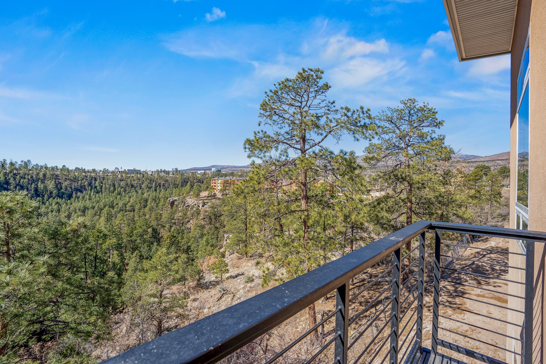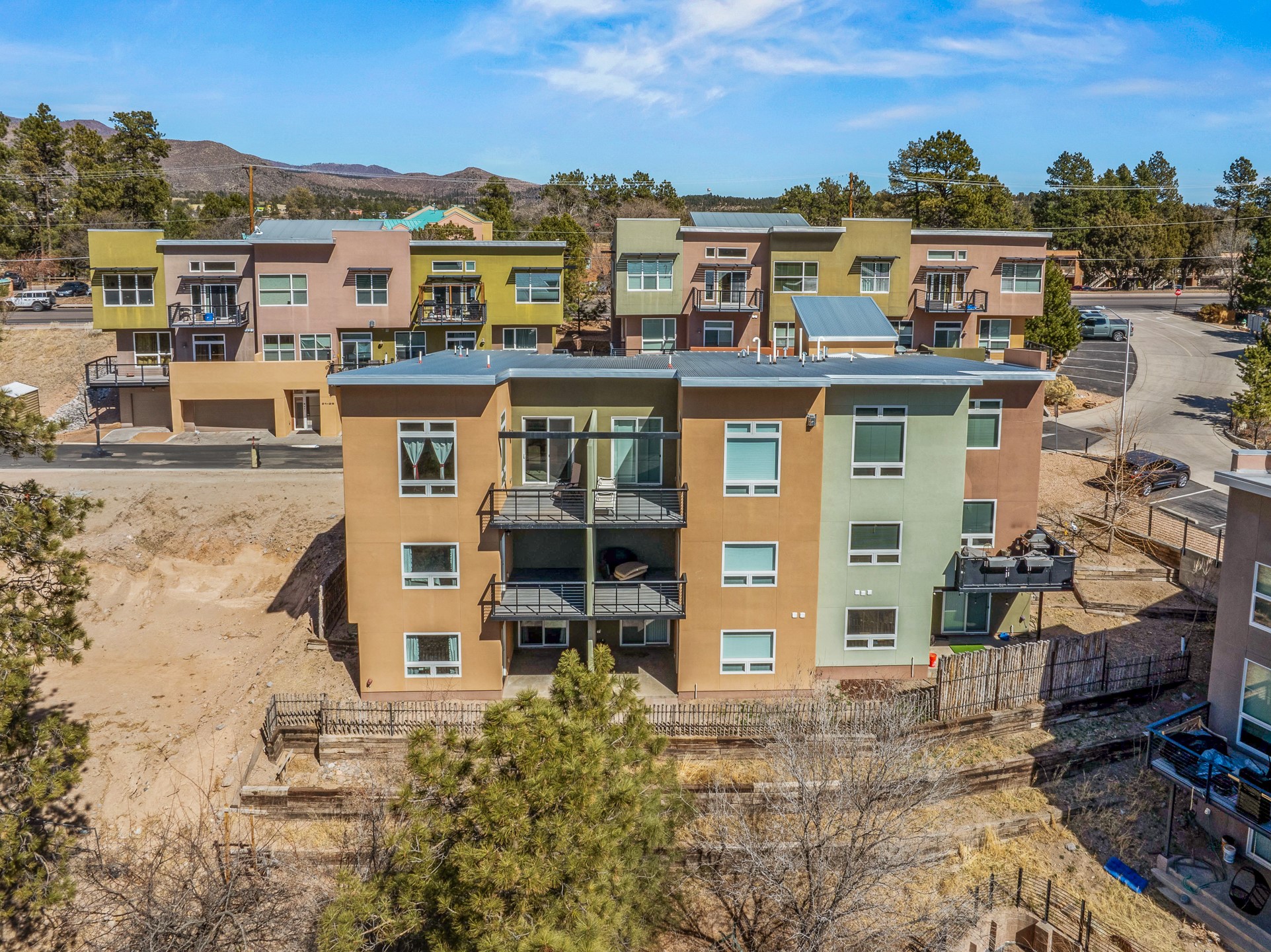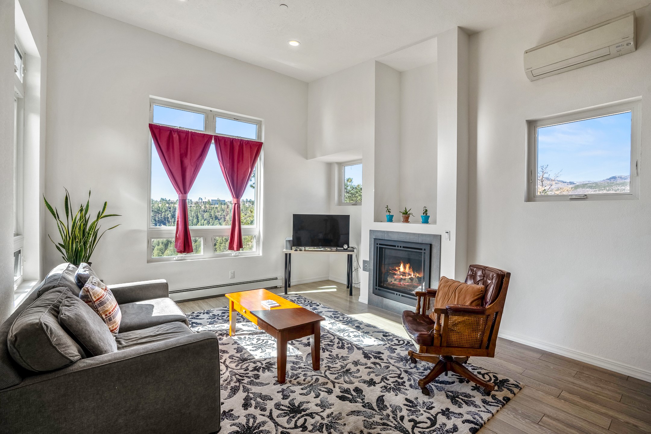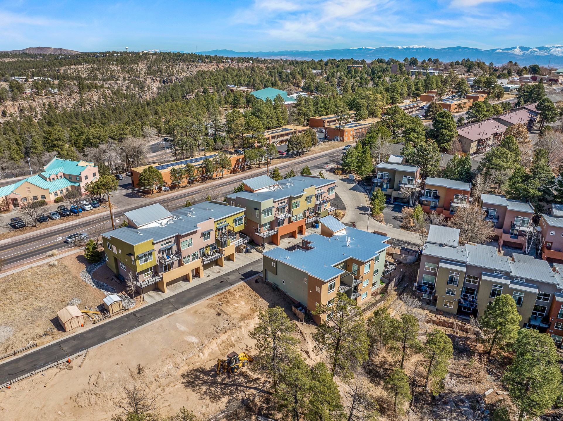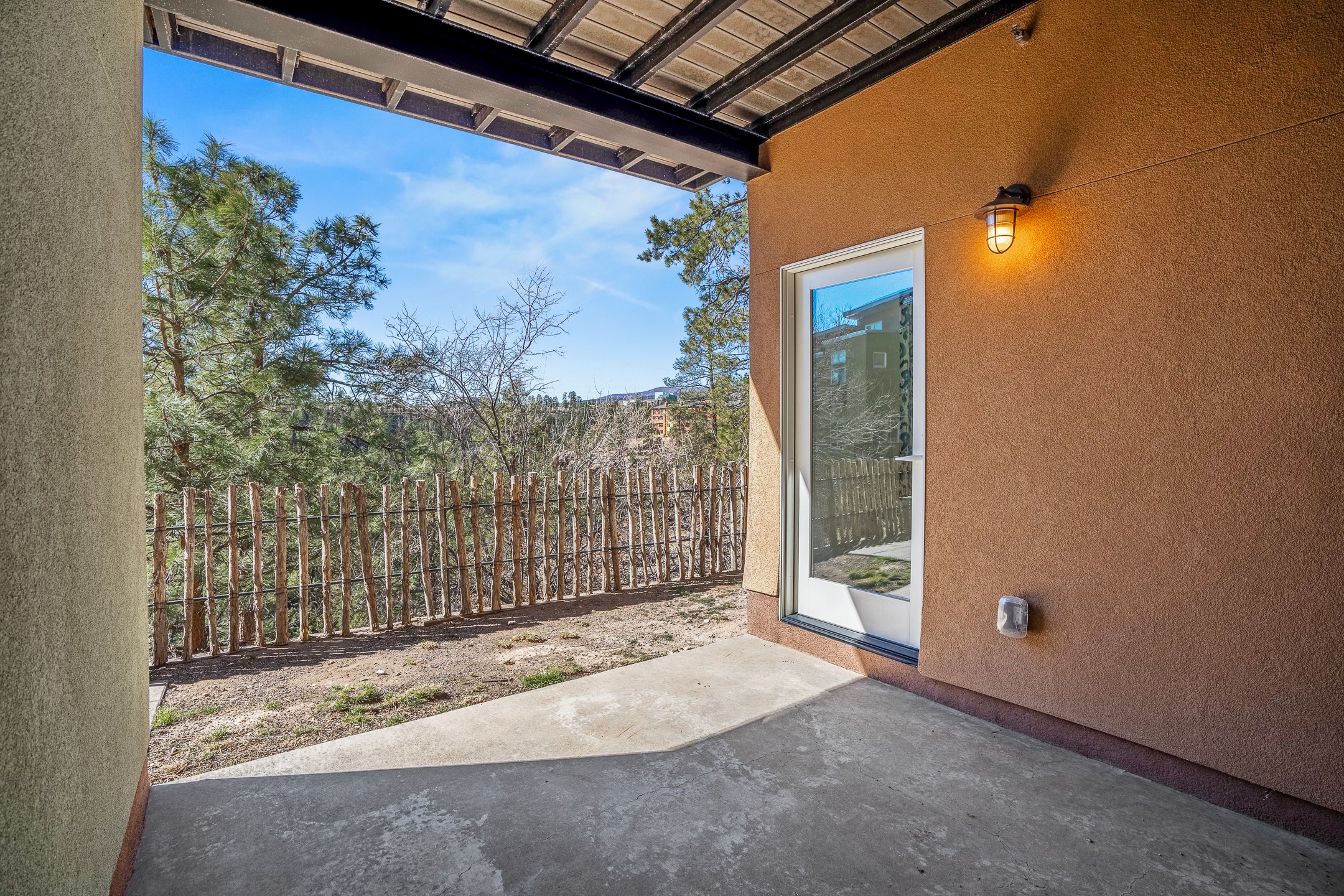 Like-New Modern Canyon View Condo Built in 2019, 3 Bedrooms + Office, 3 Full Bathrooms, Primary Suite, Great Kitchen, Air Conditioning (Mini-Splits), South-Facing Windows for Abundant Natural Light, 2 Car Garage, Meticulously Maintained, Smart-Home and Move-In Ready! Welcome to 30 Canyon View! This newer condo, perched on the canyon and offering great views from multiple balconies and a ground-level patio, provides modern luxury living near downtown Los Alamos. The top floor features an open floor plan with seamless transitions between the kitchen, living room, and dining room, as well as slanted lofted ceilings for a high-end architectural touch. The kitchen includes gas cooking, granite countertops, tile backsplash, stainless steel appliances, barstool seating, and abundant cabinet space. The living room offers great south-facing canyon views and natural light, a gas fireplace, mini-split air conditioning, and a balcony for enjoying your morning coffee while breathing in the fresh mountain air. A full bathroom and an office (or fourth bedroom) complete the top floor. The primary bedroom suite features a large walk-in closet, a private south-facing balcony, mini-split cooling for comfort, and an en suite bathroom with glass shower enclosure, soaking tub, and dual vanities. Two additional bedrooms are on the ground level, and each include access to the patio. A full bathroom services these two guest bedrooms. The property also includes a fire suppression system with ballast tank and code-compliant piping to each room in the house for peace of mind. A Lochinvar tankless water heater provides hot water and three-zone heating. The property has also Smart Home ready! This property is sure to sell quickly, so schedule your showing today before this opportunity is gone!