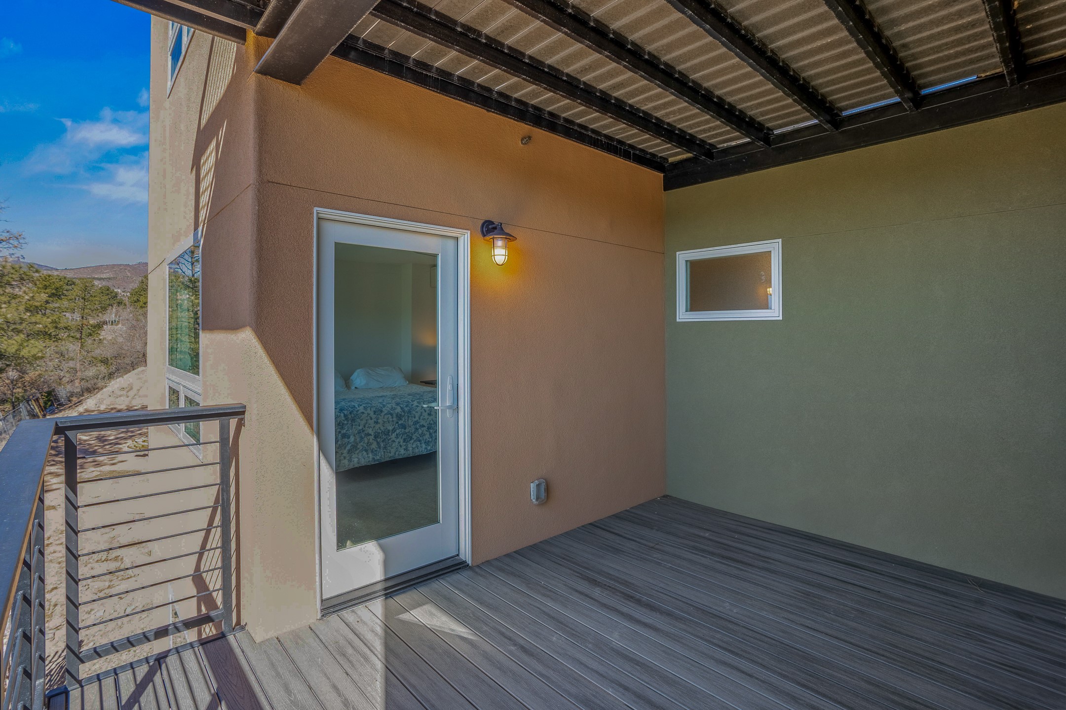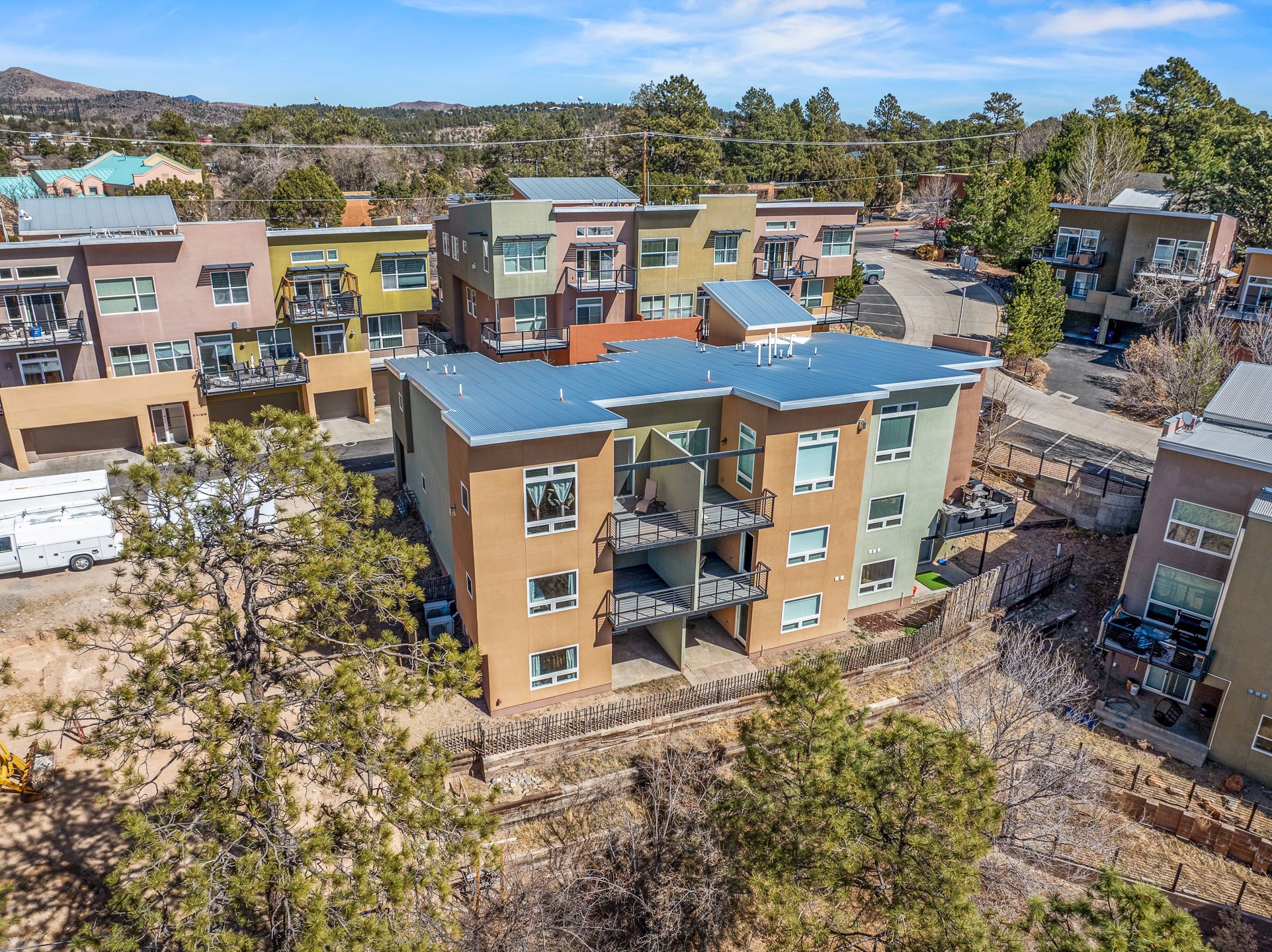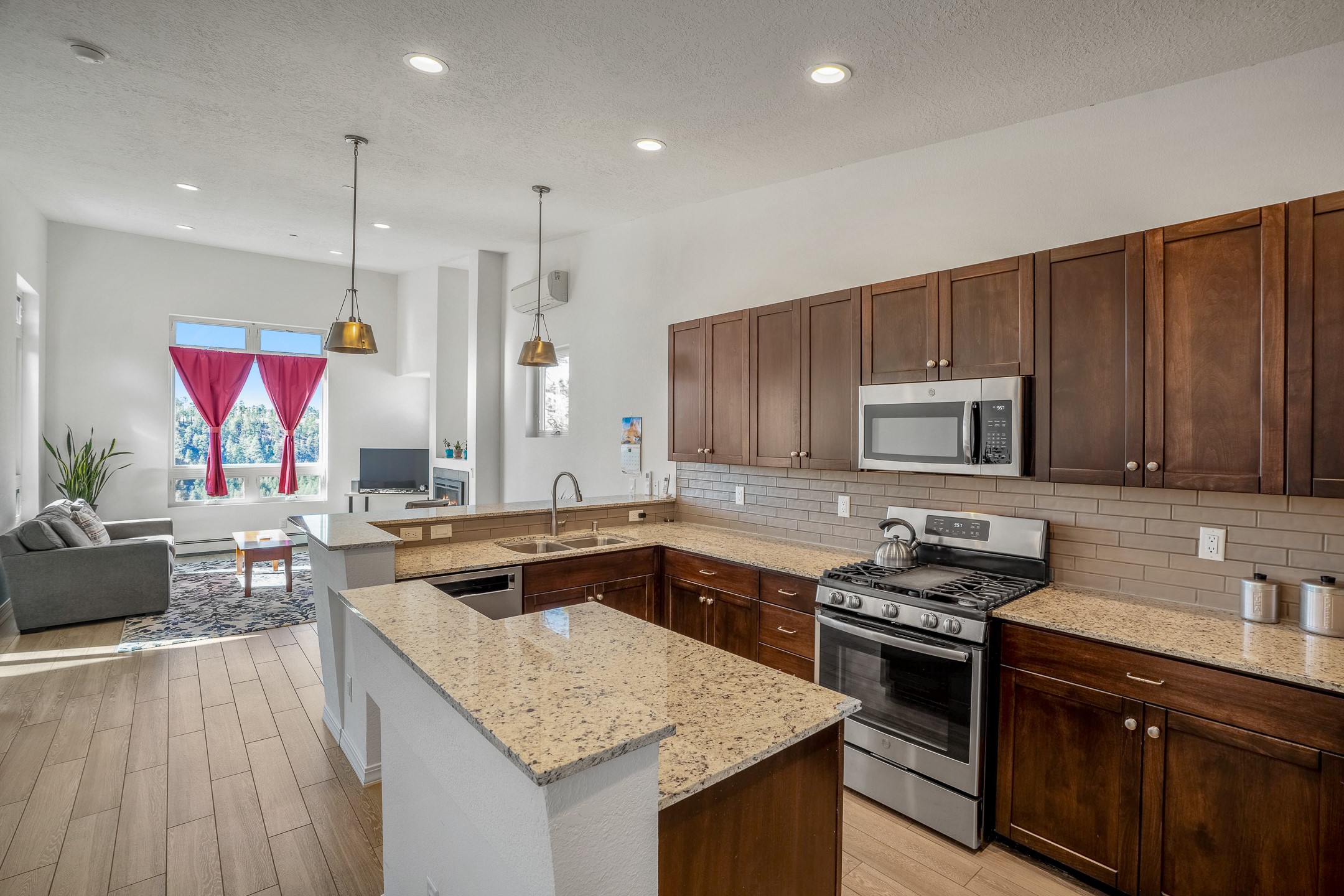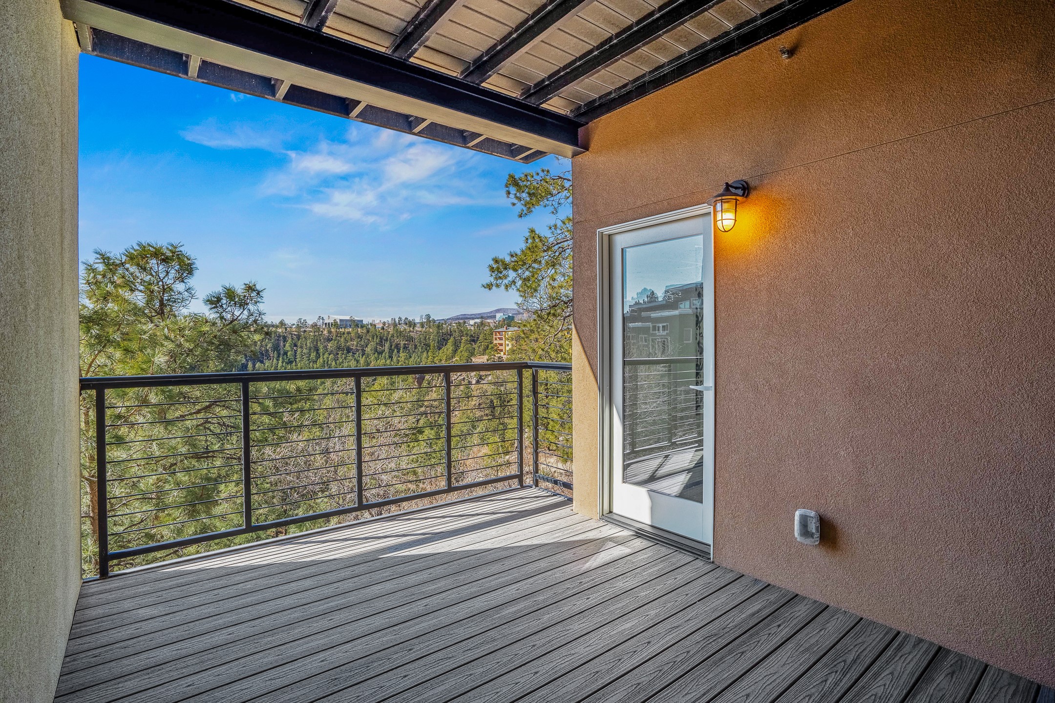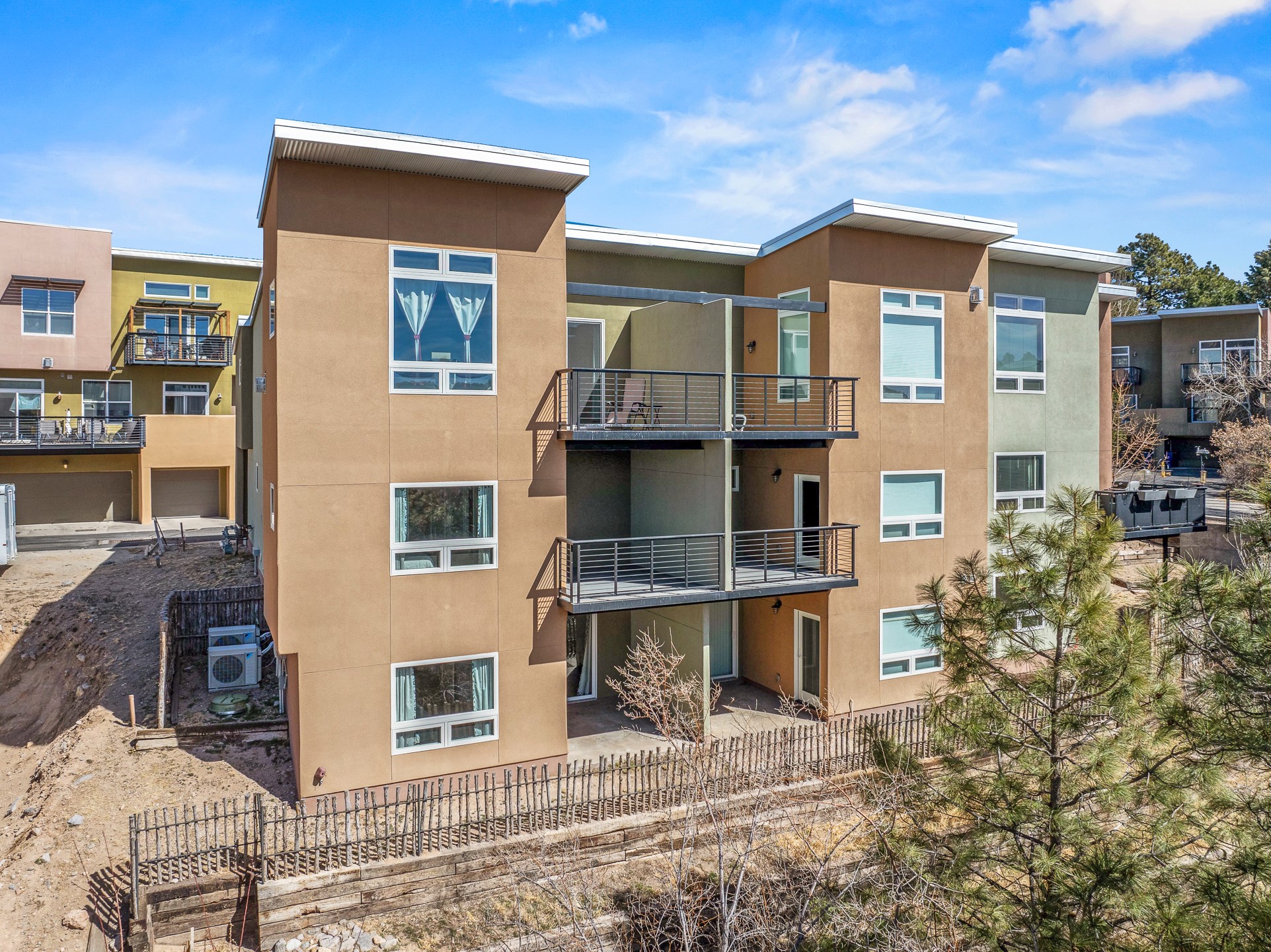 Like-New Modern Canyon View Condo Built in 2019, 3 Bedrooms + Office, 3 Full Bathrooms, Primary Suite, Great Kitchen, Air Conditioning (Mini-Splits), South-Facing Windows for Abundant Natural Light, 2 Car Garage, Meticulously Maintained, Smart-Home and Move-In Ready! Welcome to 30 Canyon View! This newer condo, perched on the canyon and offering great views from multiple balconies and a ground-level patio, provides modern luxury living near downtown Los Alamos. The top floor features an open floor plan with seamless transitions between the kitchen, living room, and dining room, as well as slanted lofted ceilings for a high-end architectural touch. The kitchen includes gas cooking, granite countertops, tile backsplash, stainless steel appliances, barstool seating, and abundant cabinet space. The living room offers great south-facing canyon views and natural light, a gas fireplace, mini-split air conditioning, and a balcony for enjoying your morning coffee while breathing in the fresh mountain air. A full bathroom and an office (or fourth bedroom) complete the top floor. The primary bedroom suite features a large walk-in closet, a private south-facing balcony, mini-split cooling for comfort, and an en suite bathroom with glass shower enclosure, soaking tub, and dual vanities. Two additional bedrooms are on the ground level, and each include access to the patio. A full bathroom services these two guest bedrooms. The property also includes a fire suppression system with ballast tank and code-compliant piping to each room in the house for peace of mind. A Lochinvar tankless water heater provides hot water and three-zone heating. The property has also Smart Home ready! This property is sure to sell quickly, so schedule your showing today before this opportunity is gone!