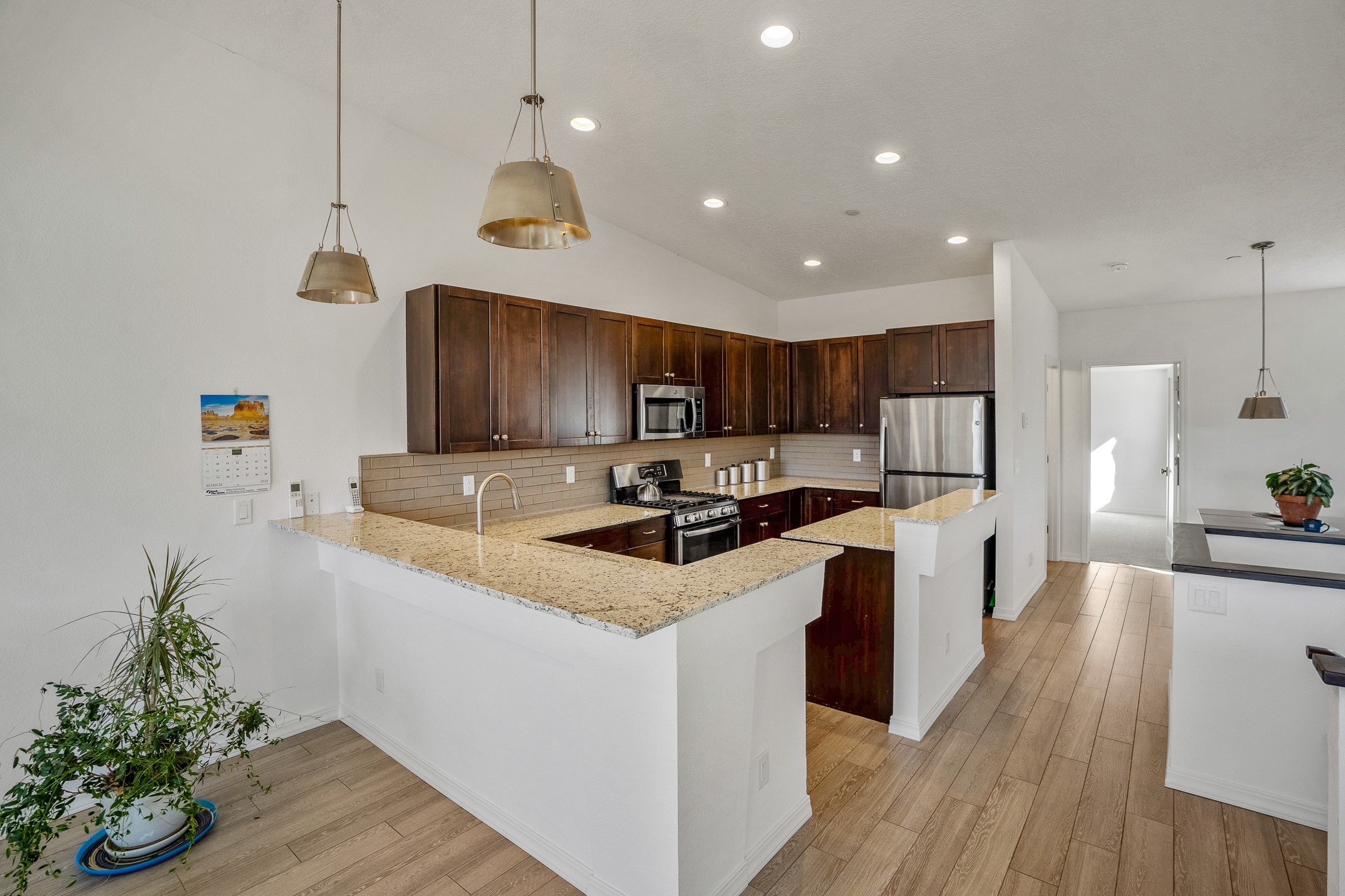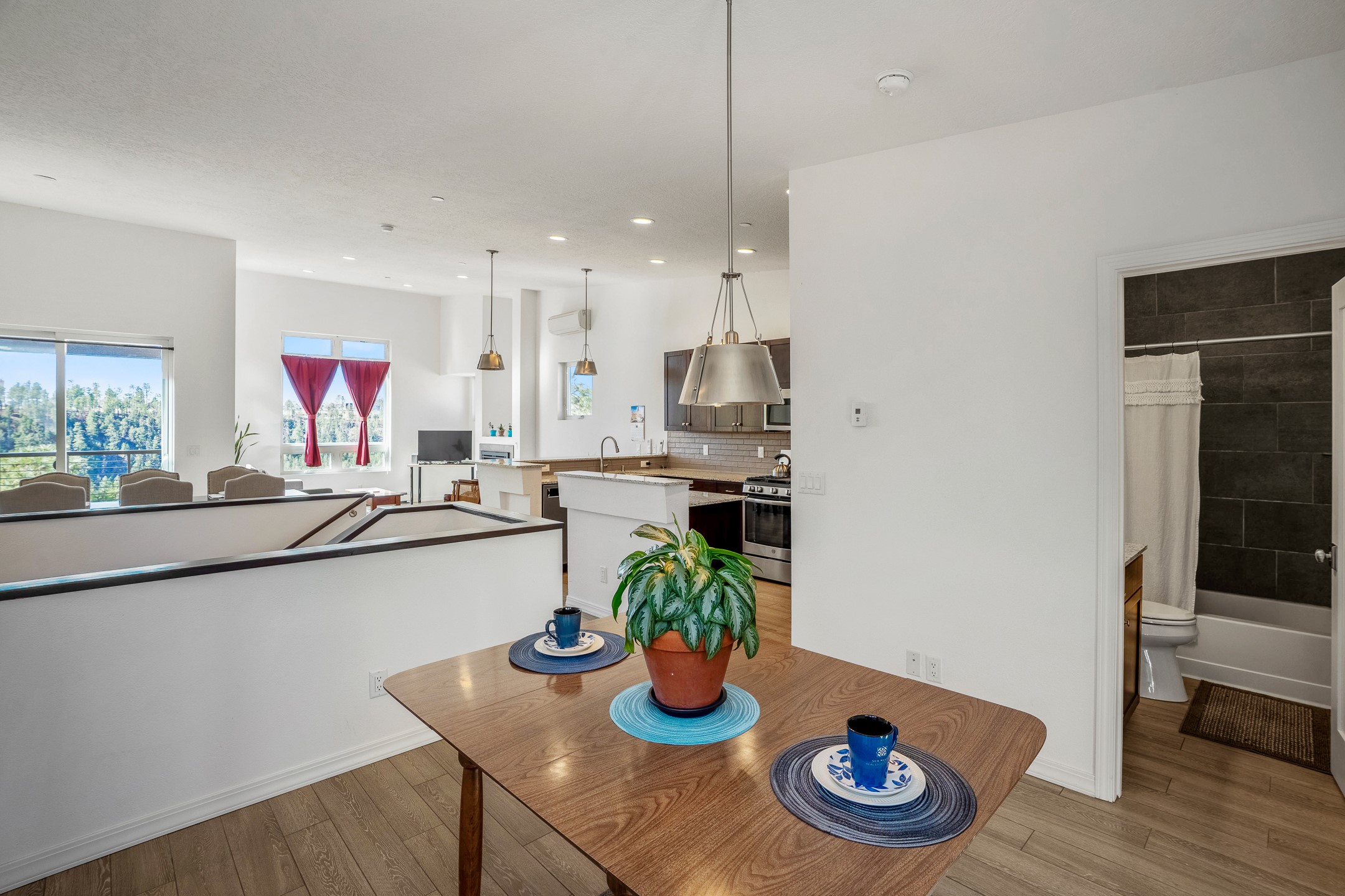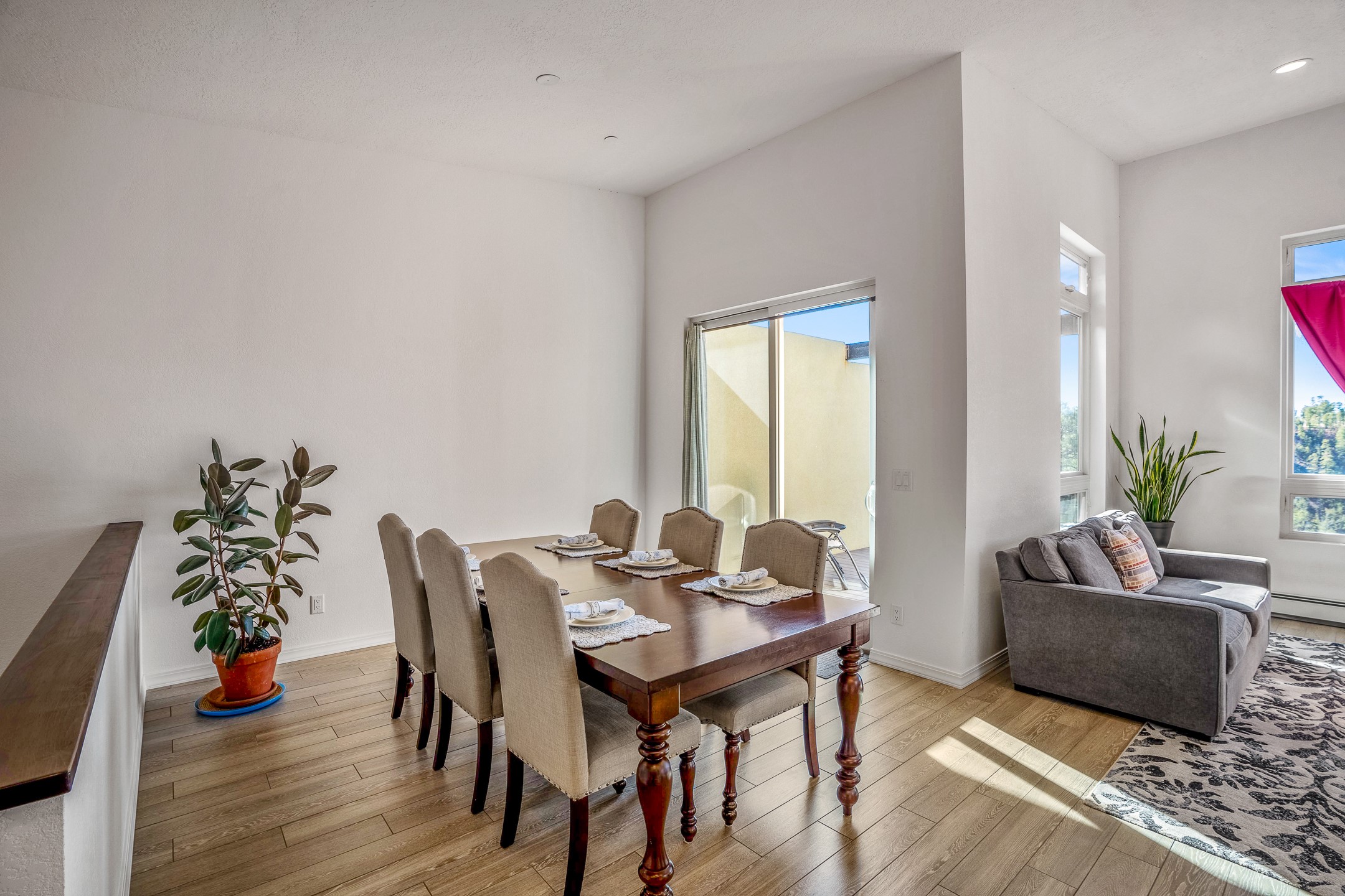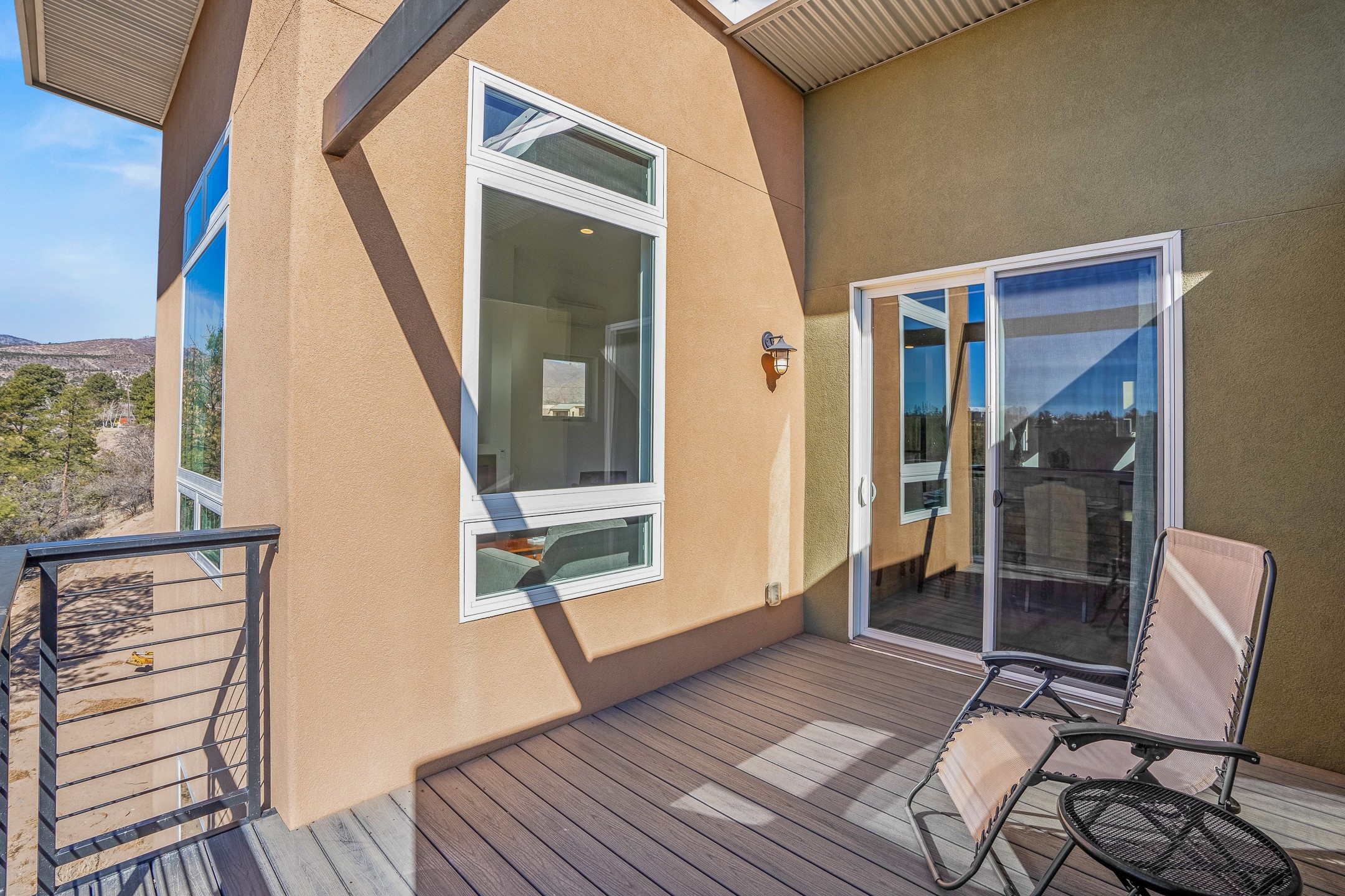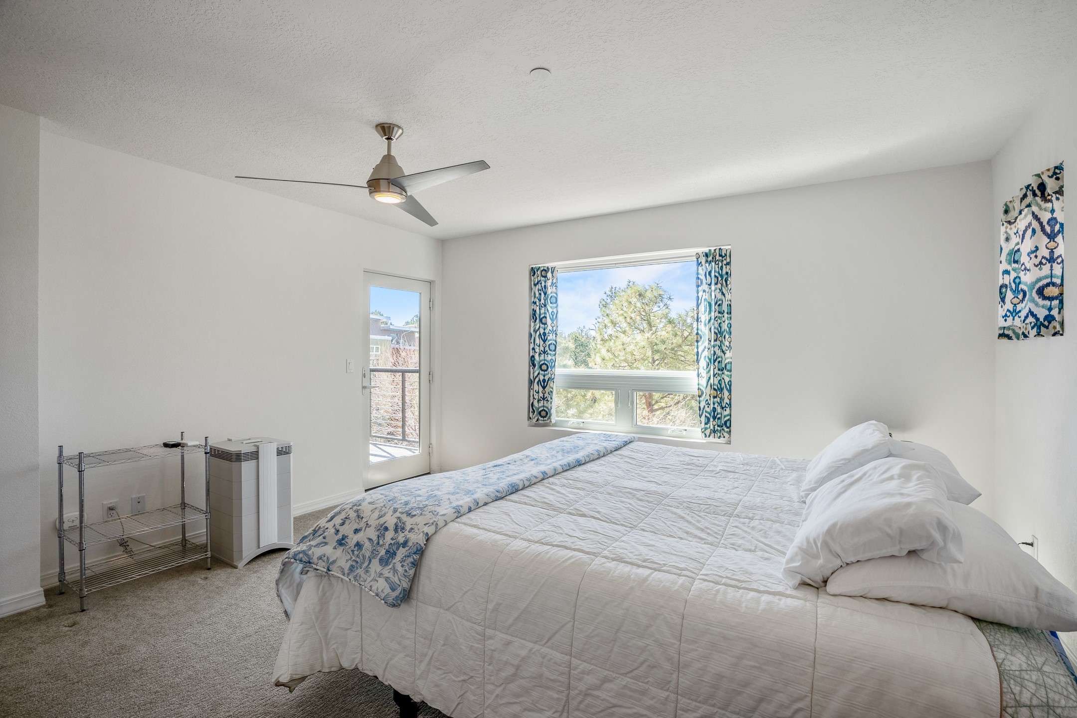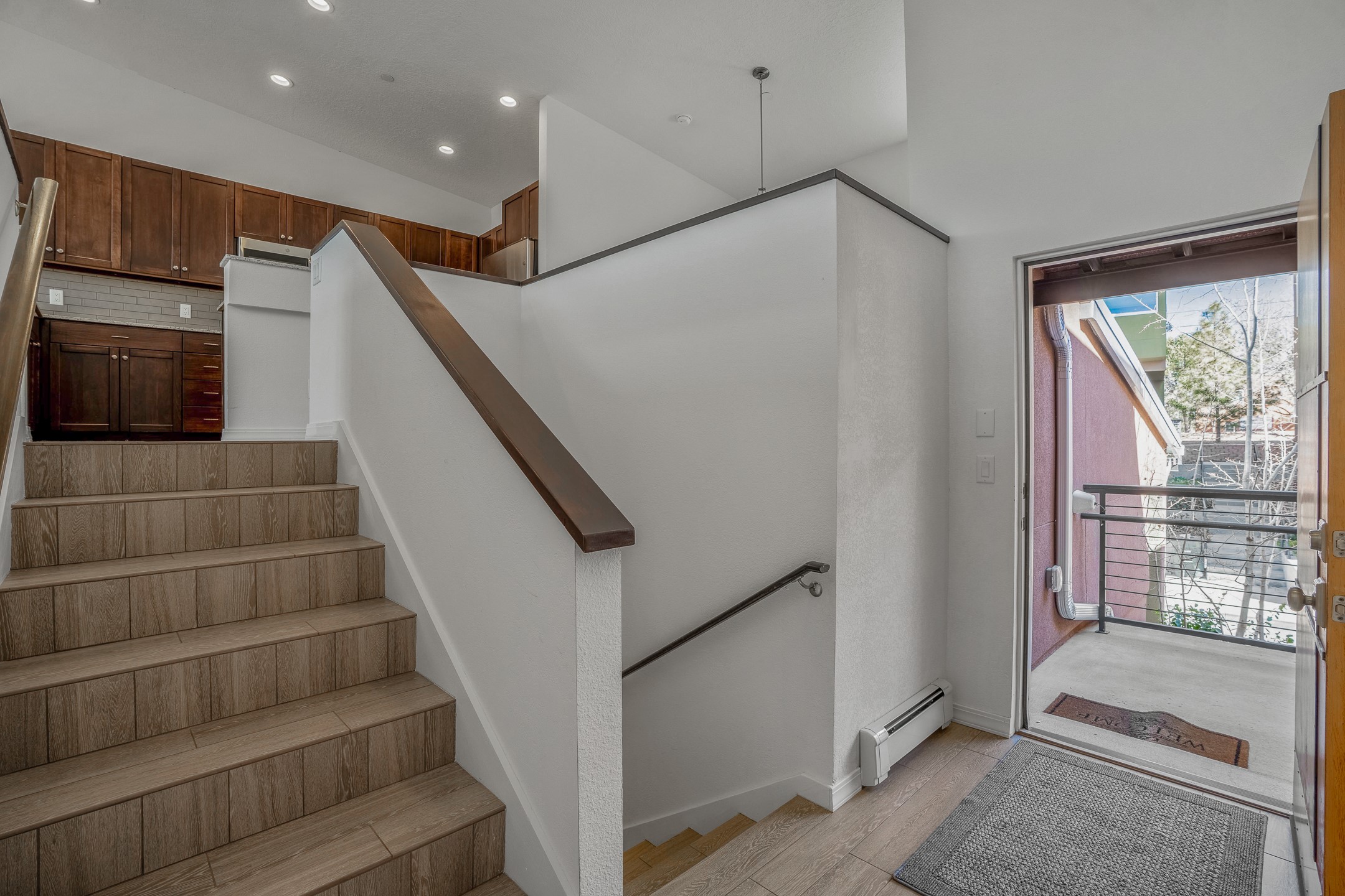 Like-New Modern Canyon View Condo Built in 2019, 3 Bedrooms + Office, 3 Full Bathrooms, Primary Suite, Great Kitchen, Air Conditioning (Mini-Splits), South-Facing Windows for Abundant Natural Light, 2 Car Garage, Meticulously Maintained, Smart-Home and Move-In Ready! Welcome to 30 Canyon View! This newer condo, perched on the canyon and offering great views from multiple balconies and a ground-level patio, provides modern luxury living near downtown Los Alamos. The top floor features an open floor plan with seamless transitions between the kitchen, living room, and dining room, as well as slanted lofted ceilings for a high-end architectural touch. The kitchen includes gas cooking, granite countertops, tile backsplash, stainless steel appliances, barstool seating, and abundant cabinet space. The living room offers great south-facing canyon views and natural light, a gas fireplace, mini-split air conditioning, and a balcony for enjoying your morning coffee while breathing in the fresh mountain air. A full bathroom and an office (or fourth bedroom) complete the top floor. The primary bedroom suite features a large walk-in closet, a private south-facing balcony, mini-split cooling for comfort, and an en suite bathroom with glass shower enclosure, soaking tub, and dual vanities. Two additional bedrooms are on the ground level, and each include access to the patio. A full bathroom services these two guest bedrooms. The property also includes a fire suppression system with ballast tank and code-compliant piping to each room in the house for peace of mind. A Lochinvar tankless water heater provides hot water and three-zone heating. The property has also Smart Home ready! This property is sure to sell quickly, so schedule your showing today before this opportunity is gone!