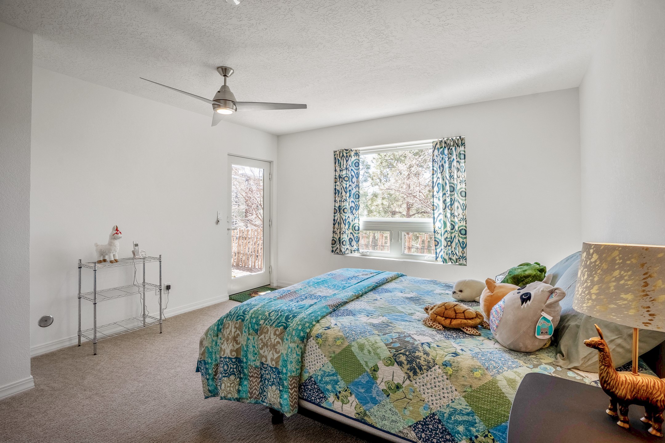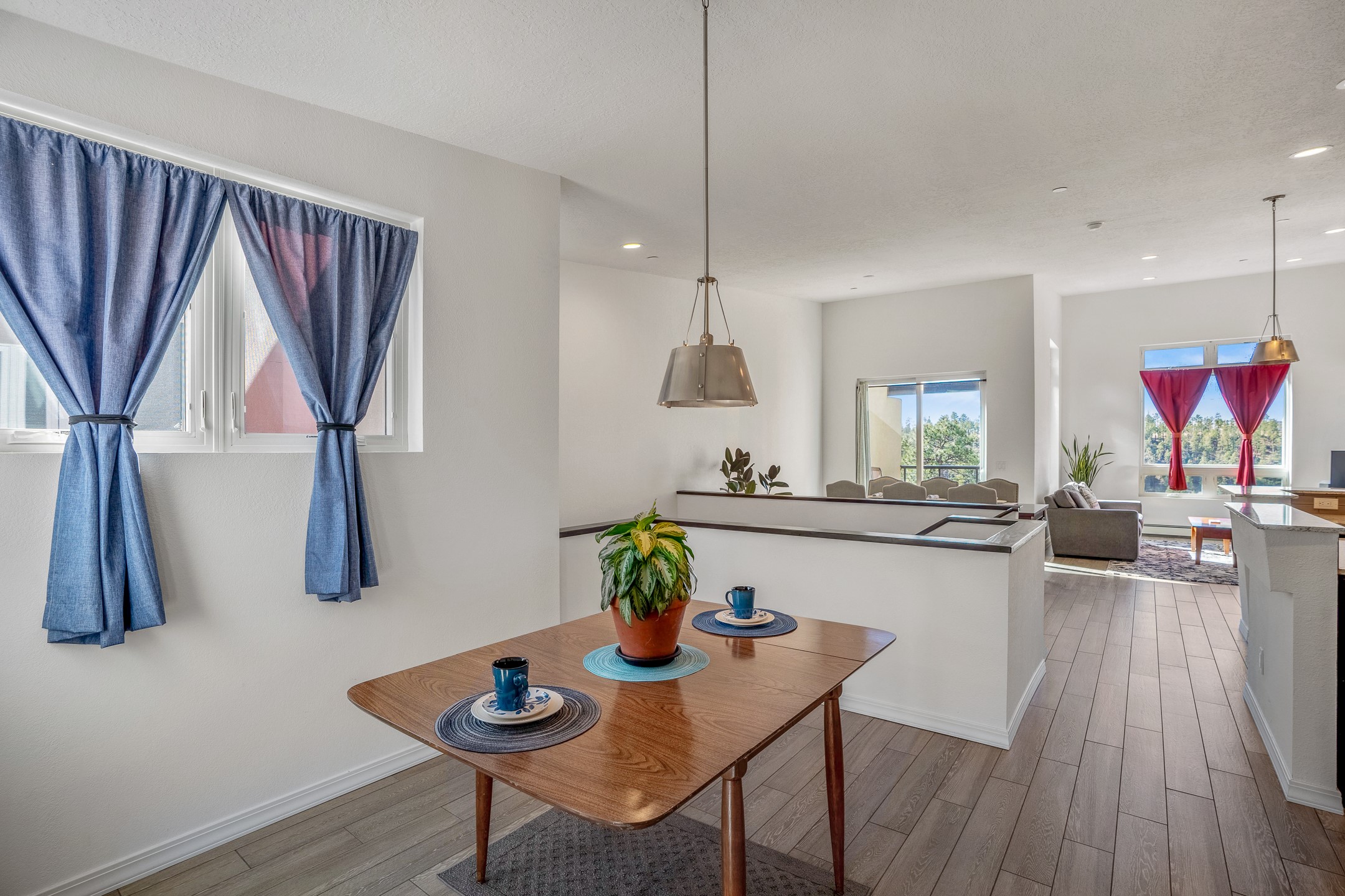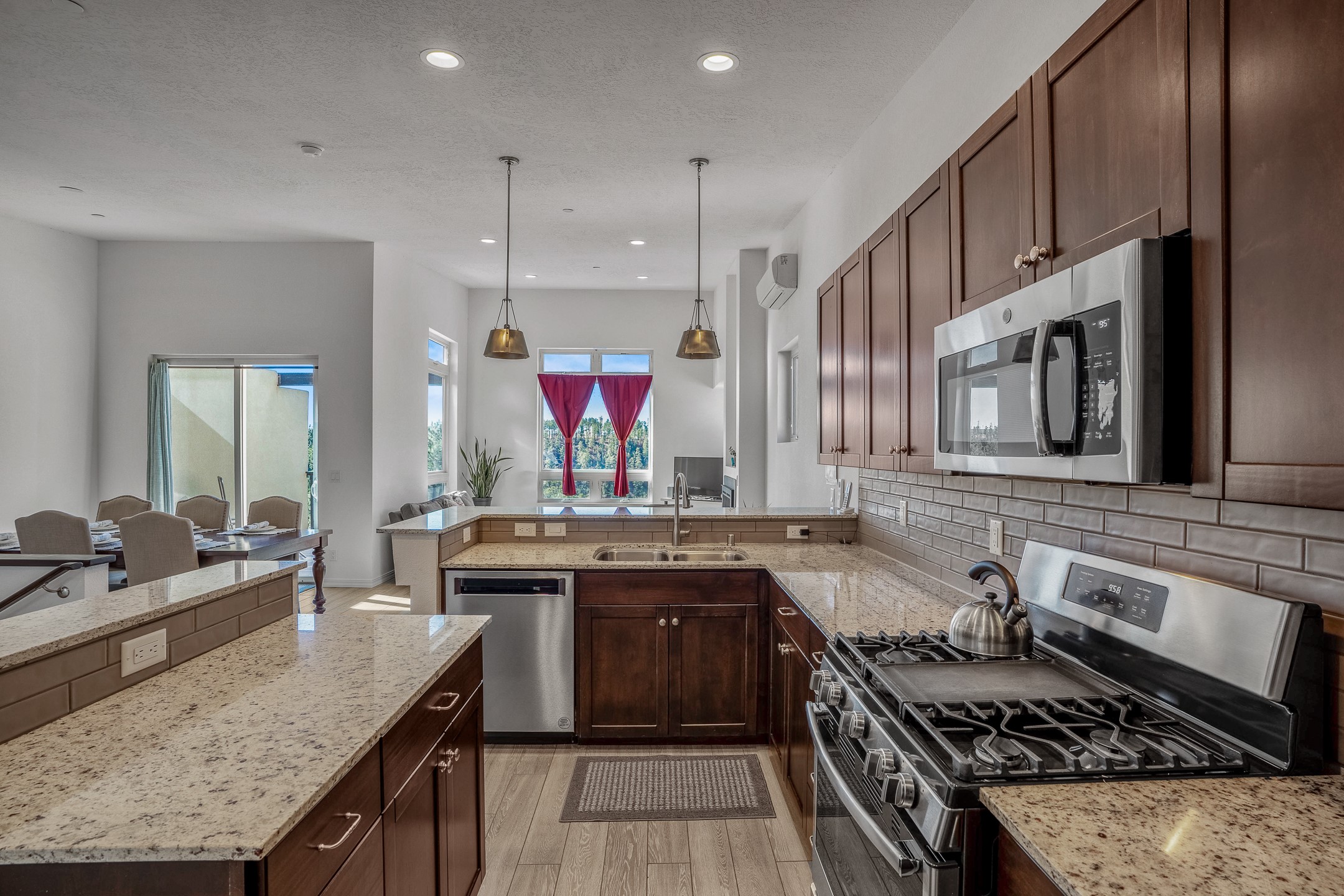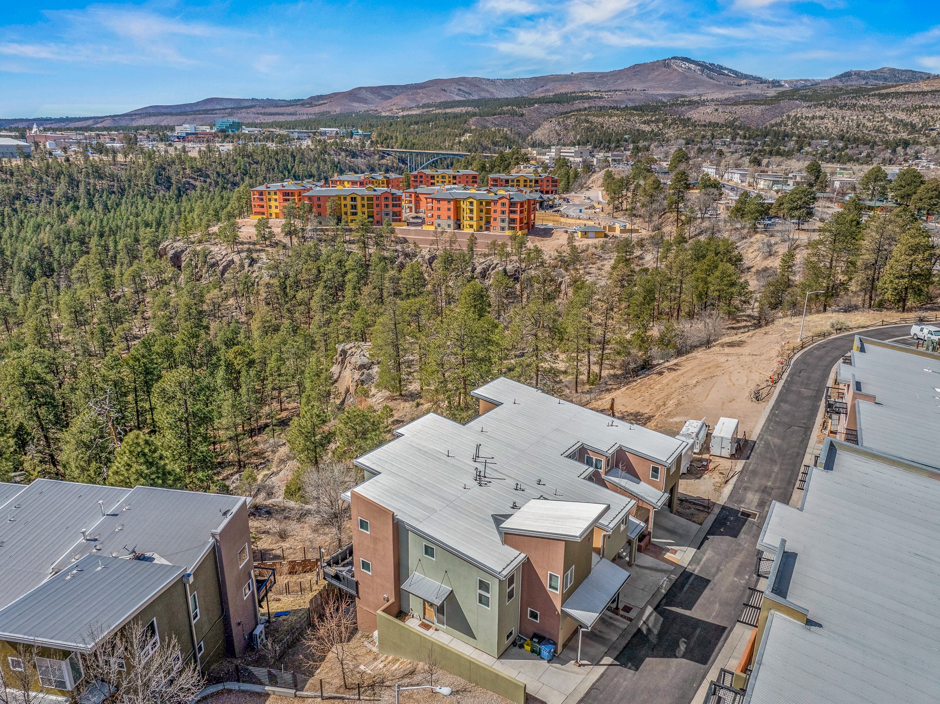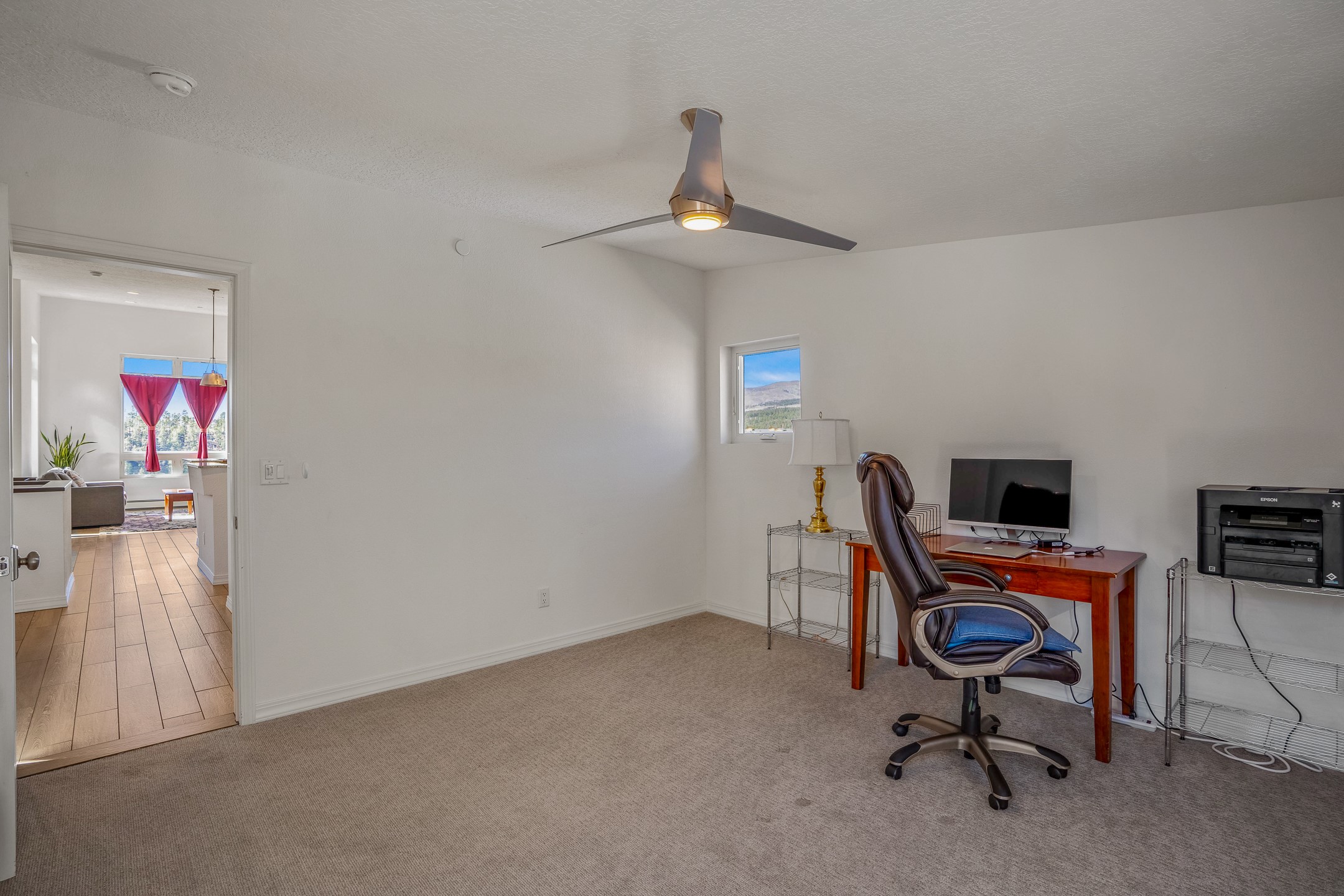 Like-New Modern Canyon View Condo Built in 2019, 3 Bedrooms + Office, 3 Full Bathrooms, Primary Suite, Great Kitchen, Air Conditioning (Mini-Splits), South-Facing Windows for Abundant Natural Light, 2 Car Garage, Meticulously Maintained, Smart-Home and Move-In Ready! Welcome to 30 Canyon View! This newer condo, perched on the canyon and offering great views from multiple balconies and a ground-level patio, provides modern luxury living near downtown Los Alamos. The top floor features an open floor plan with seamless transitions between the kitchen, living room, and dining room, as well as slanted lofted ceilings for a high-end architectural touch. The kitchen includes gas cooking, granite countertops, tile backsplash, stainless steel appliances, barstool seating, and abundant cabinet space. The living room offers great south-facing canyon views and natural light, a gas fireplace, mini-split air conditioning, and a balcony for enjoying your morning coffee while breathing in the fresh mountain air. A full bathroom and an office (or fourth bedroom) complete the top floor. The primary bedroom suite features a large walk-in closet, a private south-facing balcony, mini-split cooling for comfort, and an en suite bathroom with glass shower enclosure, soaking tub, and dual vanities. Two additional bedrooms are on the ground level, and each include access to the patio. A full bathroom services these two guest bedrooms. The property also includes a fire suppression system with ballast tank and code-compliant piping to each room in the house for peace of mind. A Lochinvar tankless water heater provides hot water and three-zone heating. The property has also Smart Home ready! This property is sure to sell quickly, so schedule your showing today before this opportunity is gone!