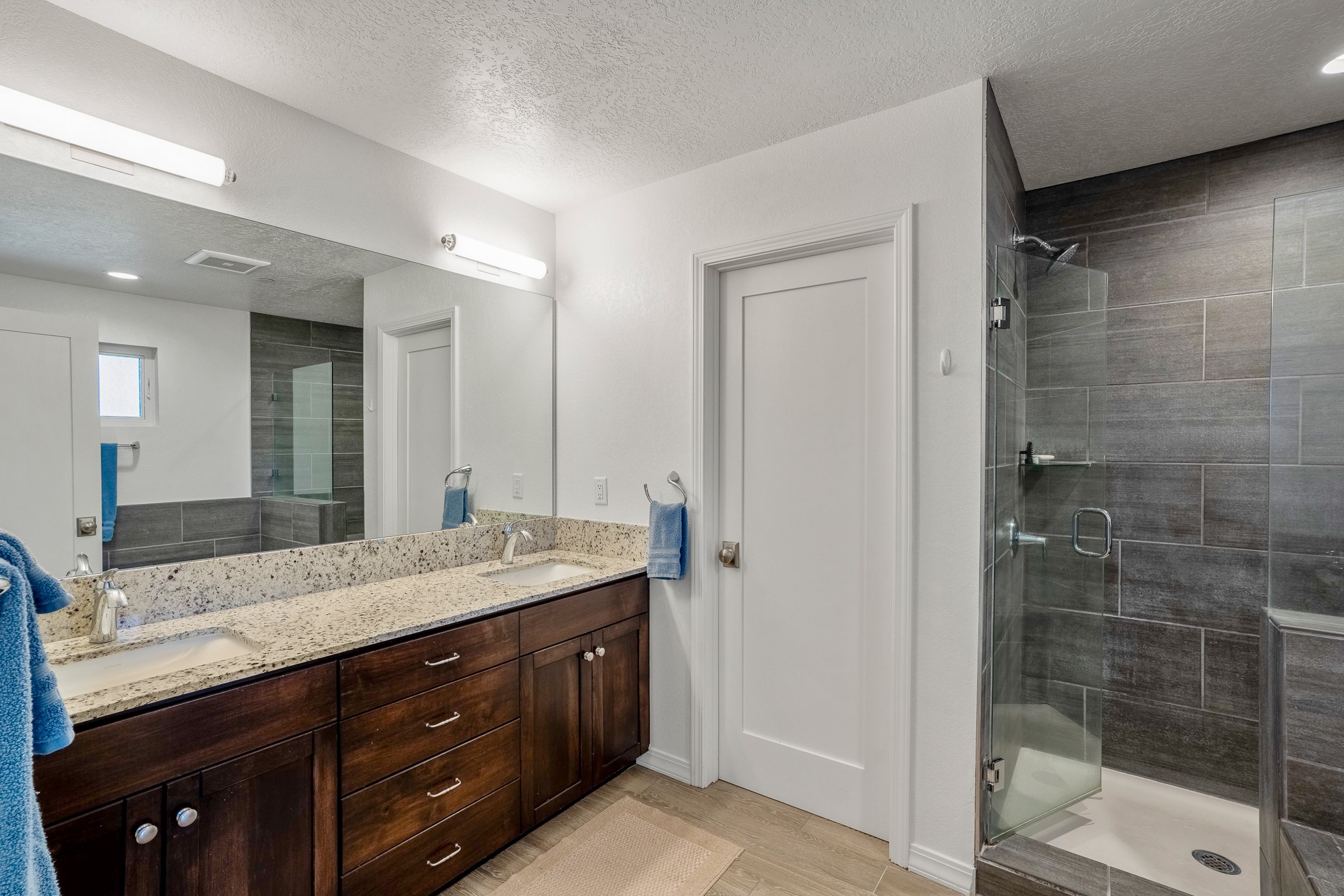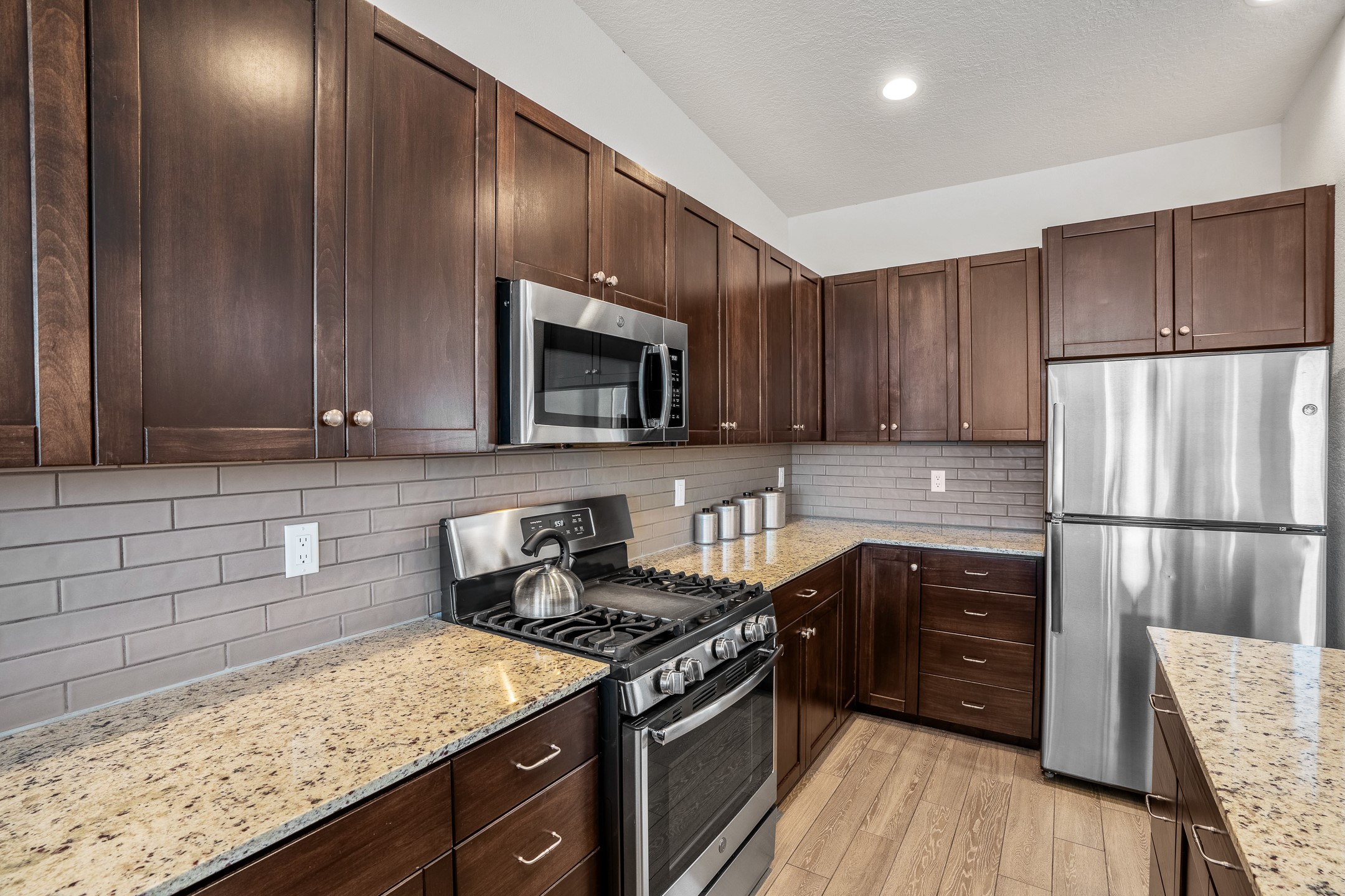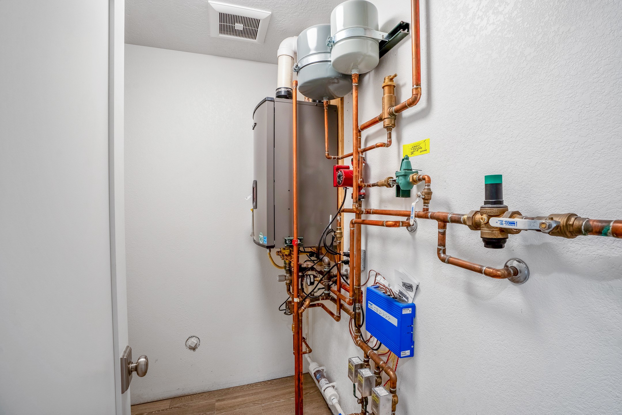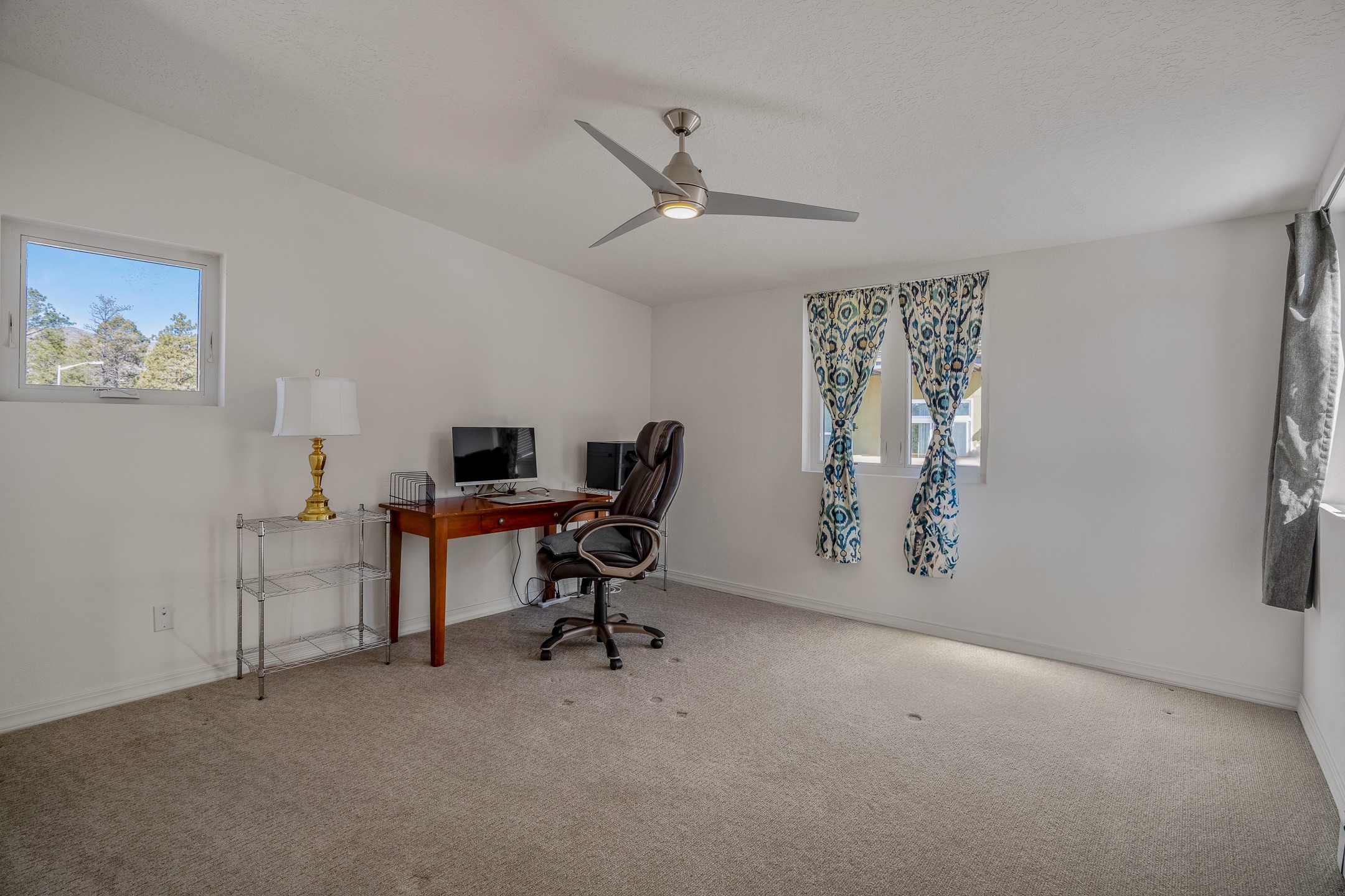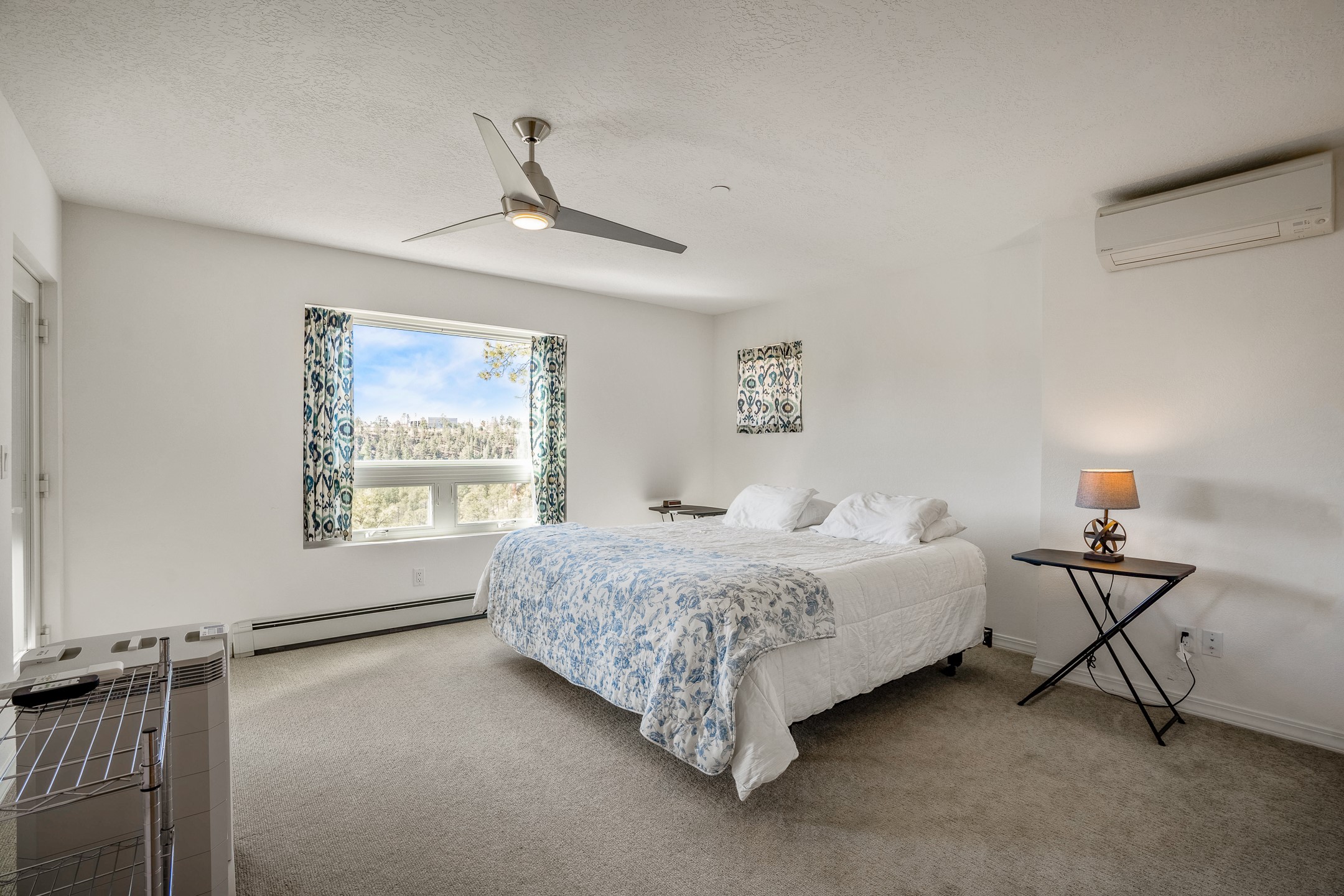 Like-New Modern Canyon View Condo Built in 2019, 3 Bedrooms + Office, 3 Full Bathrooms, Primary Suite, Great Kitchen, Air Conditioning (Mini-Splits), South-Facing Windows for Abundant Natural Light, 2 Car Garage, Meticulously Maintained, Smart-Home and Move-In Ready! Welcome to 30 Canyon View! This newer condo, perched on the canyon and offering great views from multiple balconies and a ground-level patio, provides modern luxury living near downtown Los Alamos. The top floor features an open floor plan with seamless transitions between the kitchen, living room, and dining room, as well as slanted lofted ceilings for a high-end architectural touch. The kitchen includes gas cooking, granite countertops, tile backsplash, stainless steel appliances, barstool seating, and abundant cabinet space. The living room offers great south-facing canyon views and natural light, a gas fireplace, mini-split air conditioning, and a balcony for enjoying your morning coffee while breathing in the fresh mountain air. A full bathroom and an office (or fourth bedroom) complete the top floor. The primary bedroom suite features a large walk-in closet, a private south-facing balcony, mini-split cooling for comfort, and an en suite bathroom with glass shower enclosure, soaking tub, and dual vanities. Two additional bedrooms are on the ground level, and each include access to the patio. A full bathroom services these two guest bedrooms. The property also includes a fire suppression system with ballast tank and code-compliant piping to each room in the house for peace of mind. A Lochinvar tankless water heater provides hot water and three-zone heating. The property has also Smart Home ready! This property is sure to sell quickly, so schedule your showing today before this opportunity is gone!