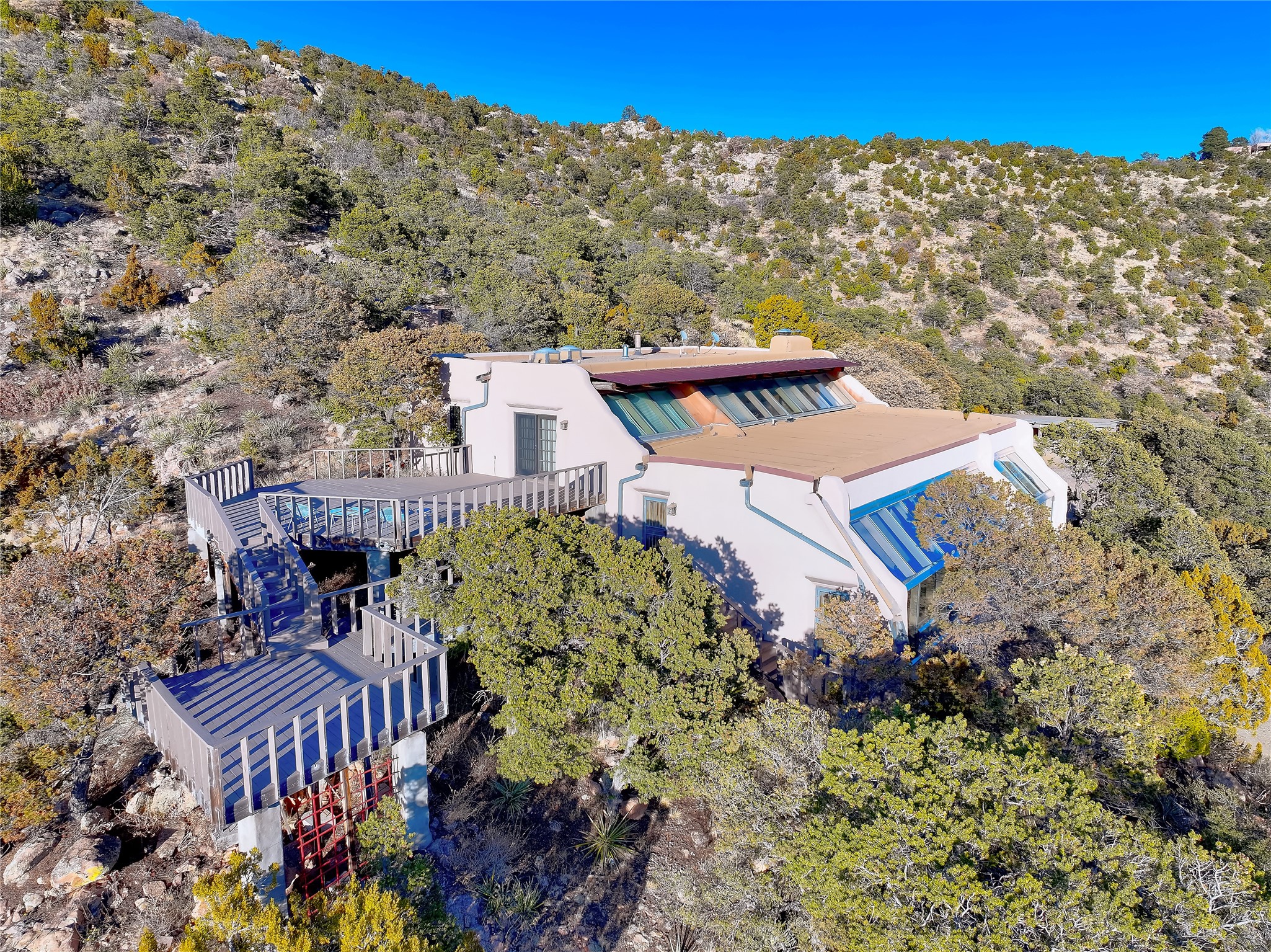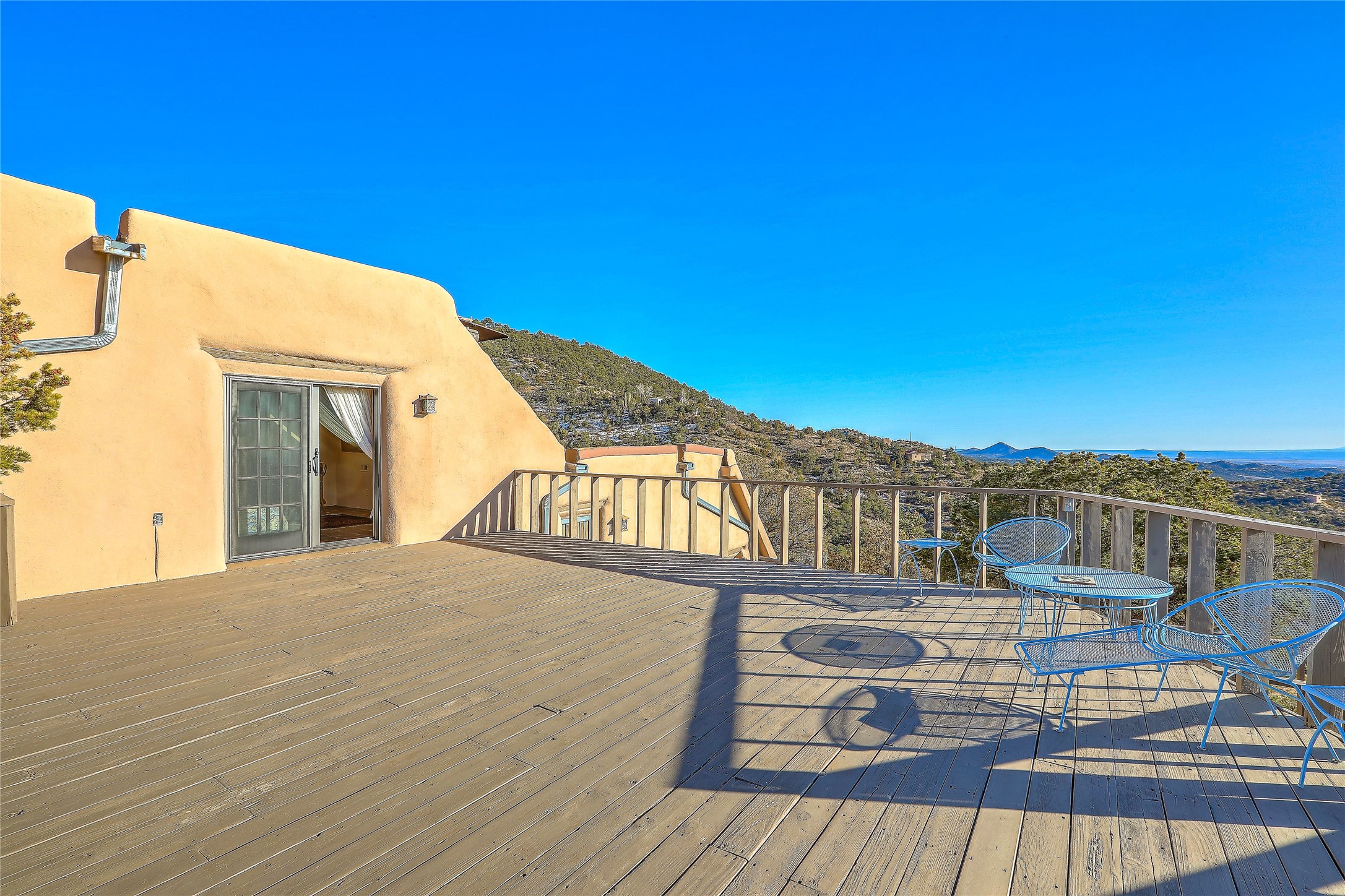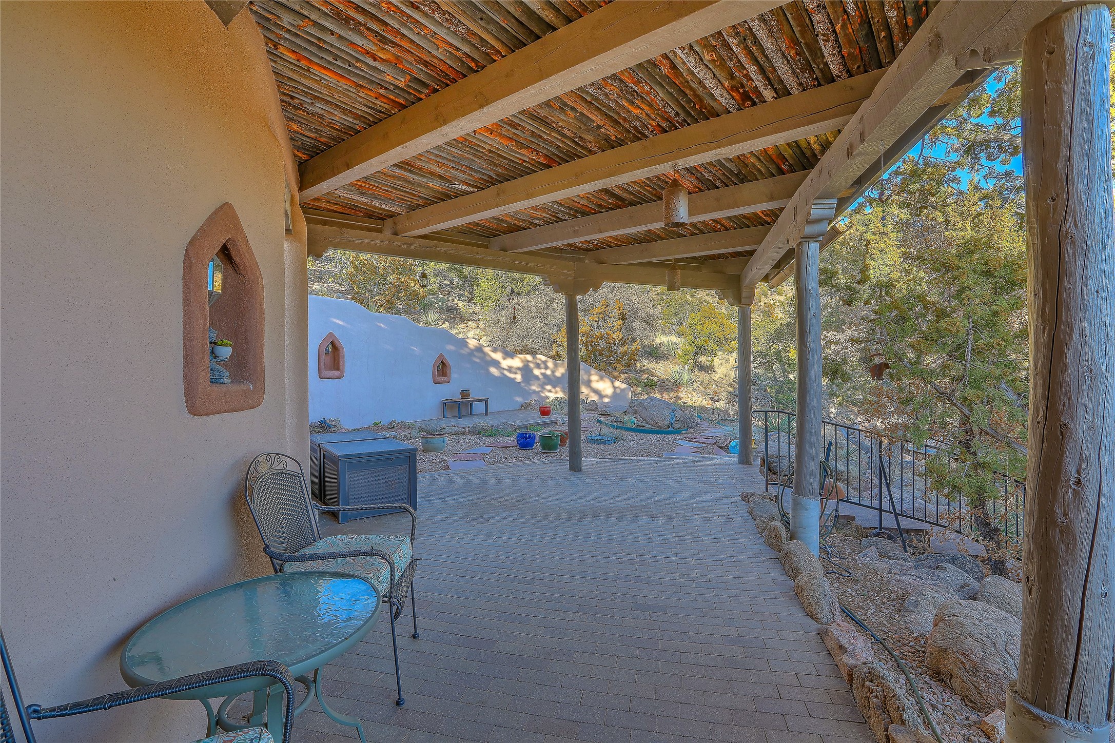 Welcome to your serene sanctuary in Monte De Las Piedras! Immerse yourself in the beauty of this passive solar adobe home, featuring 2-4 bedrooms and 2 full baths. Sitting on 11.85 acres with awe-inspiring mountain views, this split-level residence boasts a charming stone fireplace downstairs and a spacious open kitchen, living, and dining area with an additional fireplace and wood stove for cozy evenings. Step outside onto the view deck, where stunning landscapes unfold before you. The home is adorned with Saltillo tile in the main living areas and wood floors in the bedrooms, creating a warm atmosphere throughout. With a 3-car carport and ample outdoor living space, this property offers the perfect blend of comfort and nature. Make it yours today!