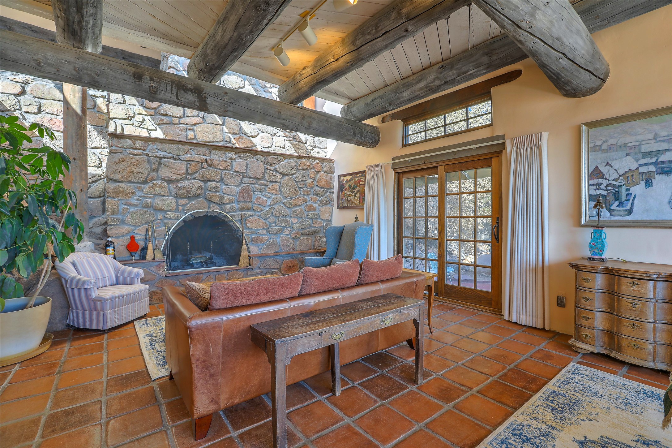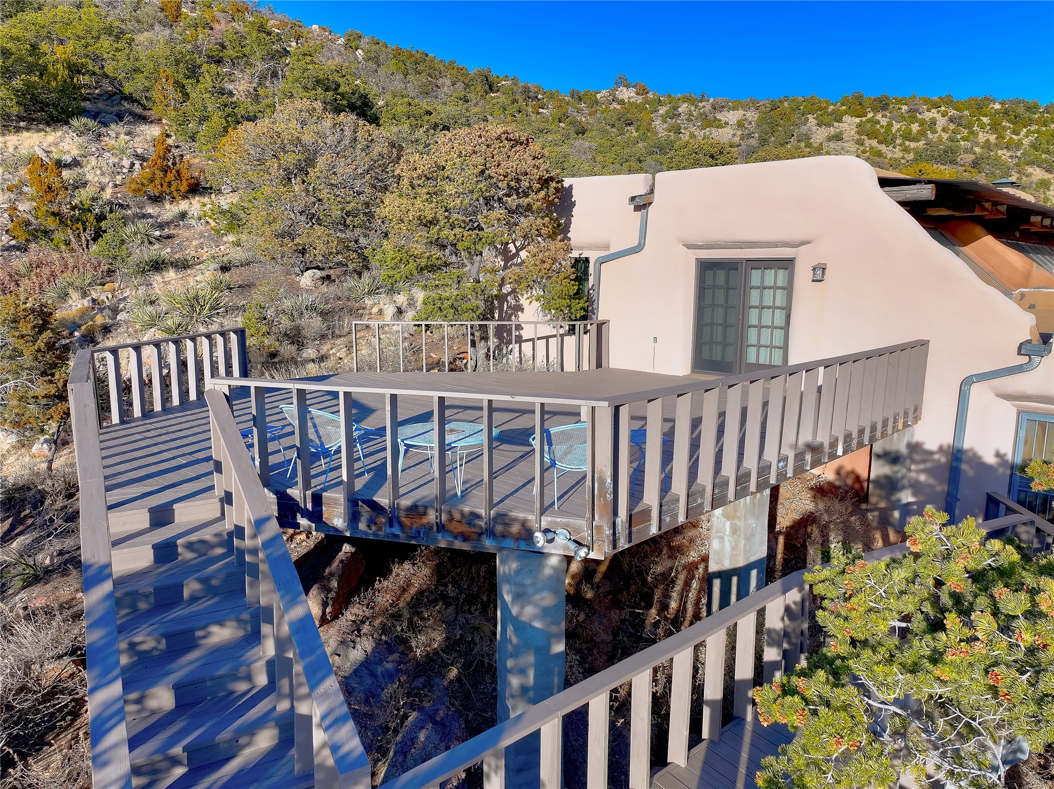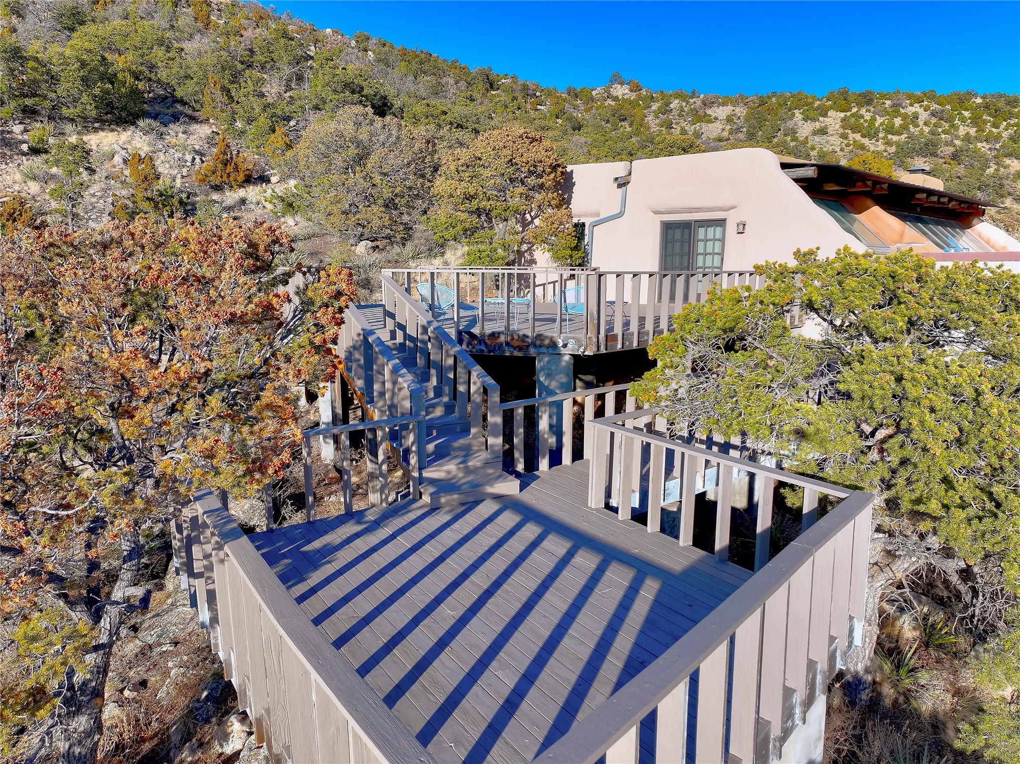 Welcome to your serene sanctuary in Monte De Las Piedras! Immerse yourself in the beauty of this passive solar adobe home, featuring 2-4 bedrooms and 2 full baths. Sitting on 11.85 acres with awe-inspiring mountain views, this split-level residence boasts a charming stone fireplace downstairs and a spacious open kitchen, living, and dining area with an additional fireplace and wood stove for cozy evenings. Step outside onto the view deck, where stunning landscapes unfold before you. The home is adorned with Saltillo tile in the main living areas and wood floors in the bedrooms, creating a warm atmosphere throughout. With a 3-car carport and ample outdoor living space, this property offers the perfect blend of comfort and nature. Make it yours today!
