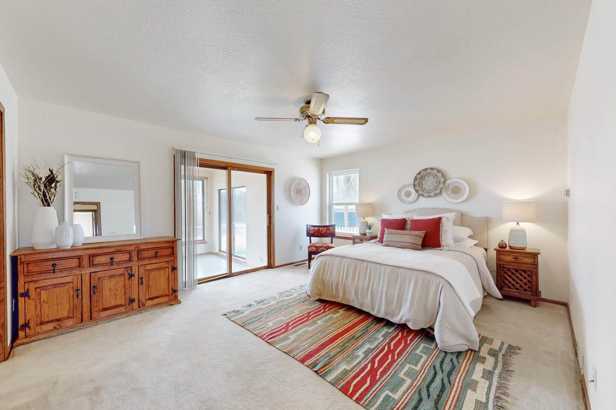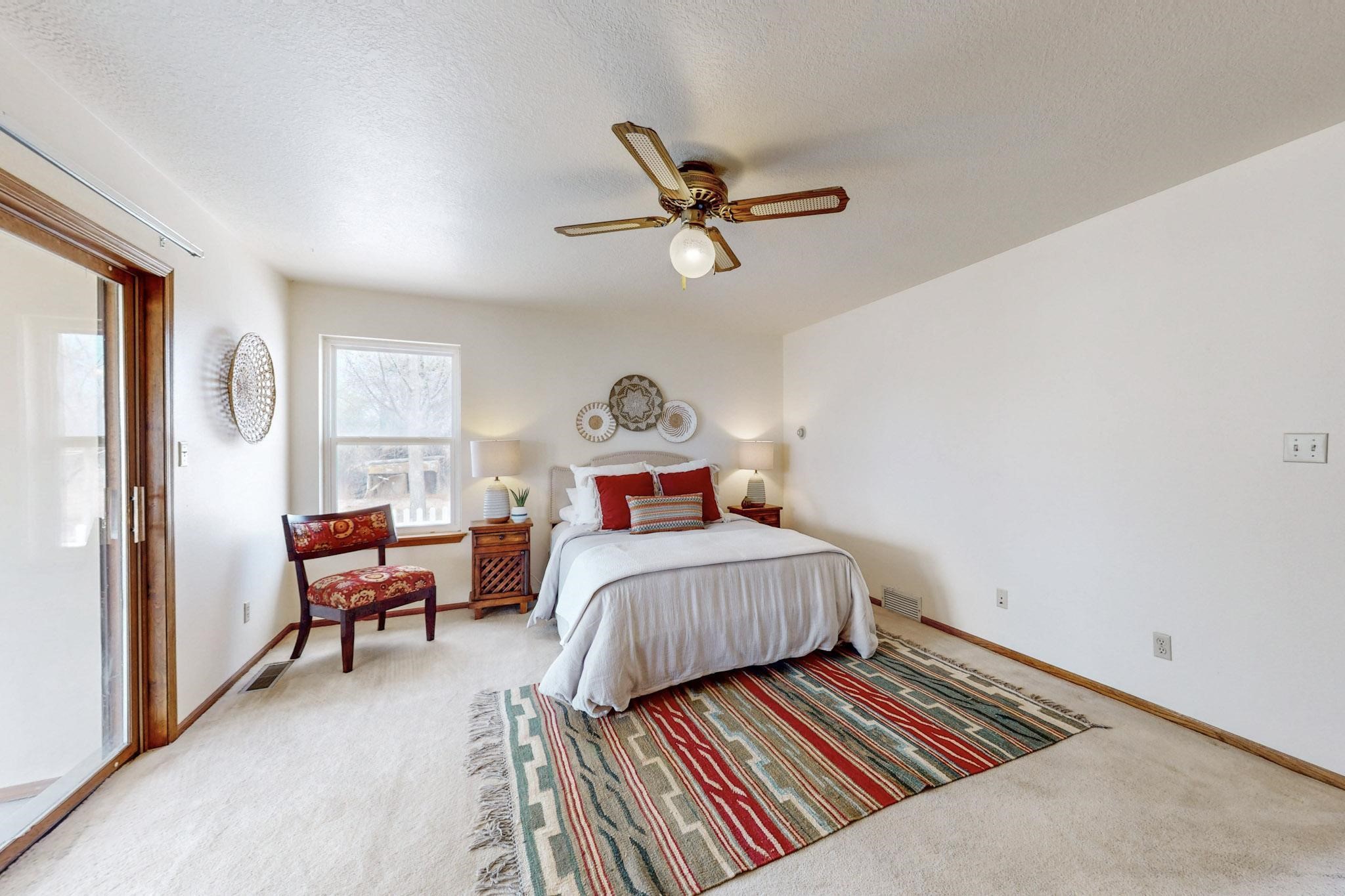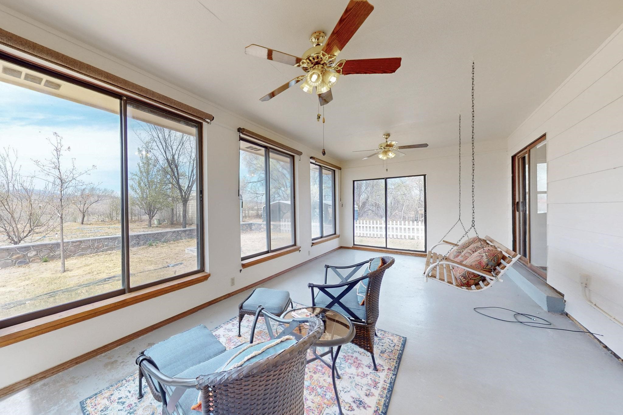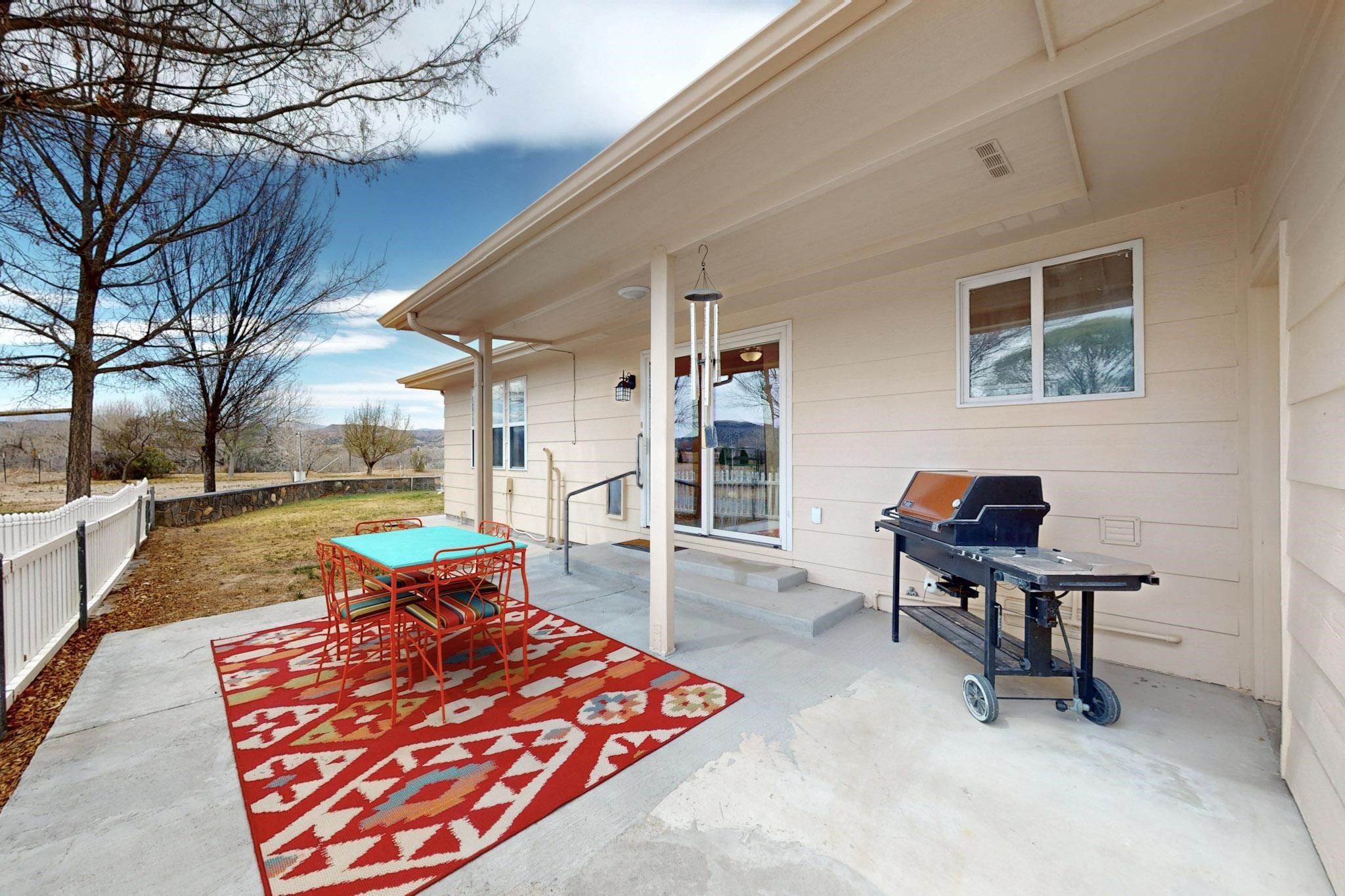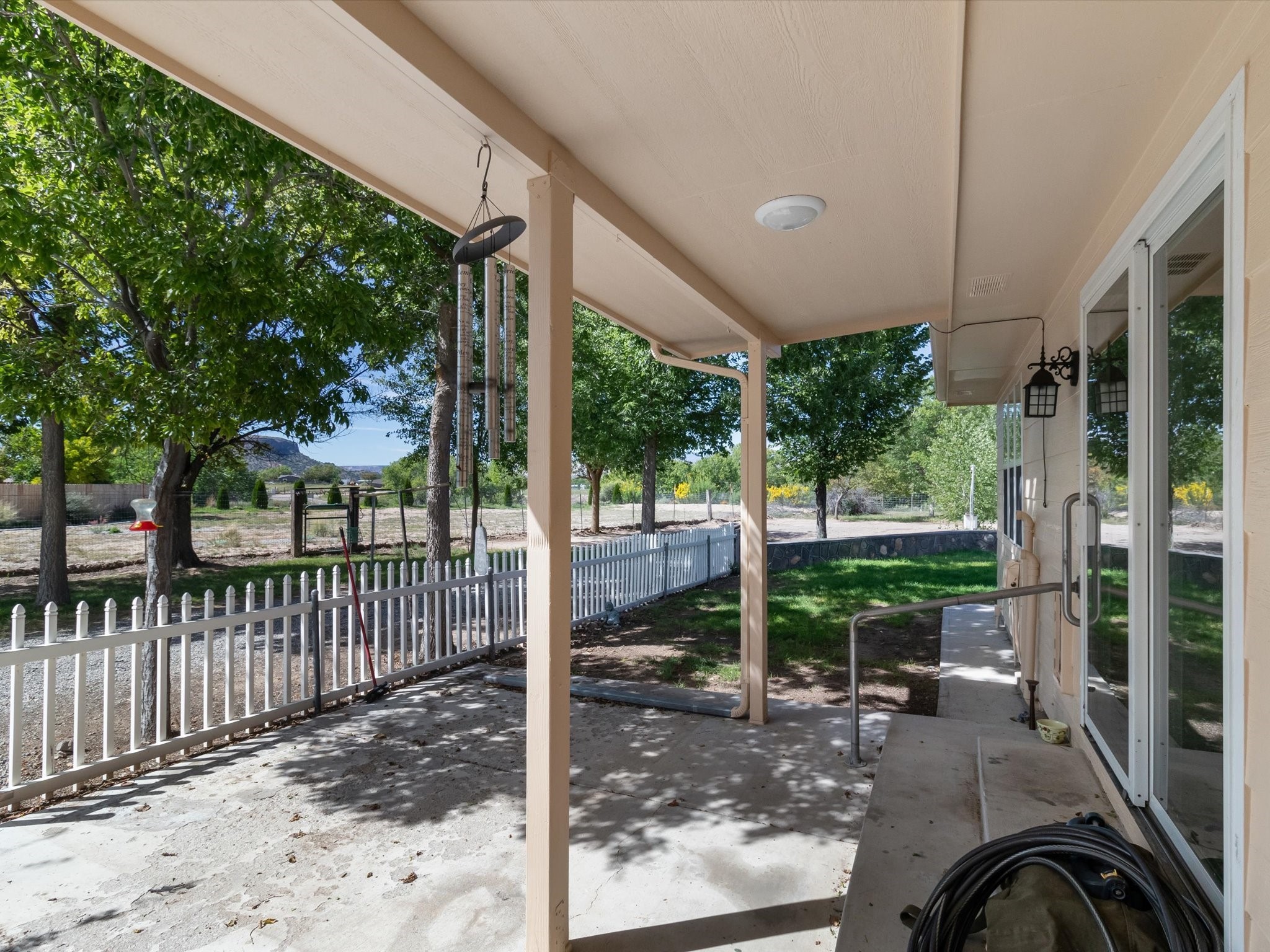 Discover this charming 4-bedroom, 3-bath home nestled in the peaceful community of La Mesilla. Situated on a spacious .75-acre lot, this property offers privacy, natural beauty, and incredible versatility. Move-in ready! Freshly updated with new interior and exterior paint and a new roof in 2024, this home is ready for its next owner. A bright, enclosed sunroom provides year-round enjoyment, while the backyard boasts stunning views of Black Mesa. Mature landscaping, fruit trees, and an adjacent arroyo enhance the sense of seclusion and connection to nature. This property is designed for convenience and flexibility, featuring an RV carport, two additional carports, RV hookups, and a spacious storage shed. Water rights allow for lush landscaping, while a dedicated workshop, extra storage, and a media room offer plenty of space for hobbies or creative projects. A separate lower-level entry adds versatility--perfect for a guest suite, studio, private office, or rental opportunity. Discover the ideal mix of comfort, space, and scenery in La Mesilla--conveniently located near Los Alamos, Espaola, and Santa Fe!