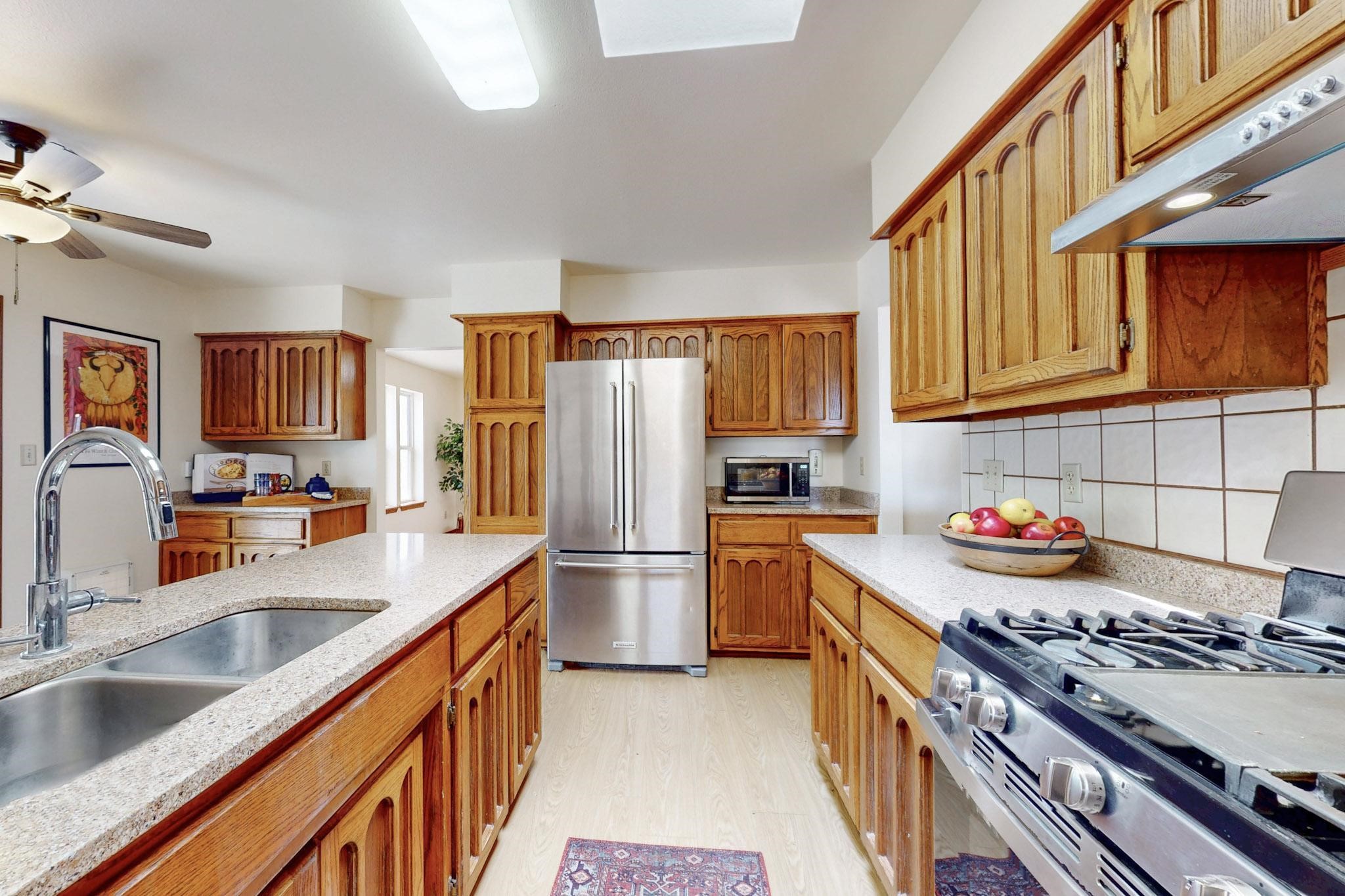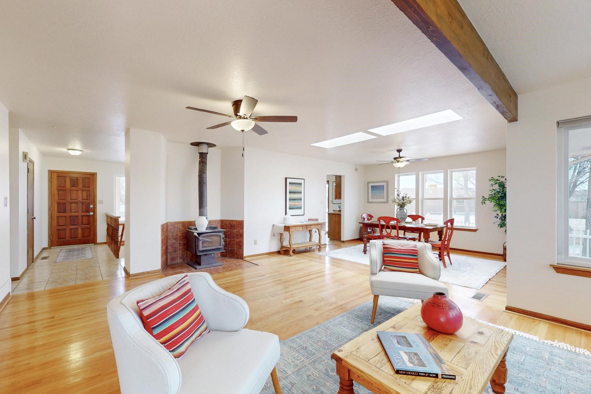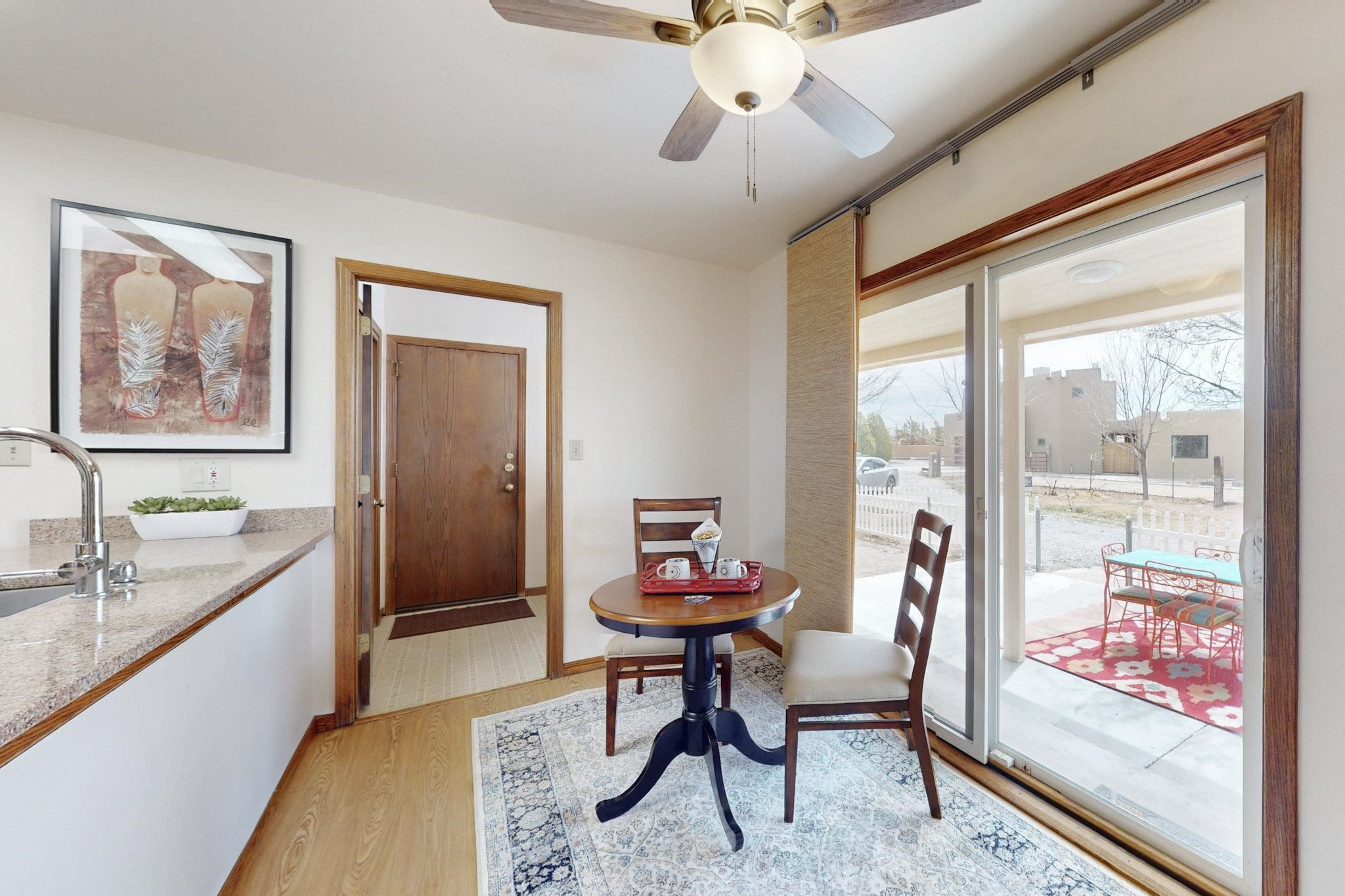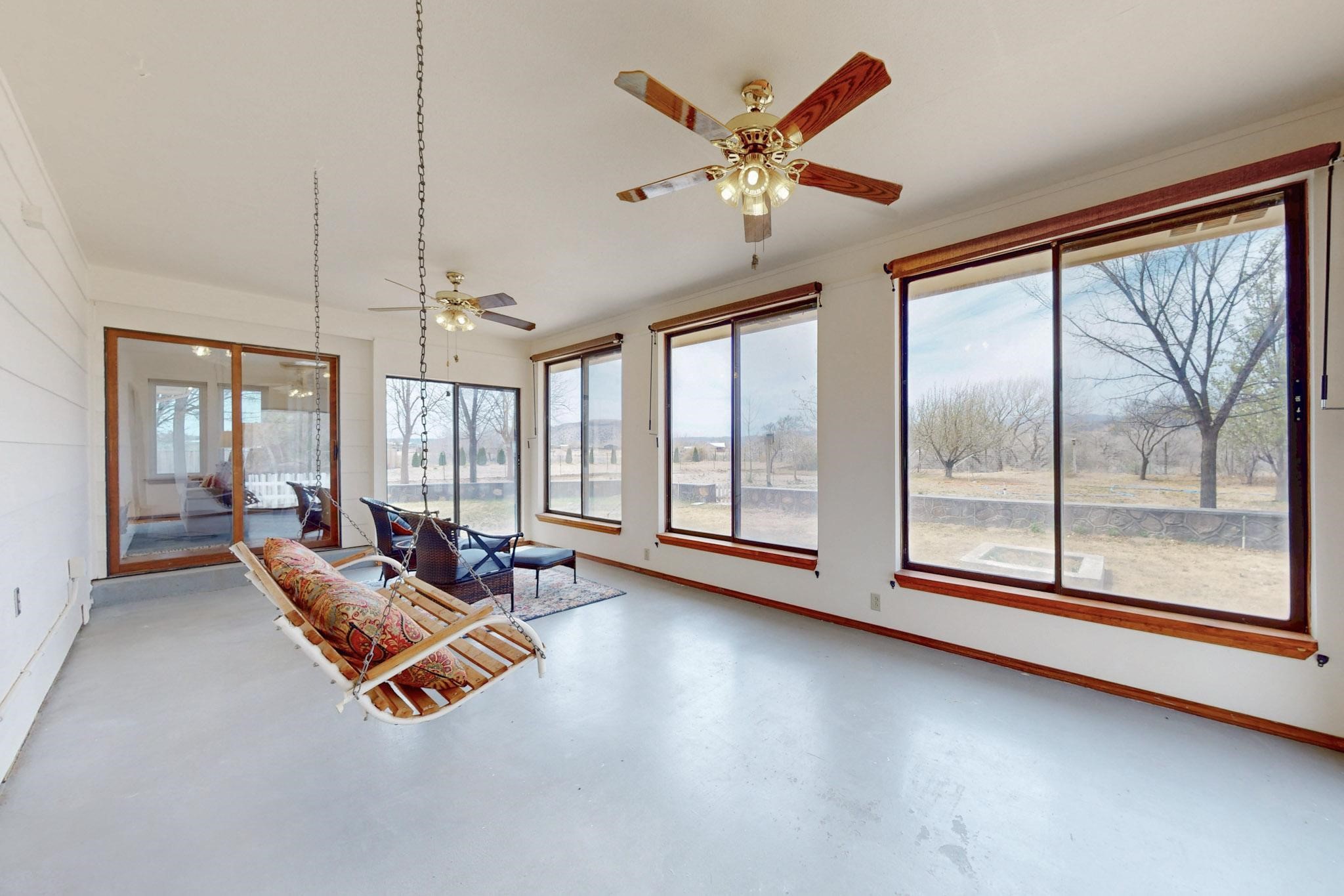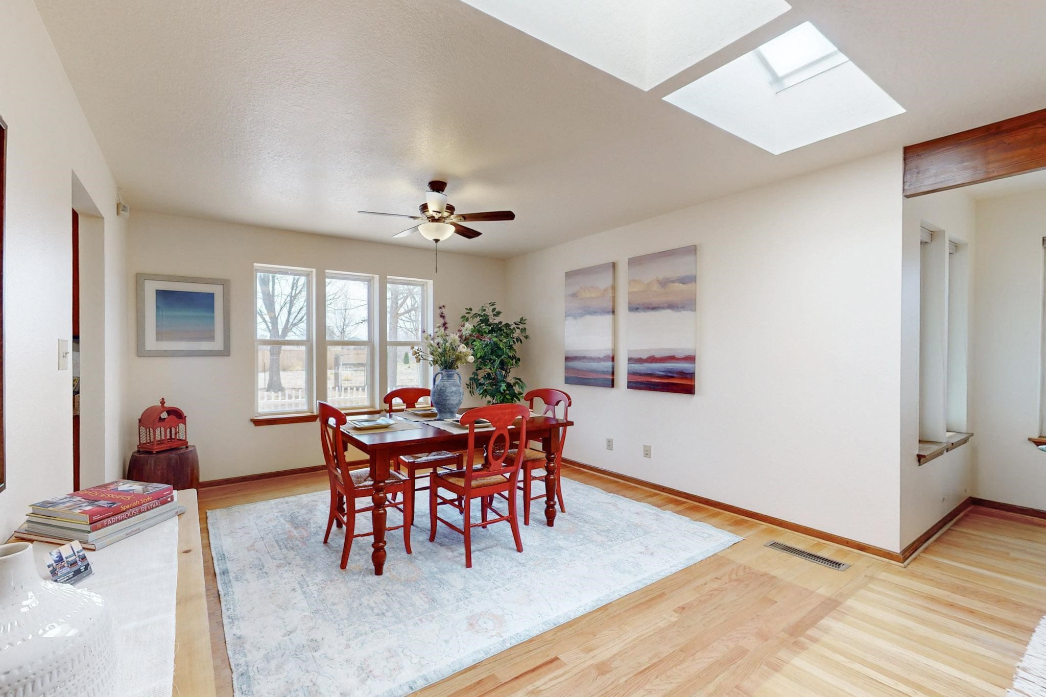 Discover this charming 4-bedroom, 3-bath home nestled in the peaceful community of La Mesilla. Situated on a spacious .75-acre lot, this property offers privacy, natural beauty, and incredible versatility. Move-in ready! Freshly updated with new interior and exterior paint and a new roof in 2024, this home is ready for its next owner. A bright, enclosed sunroom provides year-round enjoyment, while the backyard boasts stunning views of Black Mesa. Mature landscaping, fruit trees, and an adjacent arroyo enhance the sense of seclusion and connection to nature. This property is designed for convenience and flexibility, featuring an RV carport, two additional carports, RV hookups, and a spacious storage shed. Water rights allow for lush landscaping, while a dedicated workshop, extra storage, and a media room offer plenty of space for hobbies or creative projects. A separate lower-level entry adds versatility--perfect for a guest suite, studio, private office, or rental opportunity. Discover the ideal mix of comfort, space, and scenery in La Mesilla--conveniently located near Los Alamos, Espaola, and Santa Fe!