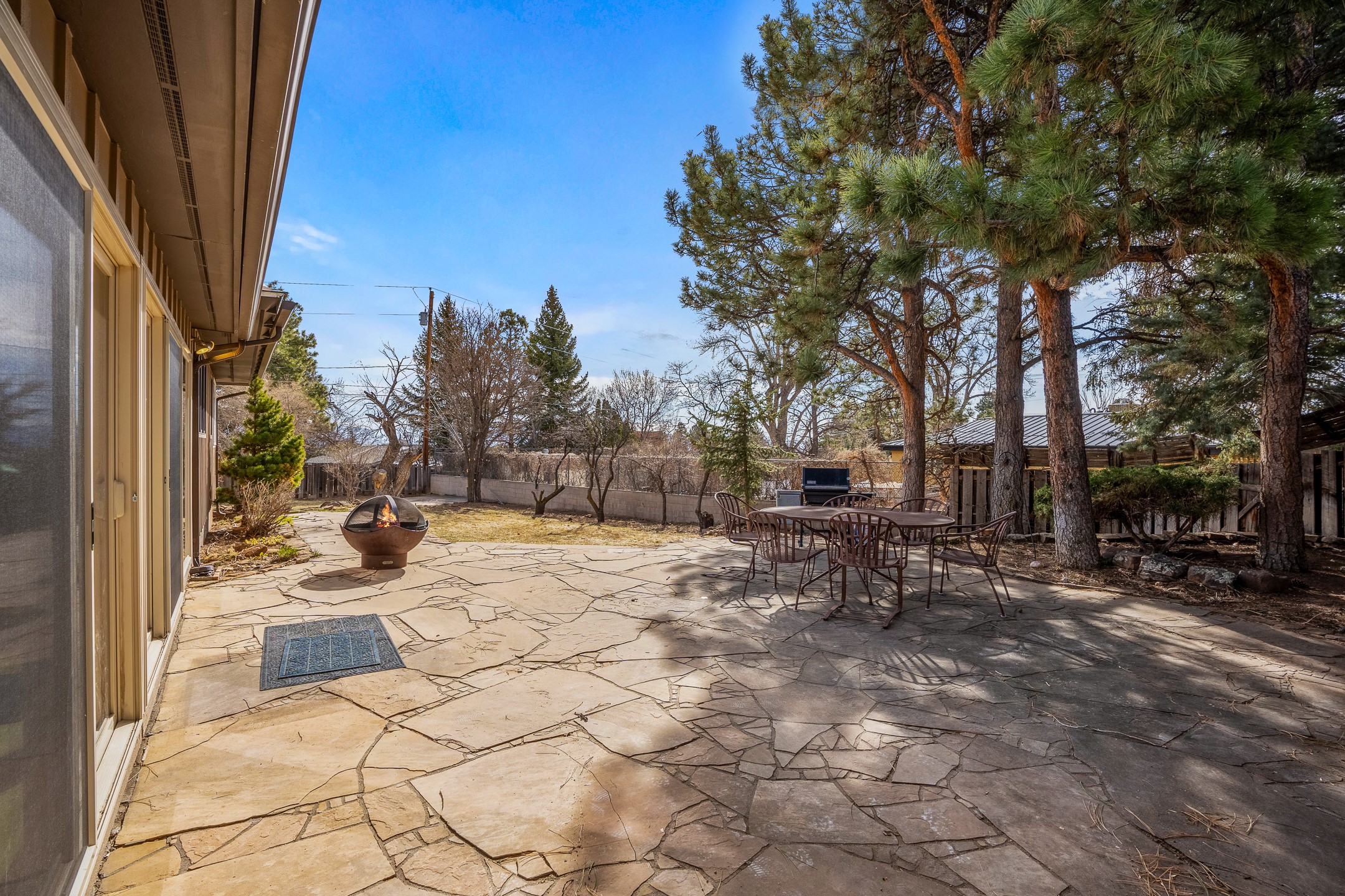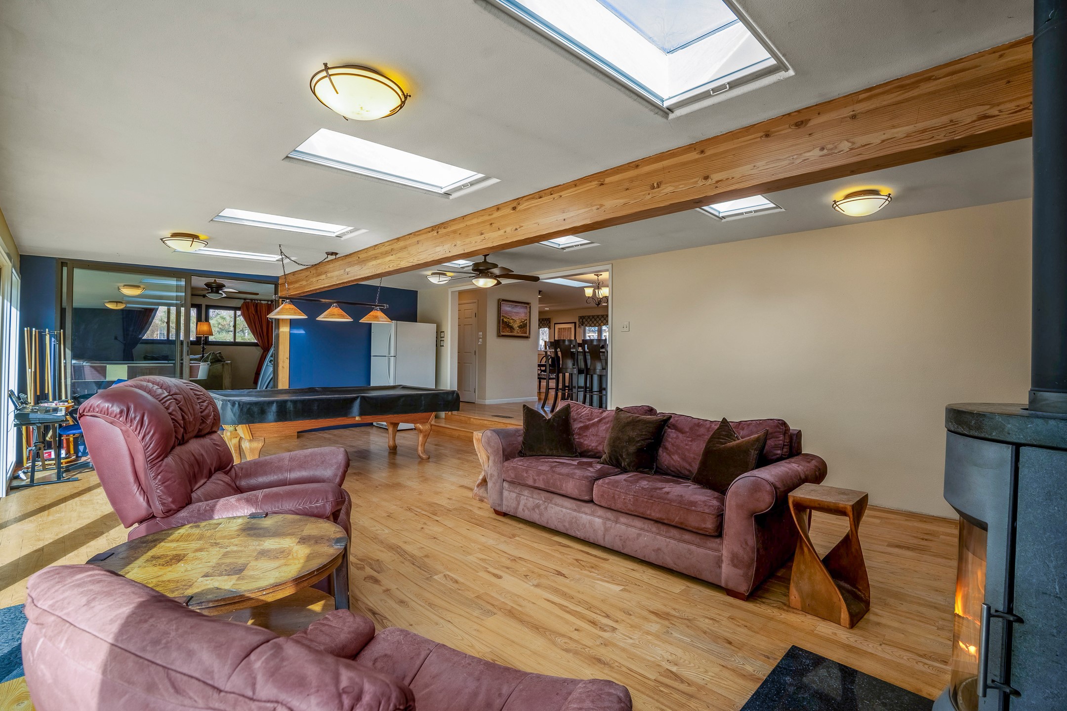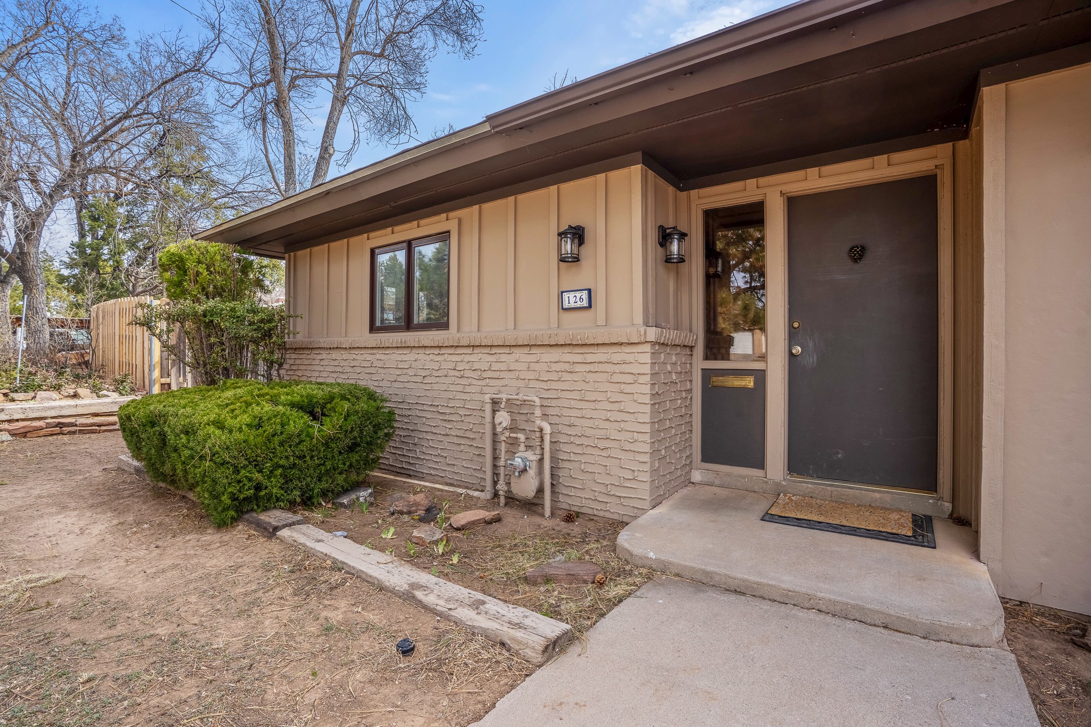 Updated Barranca Mesa Gem with Indoor Pool, Large 0.39 Acre Lot, 4 Bedrooms, Gourmet French Kitchen, Open Floor Plan, Game Room, Flagstone Patio with Views, and More! Welcome to 126 Andanada! This ranch-style home is located amongst the pines on a large 0.39 acre lot on Barranca Mesa, features a rare indoor pool, and is perfect for entertaining guests and enjoying life! As you enter, you are greeted by wood floors, natural light, and an open floor plan. To the left awaits a spacious dining room easily accommodates a ten-seat table and flows into the kitchen, making holiday meals a breeze. The custom kitchen is reminiscent of a Parisian holiday and serves as the hub of this home. It features a large L-shaped island with barstool seating for six, a built-in refrigerator, a high-end Wolf gas range, double ovens, a pedal-operated sink faucet, and four skylights for great lighting. The white cabinets provide ample storage and there is counter space for hosting and cooking in harmony! The living room features a stylish wood stove and provides access to a large flagstone patio in the backyard, with great views of the Sangre de Cristo Mountains. A second living area can serve as a game room or a home office, includes a brick fireplace to keep you warm on those cool evenings. The bedroom wing features three guest bedrooms, a full bathroom, and a spacious laundry room. The primary suite includes an en-suite bathroom that features a quartz-topped double vanity and walk-in shower. The indoor pool is housed in the eastern part of the home in a separate room with lofted ceilings and a wall of south-facing windows. The pool house opens to the landscaped back yard to maximize your summer fun! This home is truly an entertainer's dream! Schedule your showing today before this one is gone!