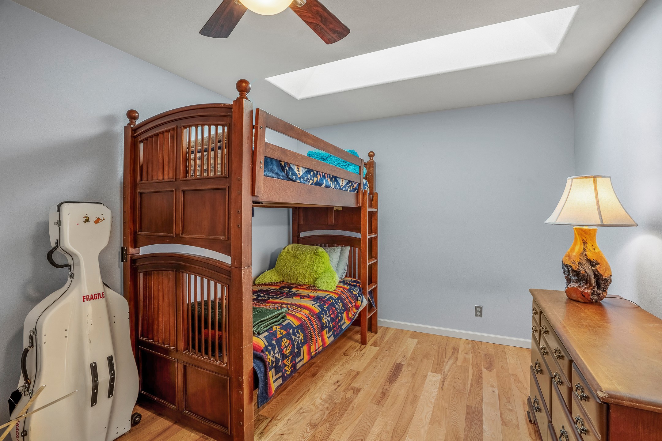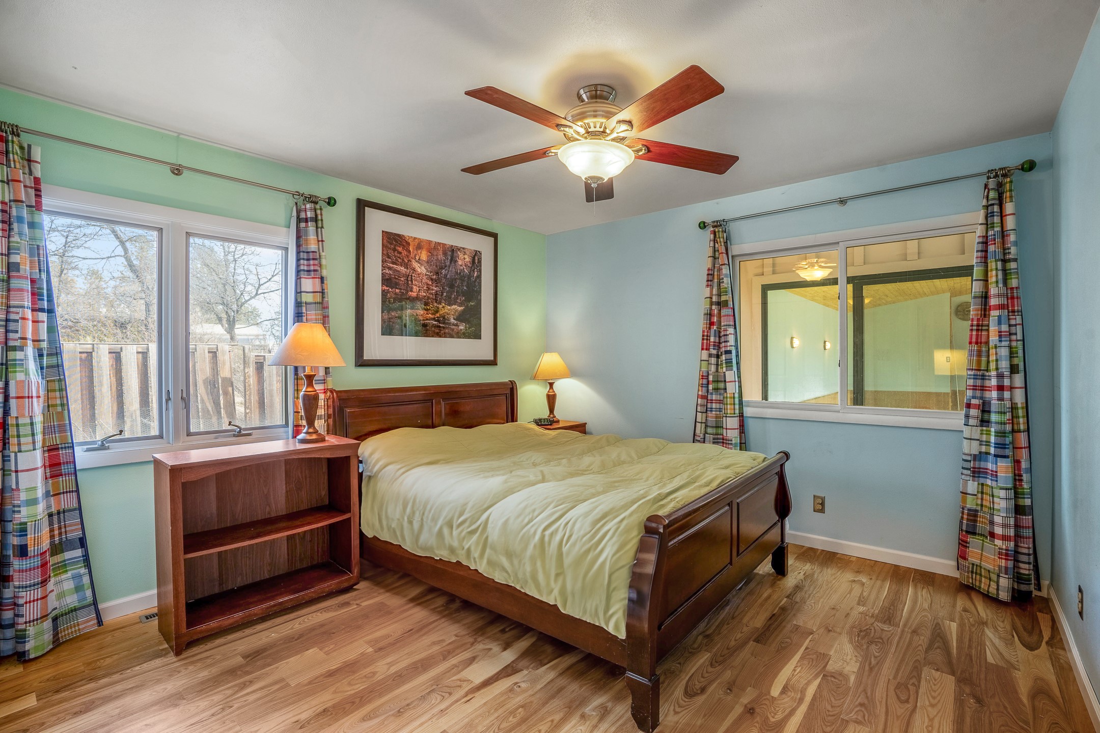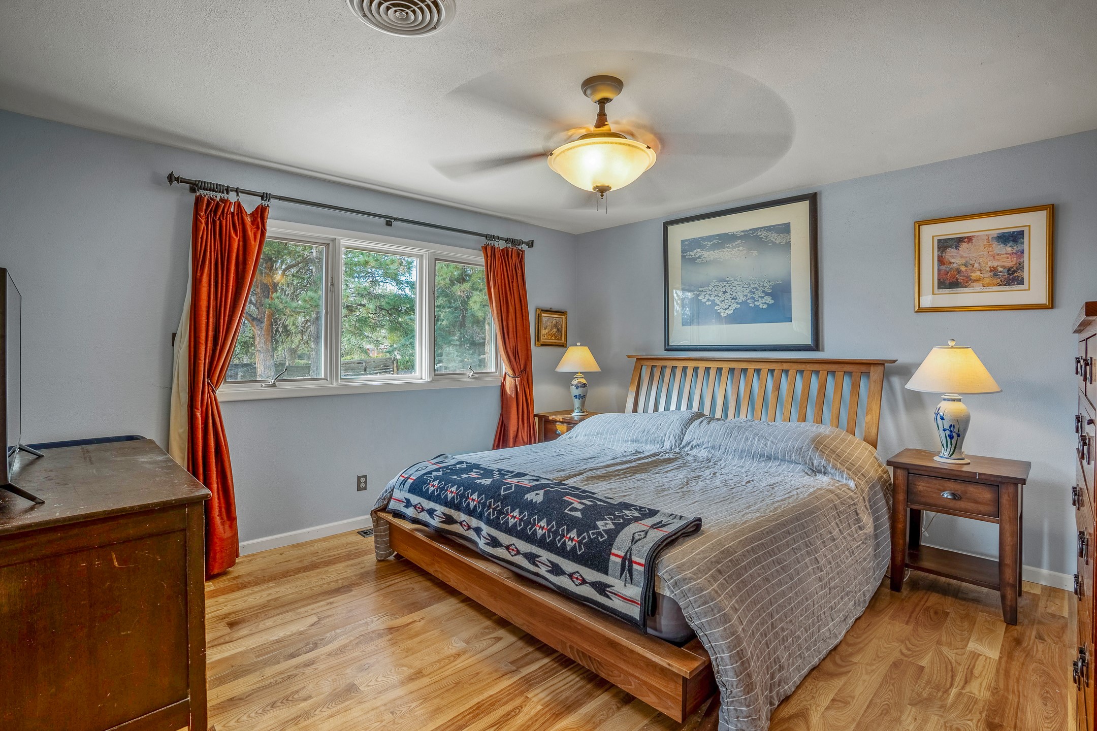 Updated Barranca Mesa Gem with Indoor Pool, Large 0.39 Acre Lot, 4 Bedrooms, Gourmet French Kitchen, Open Floor Plan, Game Room, Flagstone Patio with Views, and More! Welcome to 126 Andanada! This ranch-style home is located amongst the pines on a large 0.39 acre lot on Barranca Mesa, features a rare indoor pool, and is perfect for entertaining guests and enjoying life! As you enter, you are greeted by wood floors, natural light, and an open floor plan. To the left awaits a spacious dining room easily accommodates a ten-seat table and flows into the kitchen, making holiday meals a breeze. The custom kitchen is reminiscent of a Parisian holiday and serves as the hub of this home. It features a large L-shaped island with barstool seating for six, a built-in refrigerator, a high-end Wolf gas range, double ovens, a pedal-operated sink faucet, and four skylights for great lighting. The white cabinets provide ample storage and there is counter space for hosting and cooking in harmony! The living room features a stylish wood stove and provides access to a large flagstone patio in the backyard, with great views of the Sangre de Cristo Mountains. A second living area can serve as a game room or a home office, includes a brick fireplace to keep you warm on those cool evenings. The bedroom wing features three guest bedrooms, a full bathroom, and a spacious laundry room. The primary suite includes an en-suite bathroom that features a quartz-topped double vanity and walk-in shower. The indoor pool is housed in the eastern part of the home in a separate room with lofted ceilings and a wall of south-facing windows. The pool house opens to the landscaped back yard to maximize your summer fun! This home is truly an entertainer's dream! Schedule your showing today before this one is gone!