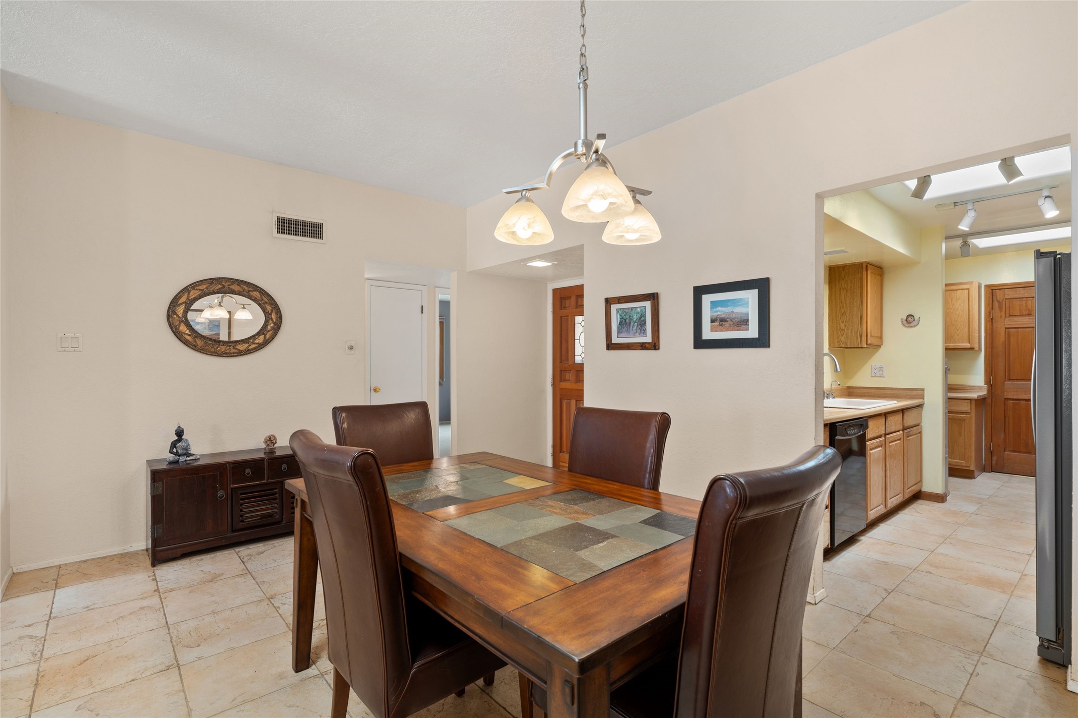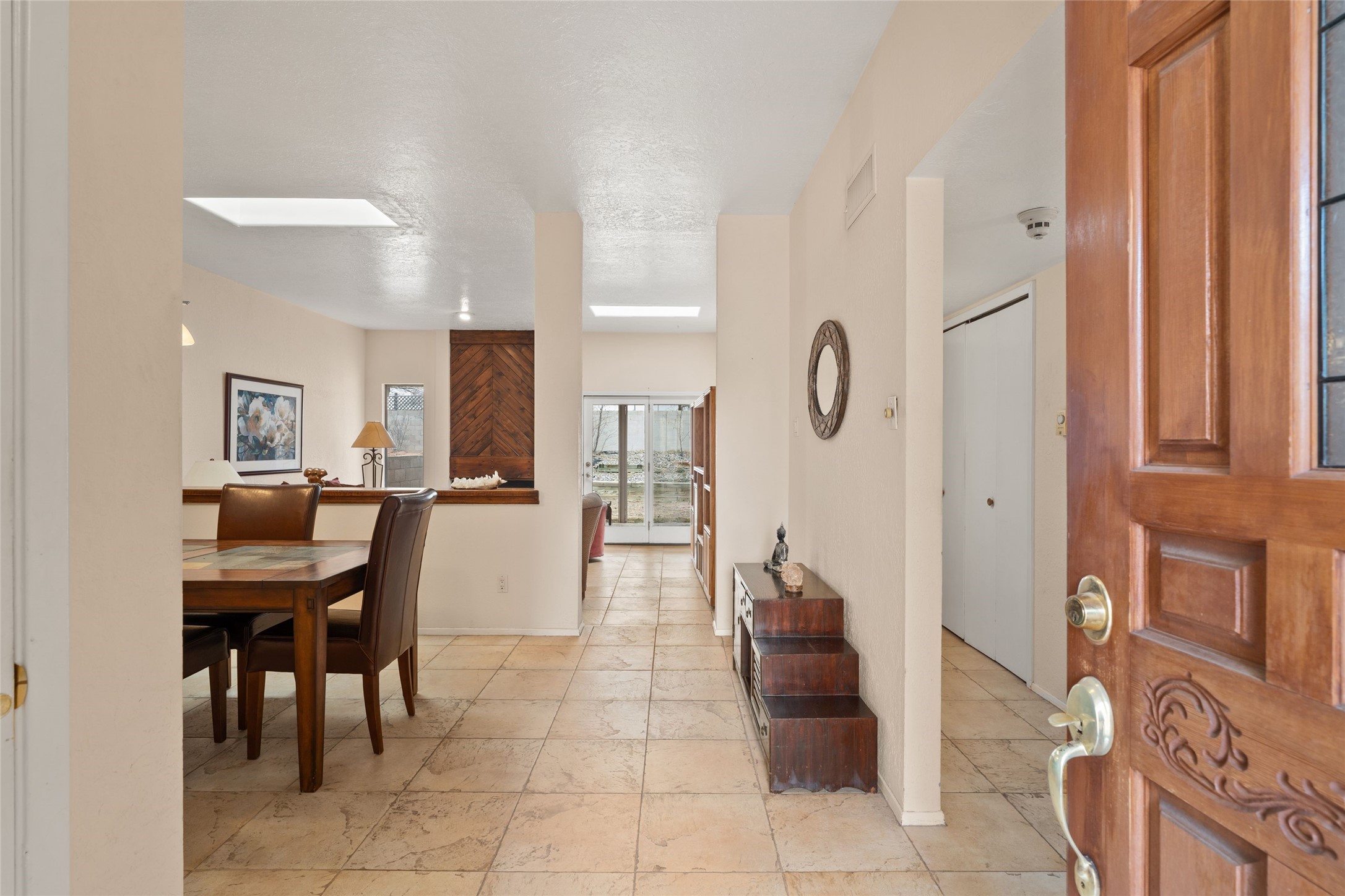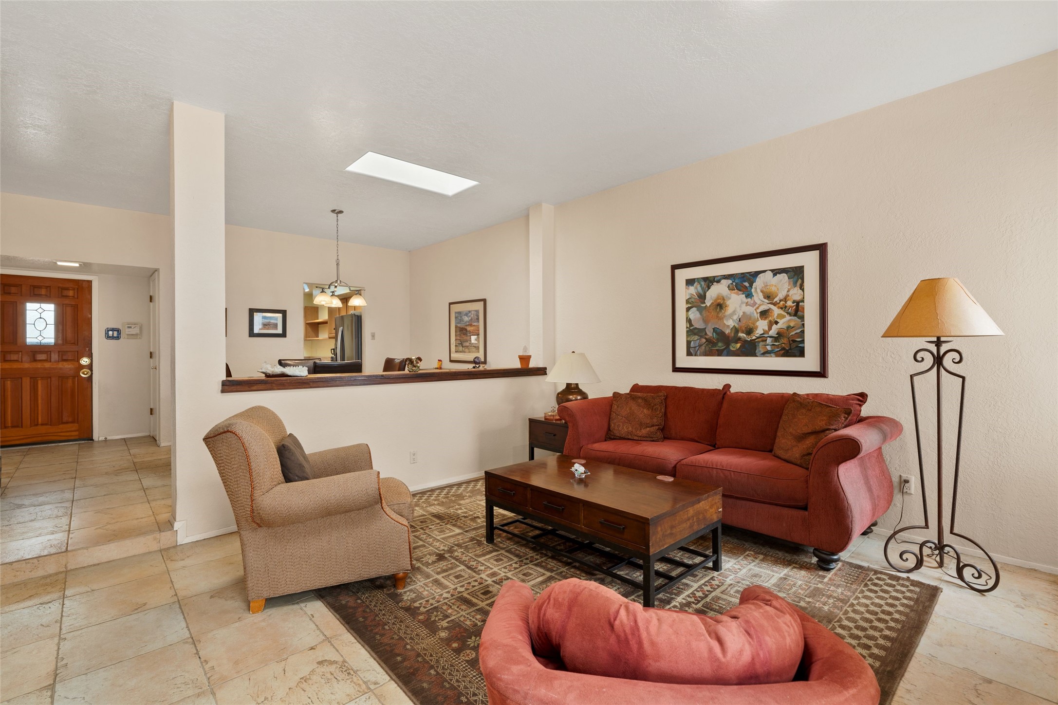 Property is in central Santa Fe location and backs to Ragle Park. Home has an open floor plan with nice dining area. Living space is light and bright with 4 skylights and tile floors. The 3 bedroom, 2 bath home has a one car attached garage. Location is convenient to Chaparral Elementary, Santa Fe High and Milagro Middle School, shopping and services. For commuters; the Zia Rail Runner Train Station is near; as is St. Francis Drive and I-25. New furnace in January of 2025. Front yard boasts the "neighborhood tree", a giant Colorado Spruce. Back yard is ready for your new garden ideas. Covered portal/patio awaits its new owner and guests. An enjoyable Santa Fe location to call home, raise your family or enjoy retirement. No HOA.